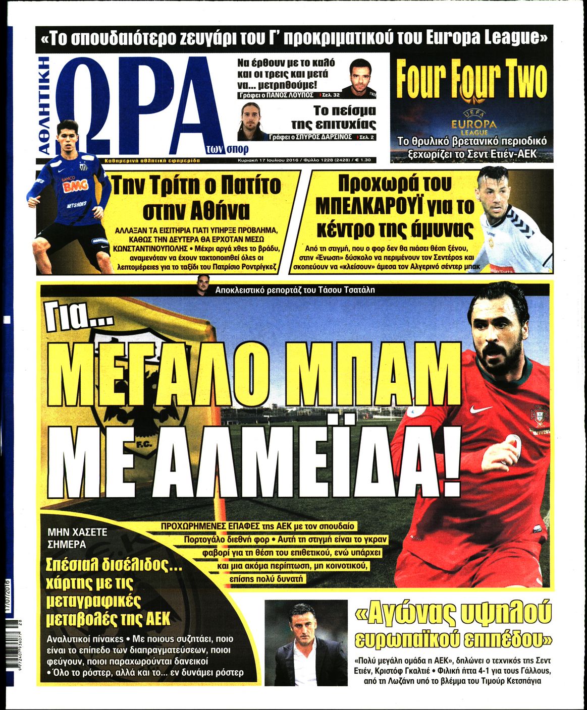 Οι αθλητικές εφημερίδες 17/7/2016 Enikos Newsroom 06:10, Κυριακή 17 Ιουλίου 2016 Media Διαβάστε τα σημερινά πρωτοσέλιδα των αθλητικών εφημερίδων: ΑΘΛΗΤΙΚΕΣ ΕΦΗΜΕΡΙΔΕΣ ΠΡΩΤΟΣΕΛΙΔΑ Μοιράσου το: σχολίασε κι εσύ (0 σχόλια) Ακολουθήστε το enikos.gr στο Google News και μάθετε πρώτοι όλες τις ειδήσεις Δείτε όλες τις τελευταίες ειδήσεις από την Ελλάδα και τον Κόσμο στο enikos.gr Ειδήσεις Ροή Ειδήσεων 1 ώρα πριν Σύνοδος Κορυφής: Συνεχίζεται το θρίλερ στις Βρυξέλλες για την χρηματοδότηση της Ουκρανίας 5 ώρες πριν ΟΠΕΚΕΠΕ: Προφυλακιστέος ο φερόμενος αρχηγός και ο λογιστής της εγκληματικής οργάνωσης 6 ώρες πριν Αυξάνουν την πίεση προς την κυβέρνηση οι αγρότες: Κλείνουν παρακαμπτήριους και ανοίγουν διόδια – Τι θα γίνει τις γιορτές 6 ώρες πριν Φοινικούντα: Το Σάββατο απολογείται ο 30χρονος γιος γνωστού επιχειρηματία της Πλάκας που παραδόθηκε – Όσα είπε στους αστυνομικούς και ο ρόλος του στο έγκλημα 4 ώρες πριν ΑΕΚ – Κραϊόβα 3-2: Επική ανατροπή και πρόκριση στους «16» του Conference League η Ένωση 5 ώρες πριν Αρχαιολόγοι ανακάλυψαν ρωμαϊκά τεχνουργήματα από μια πόλη που δεν υπήρξε ποτέ – Τα τρία εντυπωσιακά κτίρια και ο αμφορέας με τις… σαρδέλες 6 ώρες πριν Ύπνος: Η απλή βραδινή ρουτίνα για να προστατεύσετε τα μαλλιά σας από το κρύο κατά τη διάρκεια του χειμώνα 7 ώρες πριν Manifesting: Πώς να συναντήσετε τον σύντροφο της ζωής σας, ανάλογα με τον μήνα γέννησής σας 2 ημέρες πριν 20 χρόνια τα Χριστούγεννα ξεκινούν στα Public με μεγάλη ποικιλία σε δώρα! 24 λεπτά πριν Αιματηρή βομβιστική επίθεση στην Υεμένη: Τουλάχιστον τρεις νεκροί και 13 τραυματίες 28 λεπτά πριν Στη Φλόριντα σήμερα οι διαβουλεύσεις σχετικά με τα επόμενα στάδια για τη Λωρίδα της Γάζας 32 λεπτά πριν Σίσσυ Τουμάση: «Είμαι ασθενοφοβική πάρα πολύ και με πιάνει μια παράνοια μ’ αυτό» 56 λεπτά πριν Ντόναλντ Τραμπ: Δεν χρειάζομαι την έγκριση του Κογκρέσου για να διατάξω στρατιωτικά πλήγματα στη Βενεζουέλα 1 ώρα πριν Σύνοδος Κορυφής: Συνεχίζεται το θρίλερ στις Βρυξέλλες για την χρηματοδότηση της Ουκρανίας ENIKOS NETWORK Σε περίοδο αυξημένης δραστηριότητας η γρίπη στην Ελλάδα-Μέτρα προστασίας από τον ΕΟΔΥ Σκέφτεστε συνέχεια συζητήσεις που έχετε κάνει; Τι σημαίνει αυτό, σύμφωνα με ειδικό Στεγαστικό: Τι λέει η ΠΟΜΙΔΑ για τα νέα μέτρα που ανακοίνωσε ο Κυριάκος Μητσοτάκης Λαγκάρντ: Αισιόδοξη για την ανάπτυξη της Ευρωζώνης, αβέβαιη για τον πληθωρισμό Χαρτογραφώντας το «σημείο χωρίς επιστροφή»: Για πρώτη φορά αποκαλύπτεται με λεπτομέρεια το ακανθώδες όριο της ατμόσφαιρας τ... Η Google καταργεί τη λειτουργία «dark web report» – Πώς θα μπορούν οι χρήστες να διαγράφουν τα δεδομένα τους περισσότερα 02:50 , Παρασκευή 19 Δεκεμβρίου 2025 GNTM: «Κλείδωσαν» οι τέσσερις φιναλίστ – Μεγάλη ανατροπή στις τελευταίες αποχωρήσεις Για προτελευταία φορά εμφανίστηκαν στο πλατό του GNTM οι φιναλίστ του φετινού κύκλου, το βράδυ... 17:45 , Πέμπτη 18 Δεκεμβρίου 2025 ROUK ZOUK: Εορταστικό επεισόδιο με καλεσμένους τους πρωταγωνιστές του «Γιατί ρε πατέρα» Το Σάββατο 20 Δεκεμβρίου στις 21:00, η Ζέτα Μακρυπούλια υποδέχεται εκλεκτούς ηθοποιούς που όλο... 17:20 , Πέμπτη 18 Δεκεμβρίου 2025 Άγιος έρωτας: Η Χριστίνα εξομολογείται στον πατέρα Νικόλαο, απόψε στις 21:00 στον Alpha Η Νότα αποφασίζει να εκδικηθεί τον Πέτρο και τον Στέφανο, για χάρη του Λούη, όμως τα πράγματα ... 16:50 , Πέμπτη 18 Δεκεμβρίου 2025 Να μ’ αγαπάς: Ζωή και Φωτεινή συμφιλιώνονται ως μάνα με κόρη, απόψε στις 20:00 Η ταυτότητα του Άγγελου αποκαλύπτεται στο νέο επεισόδιο της σει