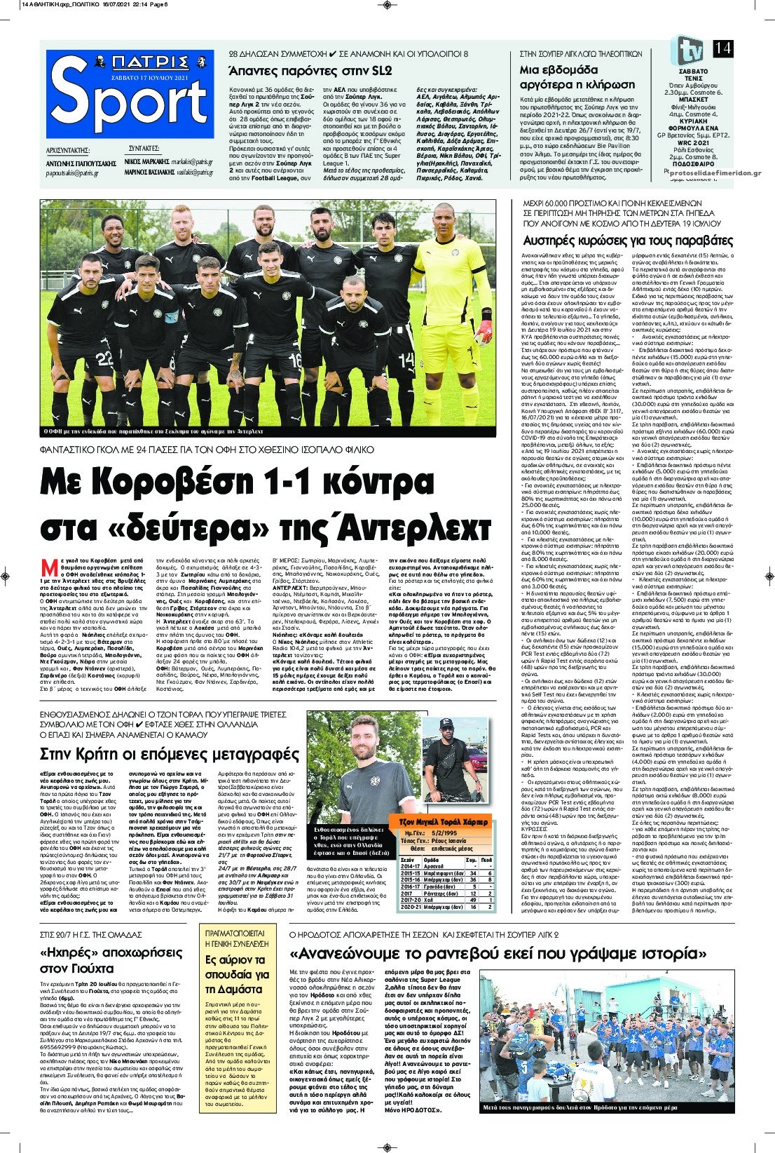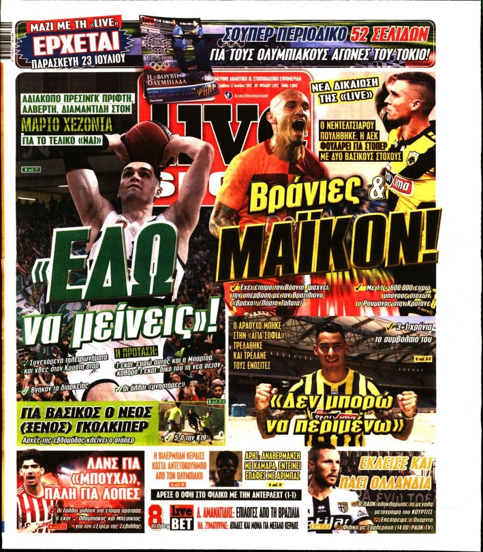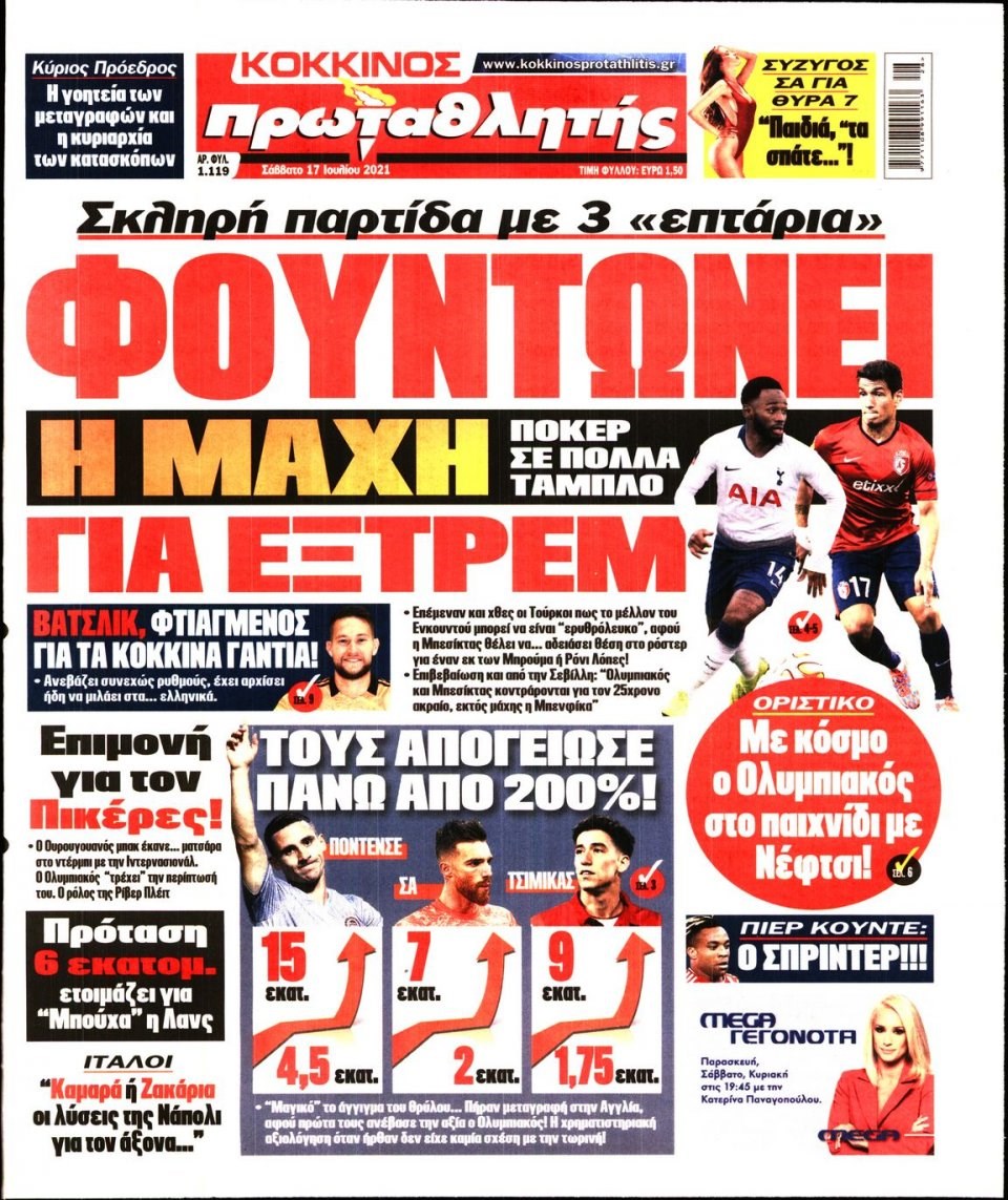 Οι αθλητικές εφημερίδες 17/7/2021 Σήφης Γαρυφαλάκης 07:35, Σάββατο 17 Ιουλίου 2021 Media Διαβάστε τα πρωτοσέλιδα των αθλητικών εφημερίδων. ΑΘΛΗΤΙΚΕΣ ΕΦΗΜΕΡΙΔΕΣ ΕΦΗΜΕΡΙΔΕΣ ΠΡΩΤΟΣΕΛΙΔΑ ΠΡΩΤΟΣΕΛΙΔΑ ΕΦΗΜΕΡΙΔΩΝ Μοιράσου το: σχολίασε κι εσύ (0 σχόλια) Ακολουθήστε το enikos.gr στο Google News και μάθετε πρώτοι όλες τις ειδήσεις Δείτε όλες τις τελευταίες ειδήσεις από την Ελλάδα και τον Κόσμο στο enikos.gr Ειδήσεις Ροή Ειδήσεων 37 λεπτά πριν LIVE από Λοριάν: Η ύψωση της ελληνικής σημαίας στην πρώτη φρεγάτα FDI Belharra ΚΙΜΩΝ 49 λεπτά πριν Στην Ευελπίδων ο 22χρονος που καταγγέλλει τον Γιώργο Μαζωνάκη για ασελγείς πράξεις – «Έχουμε εμπιστοσύνη στη Δικαιοσύνη, καμία εκβίαση» λέει ο δικηγόρος του 3 ώρες πριν Νίκος Παππάς: Άφαντος παραμένει ο ευρωβουλευτής μετά την επίθεση στον Νίκο Γιαννόπουλο 2 ώρες πριν Βρυξέλλες: Ένταση με τους αγρότες – Πέταξαν πατάτες και κροτίδες 3 ώρες πριν Συναγερμός και στην Ελλάδα για τη «σούπερ γρίπη»: Πόσο σοβαρή είναι και ποιοι θεωρούνται πιο ευάλωτοι – 3 ειδικοί μιλούν στο enikos.gr 4 ώρες πριν Τα 4 ζώδια που λαμβάνουν ένα ισχυρό σημάδι από το σύμπαν – «Αποκαλύπτεται κάτι που μπορεί να αλλάξει τη ζωή μας» 5 ώρες πριν Η σύζυγός του παραπονιέται για τα χρήματα που της δίνει για ψώνια κάθε μήνα – «Λέει ότι νιώθει φτωχή και της είπα να βρει δουλειά» 3 ώρες πριν Αν κάνετε συνεχώς αυτά τα 8 πράγματα με τα κατοικίδιά σας, σας λείπει η ανθρώπινη επαφή 1 ημέρα πριν 20 χρόνια τα Χριστούγεννα ξεκινούν στα Public με μεγάλη ποικιλία σε δώρα! 7 δευτερόλεπτα πριν Το πιο ελπιδοφόρο χριστουγεννιάτικο δέντρο άναψε στο Ογκολογικό Νοσοκομείο Παίδων «Μαριάννα Β. Βαρδινογιάννη-ΕΛΠΙΔΑ» 2 λεπτά πριν Γιώργος Μαζωνάκης: «Δεν ζήτησα χρήματα, παρά μόνο ηθική δικαίωση» – Οι πρώτες δηλώσεις του 22χρονου μετά την κατάθεση της μήνυσης 7 λεπτά πριν Χριστουγεννιάτικο τραπέζι: Πόσο θα κοστίσει φέτος – Σε ποια είδη τραβούν… την ανηφόρα οι τιμές 15 λεπτά πριν Σκέρτσος για Κωνσταντοπούλου: «Είναι αδίστακτη, βαθιά κυνική και ουσιαστικά αδιάφορη απέναντι στην αλήθεια και τη δικαιοσύνη» 23 λεπτά πριν Χαρίτσης: «Ο κ. Μητσοτάκης έδωσε το πράσινο φως για το λουκέτο στα ΕΛΤΑ» ENIKOS NETWORK Όμιλος ΙΑΤΡΟΠΟΛΙΣ: Πρωτοπόροι στη μοριακή απεικόνιση και στην πυρηνική ιατρική Τι περιλαμβάνει το σχέδιο της ΕΕ για την καρδιαγγειακή υγεία-Οι προτάσεις της Ελληνικής Καρδιολογικής Εταιρείας Χριστουγεννιάτικο τραπέζι: Πόσο θα κοστίσει φέτος – Σε ποια είδη τραβούν… την ανηφόρα οι τιμές Ενοίκια: Τι αλλάζει με τη νέα τροπολογία στην πληρωμή Χαρτογραφώντας το «σημείο χωρίς επιστροφή»: Για πρώτη φορά αποκαλύπτεται με λεπτομέρεια το ακανθώδες όριο της ατμόσφαιρας τ... Η Google καταργεί τη λειτουργία «dark web report» – Πώς θα μπορούν οι χρήστες να διαγράφουν τα δεδομένα τους περισσότερα 08:00 , Πέμπτη 18 Δεκεμβρίου 2025 Την Κυριακή με τη Realnews: Δωροεπιταγή 10€ Δωροεπιταγή αξίας 10€ για αγορές άνω των 60€ από τα πολυκαταστήματα FactoryOutlet H προσφορά ι... 07:50 , Πέμπτη 18 Δεκεμβρίου 2025 «Το σόι σου»: Backstage στα γυρίσματα για το εορταστικό επεισόδιο «Το σόι σου» φορά τα γιορτινά του για τα Χριστούγεννα και η Όλγα Λαφαζάνη, με την κάμερα του «... 07:36 , Πέμπτη 18 Δεκεμβρίου 2025 Οι αθλητικές μεταδόσεις 18/12/2025 – Πού θα δείτε τον αγώνα της ΑΕΚ με την Κραϊόβα για το Conference League Τα ματς ΑΕΚ – Ουνιβερσιτάτεα Κραϊόβα για το Conference League και Παναθηναϊκός – Χάποελ Τελ Αβ... 05:48 , Πέμπτη 18 Δεκεμβρίου 2025 Οι οικονομικές εφημερίδες 18/12/2025 Διαβάστε τα πρωτοσέλιδα από τις οικονομικές εφημ