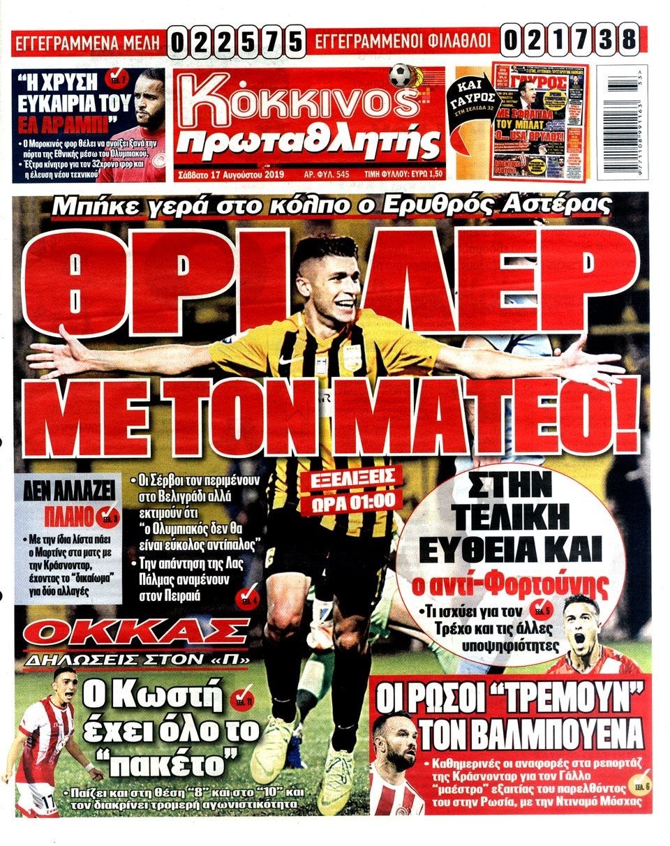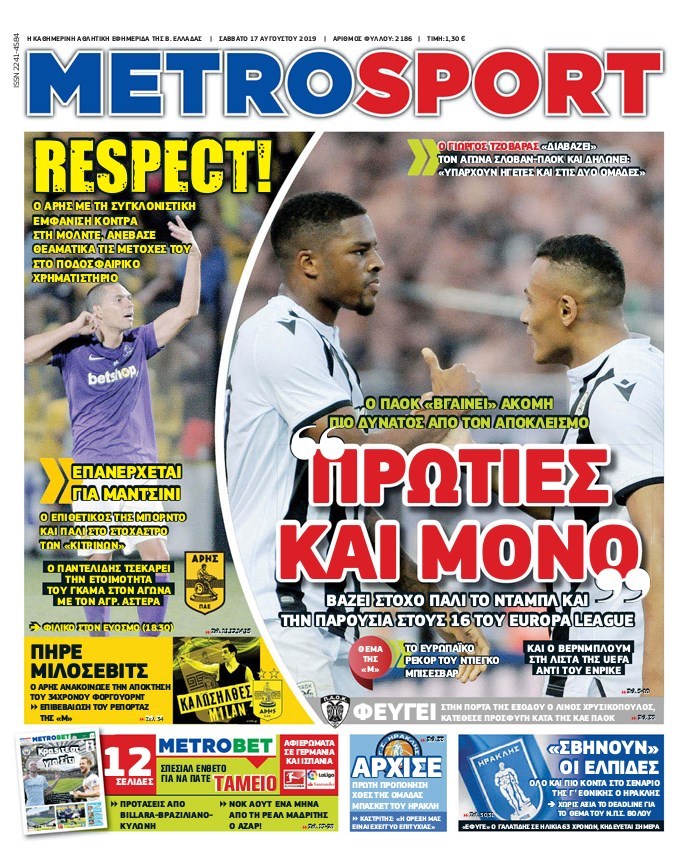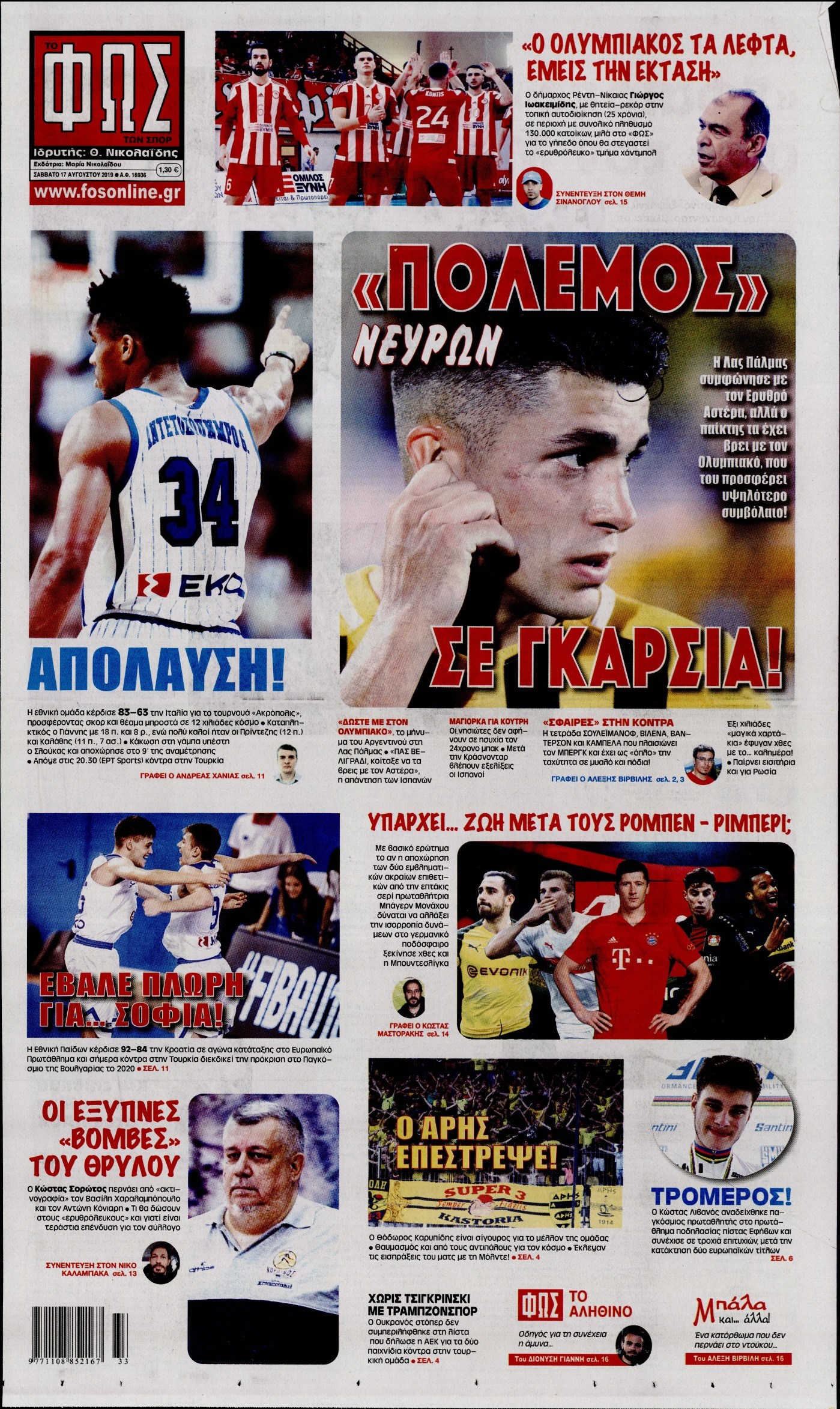 Οι αθλητικές εφημερίδες 17/8/19 Διονύσης Νίκκας 08:06, Σάββατο 17 Αυγούστου 2019 Media Διαβάστε τα πρωτοσέλιδα των αθλητικών εφημερίδων… ΑΘΛΗΤΙΚΩΝ ΕΦΗΜΕΡΙΔΩΝ ΠΡΩΤΟΣΕΛΙΔΑ Μοιράσου το: σχολίασε κι εσύ (0 σχόλια) Ακολουθήστε το enikos.gr στο Google News και μάθετε πρώτοι όλες τις ειδήσεις Δείτε όλες τις τελευταίες ειδήσεις από την Ελλάδα και τον Κόσμο στο enikos.gr Ειδήσεις Ροή Ειδήσεων 8 ώρες πριν Ανυποχώρητοι οι αγρότες: Δεν πάνε στο Μαξίμου, κλιμακώνουν τις κινητοποιήσεις – Ποια είναι τα αιτήματά τους 24 λεπτά πριν ΗΠΑ: Ένοπλη επίθεση στο πανεπιστήμιο Μπράουν του Ρόουντ Άιλαντ – Δύο νεκροί και εννέα τραυματίες, ανθρωποκυνηγητό για τον εντοπισμό του δράστη 32 λεπτά πριν Θανατηφόρο τροχαίο στον Κολωνό: Νεκρός αναβάτης μηχανής έπειτα από σύγκρουση με αυτοκίνητο 7 ώρες πριν Διατλαντικό ρήγμα: Οι σχέσεις ΗΠΑ – Ευρώπης επιδεινώνονται λόγω του νέου δόγματος Τραμπ και της πίεσης που ασκεί στην Ουκρανία 7 ώρες πριν ΟΠΕΚΕΠΕ-Κρήτη: Πώς δρούσε το κύκλωμα με τις παράνομες επιδοτήσεις – Τα ΚΥΔ, οι ψευδείς αιτήσεις και τα… «βράχια της Νορμανδίας» 40 λεπτά πριν Οπτική ψευδαίσθηση: Μόνο αν έχετε παρατηρητικότητα ντετέκτιβ, θα βρείτε τον αριθμό «6» σε 5 δευτερόλεπτα 56 λεπτά πριν Σπλαχνικό λίπος: Γιατρός του Χάρβαρντ αποκαλύπτει 7 τροφές που βοηθούν στη μείωσή του με φυσικό τρόπο 1 ώρα πριν Τα ζώδια σήμερα, Κυριακή 14 Δεκεμβρίου: Παρθένοι, αφιερώστε χρόνο για να καταλάβετε καλύτερα τα συναισθήματα 8 ώρες πριν Εκπληκτική ανακάλυψη σε αρχαία ελληνική πόλη: Βρέθηκε γυναικείο κεφάλι αγάλματος και οι αρχαιολόγοι εκτιμούν ότι μπορεί να συνδέεται με τη θεά Εστία 1 λεπτό πριν Η Realnews στο www.pressreader.com 8 λεπτά πριν ΔΕΔΔΗΕ: Διακοπές ρεύματος σήμερα (14/12) στην Αθήνα και σε άλλες 9 περιοχές της Αττικής 17 λεπτά πριν Ουγγαρία: Οι οινοποιοί φοβούνται ότι μια ασθένεια μπορεί να «εξαφανίσει» τον κλάδο 24 λεπτά πριν ΗΠΑ: Ένοπλη επίθεση στο πανεπιστήμιο Μπράουν του Ρόουντ Άιλαντ – Δύο νεκροί και εννέα τραυματίες, ανθρωποκυνηγητό για τον εντοπισμό του δράστη 32 λεπτά πριν Θανατηφόρο τροχαίο στον Κολωνό: Νεκρός αναβάτης μηχανής έπειτα από σύγκρουση με αυτοκίνητο ENIKOS NETWORK Το βότανο «φύλακας των ερωτευμένων» που μπορεί να αντιμετωπίσει την τριχόπτωση και να ανακουφίσει από άγχος και στρες Αυτή είναι η φτηνότερη μέρα για κράτηση πτήσης Νέα εποχή για την Εγνατία Οδό – Τι αλλάζει με επενδύσεις 1,8 δισ. ευρώ Στάση εργασίας στα λεωφορεία την Τετάρτη 17 Δεκεμβρίου – Κανονικά τα περιαστικά δρομολόγια Σύγχρονος Νοστράδαμος: Προειδοποιεί για «μεγάλο γεγονός» τους επόμενους μήνες που θα συγκλονίσει τη Βρετανία και τον κόσμο Τεστ παρατηρητικότητας: Μπορείτε να βρείτε τις 3 διαφορές στις εικόνες με έναν πιγκουίνο σε 14 δευτερόλεπτα περισσότερα 06:54 , Κυριακή 14 Δεκεμβρίου 2025 Η Realnews στο www.pressreader.com Διαβάστε την ψηφιακή έκδοση της εφημερίδας στην οθόνη του κινητού, του tablet και του υπολογισ... 06:05 , Κυριακή 14 Δεκεμβρίου 2025 Σήμερα με τη Realnews: Δωροεπιταγή 10€ Δωροεπιταγή αξίας 10€ για αγορές άνω των 60€ από τα πολυκαταστήματα Factory Outlet. H προσφορά... 05:46 , Κυριακή 14 Δεκεμβρίου 2025 Οι αθλητικές εφημερίδες 14/12/2025 Διαβάστε τα πρωτοσέλιδα από τις αθλητικές εφημερίδες, σήμερα 14/12/2025. 05:38 , Κυριακή 14 Δεκεμβρίου 2025 Οι πολιτικές εφημερίδες 14/12/2025 Διαβάστε τα πρωτοσέλιδα από τις πολιτικές εφημερίδες, σήμερα 14/12/2025. ΤΕΛΕΥΤΑΙΕΣ ΕΙΔΗΣΕΙΣ 8 λεπτά πριν ΔΕΔΔΗΕ: Διακοπές ρεύματος σήμερα (14/12) στην Αθήνα και... 17 λεπτά πριν Ουγγαρία: Οι οινοποιοί φοβούνται 