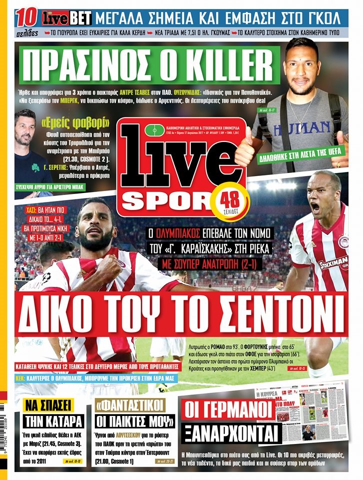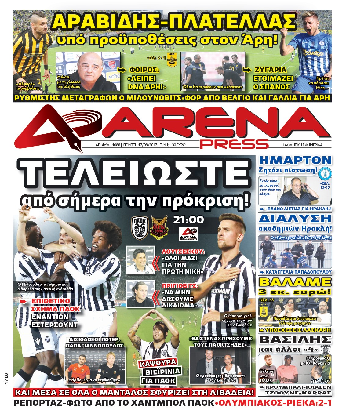 Οι αθλητικές εφημερίδες 17/8/2017 Enikos Newsroom 07:31, Πέμπτη 17 Αυγούστου 2017 Media Διαβάστε τα σημερινά πρωτοσέλιδα των αθλητικών εφημερίδων: ΑΘΛΗΤΙΚΕΣ ΕΦΗΜΕΡΙΔΕΣ ΠΡΩΤΟΣΕΛΙΔΑ Μοιράσου το: σχολίασε κι εσύ (0 σχόλια) Ακολουθήστε το enikos.gr στο Google News και μάθετε πρώτοι όλες τις ειδήσεις Δείτε όλες τις τελευταίες ειδήσεις από την Ελλάδα και τον Κόσμο στο enikos.gr Ειδήσεις Ροή Ειδήσεων 26 λεπτά πριν Μεσόγειος: Η διαδρομή του ρωσικού τάνκερ «Qendil» και η στοχευμένη επίθεση της Ουκρανίας με drone – Ο Πούτιν προειδοποίησε για αντίποινα 2 ημέρες πριν 20 χρόνια τα Χριστούγεννα ξεκινούν στα Public με μεγάλη ποικιλία σε δώρα! 1 ώρα πριν Από το Ορμένιο ως τα Μάλγαρα κι από τη Σιάτιστα μέχρι τη Νίκαια: Μπλόκα σε όλη την Ελλάδα – Το Σάββατο ανοίγουν τα διόδια οι αγρότες 1 ώρα πριν «Έλληνας Εσκομπάρ»: Φωτογραφίες με τους 4 τόνους κοκαΐνης που κατασχέθηκαν από το σκάφος «Ουρανία» 3 ώρες πριν Πούτιν: Σαρκαστικά μηνύματα, παράπονα και απρόοπτα στη συνέντευξη Τύπου – Η πρόταση γάμου on air και οι ερωτήσεις για τα αγγούρια και τους… εξωγήινους 2 ώρες πριν Τα 5 ζώδια που ευνοούνται στην ερωτική ζωή τους την επόμενη εβδομάδα – «Η ενέργεια του Αιγόκερου φέρνει αγάπη και σταθερότητα» 7 ώρες πριν Γεμάτος νεροχύτης; 5 σοβαρές ευθύνες που «φοβίζουν» όσους αφήνουν άπλυτα πιάτα 6 ώρες πριν Ειδικός μοιράζεται 6 κόλπα για να διατηρείστε σε φόρμα με πάνω από 40 ώρες εργασίας την εβδομάδα: «Προπονηθείτε πριν από τη δουλειά, όχι μετά» 20 λεπτά πριν Αττική: Θρίλερ με νεκρό βρέφος 5 μηνών – Κοιμόταν στο ίδιο κρεβάτι με τους γονείς του 6 λεπτά πριν Κερατσίνι: Αστυνομικός εκτός υπηρεσίας απέτρεψε κλοπή μηχανών – Συνελήφθησαν τρεις ανήλικοι 9 λεπτά πριν Το σόι σου: Ο Άρης έρχεται στην Ελλάδα για τις γιορτές των Χριστουγέννων – Τι θα δούμε στο αποψινό εορταστικό επεισόδιο 16 λεπτά πριν ΠΑΣΟΚ σε Μαρινάκη: Δεν νομιμοποιούμε πολιτικές επιλογές που μεταφέρουν το πρόβλημα από υπηρεσία σε υπηρεσία 20 λεπτά πριν Αττική: Θρίλερ με νεκρό βρέφος 5 μηνών – Κοιμόταν στο ίδιο κρεβάτι με τους γονείς του 26 λεπτά πριν Μεσόγειος: Η διαδρομή του ρωσικού τάνκερ «Qendil» και η στοχευμένη επίθεση της Ουκρανίας με drone – Ο Πούτιν προειδοποίησε για αντίποινα ENIKOS NETWORK «Η σούπερ» γρίπη εξαπλώνεται στην Ευρώπη-Στοιχεία για την αποτελεσματικότητα του εμβολίου από το ECDC ΕΛΣΤΑΤ: Αύξηση κατά 1,7% των επαγγελματιών υγείας το 2024 Η απάντηση της κυβέρνησης στα αιτήματα των αγροτών: 16 έχουν ικανοποιηθεί, 4 βρίσκονται υπό επεξεργασία και 7 δεν είναι εφι... Μισθολογική διαφάνεια: Το 68% των εργαζομένων αγνοεί τη νέα οδηγία – Αναλυτικά τα στοιχεία έρευνας Χαρτογραφώντας το «σημείο χωρίς επιστροφή»: Για πρώτη φορά αποκαλύπτεται με λεπτομέρεια το ακανθώδες όριο της ατμόσφαιρας τ... Η Google καταργεί τη λειτουργία «dark web report» – Πώς θα μπορούν οι χρήστες να διαγράφουν τα δεδομένα τους περισσότερα 18:11 , Παρασκευή 19 Δεκεμβρίου 2025 Το σόι σου: Ο Άρης έρχεται στην Ελλάδα για τις γιορτές των Χριστουγέννων – Τι θα δούμε στο αποψινό εορταστικό επεισόδιο Ένα απολαυστικό, εορταστικό επεισόδιο της σειράς “Το σόι σου”, γεμάτο ευτράπελα αλ... 15:15 , Παρασκευή 19 Δεκεμβρίου 2025 Την Κυριακή με τη Realnews: Ό,τι και αν αγοράσεις, σκανάρεις και κερδίζεις! Την Κυριακή με τη Realnews: Ό,τι και αν αγοράσεις, σκανάρεις και κερδίζεις! Με το PADU app, το... 08:00 , Παρασκευή 19 Δεκεμβρίου 2025 Την Κυριακή με τη Realnews: Δωροεπιταγή 10€ Δωροεπιταγή αξίας 10€ για αγορές άνω των 60€ από τα πολυκαταστήματα FactoryOutlet H προσφορά