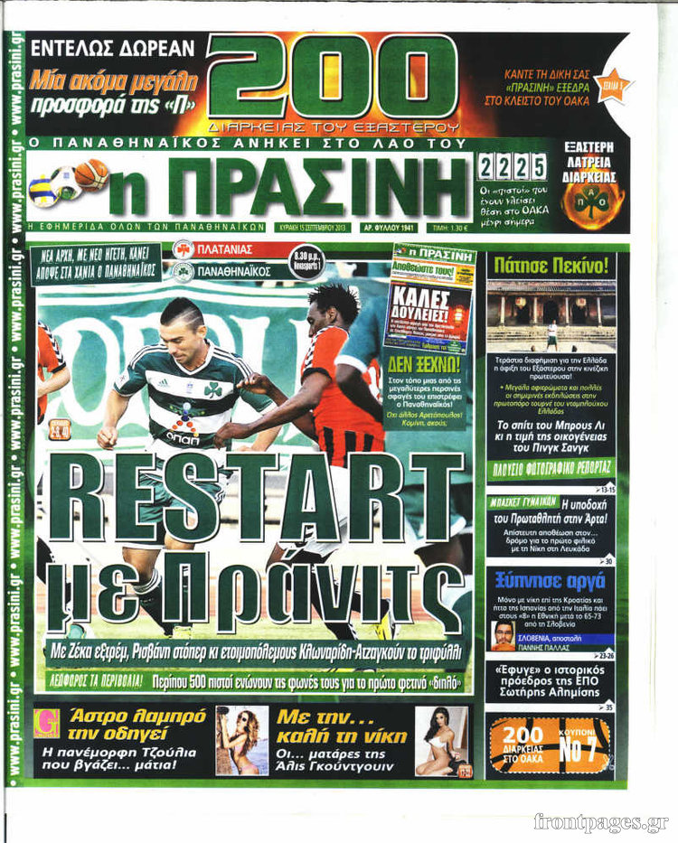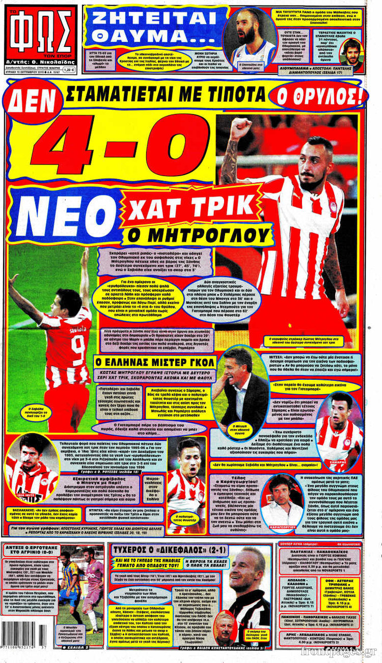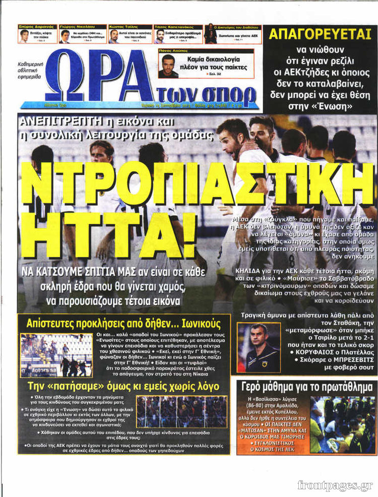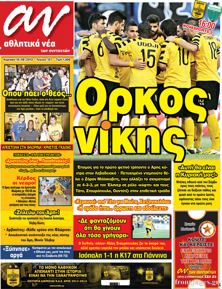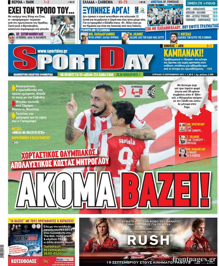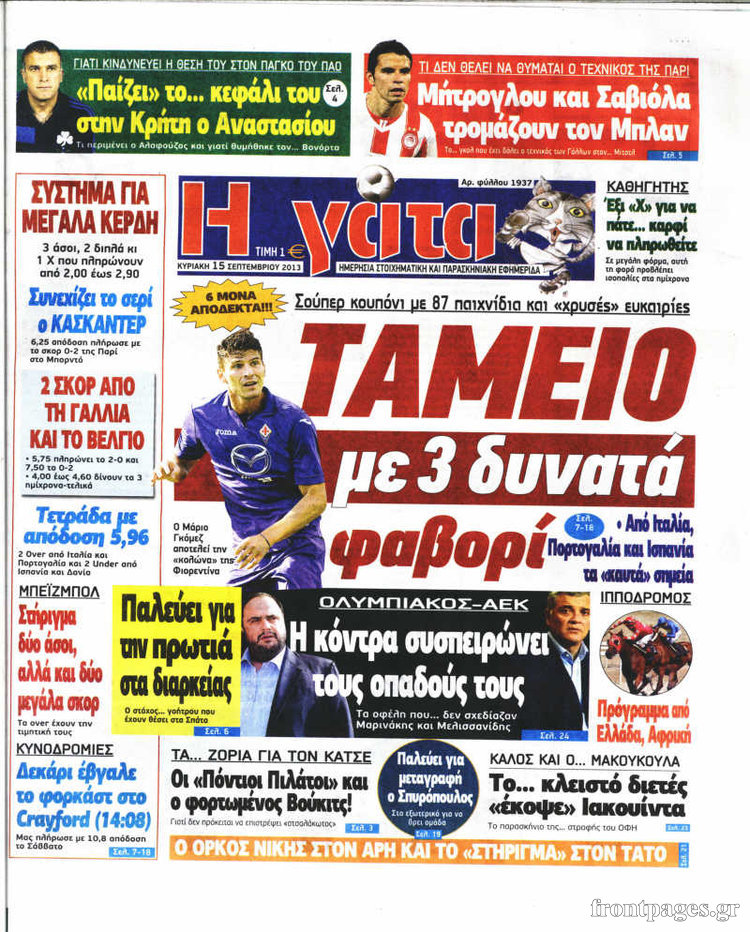 Οι αθλητικές εφημερίδες Enikos Newsroom 08:27, Κυριακή 15 Σεπτεμβρίου 2013 Media Οι αθλητικές εφημερίδες ΑΘΛΗΤΙΚΕΣ ΕΦΗΜΕΡΙΔΕΣ ΕΦΗΜΕΡΙΔΕΣ Μοιράσου το: σχολίασε κι εσύ (0 σχόλια) Ακολουθήστε το enikos.gr στο Google News και μάθετε πρώτοι όλες τις ειδήσεις Δείτε όλες τις τελευταίες ειδήσεις από την Ελλάδα και τον Κόσμο στο enikos.gr Ειδήσεις Ροή Ειδήσεων 2 ώρες πριν Δημοσκόπηση Metron Analysis: Στις 10 μονάδες η διαφορά ΝΔ-ΠΑΣΟΚ, στην 3η θέση η Πλεύση Ελευθερίας – 8 στους 10 στηρίζουν τον αγώνα των αγροτών 6 ώρες πριν Αγρότες: «Όχι στον διάλογο, μας εμπαίζει η κυβέρνηση» – Αποφάσισαν κλιμάκωση των κινητοποιήσεων, τι θα γίνει τα Χριστούγεννα 2 ώρες πριν Νίκος Παππάς στον ΑΝΤ1: «Δεν κρύβομαι – Μετά το συμβάν ακολούθησα κανονικά το πρόγραμμά μου» – ΒΙΝΤΕΟ 3 ώρες πριν Αθήνα: Εξαρθρώθηκε εγκληματική οργάνωση που διακινούσε ναρκωτικά σε μορφή σοκολάτας – Δύο τράπερ ανάμεσα στους 4 συλληφθέντες – ΒΙΝΤΕΟ 2 ώρες πριν Διαμαντής Καραναστάσης: Οδηγούσε υπό την επήρεια αλκοόλ – Του αφαιρέθηκε το δίπλωμα και του επιβλήθηκε πρόστιμο 350 ευρώ 2 ώρες πριν Manifesting: Πώς να συναντήσετε τον σύντροφο της ζωής σας, ανάλογα με τον μήνα γέννησής σας 4 ώρες πριν Γάμος: 11 ψυχρές αλλά ευγενικές φράσεις, που λέει ένας άνδρας όταν σκέφτεται τον χωρισμό 3 ώρες πριν Σφουγγάρισμα: Η συνήθεια που θα σας βοηθήσει να διατηρήσετε το σπίτι σας καθαρό και τακτοποιημένο 2 ημέρες πριν 20 χρόνια τα Χριστούγεννα ξεκινούν στα Public με μεγάλη ποικιλία σε δώρα! 3 λεπτά πριν Στο ΟΑΚΑ για το «Παναθηναϊκός – Χάποελ » η Κίμπερλι Γκίλφοϊλ – ΦΩΤΟ 10 λεπτά πριν Ούρσουλα φον ντερ Λάιεν: Μετατίθεται για τον Ιανουάριο η υπογραφή της εμπορικής συμφωνίας «ΕΕ-MERCOSUR» 15 λεπτά πριν Φοινικούντα: Το Σάββατο απολογείται ο 30χρονος γιος γνωστού επιχειρηματία της Πλάκας που παραδόθηκε – Όσα είπε στους αστυνομικούς και ο ρόλος του στο έγκλημα 25 λεπτά πριν Αυξάνουν την πίεση προς την κυβέρνηση οι αγρότες: Κλείνουν παρακαμπτήριους και ανοίγουν διόδια – Τι θα γίνει τις γιορτές 30 λεπτά πριν Ελισάβετ Κωνσταντινίδου για τον Γεράσιμο Μιχελή και την Πόπη Χριστοδούλου: «Ξέρω ότι έχουν πάει απλώς κάπου αλλού, ότι δεν είναι ο θάνατος έτσι όπως τον έχουμε στο μυαλό μας» ENIKOS NETWORK Σε περίοδο αυξημένης δραστηριότητας η γρίπη στην Ελλάδα-Μέτρα προστασίας από τον ΕΟΔΥ Σκέφτεστε συνέχεια συζητήσεις που έχετε κάνει; Τι σημαίνει αυτό, σύμφωνα με ειδικό Λαγκάρντ: Αισιόδοξη για την ανάπτυξη της Ευρωζώνης, αβέβαιη για τον πληθωρισμό ΑΣΕΠ 2ΓΒ/2025: Σήμερα αρχίζει η υποβολή ενστάσεων – Πότε θα βγουν τα οριστικά αποτελέσματα Χαρτογραφώντας το «σημείο χωρίς επιστροφή»: Για πρώτη φορά αποκαλύπτεται με λεπτομέρεια το ακανθώδες όριο της ατμόσφαιρας τ... Η Google καταργεί τη λειτουργία «dark web report» – Πώς θα μπορούν οι χρήστες να διαγράφουν τα δεδομένα τους περισσότερα 17:45 , Πέμπτη 18 Δεκεμβρίου 2025 ROUK ZOUK: Εορταστικό επεισόδιο με καλεσμένους τους πρωταγωνιστές του «Γιατί ρε πατέρα» Το Σάββατο 20 Δεκεμβρίου στις 21:00, η Ζέτα Μακρυπούλια υποδέχεται εκλεκτούς ηθοποιούς που όλο... 17:20 , Πέμπτη 18 Δεκεμβρίου 2025 Άγιος έρωτας: Η Χριστίνα εξομολογείται στον πατέρα Νικόλαο, απόψε στις 21:00 στον Alpha Η Νότα αποφασίζει να εκδικηθεί τον Πέτρο και τον Στέφανο, για χάρη του Λούη, όμως τα πράγματα ... 16:50 , Πέμπτη 18 Δεκεμβρίου 2025 Να μ’ αγαπάς: Ζωή και Φωτεινή συμφιλιώνονται ως μάνα με κόρη, απόψε στις 20:00 Η ταυτότητα του Άγγελου αποκαλύπτεται στο νέο επεισόδιο της σειράς “Να μ’ αγαπάς... 15:52 , Πέμπτη 18 Δεκεμβρίου 2025 Το