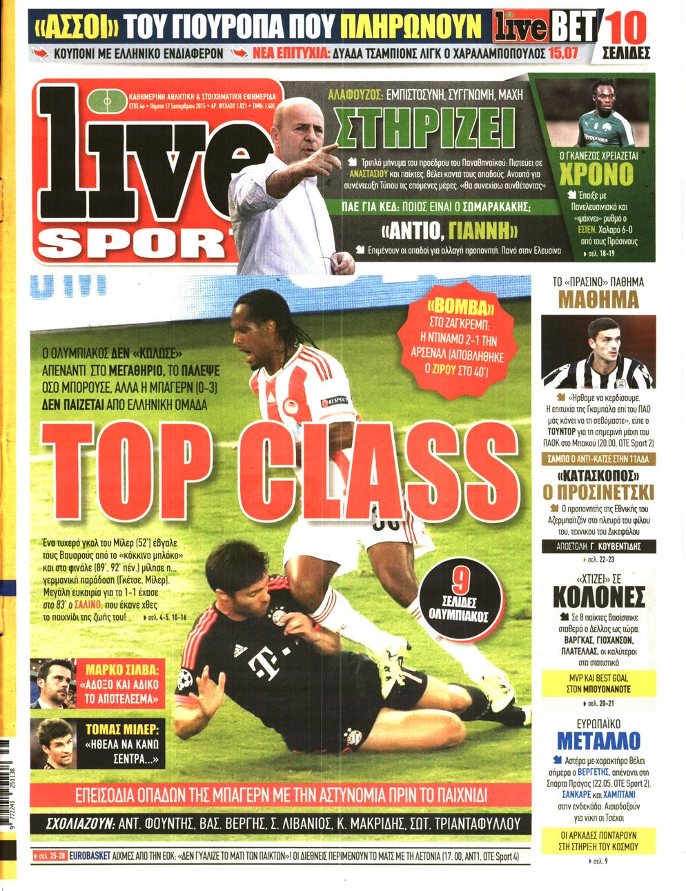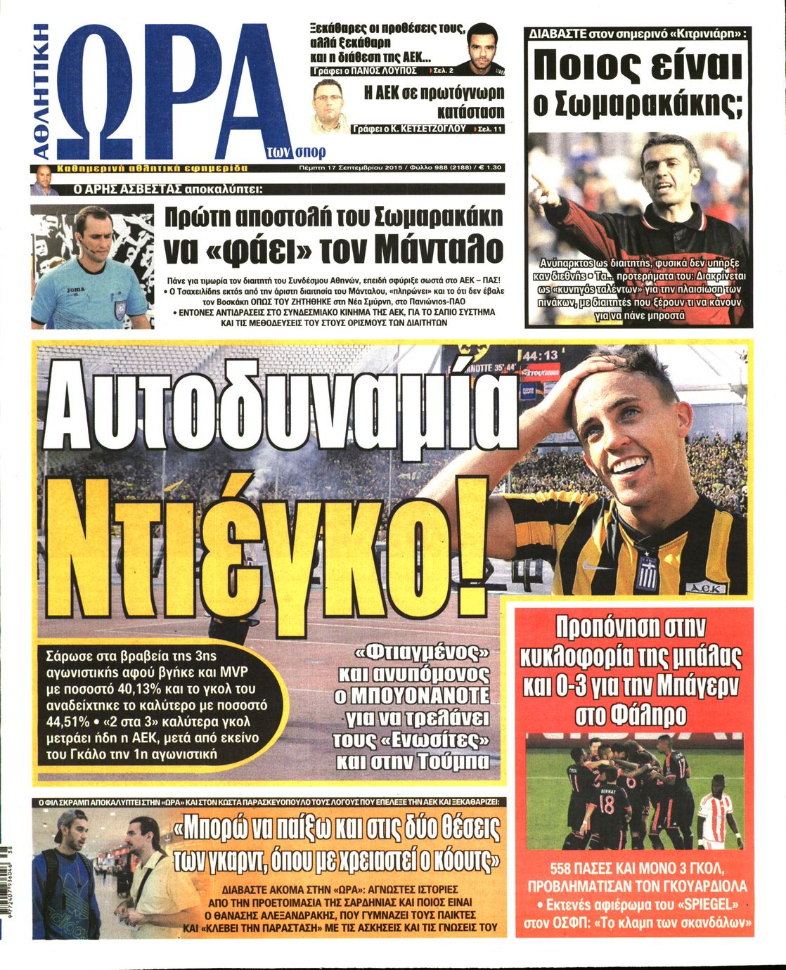 Οι αθλητικές εφημερίδες 17/9/2015 Enikos Newsroom 07:55, Πέμπτη 17 Σεπτεμβρίου 2015 Media Διαβάστε τα σημερινά πρωτοσέλιδα των αθλητικών εφημερίδων. ΑΘΛΗΤΙΚΕΣ ΕΦΗΜΕΡΙΔΕΣ ΕΞΩΦΥΛΛΑ ΕΦΗΜΕΡΙΔΕΣ ΠΡΩΤΟΣΕΛΙΔΑ Μοιράσου το: σχολίασε κι εσύ (0 σχόλια) Ακολουθήστε το enikos.gr στο Google News και μάθετε πρώτοι όλες τις ειδήσεις Δείτε όλες τις τελευταίες ειδήσεις από την Ελλάδα και τον Κόσμο στο enikos.gr Ειδήσεις Ροή Ειδήσεων 46 λεπτά πριν Αυστραλία: Σχέσεις με το ISIS εκτιμάται πως είχαν οι δράστες της τρομοκρατικής επίθεσης στο Σίδνεϊ 52 λεπτά πριν Αγρότες: Αμετακίνητοι από τα μπλόκα σε τελωνεία και εθνικές οδούς – Ο χάρτης των κινητοποιήσεων και τα αιτήματά τους 57 λεπτά πριν Σοκ στο Χόλιγουντ: Νεκροί από μαχαιριές ο σκηνοθέτης Ρομπ Ράινερ και η σύζυγός του – Αναφορές ότι τους σκότωσε ο γιος τους 1 ώρα πριν Δολοφονία στη Φοινικούντα: Απολογούνται σήμερα οι δύο συλληφθέντες – Στο «κάδρο» και δύο γυναίκες 2 ώρες πριν Δάνεια σε ελβετικό φράγκο: Ανακοινώνεται η ρύθμιση – Ποιοι και πόσο όφελος θα έχουν 1 ώρα πριν Κάτω από παλάτι κρυβόταν ένα άλλο μνημειώδες ανάκτορο: Οι ανασκαφές σε αρχαία πόλη αποκάλυψαν τα ερείπια και τα μυστικά του 3 ώρες πριν Οπτική ψευδαίσθηση: Μόνο το 1% των ανθρώπων θα βρει το ψάρι σε 12 δευτερόλεπτα 3 ώρες πριν Διατροφή: Γιατρός προειδοποιεί για 2 απλά λάθη που αυξάνουν τον κίνδυνο χρόνιων παθήσεων 4 ώρες πριν Τα ζώδια σήμερα, Δευτέρα 15 Δεκεμβρίου: Ιχθύες, ξεκινήστε από εκεί που η παρουσία σας έχει σημασία 2 λεπτά πριν Θρίλερ στη Φοινικούντα: Ετοίμαζαν τη δολοφονία από το 2022 7 λεπτά πριν Κληρονόμησε 2,8 εκατ. ευρώ και φοβάται ότι οι άνδρες θα την πλησιάζουν για τα λεφτά – «Μήπως καλύτερα να το κρατήσω μυστικό;» 12 λεπτά πριν Τι αλλάζει σε διαθήκες και περιουσιακές διεκδικήσεις 17 λεπτά πριν Αγρότες: Κλειστή η εθνική οδός Αθηνών – Θεσσαλονίκης στο ύψος της Νίκαιας – Κινητοποίηση στην πλατεία της Λάρισας 21 λεπτά πριν Τρόμος στην Κηφισιά: Ανήλικος ληστής έκανε κεφαλοκλείδωμα σε γυναίκα υπάλληλο φούρνου και άρπαξε χρήματα – ΒΙΝΤΕΟ ENIKOS NETWORK Έχετε καλή φυσική κατάσταση; Δείτε αν μπορείτε να κάνετε αυτές τις 5 κινήσεις 21χρονη που έγινε αγνώριστη χάνοντας 45 κιλά αποκαλύπτει το πρωινό που καίει λίπος Δάνεια σε ελβετικό φράγκο: Ανακοινώνεται η ρύθμιση- Ποιοι και πόσο θα έχουν όφελος – Όλες οι λεπτομέρειες Τέλος οι διώξεις για χρέη σε Εφορία και ΕΦΚΑ – Τι προβλέπει νέα διάταξη μετά την πτώχευση Σύγχρονος Νοστράδαμος: Προειδοποιεί για «μεγάλο γεγονός» τους επόμενους μήνες που θα συγκλονίσει τη Βρετανία και τον κόσμο Τεστ παρατηρητικότητας: Μπορείτε να βρείτε τις 3 διαφορές στις εικόνες με έναν πιγκουίνο σε 14 δευτερόλεπτα περισσότερα 07:42 , Δευτέρα 15 Δεκεμβρίου 2025 Την Κυριακή με τη Realnews: Δωροεπιταγή10€ Δωροεπιταγή αξίας 10€ για αγορές άνω των 60€ από τα πολυκαταστήματα FactoryOutlet H προσφορά ι... 07:17 , Δευτέρα 15 Δεκεμβρίου 2025 Αυτή την Κυριακή με τη Realnews: Instyle, μαζί Drive και Realnews Geopolitics Αυτή την Κυριακή με τη Realnews: Instyle, μαζί Drive και Realnews Geopolitics Instyle Η Άννα Ρ... 05:49 , Δευτέρα 15 Δεκεμβρίου 2025 Οι οικονομικές εφημερίδες 15/12/2025 Διαβάστε τα πρωτοσέλιδα από τις οικονομικές εφημερίδες, σήμερα 15/12/2025. 05:43 , Δευτέρα 15 Δεκεμβρίου 2025 Οι αθλητικές εφημερίδες 15/12/2025 Διαβάστε τα πρωτοσέλιδα από τις αθλητικές εφημερίδες, σήμερα 15/12/2025. ΤΕΛΕΥΤΑΙΕΣ ΕΙΔΗΣΕΙΣ 7 λεπτά πριν Κληρονόμησε 2,8 εκατ. ευρώ και φοβάται ότι οι άνδρες θα... 12 λεπτά πριν Τι αλλάζει σε διαθήκες και περιουσιακές διεκδικήσεις 17 λεπτά πριν Αγρότες: Κλεισ