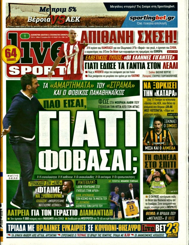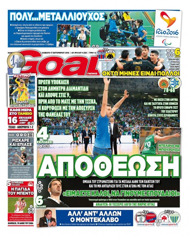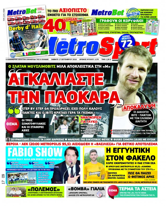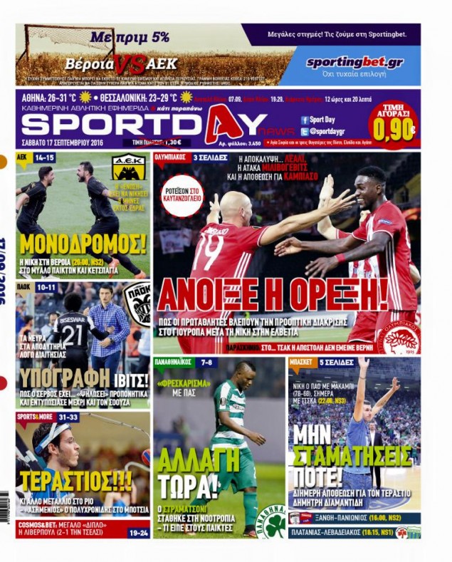 Οι αθλητικές εφημερίδες 17/9/2016 Enikos Newsroom 04:40, Σάββατο 17 Σεπτεμβρίου 2016 Media Διαβάστε τα σημερινά πρωτοσέλιδα των αθλητικών εφημερίδων: ΑΘΛΗΤΙΚΕΣ ΕΦΗΜΕΡΙΔΕΣ ΠΡΩΤΟΣΕΛΙΔΑ Μοιράσου το: σχολίασε κι εσύ (0 σχόλια) Ακολουθήστε το enikos.gr στο Google News και μάθετε πρώτοι όλες τις ειδήσεις Δείτε όλες τις τελευταίες ειδήσεις από την Ελλάδα και τον Κόσμο στο enikos.gr Ειδήσεις Ροή Ειδήσεων 3 ώρες πριν Υπόθεση Έπσταϊν: Το Υπουργείο Δικαιοσύνης δημοσιοποίησε μια σειρά από εξαιρετικά επεξεργασμένα αρχεία – «Λείπουν τα πιο σημαντικά έγγραφα», λένε οι Δημοκρατικοί 14 λεπτά πριν Γιορτές με μπλόκα για τους αγρότες: Ανοίγουν διόδια και μοιράζουν προϊόντα στους ταξιδιώτες 46 λεπτά πριν Εξαφάνιση 33χρονου γιατρού στην Κρήτη: «Άναψα τα φώτα, τρόμαξε και άρχισε να τρέχει στα χωράφια» – Η τελευταία διαδρομή και η μαρτυρία «κλειδί» 2 ώρες πριν Ο «χάρτης» με τις αυξήσεις και τις φοροελαφρύνσεις του 2026 – Ποιοι και πόσα κερδίζουν 30 λεπτά πριν Τα αρχεία του Έπσταϊν αποκαλύπτουν φωτογραφία του έκπτωτου πρίγκιπα Άντριου – Είναι ξαπλωμένος στην αγκαλιά 5 γυναικών 37 λεπτά πριν Μία νέα «χρυσή» περίοδος αρχίζει για 3 ζώδια από σήμερα – «Μία αναπάντεχη ευκαιρία οδηγεί στην επιτυχία» 5 ώρες πριν Αυγά: Πόσα μπορείτε να τρώτε την ημέρα με ασφάλεια για μέγιστη πρόσληψη πρωτεΐνης 3 ώρες πριν Αρχαιολόγοι ανακάλυψαν σε χωράφι απεικόνιση 600 ετών ενός Αγίου – Τα στοιχεία που δείχνουν ότι μαρτύρησε 2 ώρες πριν Αγχώνεται για το χριστουγεννιάτικο δώρο που πήρε στην πλούσια σύντροφό του – «Φοβάμαι πως θα το βρει φθηνιάρικο, φοράει βραχιόλια Cartier» 6 λεπτά πριν e-ΕΦΚΑ και ΔΥΠΑ: Οι πληρωμές από 22 έως 24 Δεκεμβρίου – Ποιοι θα δουν χρήματα στους λογαριασμούς τους 14 λεπτά πριν Συνελήφθη οδηγός μηχανής που έτρεχε με 161 χλμ στη Συγγρού – Τον έπιασε το ραντάρ της Τροχαίας 14 λεπτά πριν Γιορτές με μπλόκα για τους αγρότες: Ανοίγουν διόδια και μοιράζουν προϊόντα στους ταξιδιώτες 22 λεπτά πριν Τηλεθέαση (19/12): Κυριάρχησε η σειρά «Το σόι σου» – Τι νούμερα έκανε ο τελικός του GNTM 30 λεπτά πριν Τα αρχεία του Έπσταϊν αποκαλύπτουν φωτογραφία του έκπτωτου πρίγκιπα Άντριου – Είναι ξαπλωμένος στην αγκαλιά 5 γυναικών ENIKOS NETWORK Είστε μόνιμα απρόσεκτοι; 3 σημάδια που δείχνουν ότι μπορεί να είναι σύμπτωμα πάθησης Πόσα κιλά παίρνουμε πραγματικά τα Χριστούγεννα, σύμφωνα με την επιστήμη – Πώς να το αποτρέψουμε; Επίδομα παιδιού: Τι αλλάζει από το 2026 – Το όφελος από τις φορολογικές ελαφρύνσεις Mega χριστουγεννιάτικη φορολοταρία: «Κλείδωσε» η ημερομηνία για την κλήρωση – Ερωτήσεις και απαντήσεις Χαρτογραφώντας το «σημείο χωρίς επιστροφή»: Για πρώτη φορά αποκαλύπτεται με λεπτομέρεια το ακανθώδες όριο της ατμόσφαιρας τ... Η Google καταργεί τη λειτουργία «dark web report» – Πώς θα μπορούν οι χρήστες να διαγράφουν τα δεδομένα τους περισσότερα 09:30 , Σάββατο 20 Δεκεμβρίου 2025 «Porto Leone: Στη γειτονιά με τα κόκκινα φανάρια» – Ο Χρόνης αποκαλύπτει στην Αλεξάνδρα το μυστικό για το παιδί της Λένας Η μεγάλη δραματική σειρά του Apha «Porto Leone: Στη γειτονιά με τα κόκκινα φανάρια» μας μεταφέ... 08:14 , Σάββατο 20 Δεκεμβρίου 2025 Τρομεροί γονείς: Η Μαρία Καβογιάννη εισβάλλει στο σπίτι της οικογένειας Στεφανίδη Όσα θα δούμε στο νέο διπλό επεισόδιο της σειράς «Τρομεροί γονείς», σήμερα Σάββατο 20 Δεκεμβρίο... 05:48 , Σάββατο 20 Δεκεμβρίου 2025 Οι οικονομικές εφημερίδες 20/12/2025 Διαβάστε τα πρωτοσέλιδα από τις οικονομικές εφημερίδες, σήμερα 20/12/2025. 05:43 , Σάββατο 20 Δεκεμβρίου 2025 Οι αθλη
