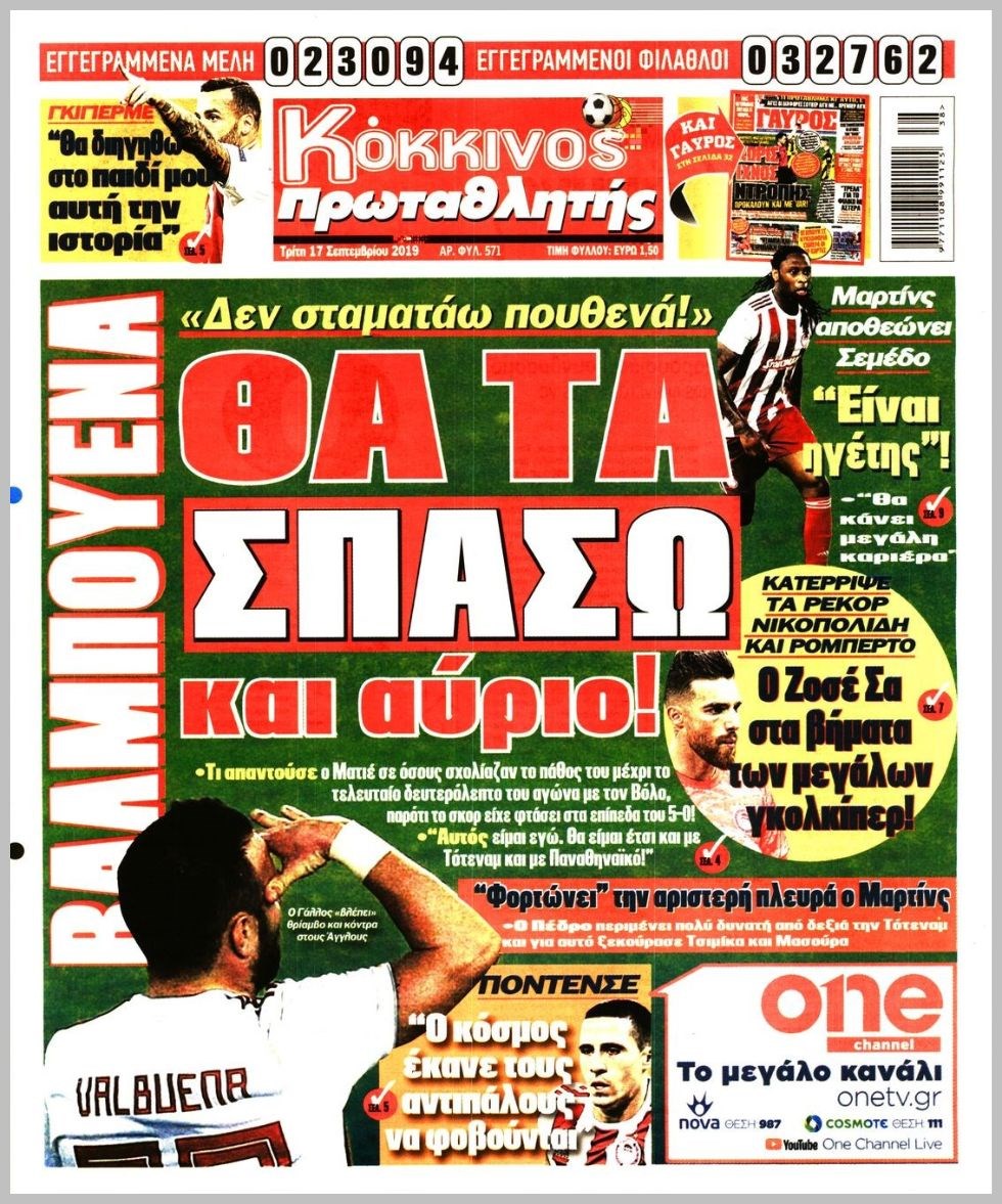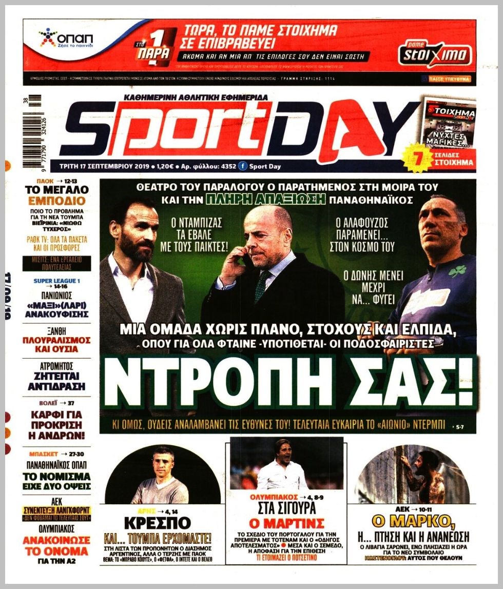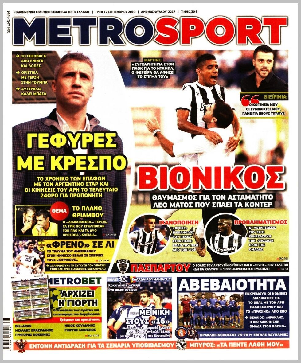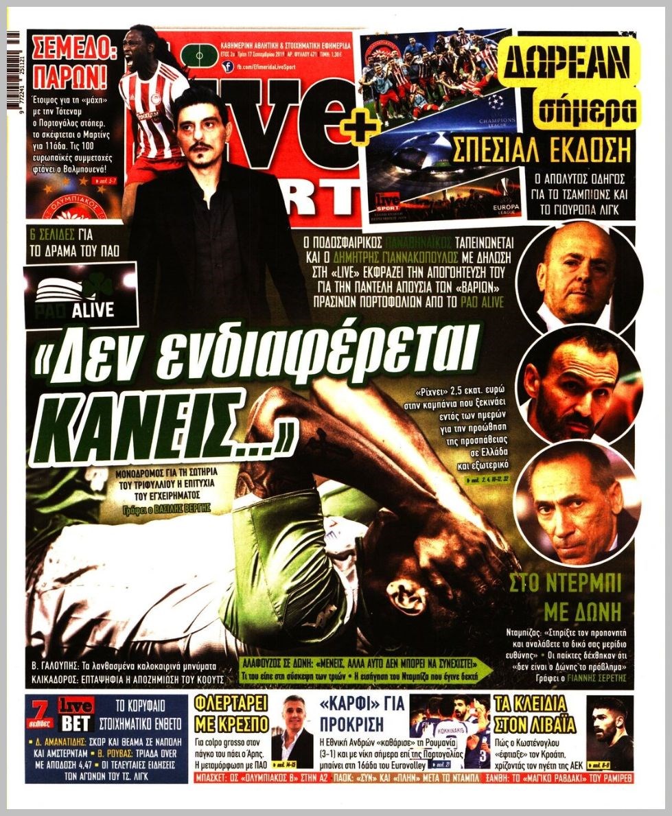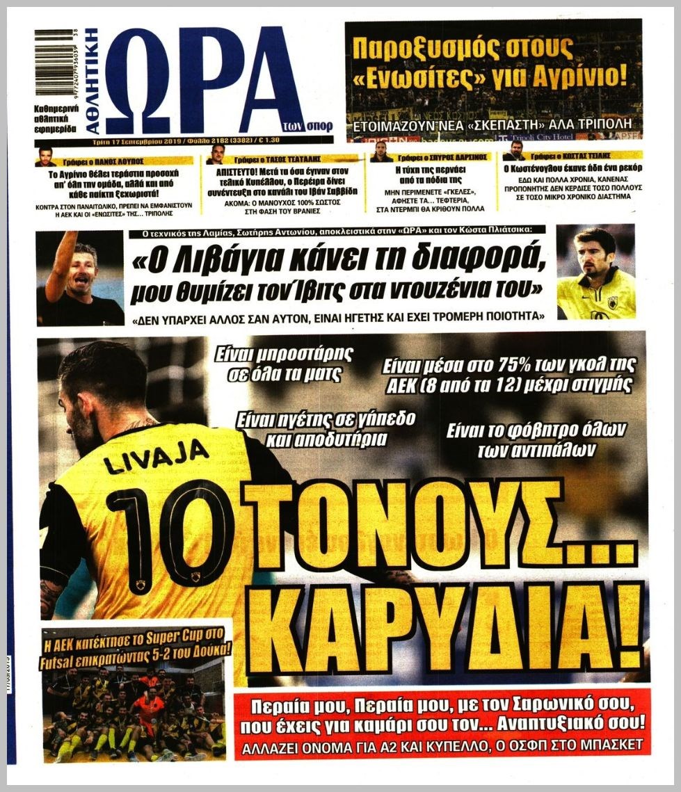 Οι αθλητικές εφημερίδες 17/9/2019 Διονύσης Νίκκας 06:42, Τρίτη 17 Σεπτεμβρίου 2019 Media Διαβάστε τα πρωτοσέλιδα των αθλητικών εφημερίδων… ΑΘΛΗΤΙΚΕΣ ΕΦΗΜΕΡΙΔΕΣ Μοιράσου το: σχολίασε κι εσύ (0 σχόλια) Ακολουθήστε το enikos.gr στο Google News και μάθετε πρώτοι όλες τις ειδήσεις Δείτε όλες τις τελευταίες ειδήσεις από την Ελλάδα και τον Κόσμο στο enikos.gr Ειδήσεις Ροή Ειδήσεων 2 ώρες πριν Αυξάνουν την πίεση προς την κυβέρνηση οι αγρότες: Κλείνουν παρακαμπτήριους και ανοίγουν διόδια – Τι θα γίνει τις γιορτές 42 λεπτά πριν ΟΠΕΚΕΠΕ: Προφυλακιστέος ο φερόμενος αρχηγός και ο λογιστής της εγκληματικής οργάνωσης 2 ώρες πριν Φοινικούντα: Το Σάββατο απολογείται ο 30χρονος γιος γνωστού επιχειρηματία της Πλάκας που παραδόθηκε – Όσα είπε στους αστυνομικούς και ο ρόλος του στο έγκλημα 1 ώρα πριν Μπορεί ο Μαδούρο να αντέξει τον αποκλεισμό του Τραμπ; Τι θα χρειαστεί η Ουάσινγκτον για να τον ανατρέψει 3 ώρες πριν Πρίγκιπας Ουίλιαμ – Κέιτ: Η νέα οικογενειακή φωτογραφία για τις Χριστουγεννιάτικες κάρτες του 2025 2 ώρες πριν Ύπνος: Η απλή βραδινή ρουτίνα για να προστατεύσετε τα μαλλιά σας από το κρύο κατά τη διάρκεια του χειμώνα 3 ώρες πριν Manifesting: Πώς να συναντήσετε τον σύντροφο της ζωής σας, ανάλογα με τον μήνα γέννησής σας 2 ημέρες πριν 20 χρόνια τα Χριστούγεννα ξεκινούν στα Public με μεγάλη ποικιλία σε δώρα! 1 ώρα πριν Αρχαιολόγοι ανακάλυψαν ρωμαϊκά τεχνουργήματα από μια πόλη που δεν υπήρξε ποτέ – Τα τρία εντυπωσιακά κτίρια και ο αμφορέας με τις… σαρδέλες 22 λεπτά πριν ΑΕΚ – Κραϊόβα 3-2: Επική ανατροπή και πρόκριση στους «16» του Conference League η Ένωση 42 λεπτά πριν ΟΠΕΚΕΠΕ: Προφυλακιστέος ο φερόμενος αρχηγός και ο λογιστής της εγκληματικής οργάνωσης 53 λεπτά πριν Αθηνά Μαξίμου: Η τρυφερή ανάρτηση για τα γενέθλια του Αιμίλιου Χειλάκη – «Είναι η εκλεκτική συγγένειά μου, η επιλογή και η ευθύνη μου» 1 ώρα πριν Παναθηναϊκός – Χάποελ Τελ Αβίβ 93-82: Με… φόρα από την Κωνσταντινούπολη 1 ώρα πριν Μπορεί ο Μαδούρο να αντέξει τον αποκλεισμό του Τραμπ; Τι θα χρειαστεί η Ουάσινγκτον για να τον ανατρέψει ENIKOS NETWORK Σε περίοδο αυξημένης δραστηριότητας η γρίπη στην Ελλάδα-Μέτρα προστασίας από τον ΕΟΔΥ Σκέφτεστε συνέχεια συζητήσεις που έχετε κάνει; Τι σημαίνει αυτό, σύμφωνα με ειδικό Στεγαστικό: Τι λέει η ΠΟΜΙΔΑ για τα νέα μέτρα που ανακοίνωσε ο Κυριάκος Μητσοτάκης Λαγκάρντ: Αισιόδοξη για την ανάπτυξη της Ευρωζώνης, αβέβαιη για τον πληθωρισμό Χαρτογραφώντας το «σημείο χωρίς επιστροφή»: Για πρώτη φορά αποκαλύπτεται με λεπτομέρεια το ακανθώδες όριο της ατμόσφαιρας τ... Η Google καταργεί τη λειτουργία «dark web report» – Πώς θα μπορούν οι χρήστες να διαγράφουν τα δεδομένα τους περισσότερα 17:45 , Πέμπτη 18 Δεκεμβρίου 2025 ROUK ZOUK: Εορταστικό επεισόδιο με καλεσμένους τους πρωταγωνιστές του «Γιατί ρε πατέρα» Το Σάββατο 20 Δεκεμβρίου στις 21:00, η Ζέτα Μακρυπούλια υποδέχεται εκλεκτούς ηθοποιούς που όλο... 17:20 , Πέμπτη 18 Δεκεμβρίου 2025 Άγιος έρωτας: Η Χριστίνα εξομολογείται στον πατέρα Νικόλαο, απόψε στις 21:00 στον Alpha Η Νότα αποφασίζει να εκδικηθεί τον Πέτρο και τον Στέφανο, για χάρη του Λούη, όμως τα πράγματα ... 16:50 , Πέμπτη 18 Δεκεμβρίου 2025 Να μ’ αγαπάς: Ζωή και Φωτεινή συμφιλιώνονται ως μάνα με κόρη, απόψε στις 20:00 Η ταυτότητα του Άγγελου αποκαλύπτεται στο νέο επεισόδιο της σειράς “Να μ’ αγαπάς... 15:52 , Πέμπτη 18 Δεκεμβρίου 2025 Το Σπίτι Δίπλα Στο Ποτάμι: Το καθηλωτικό τελευταίο επεισόδιο για το 2025 απόψε στις 22:30 Καθηλώνει το σημερινό επεισόδιο της σε