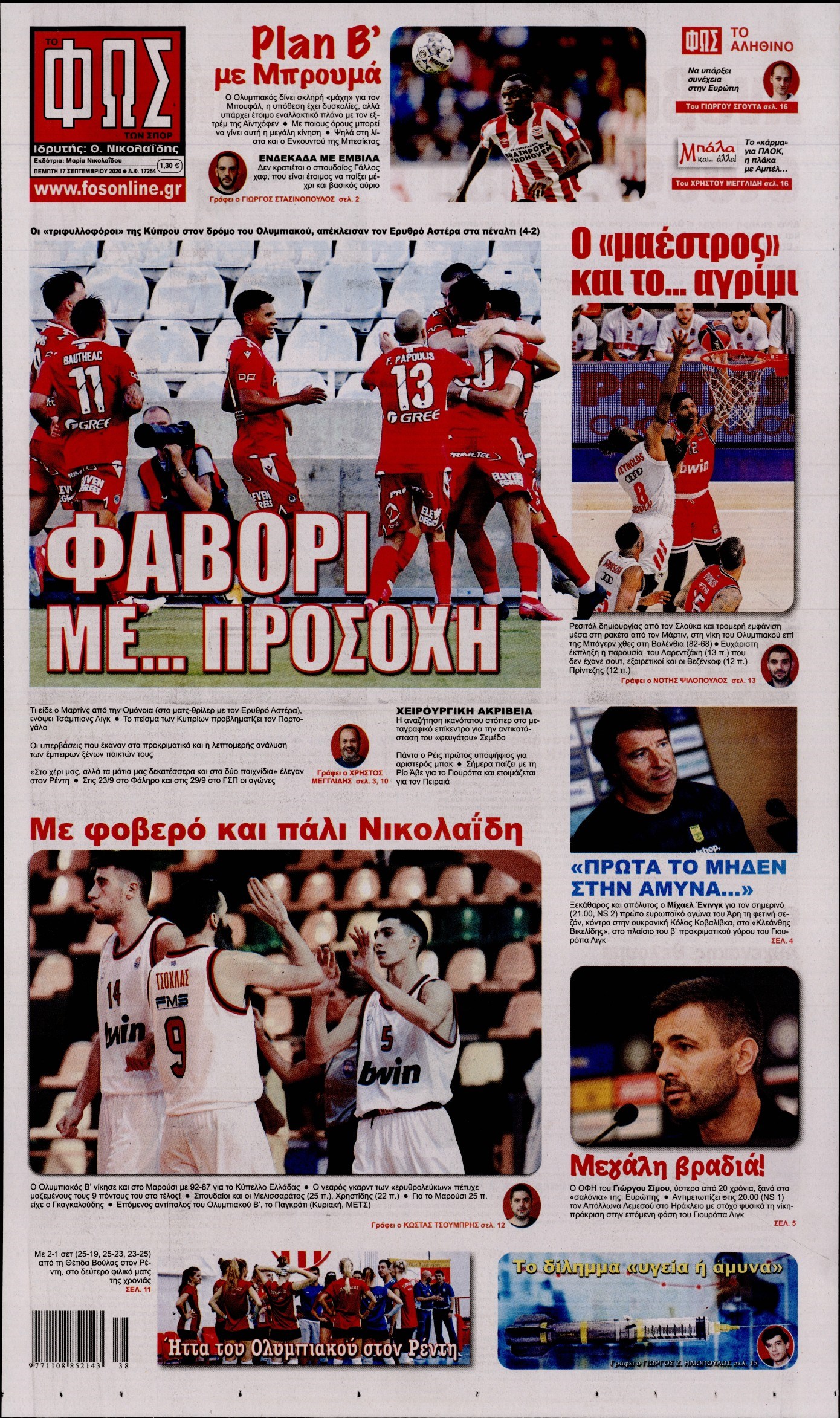 Οι αθλητικές εφημερίδες 17/9/2020 Διονύσης Νίκκας 06:52, Πέμπτη 17 Σεπτεμβρίου 2020 Media Διαβάστε τα πρωτοσέλιδα των αθλητικών εφημερίδων… ΑΘΛΗΤΙΚΕΣ ΕΦΗΜΕΡΙΔΕΣ Μοιράσου το: σχολίασε κι εσύ (0 σχόλια) Ακολουθήστε το enikos.gr στο Google News και μάθετε πρώτοι όλες τις ειδήσεις Δείτε όλες τις τελευταίες ειδήσεις από την Ελλάδα και τον Κόσμο στο enikos.gr Ειδήσεις Ροή Ειδήσεων 3 ώρες πριν Υπόθεση Έπσταϊν: Το Υπουργείο Δικαιοσύνης δημοσιοποίησε μια σειρά από εξαιρετικά επεξεργασμένα αρχεία – «Λείπουν τα πιο σημαντικά έγγραφα», λένε οι Δημοκρατικοί 15 λεπτά πριν Γιορτές με μπλόκα για τους αγρότες: Ανοίγουν διόδια και μοιράζουν προϊόντα στους ταξιδιώτες 48 λεπτά πριν Εξαφάνιση 33χρονου γιατρού στην Κρήτη: «Άναψα τα φώτα, τρόμαξε και άρχισε να τρέχει στα χωράφια» – Η τελευταία διαδρομή και η μαρτυρία «κλειδί» 2 ώρες πριν Ο «χάρτης» με τις αυξήσεις και τις φοροελαφρύνσεις του 2026 – Ποιοι και πόσα κερδίζουν 31 λεπτά πριν Τα αρχεία του Έπσταϊν αποκαλύπτουν φωτογραφία του έκπτωτου πρίγκιπα Άντριου – Είναι ξαπλωμένος στην αγκαλιά 5 γυναικών 38 λεπτά πριν Μία νέα «χρυσή» περίοδος αρχίζει για 3 ζώδια από σήμερα – «Μία αναπάντεχη ευκαιρία οδηγεί στην επιτυχία» 5 ώρες πριν Αυγά: Πόσα μπορείτε να τρώτε την ημέρα με ασφάλεια για μέγιστη πρόσληψη πρωτεΐνης 3 ώρες πριν Αρχαιολόγοι ανακάλυψαν σε χωράφι απεικόνιση 600 ετών ενός Αγίου – Τα στοιχεία που δείχνουν ότι μαρτύρησε 2 ώρες πριν Αγχώνεται για το χριστουγεννιάτικο δώρο που πήρε στην πλούσια σύντροφό του – «Φοβάμαι πως θα το βρει φθηνιάρικο, φοράει βραχιόλια Cartier» 7 λεπτά πριν e-ΕΦΚΑ και ΔΥΠΑ: Οι πληρωμές από 22 έως 24 Δεκεμβρίου – Ποιοι θα δουν χρήματα στους λογαριασμούς τους 15 λεπτά πριν Συνελήφθη οδηγός μηχανής που έτρεχε με 161 χλμ στη Συγγρού – Τον έπιασε το ραντάρ της Τροχαίας 15 λεπτά πριν Γιορτές με μπλόκα για τους αγρότες: Ανοίγουν διόδια και μοιράζουν προϊόντα στους ταξιδιώτες 24 λεπτά πριν Τηλεθέαση (19/12): Κυριάρχησε η σειρά «Το σόι σου» – Τι νούμερα έκανε ο τελικός του GNTM 31 λεπτά πριν Τα αρχεία του Έπσταϊν αποκαλύπτουν φωτογραφία του έκπτωτου πρίγκιπα Άντριου – Είναι ξαπλωμένος στην αγκαλιά 5 γυναικών ENIKOS NETWORK Είστε μόνιμα απρόσεκτοι; 3 σημάδια που δείχνουν ότι μπορεί να είναι σύμπτωμα πάθησης Πόσα κιλά παίρνουμε πραγματικά τα Χριστούγεννα, σύμφωνα με την επιστήμη – Πώς να το αποτρέψουμε; Επίδομα παιδιού: Τι αλλάζει από το 2026 – Το όφελος από τις φορολογικές ελαφρύνσεις Mega χριστουγεννιάτικη φορολοταρία: «Κλείδωσε» η ημερομηνία για την κλήρωση – Ερωτήσεις και απαντήσεις Χαρτογραφώντας το «σημείο χωρίς επιστροφή»: Για πρώτη φορά αποκαλύπτεται με λεπτομέρεια το ακανθώδες όριο της ατμόσφαιρας τ... Η Google καταργεί τη λειτουργία «dark web report» – Πώς θα μπορούν οι χρήστες να διαγράφουν τα δεδομένα τους περισσότερα 09:30 , Σάββατο 20 Δεκεμβρίου 2025 «Porto Leone: Στη γειτονιά με τα κόκκινα φανάρια» – Ο Χρόνης αποκαλύπτει στην Αλεξάνδρα το μυστικό για το παιδί της Λένας Η μεγάλη δραματική σειρά του Apha «Porto Leone: Στη γειτονιά με τα κόκκινα φανάρια» μας μεταφέ... 08:14 , Σάββατο 20 Δεκεμβρίου 2025 Τρομεροί γονείς: Η Μαρία Καβογιάννη εισβάλλει στο σπίτι της οικογένειας Στεφανίδη Όσα θα δούμε στο νέο διπλό επεισόδιο της σειράς «Τρομεροί γονείς», σήμερα Σάββατο 20 Δεκεμβρίο... 05:48 , Σάββατο 20 Δεκεμβρίου 2025 Οι οικονομικές εφημερίδες 20/12/2025 Διαβάστε τα πρωτοσέλιδα από τις οικονομικές εφημερίδες, σήμερα 20/12/2025. 05:43 , Σάββατο 20 Δεκεμβρίου 2025 Οι αθλητικές εφημερίδ