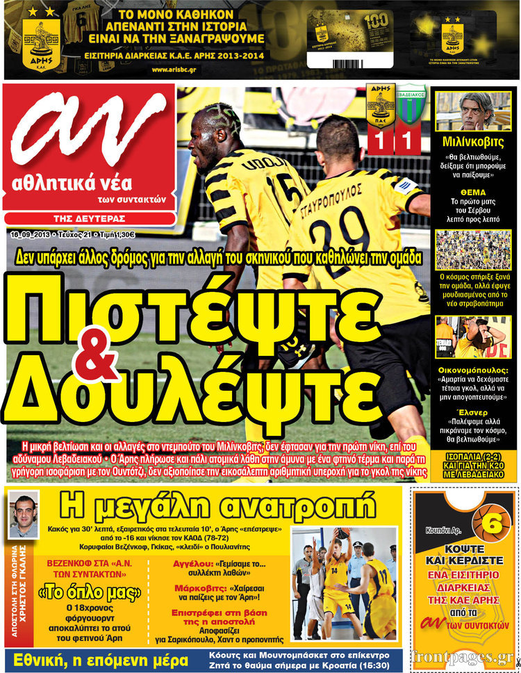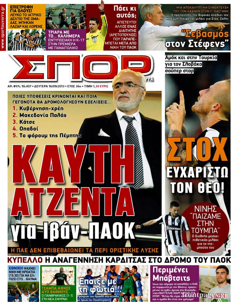 Οι αθλητικές εφημερίδες Enikos Newsroom 08:37, Δευτέρα 16 Σεπτεμβρίου 2013 Media Οι αθλητικές εφημερίδες Διαβάστε τα πρωτοσέλιδα των αθλητικών εφημερίδων: ΑΘΛΗΤΙΚΕΣ ΕΦΗΜΕΡΙΔΕΣ ΕΦΗΜΕΡΙΔΕΣ ΠΡΩΤΟΣΕΛΙΔΑ Μοιράσου το: σχολίασε κι εσύ (0 σχόλια) Ακολουθήστε το enikos.gr στο Google News και μάθετε πρώτοι όλες τις ειδήσεις Δείτε όλες τις τελευταίες ειδήσεις από την Ελλάδα και τον Κόσμο στο enikos.gr Ειδήσεις Ροή Ειδήσεων 1 ώρα πριν Ευρωπαϊκή Ένωση: Συμφωνία για δάνειο 90 δισ. ευρώ στην Ουκρανία τη διετία 2026-2027 6 ώρες πριν ΟΠΕΚΕΠΕ: Προφυλακιστέος ο φερόμενος αρχηγός και ο λογιστής της εγκληματικής οργάνωσης 7 ώρες πριν Αυξάνουν την πίεση προς την κυβέρνηση οι αγρότες: Κλείνουν παρακαμπτήριους και ανοίγουν διόδια – Τι θα γίνει τις γιορτές 7 ώρες πριν Φοινικούντα: Το Σάββατο απολογείται ο 30χρονος γιος γνωστού επιχειρηματία της Πλάκας που παραδόθηκε – Όσα είπε στους αστυνομικούς και ο ρόλος του στο έγκλημα 5 ώρες πριν ΑΕΚ – Κραϊόβα 3-2: Επική ανατροπή και πρόκριση στους «16» του Conference League η Ένωση 6 ώρες πριν Αρχαιολόγοι ανακάλυψαν ρωμαϊκά τεχνουργήματα από μια πόλη που δεν υπήρξε ποτέ – Τα τρία εντυπωσιακά κτίρια και ο αμφορέας με τις… σαρδέλες 8 ώρες πριν Ύπνος: Η απλή βραδινή ρουτίνα για να προστατεύσετε τα μαλλιά σας από το κρύο κατά τη διάρκεια του χειμώνα 8 ώρες πριν Manifesting: Πώς να συναντήσετε τον σύντροφο της ζωής σας, ανάλογα με τον μήνα γέννησής σας 2 ημέρες πριν 20 χρόνια τα Χριστούγεννα ξεκινούν στα Public με μεγάλη ποικιλία σε δώρα! 15 δευτερόλεπτα πριν Τα ζώδια σήμερα, Παρασκευή 19 Δεκεμβρίου: Τοξότες, με τη Νέα Σελήνη έρχεται η προσωπική ανανέωσή σας 8 λεπτά πριν Εφημερεύοντα φαρμακεία σε Αθήνα και Θεσσαλονίκη (19/12) 14 λεπτά πριν Η TikTok στις ΗΠΑ πωλείται σε Oracle, Silver Lake και MGX – Οι λεπτομέρειες του «deal» 23 λεπτά πριν Αλεξάντερ Λουκασένκο: Η Λευκορωσία βρίσκεται κοντά στην αποκατάσταση των σχέσεών της με τις ΗΠΑ 38 λεπτά πριν Αυστραλία: Κήρυξε την Κυριακή (21/12) ημέρα εθνικού πένθους για τη φονική επίθεση στην παραλία Μπόνταϊ ENIKOS NETWORK Σε περίοδο αυξημένης δραστηριότητας η γρίπη στην Ελλάδα-Μέτρα προστασίας από τον ΕΟΔΥ Σκέφτεστε συνέχεια συζητήσεις που έχετε κάνει; Τι σημαίνει αυτό, σύμφωνα με ειδικό Στεγαστικό: Τι λέει η ΠΟΜΙΔΑ για τα νέα μέτρα που ανακοίνωσε ο Κυριάκος Μητσοτάκης Λαγκάρντ: Αισιόδοξη για την ανάπτυξη της Ευρωζώνης, αβέβαιη για τον πληθωρισμό Χαρτογραφώντας το «σημείο χωρίς επιστροφή»: Για πρώτη φορά αποκαλύπτεται με λεπτομέρεια το ακανθώδες όριο της ατμόσφαιρας τ... Η Google καταργεί τη λειτουργία «dark web report» – Πώς θα μπορούν οι χρήστες να διαγράφουν τα δεδομένα τους περισσότερα 02:50 , Παρασκευή 19 Δεκεμβρίου 2025 GNTM: «Κλείδωσαν» οι τέσσερις φιναλίστ – Μεγάλη ανατροπή στις τελευταίες αποχωρήσεις Για προτελευταία φορά εμφανίστηκαν στο πλατό του GNTM οι φιναλίστ του φετινού κύκλου, το βράδυ... 17:45 , Πέμπτη 18 Δεκεμβρίου 2025 ROUK ZOUK: Εορταστικό επεισόδιο με καλεσμένους τους πρωταγωνιστές του «Γιατί ρε πατέρα» Το Σάββατο 20 Δεκεμβρίου στις 21:00, η Ζέτα Μακρυπούλια υποδέχεται εκλεκτούς ηθοποιούς που όλο... 17:20 , Πέμπτη 18 Δεκεμβρίου 2025 Άγιος έρωτας: Η Χριστίνα εξομολογείται στον πατέρα Νικόλαο, απόψε στις 21:00 στον Alpha Η Νότα αποφασίζει να εκδικηθεί τον Πέτρο και τον Στέφανο, για χάρη του Λούη, όμως τα πράγματα ... 16:50 , Πέμπτη 18 Δεκεμβρίου 2025 Να μ’ αγαπάς: Ζωή και Φωτεινή συμφιλιώνονται ως μάνα με κόρη, απόψε στις 20:00 Η ταυτότητα του Άγγελου αποκαλύπτεται στο νέο επεισόδιο της σειράς “Να μ’ αγα