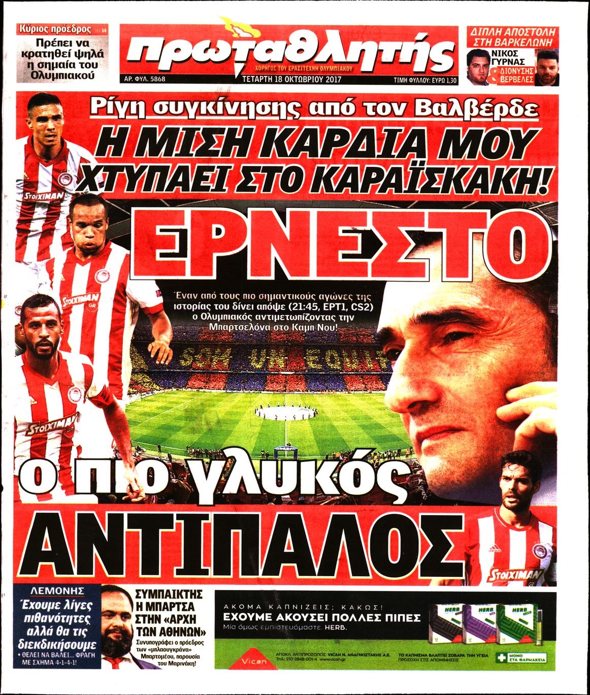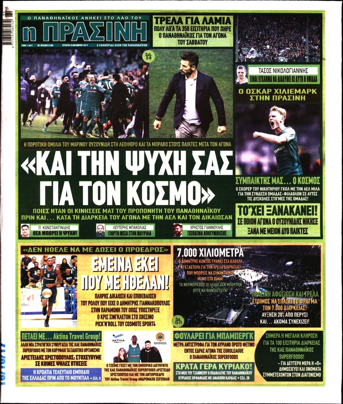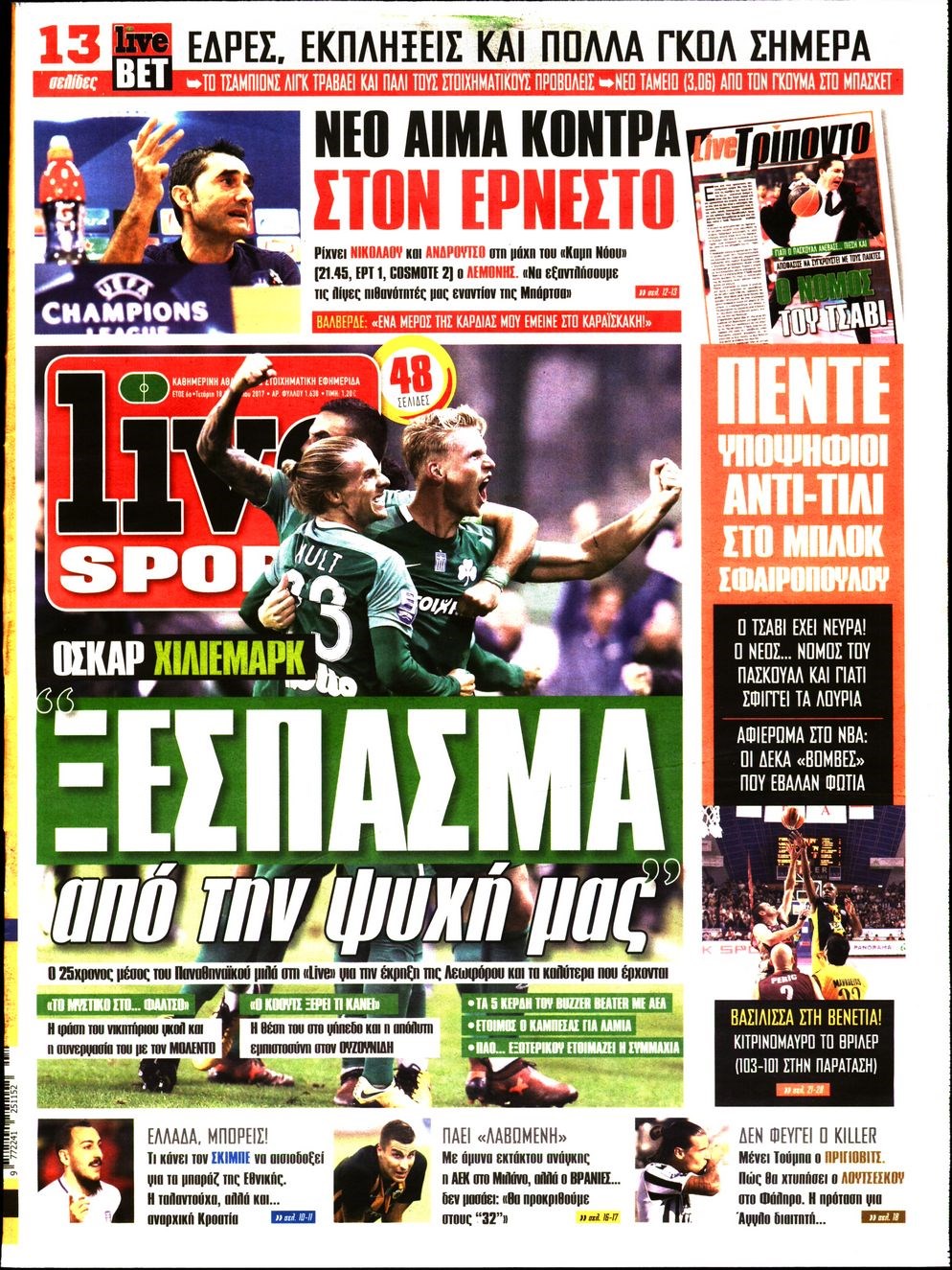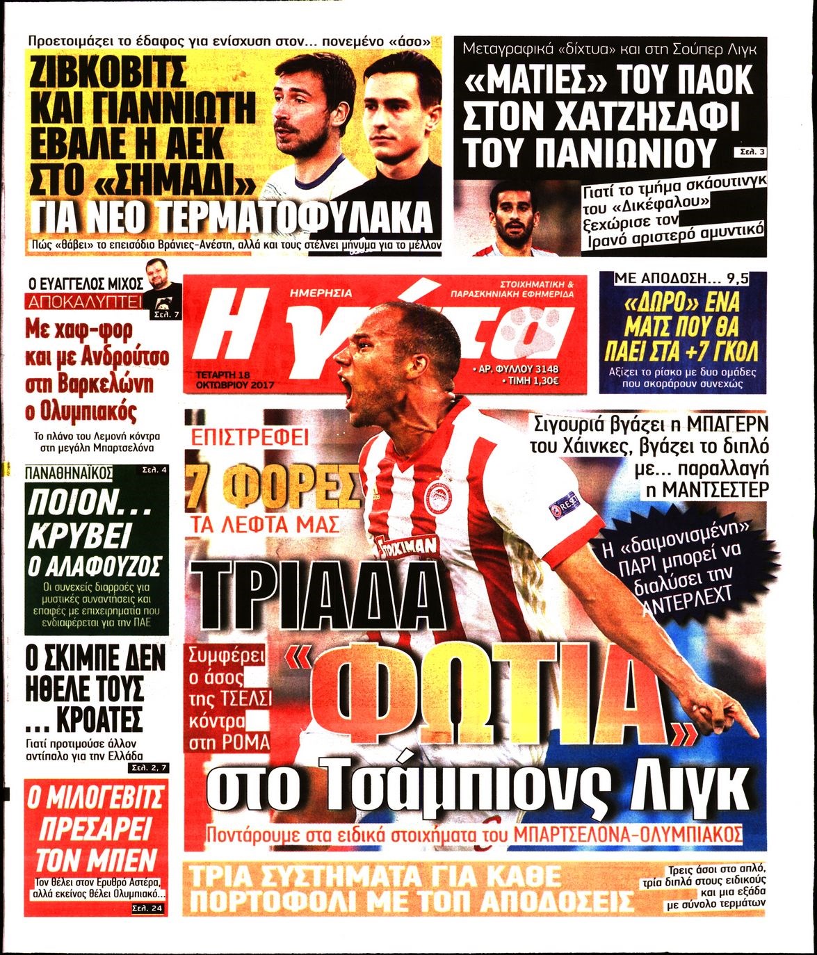 Οι αθλητικές εφημερίδες 18/10/2017 Enikos Newsroom 07:15, Τετάρτη 18 Οκτωβρίου 2017 Media Διαβάστε τα σημερινά πρωτοσέλιδα των αθλητικών εφημερίδων: ΑΘΛΗΤΙΚΕΣ ΕΦΗΜΕΡΙΔΕΣ ΠΡΩΤΟΣΕΛΙΔΑ Μοιράσου το: σχολίασε κι εσύ (0 σχόλια) Ακολουθήστε το enikos.gr στο Google News και μάθετε πρώτοι όλες τις ειδήσεις Δείτε όλες τις τελευταίες ειδήσεις από την Ελλάδα και τον Κόσμο στο enikos.gr Ειδήσεις Ροή Ειδήσεων 2 ώρες πριν Αγρότες: Πολύωροι αποκλεισμοί στα τελωνεία Προμαχώνα, Εξοχής, Ευζώνων και Νίκης – Κλείνουν τον κόμβο Φιλώτα οι παραγωγοί στη Δυτική Μακεδονία 1 ώρα πριν Νίκος Παππάς: Ζητώ συγγνώμη για αυτό το επεισόδιο – Δεν τον γρονθοκόπησα 3 ώρες πριν Ευρωπαϊκό Συμβούλιο: Όλες οι λεπτομέρειες για το δάνειο των 90 δισ. ευρώ στην Ουκρανία – Τα συμπεράσματα της Συνόδου Κορυφής 2 ώρες πριν Αίγιο: 22χρονη κατήγγειλε ότι έπεσε θύμα βιασμού και ληστείας από συγγενικά της πρόσωπα 1 ώρα πριν Τρομακτικό βίντεο: Η στιγμή της έκρηξης στο τζετ που μετέφερε τον οδηγό του NASCAR, Γκρεγκ Μπιφλ και την οικογένειά του 2 ώρες πριν Αλλαγή σελίδας για 3 ζώδια – «Μία δύσκολη περίοδος φτάνει στο τέλος της» 2 ημέρες πριν 20 χρόνια τα Χριστούγεννα ξεκινούν στα Public με μεγάλη ποικιλία σε δώρα! 3 ώρες πριν Ο σύζυγός της συμπεριφέρεται όπως το παιδί τους – «Χρησιμοποιεί αστείες δικαιολογίες για να μην κάνει δουλειές και να ξοδεύει λεφτά» 50 λεπτά πριν Γεμάτος νεροχύτης; 5 σοβαρές ευθύνες που «φοβίζουν» όσους αφήνουν άπλυτα πιάτα 3 λεπτά πριν Πούτιν: Η Ουκρανία δεν είναι έτοιμη για ειρηνευτικές συνομιλίες – ο ρωσικός στρατός προελαύνει σε όλα τα μέτωπα 9 λεπτά πριν Βουλή: Αποσύρθηκε προσθήκη για έργα του Ταμειακού Προγράμματος Ανάπτυξης της Γ.Γ. Αθλητισμού μετά τις αντιδράσεις της αντιπολίτευσης 14 λεπτά πριν Νορβηγία: Η πριγκίπισσα Μέτε-Μάριτ πιθανότατα θα υποβληθεί σε μεταμόσχευση πνεύμονα 25 λεπτά πριν Ενίσχυση δρομολογίων του Μετρό τις Κυριακές 21 και 28 Δεκεμβρίου – Κυκλοφοριακές ρυθμίσεις αύριο στη Γραμμή 7 του τραμ λόγω εορταστικών εκδηλώσεων 29 λεπτά πριν Βλαντίμιρ Πούτιν: LIVE η συνέντευξη Τύπου για τον απολογισμό της χρονιάς ENIKOS NETWORK Καρκίνος του πνεύμονα: Έως 8.000 ζωές μπορούν να σωθούν με την έγκαιρη διάγνωση Καρδιοπαθείς: Οι νέες συστάσεις για τα εμβόλια που πρέπει να κάνουν τον χειμώνα Επιδόματα και παροχές από τον ΟΠΕΚΑ: Τι πιστώνεται σήμερα στους τραπεζικούς λογαριασμούς Απειλή για τον Προϋπολογισμό τα ληξιπρόθεσμα χρέη των ιδιωτών προς την εφορία – Τι δείχνουν τα στοιχεία Χαρτογραφώντας το «σημείο χωρίς επιστροφή»: Για πρώτη φορά αποκαλύπτεται με λεπτομέρεια το ακανθώδες όριο της ατμόσφαιρας τ... Η Google καταργεί τη λειτουργία «dark web report» – Πώς θα μπορούν οι χρήστες να διαγράφουν τα δεδομένα τους περισσότερα 08:00 , Παρασκευή 19 Δεκεμβρίου 2025 Την Κυριακή με τη Realnews: Δωροεπιταγή 10€ Δωροεπιταγή αξίας 10€ για αγορές άνω των 60€ από τα πολυκαταστήματα FactoryOutlet H προσφορά ι... 05:48 , Παρασκευή 19 Δεκεμβρίου 2025 Οι οικονομικές εφημερίδες 19/12/2025 Διαβάστε τα πρωτοσέλιδα από τις οικονομικές εφημερίδες, σήμερα 19/12/2025. 05:43 , Παρασκευή 19 Δεκεμβρίου 2025 Οι αθλητικές εφημερίδες 19/12/2025 Διαβάστε τα πρωτοσέλιδα από τις αθλητικές εφημερίδες, σήμερα 19/12/2025. 05:38 , Παρασκευή 19 Δεκεμβρίου 2025 Οι πολιτικές εφημερίδες 19/12/2025 Διαβάστε τα πρωτοσέλιδα από τις πολιτικές εφημερίδες, σήμερα 19/12/2025. ΤΕΛΕΥΤΑΙΕΣ ΕΙΔΗΣΕΙΣ 3 λεπτά πριν Πούτιν: Η Ουκρανία δεν είναι έτοιμη για ειρηνευτικές... 9 λεπτά πριν Βουλή: Αποσύρθηκε προσθήκη για έργα του Ταμειακού... 14 
