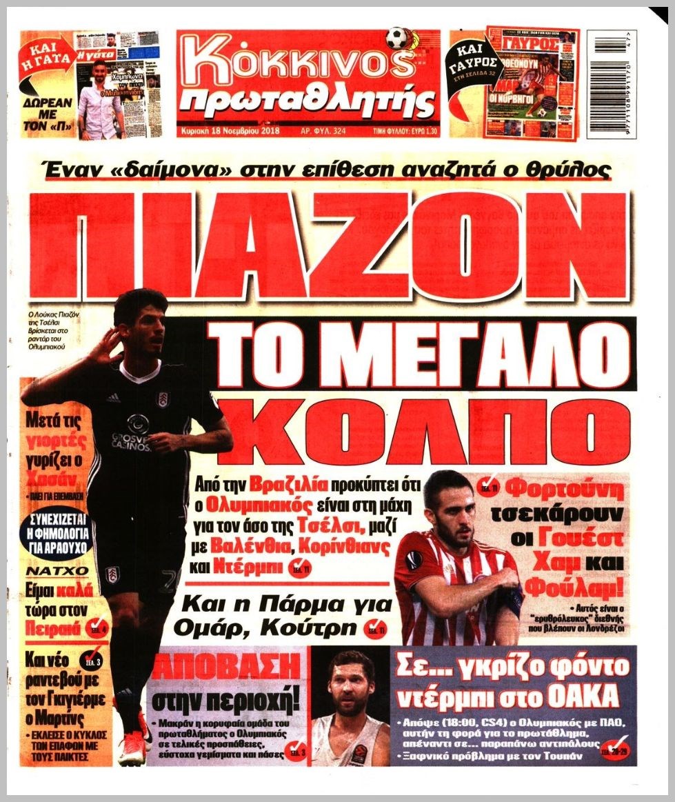 Οι αθλητικές εφημερίδες 18/11/18 Enikos Newsroom 06:28, Κυριακή 18 Νοεμβρίου 2018 Media Διαβάστε τα πρωτοσέλιδα: ΑΘΛΗΤΙΚΕΣ ΕΦΗΜΕΡΙΔΕΣ ΠΡΩΤΟΣΕΛΙΔΑ Μοιράσου το: σχολίασε κι εσύ (0 σχόλια) Ακολουθήστε το enikos.gr στο Google News και μάθετε πρώτοι όλες τις ειδήσεις Δείτε όλες τις τελευταίες ειδήσεις από την Ελλάδα και τον Κόσμο στο enikos.gr Ειδήσεις Ροή Ειδήσεων 12 λεπτά πριν Χριστούγεννα στα μπλόκα: Επιμένουν στις κινητοποιήσεις τους οι αγρότες – Ανοίγουν τα διόδια το Σαββατοκύριακο 40 λεπτά πριν Τραμπ: Δεν αποκλείει την πιθανότητα ενός πολέμου στη Βενεζουέλα – «Ο Μαδούρο ξέρει καλύτερα από τον καθένα τι ακριβώς θέλω» 34 λεπτά πριν Ουκρανία: Η άνευ προηγουμένου επίθεση σε ρωσικό τάνκερ στη Μεσόγειο και το μήνυμα προς στον Πούτιν – Το «μακρύ χέρι» του Κιέβου 3 ώρες πριν Πούτιν: «Ναι, είμαι ερωτευμένος» – Βίντεο από τη σπάνια προσωπική παραδοχή του 1 ώρα πριν Συνεχίζει να προκαλεί ο Μίτσκοσκι: «Για μένα το όνομα Μακεδονία είναι ιερό» 2 ώρες πριν Αριθμολογία: Οι άνθρωποι που έχουν γεννηθεί αυτές τις 4 ημερομηνίες, συχνά παρεξηγούνται – «Η καλοσύνη τους κρύβει τεράστια δύναμη» 4 ώρες πριν Μήπως έχετε χάσει τον εαυτό σας στη σχέση σας; 7 «αθόρυβες» υποχωρήσεις που μάλλον κάνατε, χωρίς να το συνειδητοποιήσετε 3 ώρες πριν Ξεχάστε το καθάρισμα το Σαββατοκύριακο: Ο «κανόνας των 20 λεπτών» που θα σας λύσει τα χέρια 50 λεπτά πριν Ύπνος: Μια κρυφή κατάσταση του εγκεφάλου πριν από τον ύπνο μπορεί να είναι το “κλειδί” για υψηλή ευφυΐα και δημιουργικότητα 2 λεπτά πριν Παναθηναϊκός: «Μέσα» οι Σφιντέρσκι και Τουμπά για το ματς με τον ΠΑΟΚ – Τι έδειξε η μαγνητική του Πάντοβιτς 7 λεπτά πριν Γιώργος Γιαννόπουλος για “Το σόι σου”: “Είναι ευτυχία και ευλογία αυτή η σειρά” 12 λεπτά πριν Χριστούγεννα στα μπλόκα: Επιμένουν στις κινητοποιήσεις τους οι αγρότες – Ανοίγουν τα διόδια το Σαββατοκύριακο 23 λεπτά πριν Χάρι και Μέγκαν: Η σπάνια οικογενειακή φωτογραφία με τον Άρτσι και τη Λίλιμπετ – Τι σχεδιάζουν για τα Χριστούγεννα 30 λεπτά πριν Βασίλης Καρράς: «Είναι πάντα δίπλα μου, δεν έφυγε…», λέει ο αδελφός του ENIKOS NETWORK Το ΕΚΑΒ τιμήθηκε από την Ακαδημία Αθηνών για τα 40 χρόνια προσφοράς του Έχετε πραγματικά μεγάλη καρδιά; 10 χαρακτηριστικά όσων έχουν καλοσύνη Πλήρης επάρκεια προϊόντων στις λαϊκές της Αττικής, παρά τις αγροτικές κινητοποιήσεις – Τι απαντούν οι πωλητές ΑΑΔΕ: Νέες αναβαθμίσεις στο Ψηφιακό Πελατολόγιο και την εφαρμογή myDATAapp – Τι πρέπει να γνωρίζετε Χαρτογραφώντας το «σημείο χωρίς επιστροφή»: Για πρώτη φορά αποκαλύπτεται με λεπτομέρεια το ακανθώδες όριο της ατμόσφαιρας τ... Η Google καταργεί τη λειτουργία «dark web report» – Πώς θα μπορούν οι χρήστες να διαγράφουν τα δεδομένα τους περισσότερα 22:42 , Παρασκευή 19 Δεκεμβρίου 2025 Γιώργος Γιαννόπουλος για “Το σόι σου”: “Είναι ευτυχία και ευλογία αυτή η σειρά” «Είναι ευτυχία και ευλογία η συγκυρία αυτής της σειράς», θα πει ο Γιώργος Γιαννόπουλος -ο αγαπ... 20:37 , Παρασκευή 19 Δεκεμβρίου 2025 Don’t Forget The Lyrics: Η Έλλη Κοκκίνου υποδέχεται 4 παίκτες που θα κάνουν τα πάντα για να μη χάσουν ούτε… μισή λέξη από τους στίχους Το «Don’t Forget The Lyrics» επιστρέφει απόψε, Παρασκευή 19 Δεκεμβρίου, στις 21:00 με νέο επει... 19:31 , Παρασκευή 19 Δεκεμβρίου 2025 GNTM: Απόψε ο μεγάλος τελικός για τους 4 φιναλίστ Έπειτα από μήνες γεμάτους μόδα, δημιουργία και έντονες αναμετρήσεις, το GNTM 2025 κορυφώνεται,... 18:11 , Παρασκευή 19 Δεκεμβρίου 2025 Το σόι σου: Ο Άρης έρχεται στην Ελλάδα για τις γιορτές των Χριστουγέν