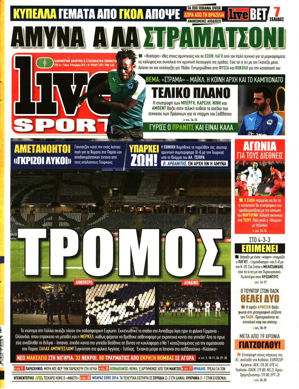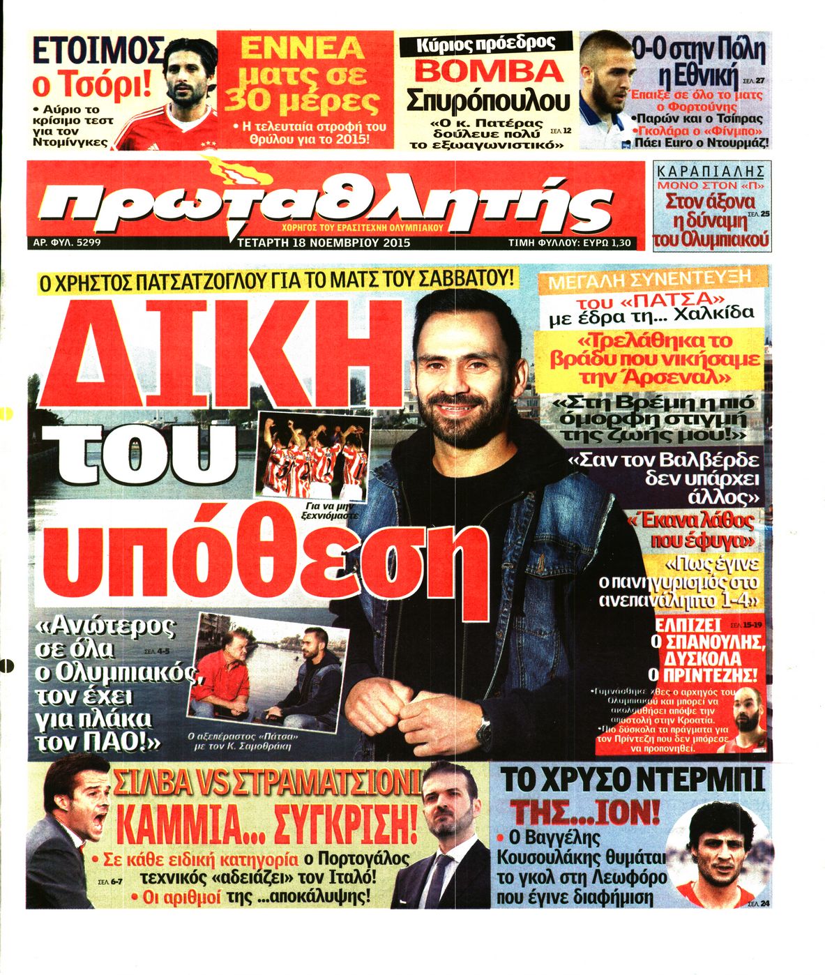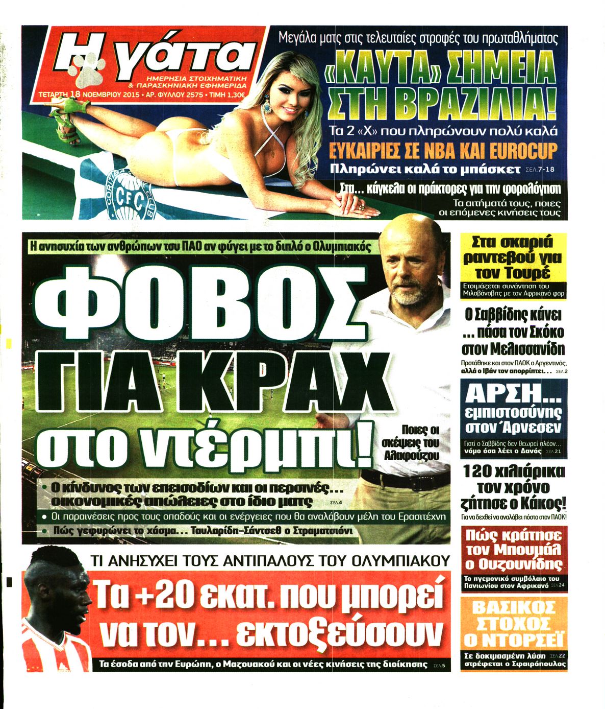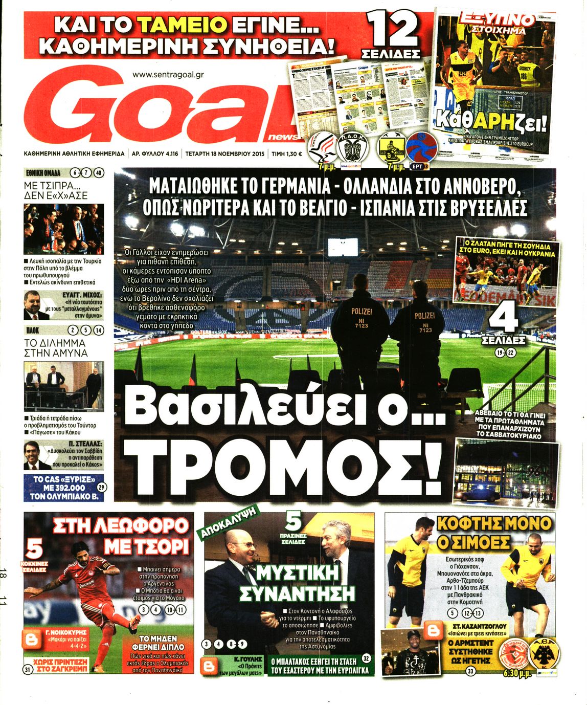 Οι αθλητικές εφημερίδες 18/11/2015 Enikos Newsroom 06:08, Τετάρτη 18 Νοεμβρίου 2015 Media Διαβάστε τα σημερινά πρωτοσέλιδα των αθλητικών εφημερίδων: ΑΘΛΗΤΙΚΕΣ ΕΦΗΜΕΡΙΔΕΣ ΠΡΩΤΟΣΕΛΙΔΑ Μοιράσου το: σχολίασε κι εσύ (0 σχόλια) Ακολουθήστε το enikos.gr στο Google News και μάθετε πρώτοι όλες τις ειδήσεις Δείτε όλες τις τελευταίες ειδήσεις από την Ελλάδα και τον Κόσμο στο enikos.gr Ειδήσεις Ροή Ειδήσεων 27 λεπτά πριν Αγρότες: «Όχι στον διάλογο, μας εμπαίζει η κυβέρνηση» – Αποφάσισαν κλιμάκωση των κινητοποιήσεων 55 λεπτά πριν Την πρώτη Belharra παρέλαβε η χώρα μας, υψώθηκε η ελληνική σημαία στη φρεγάτα «Κίμων» – Δένδιας: «Το ισχυρότερο Πολεμικό Ναυτικό που είχε ποτέ ο ελληνισμός» 4 ώρες πριν Γιώργος Μαζωνάκης: «Δεν ζήτησα χρήματα, παρά μόνο ηθική δικαίωση» – Οι πρώτες δηλώσεις του 21χρονου μετά την κατάθεση της μήνυσης 2 ώρες πριν Δίκη Βαλυράκη: Καταθέτει ο βασικός αυτόπτης μάρτυρας – «Δέχτηκα πιέσεις να μη μιλήσω, πήγα να ψωνίσω και αυτοκίνητο με χτύπησε στο πόδι» 7 ώρες πριν Συναγερμός και στην Ελλάδα για τη «σούπερ γρίπη»: Πόσο σοβαρή είναι και ποιοι θεωρούνται πιο ευάλωτοι – 3 ειδικοί μιλούν στο enikos.gr 1 ώρα πριν Τα 5 ζώδια που θα ευνοηθούν στα οικονομικά τους το 2026 – «Τραβούν το χρήμα σαν μαγνήτες» 6 ώρες πριν Αν κάνετε συνεχώς αυτά τα 8 πράγματα με τα κατοικίδιά σας, σας λείπει η ανθρώπινη επαφή 2 ώρες πριν Αυτό που κρύβεται κάτω από τη Γροιλανδία θα μπορούσε να ανατρέψει όσα γνωρίζουμε για την άνοδο της στάθμης των θαλασσών 1 ημέρα πριν 20 χρόνια τα Χριστούγεννα ξεκινούν στα Public με μεγάλη ποικιλία σε δώρα! 5 λεπτά πριν ΕΛΚ – Κωστής Χατζηδάκης: Παρεμβάσεις σε 9 τομείς για την ανταγωνιστικότητα 12 λεπτά πριν Μιχάλης Χουρδάκης: «Είμαι διαθέσιμος να συμβάλω στην προσωρινή κάλυψη του ιατρείου της Ψερίμου» – Η επιστολή στον Άδωνι Γεωργιάδη 16 λεπτά πριν Κουίζ για την παλιά Αθήνα: Αναγνωρίζετε την περιοχή; Είναι από τις πιο γνωστές 22 λεπτά πριν Λάμπρος Κωνσταντάρας για τα φετινά Χριστούγεννα: «Θα είναι πάρα πολύ δύσκολα, γιατί θα είναι τα πρώτα χωρίς τον πατέρα μου» 27 λεπτά πριν Αγρότες: «Όχι στον διάλογο, μας εμπαίζει η κυβέρνηση» – Αποφάσισαν κλιμάκωση των κινητοποιήσεων ENIKOS NETWORK 100 χρόνια ΠΙΣ: Ένας αιώνας προσφοράς στην Ιατρική και την κοινωνία Ένα ποτήρι την ημέρα από αυτόν τον χυμό μειώνει τη χοληστερίνη, τη φλεγμονή και την πίεση Χριστούγεννα και Πρωτοχρονιά: Δείτε πόσα χρήματα θα πάρουν ως αμοιβή όσοι εργαστούν Κρατική επιχορήγηση έως 14.500 ευρώ: Ποιοι θα λάβουν από σήμερα την προκαταβολή στον τραπεζικό λογαριασμό τους Χαρτογραφώντας το «σημείο χωρίς επιστροφή»: Για πρώτη φορά αποκαλύπτεται με λεπτομέρεια το ακανθώδες όριο της ατμόσφαιρας τ... Η Google καταργεί τη λειτουργία «dark web report» – Πώς θα μπορούν οι χρήστες να διαγράφουν τα δεδομένα τους περισσότερα 16:50 , Πέμπτη 18 Δεκεμβρίου 2025 Να μ’ αγαπάς: Ζωή και Φωτεινή συμφιλιώνονται ως μάνα με κόρη, απόψε στις 20:00 Η ταυτότητα του Άγγελου αποκαλύπτεται στο νέο επεισόδιο της σειράς “Να μ’ αγαπάς... 15:52 , Πέμπτη 18 Δεκεμβρίου 2025 Το Σπίτι Δίπλα Στο Ποτάμι: Το καθηλωτικό τελευταίο επεισόδιο για το 2025 απόψε στις 22:30 Καθηλώνει το σημερινό επεισόδιο της σειράς “Το Σπίτι Δίπλα Στο Ποτάμι” που έρχεται... 15:20 , Πέμπτη 18 Δεκεμβρίου 2025 Άγιος έρωτας – Η Ελευθερία Αρβανιτάκη τραγουδά και ο Γιάννης Τσορτέκης καθηλώνει με τον χορό του Ο Κλεάνθης χορεύει στους ήχους της Ελευθερίας Αρβανιτάκη στη σειρά “Άγιος Έρωτας“.... 08:00 , Πέμπτη 18 Δεκεμβρίου 2025 Την Κυριακή με 