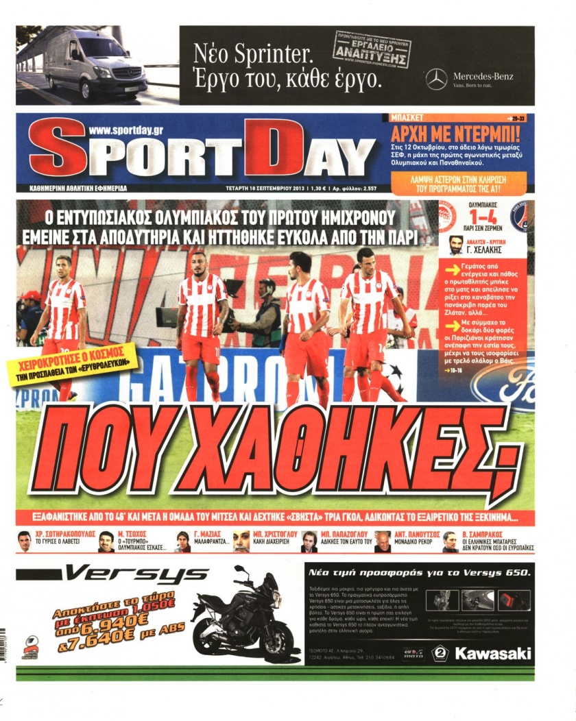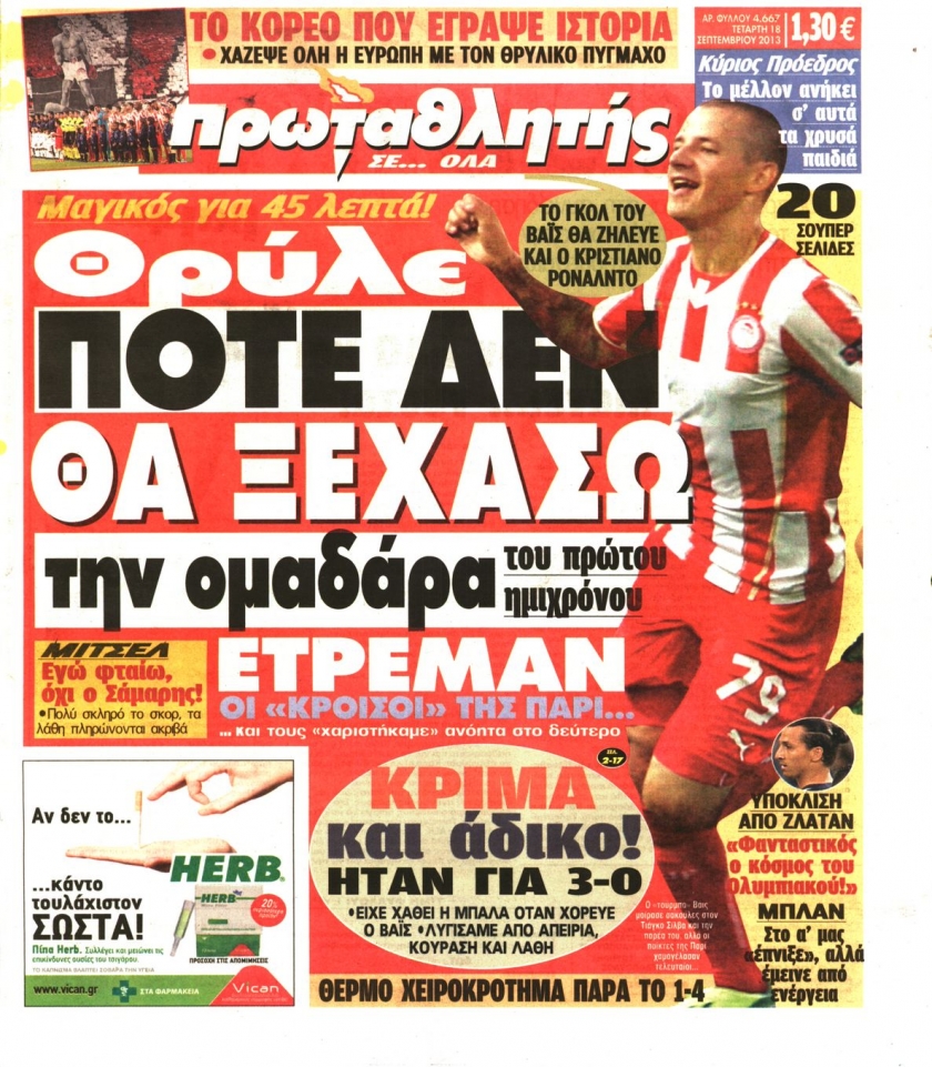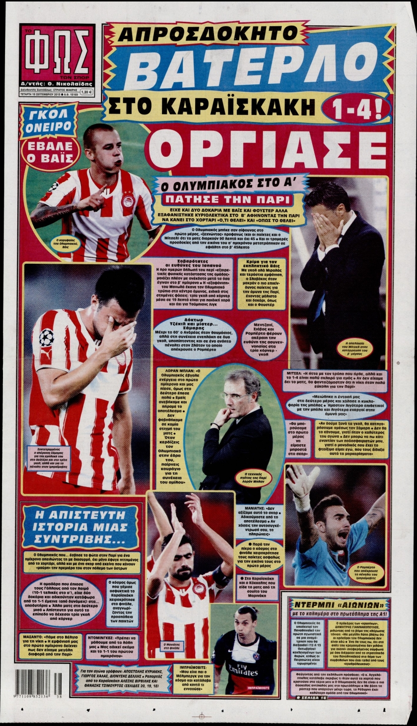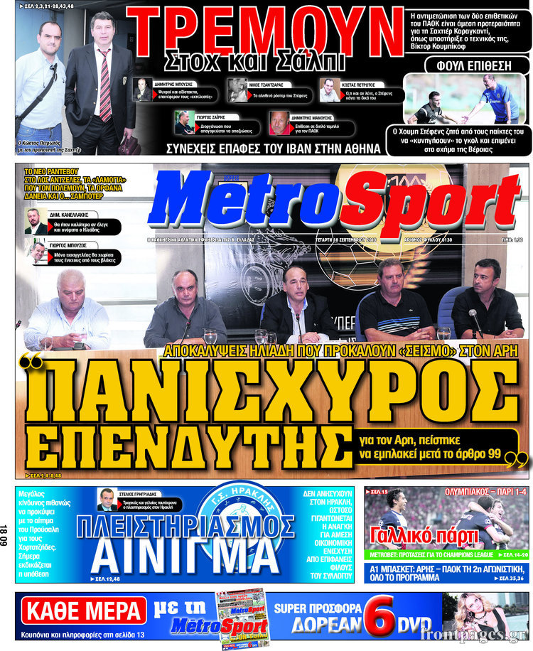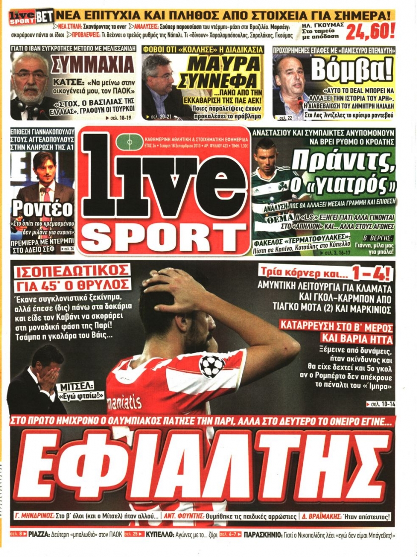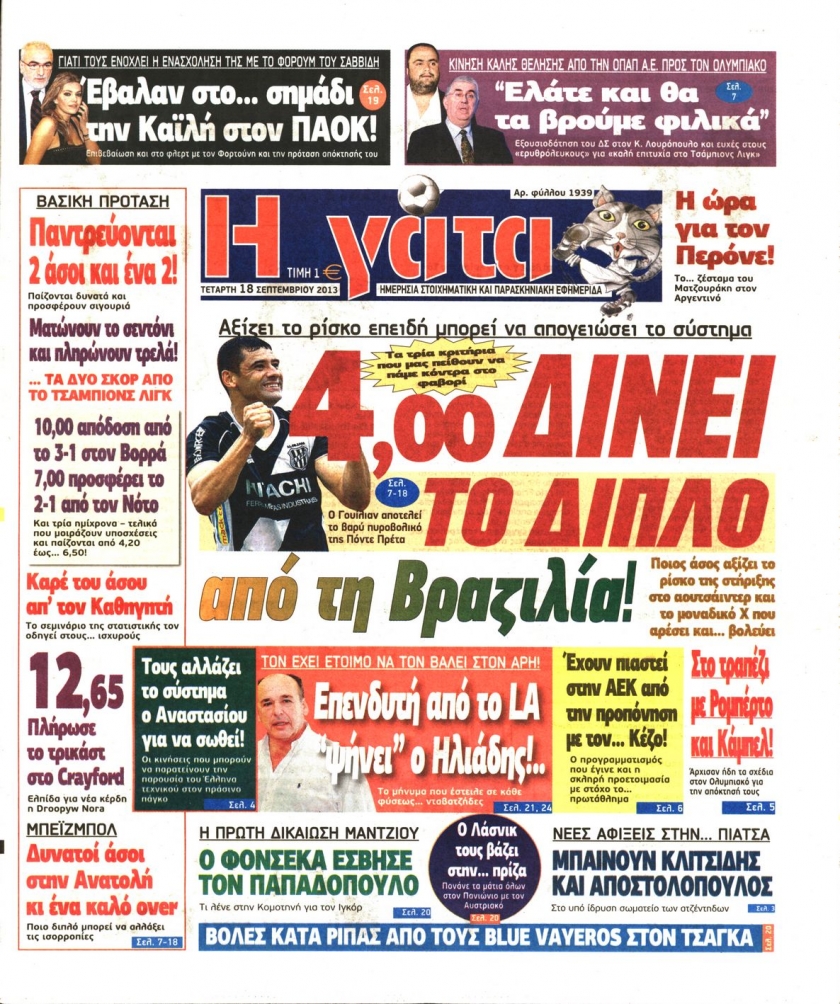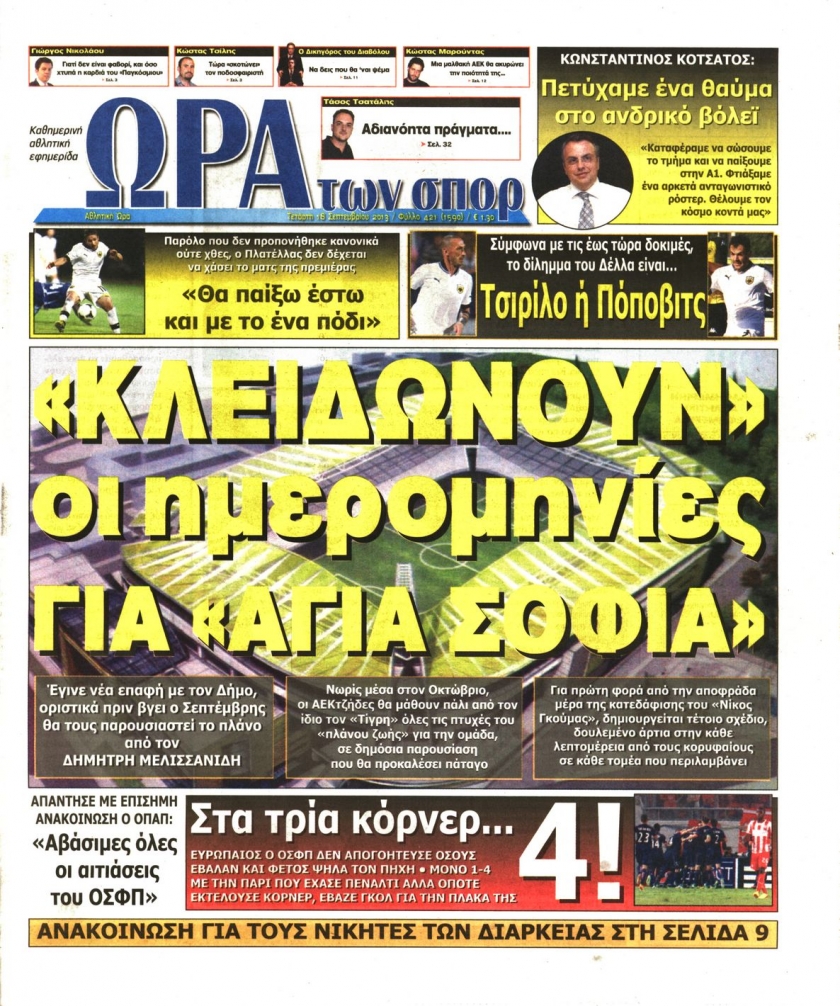 Οι αθλητικές εφημερίδες Enikos Newsroom 08:54, Τετάρτη 18 Σεπτεμβρίου 2013 Media Οι αθλητικές εφημερίδες Διαβάστε τα πρωτοσέλιδα των αθλητικών εφημερίδων: ΑΘΛΗΤΙΚΕΣ ΕΦΗΜΕΡΙΔΕΣ ΕΦΗΜΕΡΙΔΕΣ ΠΡΩΤΟΣΕΛΙΔΑ Μοιράσου το: σχολίασε κι εσύ (0 σχόλια) Ακολουθήστε το enikos.gr στο Google News και μάθετε πρώτοι όλες τις ειδήσεις Δείτε όλες τις τελευταίες ειδήσεις από την Ελλάδα και τον Κόσμο στο enikos.gr Ειδήσεις Ροή Ειδήσεων 2 ώρες πριν Αυξάνουν την πίεση προς την κυβέρνηση οι αγρότες: Κλείνουν παρακαμπτήριους και ανοίγουν διόδια – Τι θα γίνει τις γιορτές 45 λεπτά πριν ΟΠΕΚΕΠΕ: Προφυλακιστέος ο φερόμενος αρχηγός και ο λογιστής της εγκληματικής οργάνωσης 2 ώρες πριν Φοινικούντα: Το Σάββατο απολογείται ο 30χρονος γιος γνωστού επιχειρηματία της Πλάκας που παραδόθηκε – Όσα είπε στους αστυνομικούς και ο ρόλος του στο έγκλημα 1 ώρα πριν Μπορεί ο Μαδούρο να αντέξει τον αποκλεισμό του Τραμπ; Τι θα χρειαστεί η Ουάσινγκτον για να τον ανατρέψει 3 ώρες πριν Πρίγκιπας Ουίλιαμ – Κέιτ: Η νέα οικογενειακή φωτογραφία για τις Χριστουγεννιάτικες κάρτες του 2025 3 ώρες πριν Ύπνος: Η απλή βραδινή ρουτίνα για να προστατεύσετε τα μαλλιά σας από το κρύο κατά τη διάρκεια του χειμώνα 3 ώρες πριν Manifesting: Πώς να συναντήσετε τον σύντροφο της ζωής σας, ανάλογα με τον μήνα γέννησής σας 2 ημέρες πριν 20 χρόνια τα Χριστούγεννα ξεκινούν στα Public με μεγάλη ποικιλία σε δώρα! 1 ώρα πριν Αρχαιολόγοι ανακάλυψαν ρωμαϊκά τεχνουργήματα από μια πόλη που δεν υπήρξε ποτέ – Τα τρία εντυπωσιακά κτίρια και ο αμφορέας με τις… σαρδέλες 25 λεπτά πριν ΑΕΚ – Κραϊόβα 3-2: Επική ανατροπή και πρόκριση στους «16» του Conference League η Ένωση 45 λεπτά πριν ΟΠΕΚΕΠΕ: Προφυλακιστέος ο φερόμενος αρχηγός και ο λογιστής της εγκληματικής οργάνωσης 55 λεπτά πριν Αθηνά Μαξίμου: Η τρυφερή ανάρτηση για τα γενέθλια του Αιμίλιου Χειλάκη – «Είναι η εκλεκτική συγγένειά μου, η επιλογή και η ευθύνη μου» 1 ώρα πριν Παναθηναϊκός – Χάποελ Τελ Αβίβ 93-82: Με… φόρα από την Κωνσταντινούπολη 1 ώρα πριν Μπορεί ο Μαδούρο να αντέξει τον αποκλεισμό του Τραμπ; Τι θα χρειαστεί η Ουάσινγκτον για να τον ανατρέψει ENIKOS NETWORK Σε περίοδο αυξημένης δραστηριότητας η γρίπη στην Ελλάδα-Μέτρα προστασίας από τον ΕΟΔΥ Σκέφτεστε συνέχεια συζητήσεις που έχετε κάνει; Τι σημαίνει αυτό, σύμφωνα με ειδικό Στεγαστικό: Τι λέει η ΠΟΜΙΔΑ για τα νέα μέτρα που ανακοίνωσε ο Κυριάκος Μητσοτάκης Λαγκάρντ: Αισιόδοξη για την ανάπτυξη της Ευρωζώνης, αβέβαιη για τον πληθωρισμό Χαρτογραφώντας το «σημείο χωρίς επιστροφή»: Για πρώτη φορά αποκαλύπτεται με λεπτομέρεια το ακανθώδες όριο της ατμόσφαιρας τ... Η Google καταργεί τη λειτουργία «dark web report» – Πώς θα μπορούν οι χρήστες να διαγράφουν τα δεδομένα τους περισσότερα 17:45 , Πέμπτη 18 Δεκεμβρίου 2025 ROUK ZOUK: Εορταστικό επεισόδιο με καλεσμένους τους πρωταγωνιστές του «Γιατί ρε πατέρα» Το Σάββατο 20 Δεκεμβρίου στις 21:00, η Ζέτα Μακρυπούλια υποδέχεται εκλεκτούς ηθοποιούς που όλο... 17:20 , Πέμπτη 18 Δεκεμβρίου 2025 Άγιος έρωτας: Η Χριστίνα εξομολογείται στον πατέρα Νικόλαο, απόψε στις 21:00 στον Alpha Η Νότα αποφασίζει να εκδικηθεί τον Πέτρο και τον Στέφανο, για χάρη του Λούη, όμως τα πράγματα ... 16:50 , Πέμπτη 18 Δεκεμβρίου 2025 Να μ’ αγαπάς: Ζωή και Φωτεινή συμφιλιώνονται ως μάνα με κόρη, απόψε στις 20:00 Η ταυτότητα του Άγγελου αποκαλύπτεται στο νέο επεισόδιο της σειράς “Να μ’ αγαπάς... 15:52 , Πέμπτη 18 Δεκεμβρίου 2025 Το Σπίτι Δίπλα Στο Ποτάμι: Το καθηλωτικό τελευταίο επεισόδιο για το 2025 απόψε στις 22:30 Κα