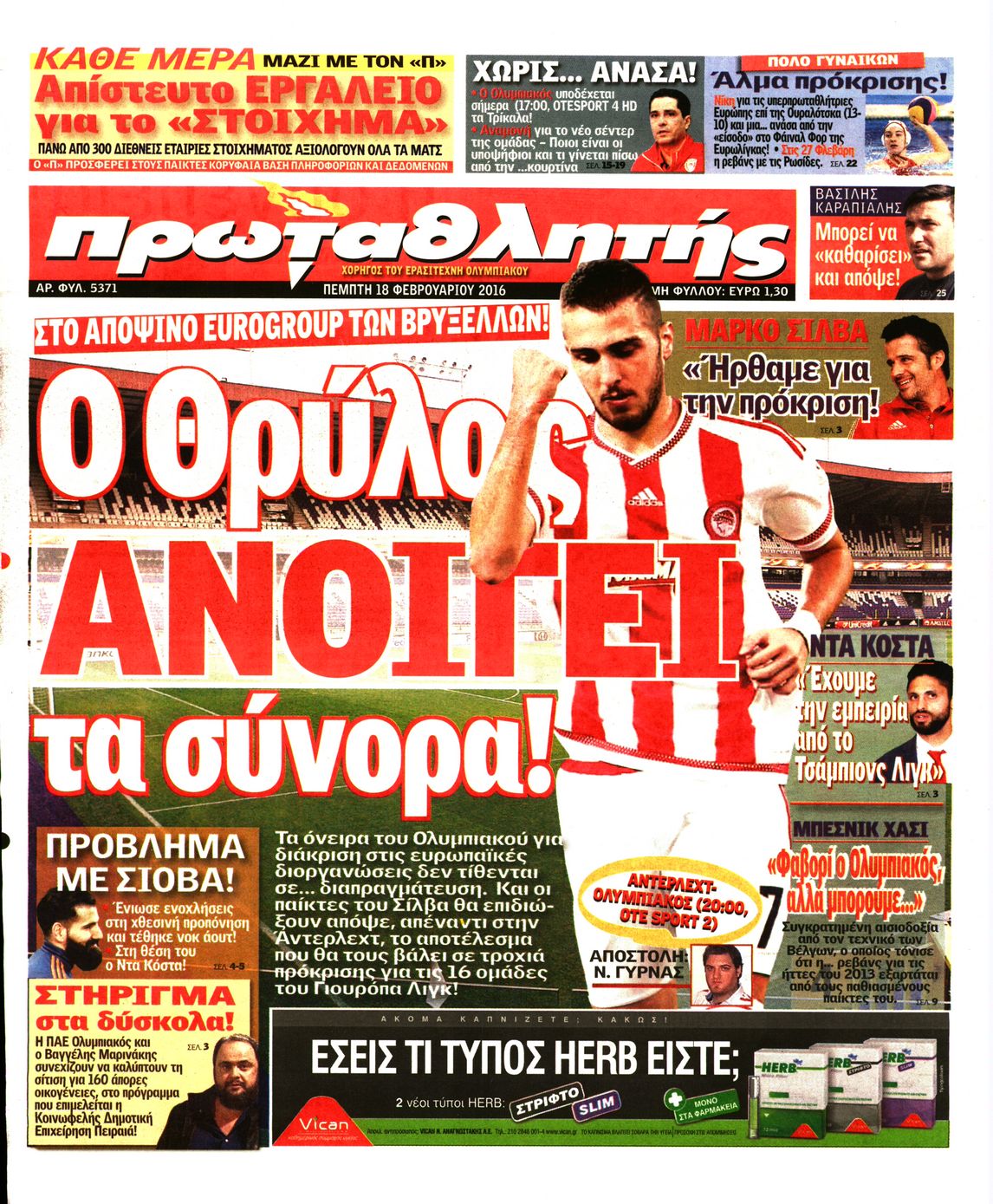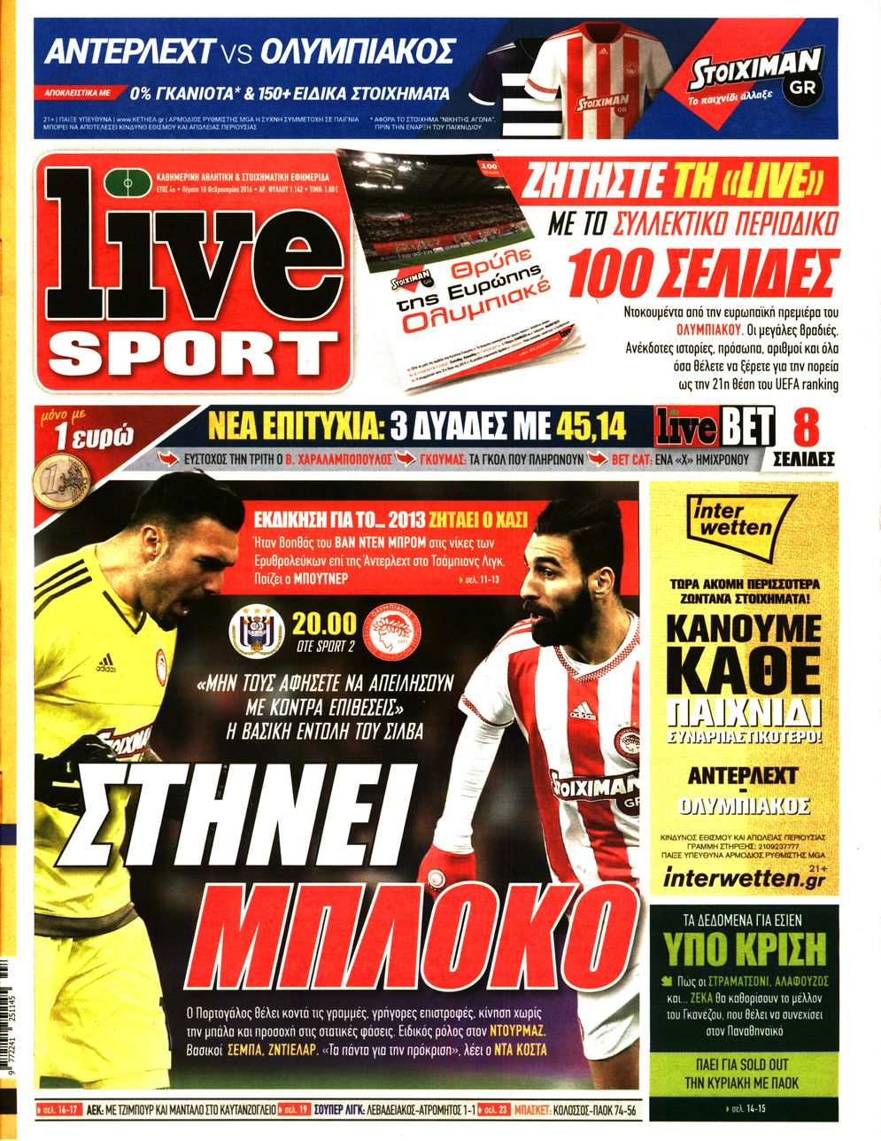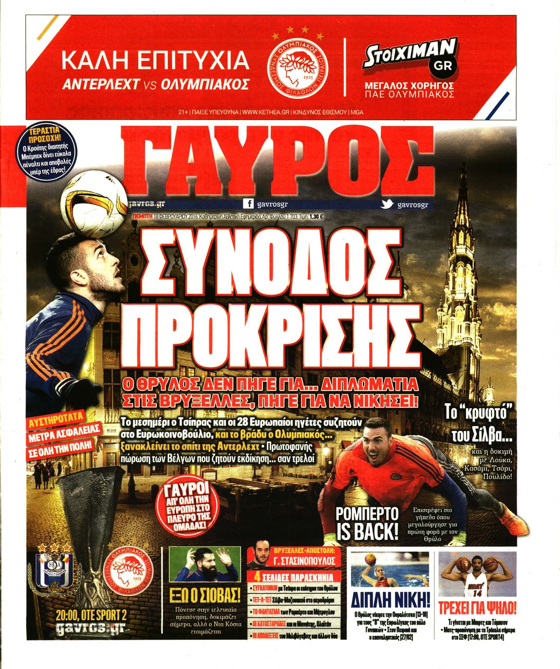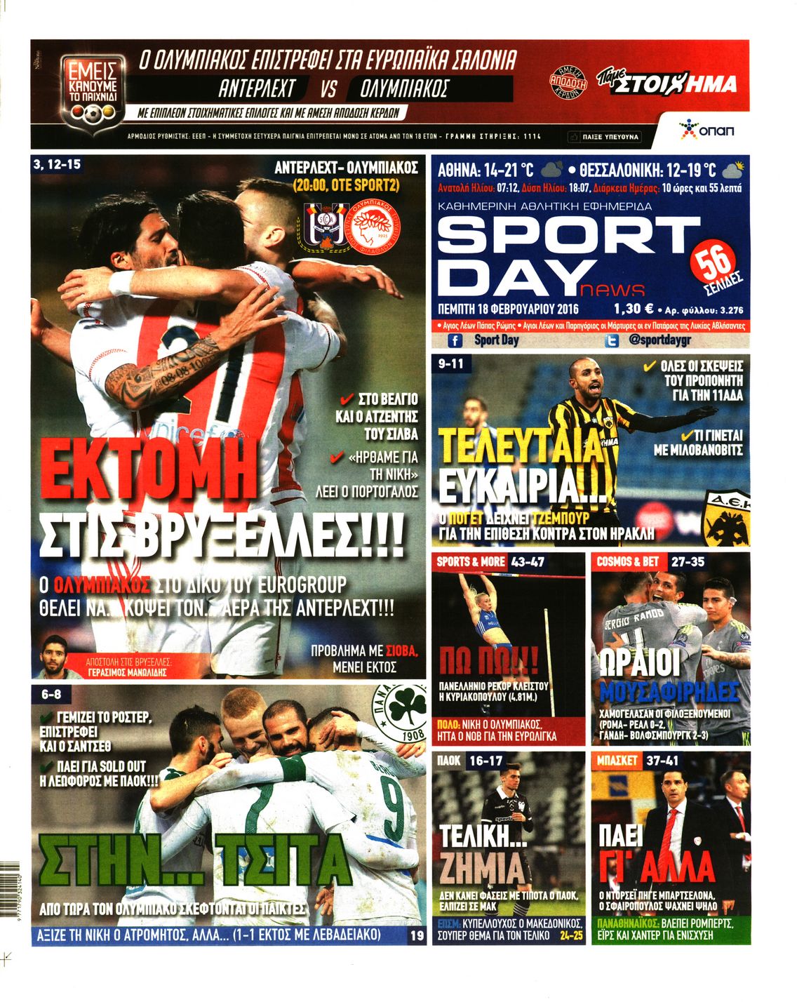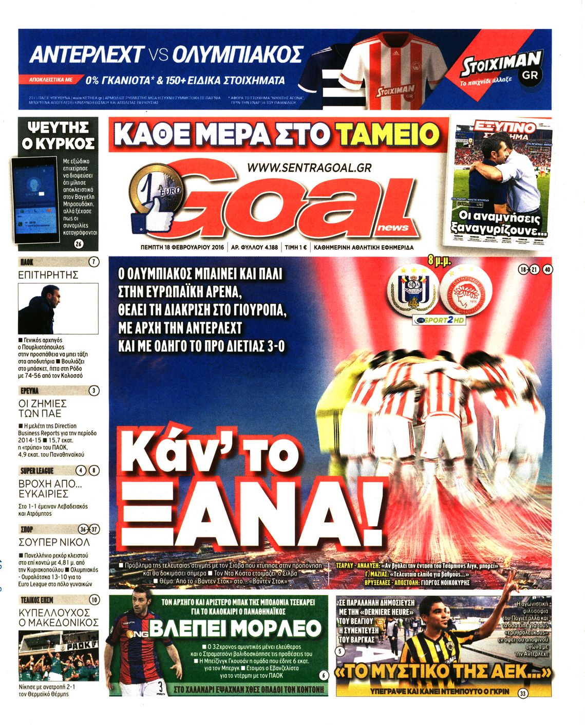 Οι αθλητικές εφημερίδες 18/2/2016 Enikos Newsroom 05:59, Πέμπτη 18 Φεβρουαρίου 2016 Media Διαβάστε τα σημερινά πρωτοσέλιδα των αθλητικών εφημερίδων: ΑΘΛΗΤΙΚΕΣ ΕΦΗΜΕΡΙΔΕΣ ΠΡΩΤΟΣΕΛΙΔΑ Μοιράσου το: σχολίασε κι εσύ (0 σχόλια) Ακολουθήστε το enikos.gr στο Google News και μάθετε πρώτοι όλες τις ειδήσεις Δείτε όλες τις τελευταίες ειδήσεις από την Ελλάδα και τον Κόσμο στο enikos.gr Ειδήσεις Ροή Ειδήσεων 3 ώρες πριν Μεσόγειος: Η διαδρομή του ρωσικού τάνκερ «Qendil» και η στοχευμένη επίθεση της Ουκρανίας με drone – Ο Πούτιν προειδοποίησε για αντίποινα 3 λεπτά πριν Αγρότες: Έκλεισαν την παρακαμπτήρια της Ιόνιας Οδού στη θέση Χαλίκι 2 ώρες πριν Εμπλοκή και αερομαχίες με οπλισμένα τουρκικά F-16 στο Αιγαίο 3 ώρες πριν Αττική: Θρίλερ με νεκρό βρέφος 5 μηνών – Κοιμόταν στο ίδιο κρεβάτι με τους γονείς του 1 ώρα πριν Πούτιν: «Ναι, είμαι ερωτευμένος» – Βίντεο από τη σπάνια προσωπική παραδοχή του 17 λεπτά πριν Αριθμολογία: Οι άνθρωποι που έχουν γεννηθεί αυτές τις 4 ημερομηνίες, συχνά παρεξηγούνται – «Η καλοσύνη τους κρύβει τεράστια δύναμη» 2 ώρες πριν Μήπως έχετε χάσει τον εαυτό σας στη σχέση σας; 7 «αθόρυβες» υποχωρήσεις που μάλλον κάνατε, χωρίς να το συνειδητοποιήσετε 1 ώρα πριν Ξεχάστε το καθάρισμα το Σαββατοκύριακο: Ο «κανόνας των 20 λεπτών» που θα σας λύσει τα χέρια 4 ώρες πριν Κουίζ για την παλιά Αθήνα: Αναγνωρίζετε την περιοχή; Έχετε περάσει 100% από εκεί 3 λεπτά πριν Αγρότες: Έκλεισαν την παρακαμπτήρια της Ιόνιας Οδού στη θέση Χαλίκι 7 λεπτά πριν Ανδρέας Λυκουρέντζος: Υπέβαλε την παραίτησή του ο πρόεδρος του ΕΛΓΑ – Δεν έγινε δεκτή από την κυβέρνηση – ΒΙΝΤΕΟ 12 λεπτά πριν Ηράκλειο: «Ιπτάμενοι» Άγιοι Βασίληδες μοίρασαν δώρα και χαμόγελα στα παιδιά στο ΠΑΓΝΗ – Δείτε βίντεο 17 λεπτά πριν Αριθμολογία: Οι άνθρωποι που έχουν γεννηθεί αυτές τις 4 ημερομηνίες, συχνά παρεξηγούνται – «Η καλοσύνη τους κρύβει τεράστια δύναμη» 24 λεπτά πριν Ρύθμιση του ΥΠΑΑΤ για τους αγρότες που δεν έλαβαν τη βασική ενίσχυση λόγω εκκρεμοτήτων στο Κτηματολόγιο ENIKOS NETWORK Το ΕΚΑΒ τιμήθηκε από την Ακαδημία Αθηνών για τα 40 χρόνια προσφοράς του Έχετε πραγματικά μεγάλη καρδιά; 10 χαρακτηριστικά όσων έχουν καλοσύνη Έρχονται νέες προσλήψεις σε Δήμο – Όλες οι λεπτομέρειες Επίδομα παιδιού: Πότε ανοίγει ξανά η πλατφόρμα για τις αιτήσεις Χαρτογραφώντας το «σημείο χωρίς επιστροφή»: Για πρώτη φορά αποκαλύπτεται με λεπτομέρεια το ακανθώδες όριο της ατμόσφαιρας τ... Η Google καταργεί τη λειτουργία «dark web report» – Πώς θα μπορούν οι χρήστες να διαγράφουν τα δεδομένα τους περισσότερα 20:37 , Παρασκευή 19 Δεκεμβρίου 2025 Don’t Forget The Lyrics: Η Έλλη Κοκκίνου υποδέχεται 4 παίκτες που θα κάνουν τα πάντα για να μη χάσουν ούτε… μισή λέξη από τους στίχους Το «Don’t Forget The Lyrics» επιστρέφει απόψε, Παρασκευή 19 Δεκεμβρίου, στις 21:00 με νέο επει... 19:31 , Παρασκευή 19 Δεκεμβρίου 2025 GNTM: Απόψε ο μεγάλος τελικός για τους 4 φιναλίστ Έπειτα από μήνες γεμάτους μόδα, δημιουργία και έντονες αναμετρήσεις, το GNTM 2025 κορυφώνεται,... 18:11 , Παρασκευή 19 Δεκεμβρίου 2025 Το σόι σου: Ο Άρης έρχεται στην Ελλάδα για τις γιορτές των Χριστουγέννων – Τι θα δούμε στο αποψινό εορταστικό επεισόδιο Ένα απολαυστικό, εορταστικό επεισόδιο της σειράς “Το σόι σου”, γεμάτο ευτράπελα αλ... 15:15 , Παρασκευή 19 Δεκεμβρίου 2025 Την Κυριακή με τη Realnews: Ό,τι και αν αγοράσεις, σκανάρεις και κερδίζεις! Την Κυριακή με τη Realnews: Ό,τι και αν αγοράσεις, σκανάρεις και κερδίζεις! Με το PADU app, το... ΤΕΛΕΥΤΑΙΕΣ ΕΙΔΗΣΕΙΣ 3 λεπτά πριν Αγρότες: Έκλεισα