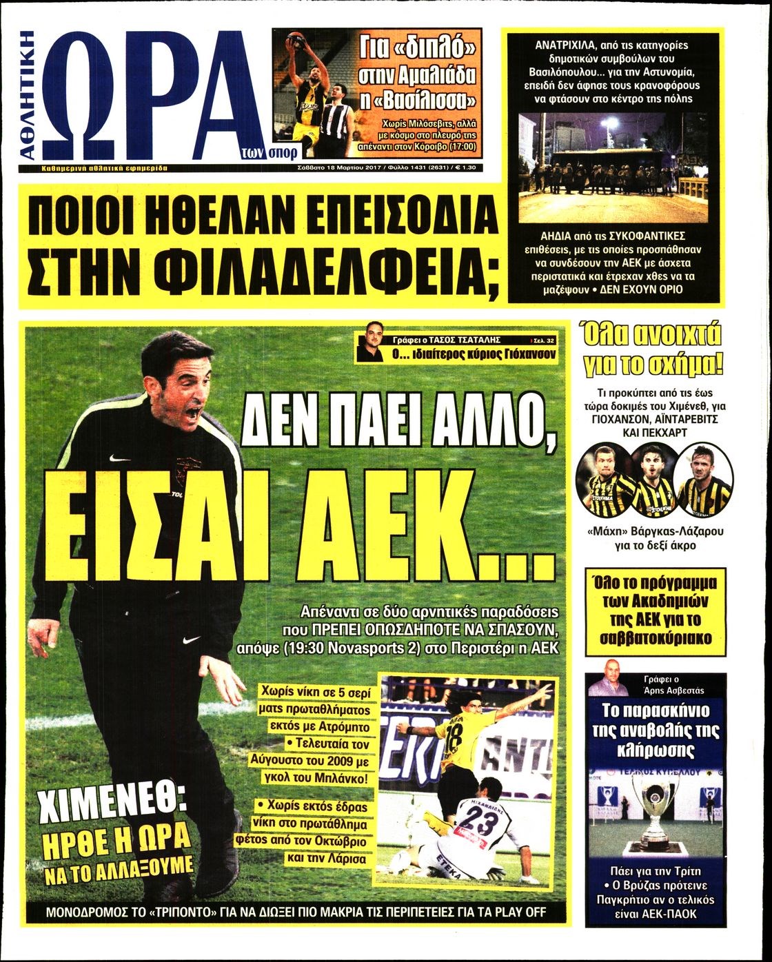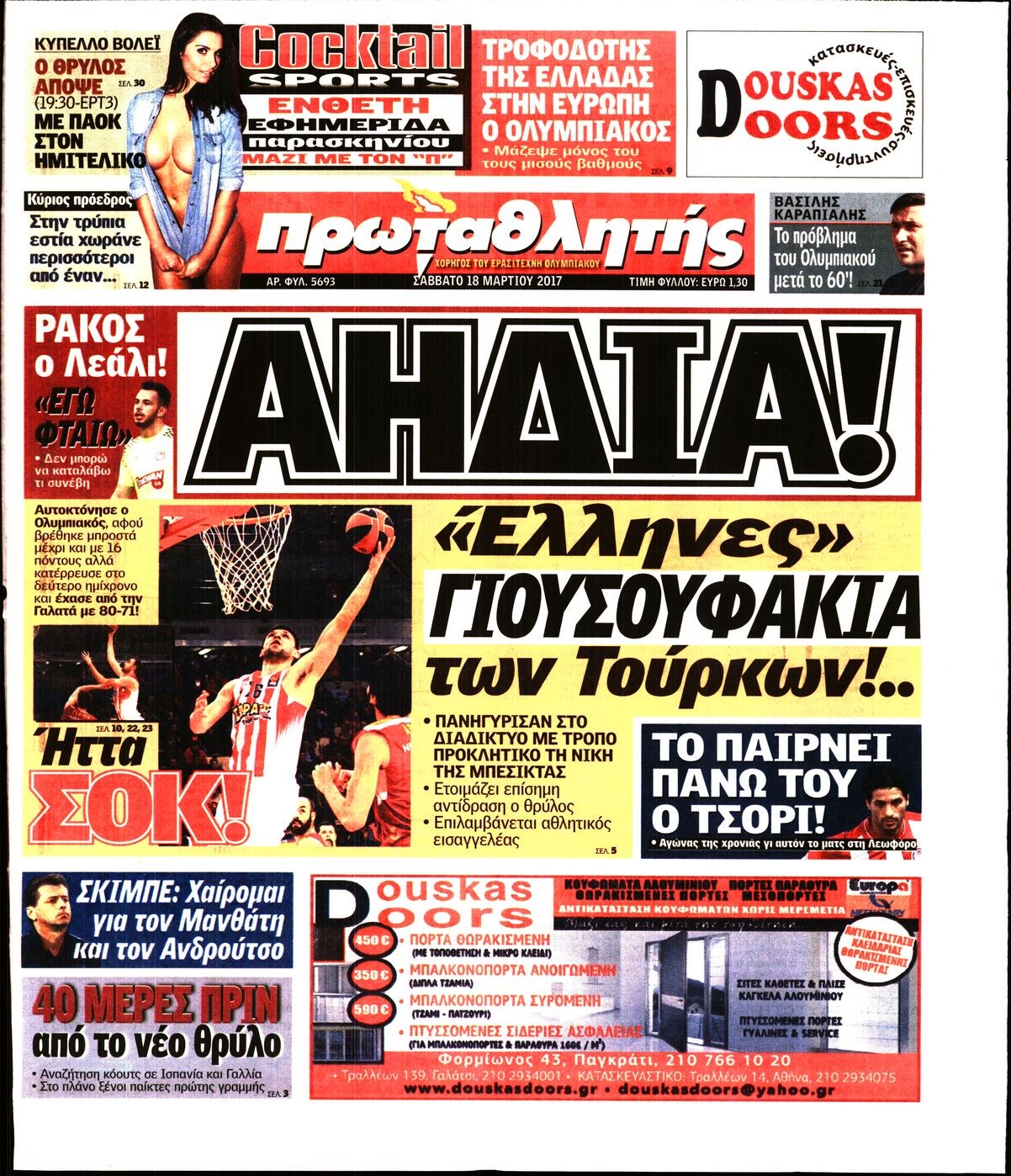 Οι αθλητικές εφημερίδες 18/3/2017 Enikos Newsroom 06:50, Σάββατο 18 Μαρτίου 2017 Media Διαβάστε τα σημερινά πρωτοσέλιδα των αθλητικών εφημερίδων: ΑΘΛΗΤΙΚΕΣ ΕΦΗΜΕΡΙΔΕΣ ΠΡΩΤΟΣΕΛΙΔΑ Μοιράσου το: σχολίασε κι εσύ (0 σχόλια) Ακολουθήστε το enikos.gr στο Google News και μάθετε πρώτοι όλες τις ειδήσεις Δείτε όλες τις τελευταίες ειδήσεις από την Ελλάδα και τον Κόσμο στο enikos.gr Ειδήσεις Ροή Ειδήσεων 1 ώρα πριν Κλιμακώνουν από σήμερα τις κινητοποιήσεις οι αγρότες: Νέα μπλόκα, κλείσιμο παρακαμπτηρίων και άνοιγμα διοδίων – Το νέο μήνυμα Μητσοτάκη 24 λεπτά πριν Ευρωπαϊκό Συμβούλιο: Όλες οι λεπτομέρειες για το δάνειο των 90 δισ. ευρώ στην Ουκρανία – Τα συμπεράσματα της Συνόδου Κορυφής 2 ώρες πριν Συντάξεις: Οι κερδισμένοι και οι χαμένοι από τις αυξήσεις – Αναλυτικός οδηγός και παραδείγματα 2 ώρες πριν Θανατηφόρο τροχαίο στη Νέα Φιλαδέλφεια: Νεκρός 27χρονος οδηγός μηχανής ύστερα από σύγκρουση με τρόλεϊ 27 λεπτά πριν Peter Greene: Ο πρωταγωνιστής του «Pulp Fiction» είχε τραύματα στο σώμα του όταν βρέθηκε νεκρός στο αιματοβαμμένο διαμέρισμα 3 ώρες πριν Κρύα χέρια και πόδια: Γιατρός εξηγεί ποια είναι η αίτια και πότε πρέπει να ανησυχήσετε 4 ώρες πριν Τα ζώδια σήμερα, Παρασκευή 19 Δεκεμβρίου: Τοξότες, με τη Νέα Σελήνη έρχεται η προσωπική ανανέωσή σας 55 λεπτά πριν Πώς το αρχαίο DNA του κυνηγού – συλλέκτη ξεκλείδωσε τα μυστικά της μακροζωίας 2 ημέρες πριν 20 χρόνια τα Χριστούγεννα ξεκινούν στα Public με μεγάλη ποικιλία σε δώρα! 2 λεπτά πριν Ο σύζυγός της συμπεριφέρεται όπως το παιδί τους – «Χρησιμοποιεί αστείες δικαιολογίες για να μην κάνει δουλειές και να ξοδεύει λεφτά» 6 λεπτά πριν Νίκος Παππάς: Δρομολογήθηκαν οι διαδικασίες για τη διαγραφή του από τον ΣΥΡΙΖΑ μέσα στις γιορτές 11 λεπτά πριν Τραγωδία στη Θεσσαλονίκη: Νεκρός 19χρονος που έπεσε από μπαλκόνι τετάρτου ορόφου 16 λεπτά πριν Περιοδικό Science: Η ανάπτυξη των ανανεώσιμων πηγών ενέργειας «Ανακάλυψη της Χρονιάς» για το 2025 21 λεπτά πριν Κρήτη: Πάνω από 500 μετανάστες διασώθηκαν ανοιχτά της Γαύδου ENIKOS NETWORK 24χρονη που έπασχε από καρκίνο του εντέρου αγνόησε 3 βασικά συμπτώματα: «Μην κάνετε το ίδιο λάθος με μένα» Άνοια: Ειδικοί προειδοποιούν για 5 κοινές συνήθειες που μπορεί να αυξήσουν τον κίνδυνο Συντάξεις: Οι κερδισμένοι και οι χαμένοι από τις αυξήσεις – Αναλυτικός οδηγός Στεγαστικό: Τι λέει η ΠΟΜΙΔΑ για τα νέα μέτρα που ανακοίνωσε ο Κυριάκος Μητσοτάκης Χαρτογραφώντας το «σημείο χωρίς επιστροφή»: Για πρώτη φορά αποκαλύπτεται με λεπτομέρεια το ακανθώδες όριο της ατμόσφαιρας τ... Η Google καταργεί τη λειτουργία «dark web report» – Πώς θα μπορούν οι χρήστες να διαγράφουν τα δεδομένα τους περισσότερα 08:00 , Παρασκευή 19 Δεκεμβρίου 2025 Την Κυριακή με τη Realnews: Δωροεπιταγή 10€ Δωροεπιταγή αξίας 10€ για αγορές άνω των 60€ από τα πολυκαταστήματα FactoryOutlet H προσφορά ι... 05:48 , Παρασκευή 19 Δεκεμβρίου 2025 Οι οικονομικές εφημερίδες 19/12/2025 Διαβάστε τα πρωτοσέλιδα από τις οικονομικές εφημερίδες, σήμερα 19/12/2025. 05:43 , Παρασκευή 19 Δεκεμβρίου 2025 Οι αθλητικές εφημερίδες 19/12/2025 Διαβάστε τα πρωτοσέλιδα από τις αθλητικές εφημερίδες, σήμερα 19/12/2025. 05:38 , Παρασκευή 19 Δεκεμβρίου 2025 Οι πολιτικές εφημερίδες 19/12/2025 Διαβάστε τα πρωτοσέλιδα από τις πολιτικές εφημερίδες, σήμερα 19/12/2025. ΤΕΛΕΥΤΑΙΕΣ ΕΙΔΗΣΕΙΣ 6 λεπτά πριν Νίκος Παππάς: Δρομολογήθηκαν οι διαδικασίες για τη... 11 λεπτά πριν Τραγωδία στη Θεσσαλονίκη: Νεκρός 19χρονος που έπεσε... 16 λεπτά πριν Περιοδικό Science: Η ανάπτυξη των ανανεώσιμων πηγών... 21 λεπτά πριν Κρ