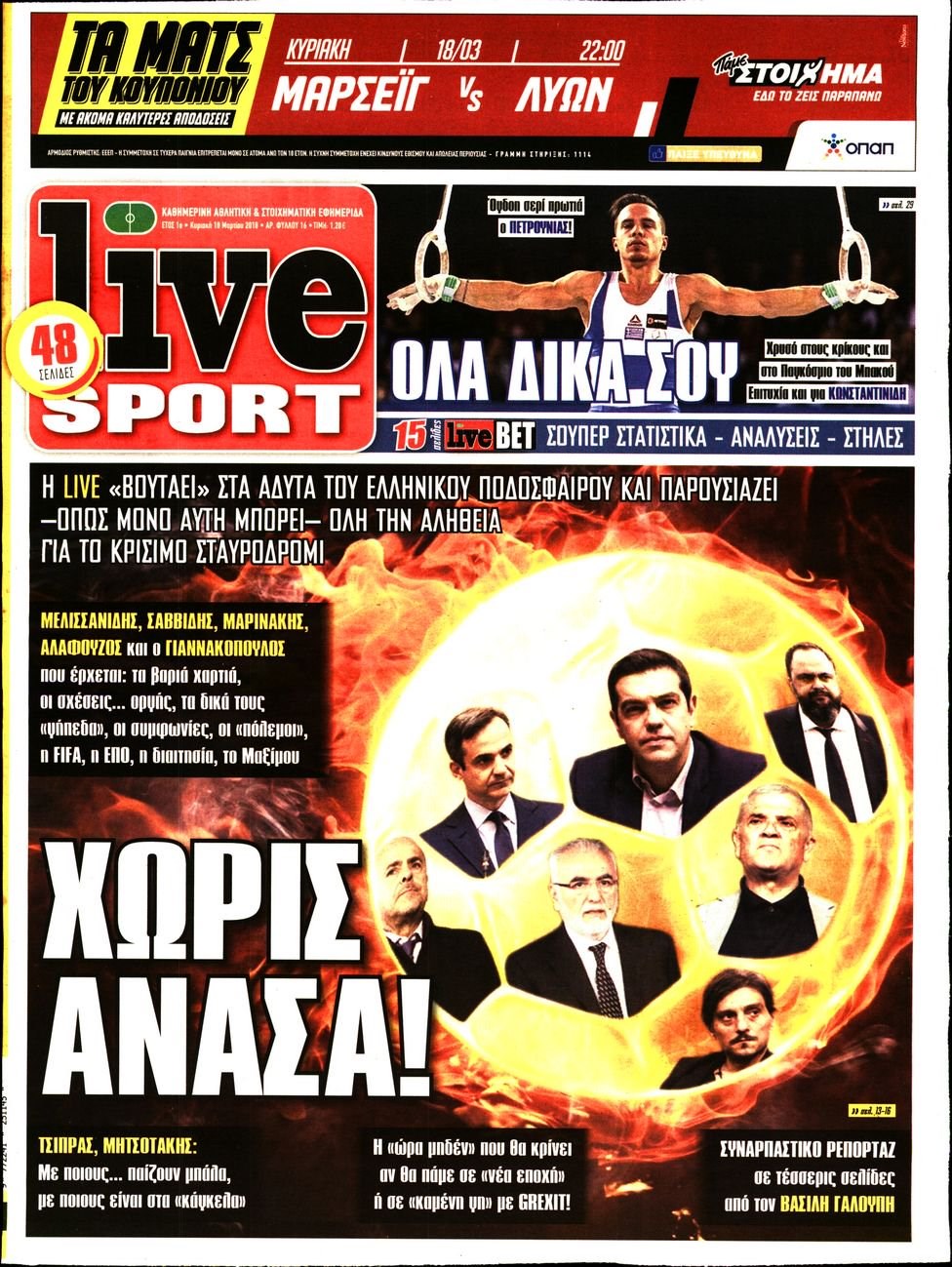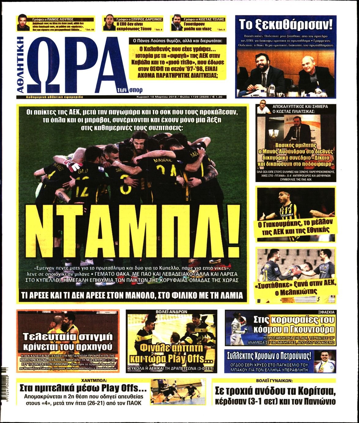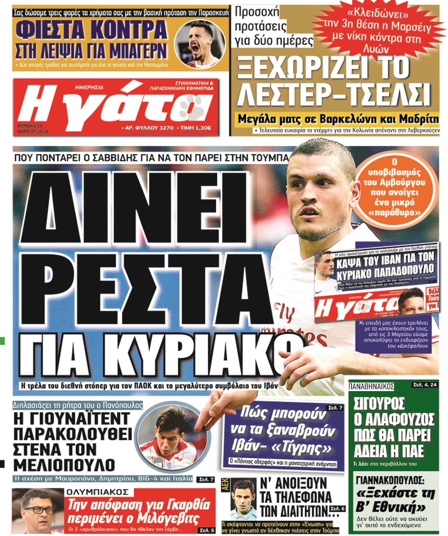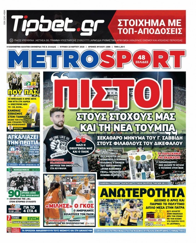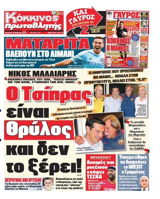 Οι αθλητικές εφημερίδες 18/3/2018 Κώστας Τεό 06:52, Κυριακή 18 Μαρτίου 2018 Media Διαβάστε τα σημερινά πρωτοσέλιδα των αθλητικών εφημερίδων: ΑΘΛΗΤΙΚΕΣ ΕΦΗΜΕΡΙΔΕΣ ΠΡΩΤΟΣΕΛΙΔΑ Μοιράσου το: σχολίασε κι εσύ (0 σχόλια) Ακολουθήστε το enikos.gr στο Google News και μάθετε πρώτοι όλες τις ειδήσεις Δείτε όλες τις τελευταίες ειδήσεις από την Ελλάδα και τον Κόσμο στο enikos.gr Ειδήσεις Ροή Ειδήσεων 2 ώρες πριν Μεσόγειος: Η διαδρομή του ρωσικού τάνκερ «Qendil» και η στοχευμένη επίθεση της Ουκρανίας με drone – Ο Πούτιν προειδοποίησε για αντίποινα 1 ώρα πριν Αττική: Θρίλερ με νεκρό βρέφος 5 μηνών – Κοιμόταν στο ίδιο κρεβάτι με τους γονείς του 2 ώρες πριν Από το Ορμένιο ως τα Μάλγαρα κι από τη Σιάτιστα μέχρι τη Νίκαια: Μπλόκα σε όλη την Ελλάδα – Το Σάββατο ανοίγουν τα διόδια οι αγρότες 2 ώρες πριν «Έλληνας Εσκομπάρ»: Φωτογραφίες με τους 4 τόνους κοκαΐνης που κατασχέθηκαν από το σκάφος «Ουρανία» 4 ώρες πριν Πούτιν: Σαρκαστικά μηνύματα, παράπονα και απρόοπτα στη συνέντευξη Τύπου – Η πρόταση γάμου on air και οι ερωτήσεις για τα αγγούρια και τους… εξωγήινους 3 ώρες πριν Τα 5 ζώδια που ευνοούνται στην ερωτική ζωή τους την επόμενη εβδομάδα – «Η ενέργεια του Αιγόκερου φέρνει αγάπη και σταθερότητα» 7 ώρες πριν Ειδικός μοιράζεται 6 κόλπα για να διατηρείστε σε φόρμα με πάνω από 40 ώρες εργασίας την εβδομάδα: «Προπονηθείτε πριν από τη δουλειά, όχι μετά» 4 ώρες πριν Αυτό το έξυπνο μαθηματικό κόλπο θα μπορούσε να αλλάξει τον τρόπο με τον οποίο οι επιστήμονες μελετούν τους σεισμούς 2 ώρες πριν Κουίζ για την παλιά Αθήνα: Αναγνωρίζετε την περιοχή; Έχετε περάσει 100% από εκεί 4 λεπτά πριν Νικ Ράινερ: Είχε διαγνωστεί με σχιζοφρένεια λίγο καιρό πριν δολοφονήσει τους γονείς του – Ήταν «απρόβλεπτος και επικίνδυνος» 9 λεπτά πριν ΗΠΑ: Νέος γύρος συνομιλιών στο Μαϊάμι – Σήμερα συνάντηση Γουίτκοφ με Ουκρανούς και Ευρωπαίους διαπραγματευτές, το Σαββατοκύριακο με Ρώσους αξιωματούχους 13 λεπτά πριν Νέα σειρά γραμματοσήμων «ΕΛΠΙΔΑ-Μαριάννα Β. Βαρδινογιάννη» 17 λεπτά πριν Ιταλία: Με εισιτήριο από την 1η Φεβρουαρίου 2026 η πρόσβαση στη Φοντάνα ντι Τρέβι – Πόσο θα κοστίζει 25 λεπτά πριν Μήπως έχετε χάσει τον εαυτό σας στη σχέση σας; 7 «αθόρυβες» υποχωρήσεις που μάλλον κάνατε, χωρίς να το συνειδητοποιήσετε ENIKOS NETWORK «Η σούπερ» γρίπη εξαπλώνεται στην Ευρώπη-Στοιχεία από το ECDC για την αποτελεσματικότητα του εμβολίου ΕΛΣΤΑΤ: Αύξηση κατά 1,7% των επαγγελματιών υγείας το 2024 Προκήρυξη ΑΣΕΠ για 397 μόνιμες προσλήψεις στο Δημόσιο: Βγήκαν τα προσωρινά αποτελέσματα – Πότε αρχίζει η υποβολή ενστάσεων Η απάντηση της κυβέρνησης στα αιτήματα των αγροτών: 16 έχουν ικανοποιηθεί, 4 βρίσκονται υπό επεξεργασία και 7 δεν είναι εφι... Χαρτογραφώντας το «σημείο χωρίς επιστροφή»: Για πρώτη φορά αποκαλύπτεται με λεπτομέρεια το ακανθώδες όριο της ατμόσφαιρας τ... Η Google καταργεί τη λειτουργία «dark web report» – Πώς θα μπορούν οι χρήστες να διαγράφουν τα δεδομένα τους περισσότερα 18:11 , Παρασκευή 19 Δεκεμβρίου 2025 Το σόι σου: Ο Άρης έρχεται στην Ελλάδα για τις γιορτές των Χριστουγέννων – Τι θα δούμε στο αποψινό εορταστικό επεισόδιο Ένα απολαυστικό, εορταστικό επεισόδιο της σειράς “Το σόι σου”, γεμάτο ευτράπελα αλ... 15:15 , Παρασκευή 19 Δεκεμβρίου 2025 Την Κυριακή με τη Realnews: Ό,τι και αν αγοράσεις, σκανάρεις και κερδίζεις! Την Κυριακή με τη Realnews: Ό,τι και αν αγοράσεις, σκανάρεις και κερδίζεις! Με το PADU app, το... 08:00 , Παρασκευή 19 Δεκεμβρίου 2025 Την Κυριακή με τη Realnews: Δωροεπιταγή 1