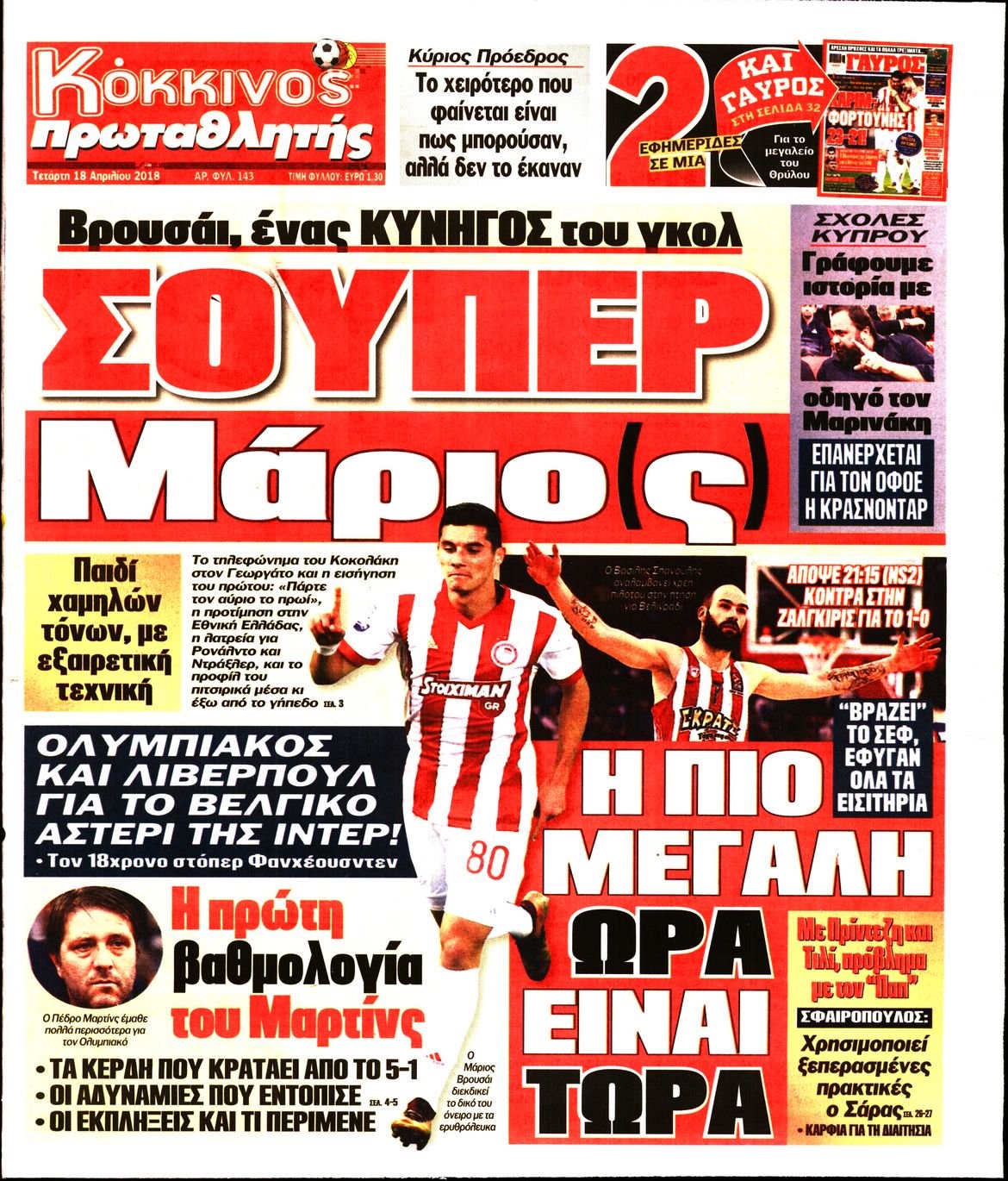 Οι αθλητικές εφημερίδες 18/4/2018 Enikos Newsroom 07:20, Τετάρτη 18 Απριλίου 2018 Media Διαβάστε τα σημερινά πρωτοσέλιδα των αθλητικών εφημερίδων: ΑΘΛΗΤΙΚΕΣ ΕΦΗΜΕΡΙΔΕΣ ΠΡΩΤΟΣΕΛΙΔΑ Μοιράσου το: σχολίασε κι εσύ (0 σχόλια) Ακολουθήστε το enikos.gr στο Google News και μάθετε πρώτοι όλες τις ειδήσεις Δείτε όλες τις τελευταίες ειδήσεις από την Ελλάδα και τον Κόσμο στο enikos.gr Ειδήσεις Ροή Ειδήσεων 4 ώρες πριν Από το Ορμένιο ως τα Μάλγαρα κι από τη Σιάτιστα μέχρι τη Νίκαια: Μπλόκα σε όλη την Ελλάδα – Το Σάββατο ανοίγουν τα διόδια οι αγρότες 1 ώρα πριν Εμπλοκή και αερομαχίες με οπλισμένα τουρκικά F-16 στο Αιγαίο 3 ώρες πριν Αττική: Θρίλερ με νεκρό βρέφος 5 μηνών – Κοιμόταν στο ίδιο κρεβάτι με τους γονείς του 59 λεπτά πριν Πούτιν: «Ναι, είμαι ερωτευμένος» – Βίντεο από τη σπάνια προσωπική παραδοχή του 3 ώρες πριν Μεσόγειος: Η διαδρομή του ρωσικού τάνκερ «Qendil» και η στοχευμένη επίθεση της Ουκρανίας με drone – Ο Πούτιν προειδοποίησε για αντίποινα 5 ώρες πριν Τα 5 ζώδια που ευνοούνται στην ερωτική ζωή τους την επόμενη εβδομάδα – «Η ενέργεια του Αιγόκερου φέρνει αγάπη και σταθερότητα» 6 ώρες πριν Αυτό το έξυπνο μαθηματικό κόλπο θα μπορούσε να αλλάξει τον τρόπο με τον οποίο οι επιστήμονες μελετούν τους σεισμούς 2 ώρες πριν Μήπως έχετε χάσει τον εαυτό σας στη σχέση σας; 7 «αθόρυβες» υποχωρήσεις που μάλλον κάνατε, χωρίς να το συνειδητοποιήσετε 4 ώρες πριν Κουίζ για την παλιά Αθήνα: Αναγνωρίζετε την περιοχή; Έχετε περάσει 100% από εκεί 5 λεπτά πριν Μπαράκ Ομπάμα: Τα βιβλία, οι ταινίες και τα τραγούδια που ξεχώρισε το 2025 – Πλήρης λίστα 10 λεπτά πριν Don’t Forget The Lyrics: Η Έλλη Κοκκίνου υποδέχεται 4 παίκτες που θα κάνουν τα πάντα για να μη χάσουν ούτε… μισή λέξη από τους στίχους 16 λεπτά πριν Πλεύρης στον ΑΝΤ1: Η βασική πολιτική που ψηφίστηκε από τους υπουργούς Μετανάστευσης είναι η δημιουργία κέντρων κράτησης μεταναστών στην Αφρική – ΒΙΝΤΕΟ 21 λεπτά πριν Η εξομολόγηση της Νίκης Σερέτη: «Δεν κρύβω ότι ήταν πάρα πολύ δύσκολο όλο αυτό που βίωσα» 26 λεπτά πριν Αγρότες: Κλειστό ξανά το ρεύμα εισόδου στα Μάλγαρα – Άνοιξαν τον κόμβο της Χαλκηδόνας ENIKOS NETWORK Έχετε πραγματικά μεγάλη καρδιά; 10 χαρακτηριστικά όσων έχουν καλοσύνη «Η σούπερ» γρίπη εξαπλώνεται στην Ευρώπη-Στοιχεία από το ECDC για την αποτελεσματικότητα του εμβολίου Επίδομα παιδιού: Πότε ανοίγει ξανά η πλατφόρμα για τις αιτήσεις Προκήρυξη ΑΣΕΠ για 397 μόνιμες προσλήψεις στο Δημόσιο: Βγήκαν τα προσωρινά αποτελέσματα – Πότε αρχίζει η υποβολή ενστάσεων Χαρτογραφώντας το «σημείο χωρίς επιστροφή»: Για πρώτη φορά αποκαλύπτεται με λεπτομέρεια το ακανθώδες όριο της ατμόσφαιρας τ... Η Google καταργεί τη λειτουργία «dark web report» – Πώς θα μπορούν οι χρήστες να διαγράφουν τα δεδομένα τους περισσότερα 20:37 , Παρασκευή 19 Δεκεμβρίου 2025 Don’t Forget The Lyrics: Η Έλλη Κοκκίνου υποδέχεται 4 παίκτες που θα κάνουν τα πάντα για να μη χάσουν ούτε… μισή λέξη από τους στίχους Το «Don’t Forget The Lyrics» επιστρέφει απόψε, Παρασκευή 19 Δεκεμβρίου, στις 21:00 με νέο επει... 19:31 , Παρασκευή 19 Δεκεμβρίου 2025 GNTM: Απόψε ο μεγάλος τελικός για τους 4 φιναλίστ Έπειτα από μήνες γεμάτους μόδα, δημιουργία και έντονες αναμετρήσεις, το GNTM 2025 κορυφώνεται,... 18:11 , Παρασκευή 19 Δεκεμβρίου 2025 Το σόι σου: Ο Άρης έρχεται στην Ελλάδα για τις γιορτές των Χριστουγέννων – Τι θα δούμε στο αποψινό εορταστικό επεισόδιο Ένα απολαυστικό, εορταστικό επεισόδιο της σειράς “Το σόι σου”, γεμάτο ευτράπελα αλ... 15:15 , Παρασκευή 19 Δεκεμβρίου 2025 Την Κυρι