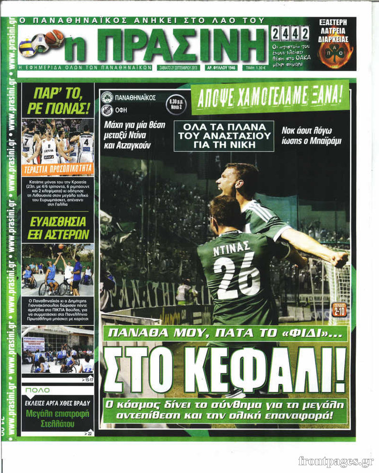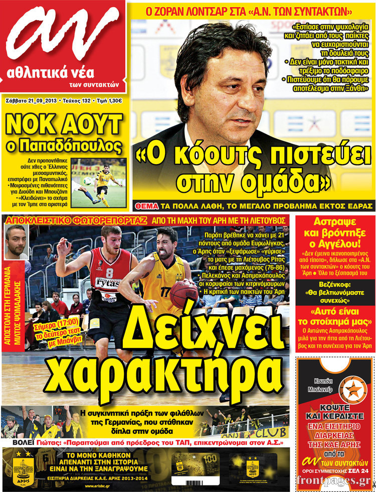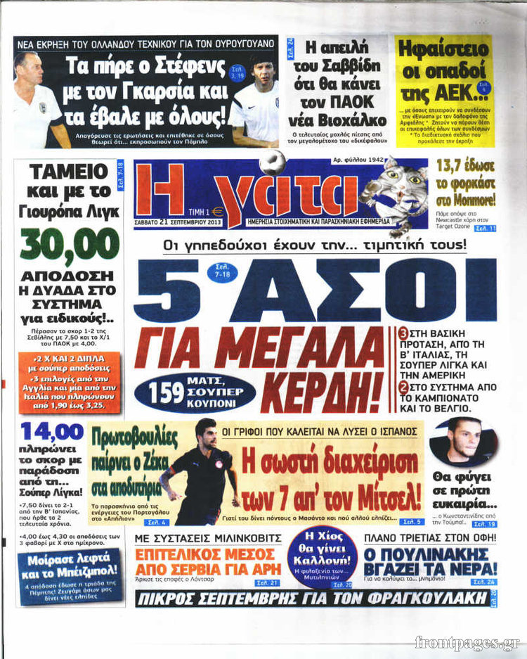 Οι αθλητικές εφημερίδες Enikos Newsroom 08:44, Σάββατο 21 Σεπτεμβρίου 2013 Media Οι αθλητικές εφημερίδες Διαβάστε τα πρωτοσέλιδα των αθλητικών εφημερίδων: ΑΘΛΗΤΙΚΕΣ ΕΦΗΜΕΡΙΔΕΣ ΕΦΗΜΕΡΙΔΕΣ ΠΡΩΤΟΣΕΛΙΔΑ Μοιράσου το: σχολίασε κι εσύ (0 σχόλια) Ακολουθήστε το enikos.gr στο Google News και μάθετε πρώτοι όλες τις ειδήσεις Δείτε όλες τις τελευταίες ειδήσεις από την Ελλάδα και τον Κόσμο στο enikos.gr Ειδήσεις Ροή Ειδήσεων 3 ώρες πριν Ακίλα Σάλεχ: «Άκυρο» το τουρκολιβυκό μνημόνιο λέει ο πρόεδρος της λιβυκής Βουλής – Ανοίγει ο διάλογος με Ελλάδα, Αίγυπτο και Τουρκία 7 ώρες πριν Αγρότες: Την Τρίτη η απόφαση για διάλογο ή κλιμάκωση των κινητοποιήσεών τους – Πώς χαρακτηρίζουν τις ανακοινώσεις Τσιάρα και οι επόμενες κινήσεις 7 ώρες πριν Τραμπ για Ουκρανία: «Είμαστε πιο κοντά σε συμφωνία από ποτέ» – «Πολυεθνική δύναμη» προτείνουν οι Ευρωπαίοι 7 ώρες πριν Κυψέλη: Η 16χρονη που μαχαίρωσε την 14χρονη είχε συλληφθεί 3 φορές στο παρελθόν – Έβριζε καθηγητές, έβαζε φωτιές σε κάδους και εκβίαζε συμμαθητές της 6 ώρες πριν Τρομοκρατική επίθεση στο Σίδνεϊ: Θλίψη για τα 15 θύματα – Οργή στην εβραϊκή κοινότητα που προειδοποιούσε επί δύο χρόνια 7 ώρες πριν Επιστήμονες ίσως έλυσαν το μυστήριο γύρω από τα Χόμπιτ – Νέα έρευνα αποκαλύπτει πώς εξαφανίστηκαν 8 ώρες πριν Ύπνος: Η αρχαία μορφή άσκησης που αποδεικνύεται αποτελεσματική στην αντιμετώπιση της αϋπνίας, σύμφωνα με μελέτη 9 ώρες πριν Αριθμολογία: Ο τυχερός σας αριθμός, ανάλογα με τον μήνα γέννησής σας 10 ώρες πριν Πώς να μην μαραίνονται γρήγορα τα κομμένα λουλούδια: Το λάθος στην τοποθέτηση του βάζου που πρέπει να αποφεύγετε 13 δευτερόλεπτα πριν Οι οικονομικές εφημερίδες 16/12/2025 6 λεπτά πριν Οι αθλητικές εφημερίδες 16/12/2025 10 λεπτά πριν Οι πολιτικές εφημερίδες 16/12/2025 18 λεπτά πριν Τα ζώδια σήμερα, Τρίτη 16 Δεκεμβρίου: Ιχθύες, δεν χρειάζεται να έχετε όλες τις απαντήσεις 26 λεπτά πριν Εφημερεύοντα φαρμακεία σε Αθήνα και Θεσσαλονίκη (16/12) ENIKOS NETWORK Πότε το χρόνιο ροχαλητό να αποτελέσει ένδειξη κινδύνου για την καρδιά; Τι λένε οι ειδικοί Μάριος Θεμιστοκλέους: Το ΕΣΥ ενισχύεται, εκσυγχρονίζεται, αλλάζει ΕΒΕΠ για αγροτικές κινητοποιήσεις: Κάθε επιπλέον εβδομάδα προσθέτει περίπου 200 εκατ. ευρώ ζημιά Τι προβλέπει το νομοσχέδιο του υπουργείου Εθνικής Άμυνας – Oι αλλαγές στους μισθούς Σύγχρονος Νοστράδαμος: Προειδοποιεί για «μεγάλο γεγονός» τους επόμενους μήνες που θα συγκλονίσει τη Βρετανία και τον κόσμο Τεστ παρατηρητικότητας: Μπορείτε να βρείτε τις 3 διαφορές στις εικόνες με έναν πιγκουίνο σε 14 δευτερόλεπτα περισσότερα 05:48 , Τρίτη 16 Δεκεμβρίου 2025 Οι οικονομικές εφημερίδες 16/12/2025 Διαβάστε τα πρωτοσέλιδα από τις οικονομικές εφημερίδες, σήμερα 16/12/2025. 05:43 , Τρίτη 16 Δεκεμβρίου 2025 Οι αθλητικές εφημερίδες 16/12/2025 Διαβάστε τα πρωτοσέλιδα από τις αθλητικές εφημερίδες, σήμερα 16/12/2025. 05:38 , Τρίτη 16 Δεκεμβρίου 2025 Οι πολιτικές εφημερίδες 16/12/2025 Διαβάστε τα πρωτοσέλιδα από τις πολιτικές εφημερίδες, σήμερα 16/12/2025. 21:35 , Δευτέρα 15 Δεκεμβρίου 2025 Το Σπίτι Δίπλα Στο Ποτάμι: Η Ιουλία και ο Φωκάς μετακομίζουν στη Ρόδο – Δύο νέοι χαρακτήρες μπαίνουν στη σειρά Δύο νέοι, κομβικοί χαρακτήρες κάνουν την εμφάνισή τους αυτή την εβδομάδα στην αγαπημένη σειρά ... ΤΕΛΕΥΤΑΙΕΣ ΕΙΔΗΣΕΙΣ 6 λεπτά πριν Οι αθλητικές εφημερίδες 16/12/2025 10 λεπτά πριν Οι πολιτικές εφημερίδες 16/12/2025 18 λεπτά πριν Τα ζώδια σήμερα, Τρίτη 16 Δεκεμβρίου: Ιχθύες, δεν... 26 λεπτά πριν Εφημερεύοντα φαρμακεία σε Αθήνα και Θεσσαλονίκη (16