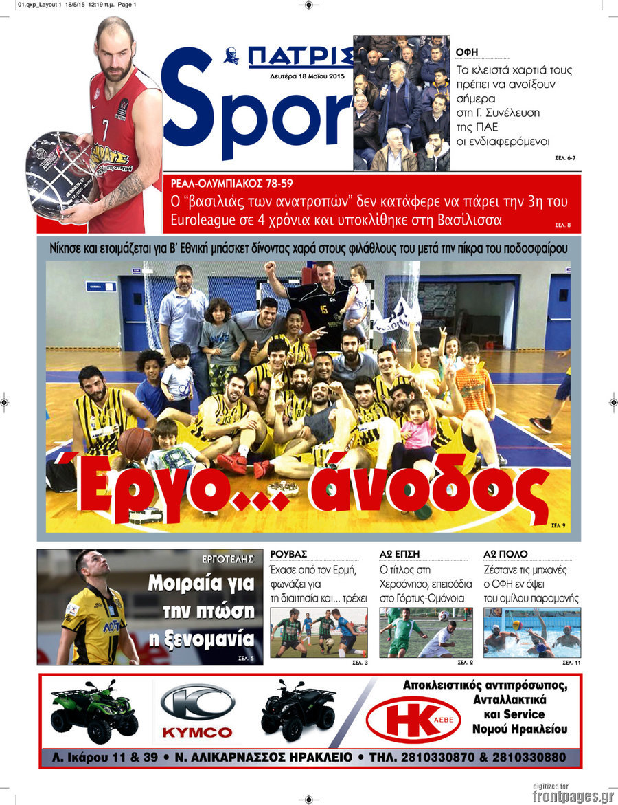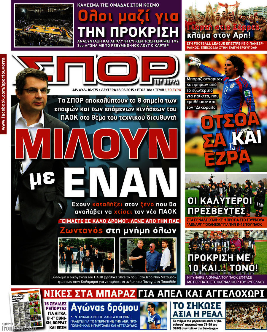 Οι αθλητικές εφημερίδες 18/5/2015 Enikos Newsroom 07:27, Δευτέρα 18 Μαΐου 2015 Media Διαβάστε τα σημερινά πρωτοσέλιδα των αθλητικών εφημερίδων: ΑΘΛΗΤΙΚΕΣ ΕΦΗΜΕΡΙΔΕΣ ΠΡΩΤΟΣΕΛΙΔΑ Μοιράσου το: σχολίασε κι εσύ (0 σχόλια) Ακολουθήστε το enikos.gr στο Google News και μάθετε πρώτοι όλες τις ειδήσεις Δείτε όλες τις τελευταίες ειδήσεις από την Ελλάδα και τον Κόσμο στο enikos.gr Ειδήσεις Ροή Ειδήσεων 5 ώρες πριν Χριστούγεννα στα μπλόκα: Επιμένουν στις κινητοποιήσεις τους οι αγρότες – Ανοίγουν τα διόδια το Σαββατοκύριακο 5 ώρες πριν Ουκρανία: Η άνευ προηγουμένου επίθεση σε ρωσικό τάνκερ στη Μεσόγειο και το μήνυμα προς στον Πούτιν – Το «μακρύ χέρι» του Κιέβου 5 ώρες πριν Πούτιν: Τα μηνύματα σε Ευρώπη και ΝΑΤΟ από το μαραθώνιο «σόου» του – Η απαίτηση για «σεβασμό» και η ειρήνη «με τους όρους» της Μόσχας 5 ώρες πριν Τραμπ: Δεν αποκλείει την πιθανότητα ενός πολέμου στη Βενεζουέλα – «Ο Μαδούρο ξέρει καλύτερα από τον καθένα τι ακριβώς θέλω» 6 ώρες πριν Συνεχίζει να προκαλεί ο Μίτσκοσκι: «Για μένα το όνομα Μακεδονία είναι ιερό» 5 ώρες πριν Ανακαλύφθηκαν αρχαία χρυσά νομίσματα 2.200 ετών που απεικονίζουν τον θεό Απόλλωνα – Η άγνωστη σύνδεση με τον Φίλιππο Β΄ της Μακεδονίας 6 ώρες πριν Ύπνος: Μια κρυφή κατάσταση του εγκεφάλου πριν από τον ύπνο μπορεί να είναι το “κλειδί” για υψηλή ευφυΐα και δημιουργικότητα 7 ώρες πριν Αριθμολογία: Οι άνθρωποι που έχουν γεννηθεί αυτές τις 4 ημερομηνίες, συχνά παρεξηγούνται – «Η καλοσύνη τους κρύβει τεράστια δύναμη» 8 ώρες πριν Ξεχάστε το καθάρισμα το Σαββατοκύριακο: Ο «κανόνας των 20 λεπτών» που θα σας λύσει τα χέρια 16 λεπτά πριν Ταμίλα Κουλίεβα: «Δεν θέλω να είμαι κάποια που πορεύεται συνεχώς με τις ίδιες αναφορές» 31 λεπτά πριν Η Ελλάδα προσχωρεί στη Διεθνή Επιτροπή Αποζημιώσεων για την Ουκρανία 46 λεπτά πριν GNTM: Η Ξένια Τσίρκοβα αναδείχθηκε μεγάλη νικήτρια και πήρε τις 50.000 ευρώ – Ποιος βρέθηκε σε απόσταση αναπνοής; 1 ώρα πριν Θεσσαλονίκη: Εξαφανίστηκε 13χρονος από χώρο φιλοξενίας ασυνόδευτων ανηλίκων στο Ωραιόκαστρο 1 ώρα πριν Ντόναλντ Τραμπ: «Πολύ βαριά αντίποινα» στη Συρία – «Πλήττουμε πολύ δυνατά οχυρά του Ισλαμικού Κράτους» ENIKOS NETWORK Το ΕΚΑΒ τιμήθηκε από την Ακαδημία Αθηνών για τα 40 χρόνια προσφοράς του Έχετε πραγματικά μεγάλη καρδιά; 10 χαρακτηριστικά όσων έχουν καλοσύνη Αναστολή μέτρων αναγκαστικής εκτέλεσης για κτηνοτρόφους που πλήττονται από την ευλογιά των αιγοπροβάτων Πλήρης επάρκεια προϊόντων στις λαϊκές της Αττικής, παρά τις αγροτικές κινητοποιήσεις – Τι απαντούν οι πωλητές Χαρτογραφώντας το «σημείο χωρίς επιστροφή»: Για πρώτη φορά αποκαλύπτεται με λεπτομέρεια το ακανθώδες όριο της ατμόσφαιρας τ... Η Google καταργεί τη λειτουργία «dark web report» – Πώς θα μπορούν οι χρήστες να διαγράφουν τα δεδομένα τους περισσότερα 02:50 , Σάββατο 20 Δεκεμβρίου 2025 GNTM: Η Ξένια Τσίρκοβα αναδείχθηκε μεγάλη νικήτρια και πήρε τις 50.000 ευρώ – Ποιος βρέθηκε σε απόσταση αναπνοής; Με φαντασμαγορικό τρόπο ολοκληρώθηκε το βράδυ της Παρασκευής ο μεγάλος τελικός του GNTM, μέσα ... 22:42 , Παρασκευή 19 Δεκεμβρίου 2025 Γιώργος Γιαννόπουλος για “Το σόι σου”: “Είναι ευτυχία και ευλογία αυτή η σειρά” «Είναι ευτυχία και ευλογία η συγκυρία αυτής της σειράς», θα πει ο Γιώργος Γιαννόπουλος -ο αγαπ... 20:37 , Παρασκευή 19 Δεκεμβρίου 2025 Don’t Forget The Lyrics: Η Έλλη Κοκκίνου υποδέχεται 4 παίκτες που θα κάνουν τα πάντα για να μη χάσουν ούτε… μισή λέξη από τους στίχους Το «Don’t Forget The Lyrics» επιστρέφει απόψε, Παρασκ