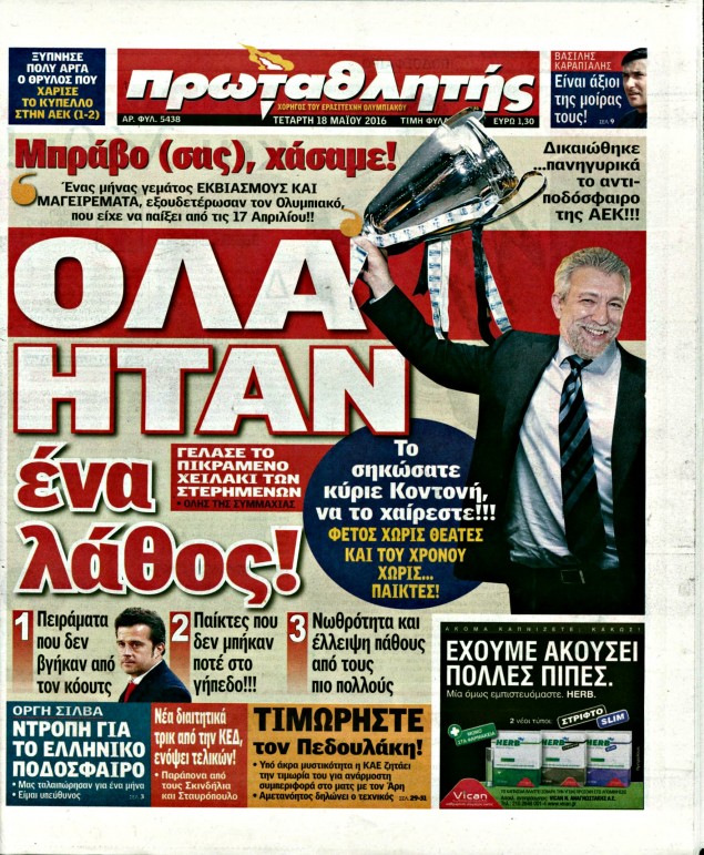 Οι αθλητικές εφημερίδες 18/5/2016 Enikos Newsroom 04:46, Τετάρτη 18 Μαΐου 2016 Media Διαβάστε τα σημερινά πρωτοσέλιδα των αθλητικών εφημερίδων: ΑΘΛΗΤΙΚΕΣ ΕΦΗΜΕΡΙΔΕΣ ΠΡΩΤΟΣΕΛΙΔΑ Μοιράσου το: σχολίασε κι εσύ (0 σχόλια) Ακολουθήστε το enikos.gr στο Google News και μάθετε πρώτοι όλες τις ειδήσεις Δείτε όλες τις τελευταίες ειδήσεις από την Ελλάδα και τον Κόσμο στο enikos.gr Ειδήσεις Ροή Ειδήσεων 4 ώρες πριν Μεσόγειος: Η διαδρομή του ρωσικού τάνκερ «Qendil» και η στοχευμένη επίθεση της Ουκρανίας με drone – Ο Πούτιν προειδοποίησε για αντίποινα 25 λεπτά πριν Αγρότες: Έκλεισαν για μία ώρα την παρακαμπτήρια της Ιόνιας Οδού στη θέση Χαλίκι 2 ώρες πριν Εμπλοκή και αερομαχίες με οπλισμένα τουρκικά F-16 στο Αιγαίο 2 ώρες πριν Πούτιν: «Ναι, είμαι ερωτευμένος» – Βίντεο από τη σπάνια προσωπική παραδοχή του 28 λεπτά πριν Ανδρέας Λυκουρέντζος: Υπέβαλε την παραίτησή του ο πρόεδρος του ΕΛΓΑ, αλλά δεν έγινε δεκτή – Όλο το παρασκήνιο 38 λεπτά πριν Αριθμολογία: Οι άνθρωποι που έχουν γεννηθεί αυτές τις 4 ημερομηνίες, συχνά παρεξηγούνται – «Η καλοσύνη τους κρύβει τεράστια δύναμη» 3 ώρες πριν Μήπως έχετε χάσει τον εαυτό σας στη σχέση σας; 7 «αθόρυβες» υποχωρήσεις που μάλλον κάνατε, χωρίς να το συνειδητοποιήσετε 2 ώρες πριν Ξεχάστε το καθάρισμα το Σαββατοκύριακο: Ο «κανόνας των 20 λεπτών» που θα σας λύσει τα χέρια 5 ώρες πριν Κουίζ για την παλιά Αθήνα: Αναγνωρίζετε την περιοχή; Έχετε περάσει 100% από εκεί 1 λεπτό πριν Ολυμπιακός – Βιλερμπάν: Μάτωσε στο πρόσωπο ο Παπανικολάου έπειτα από αγκωνιά του Βοτιέ – ΦΩΤΟ 9 λεπτά πριν Συνεχίζει να προκαλεί ο Μίτσκοσκι: «Για μένα το όνομα Μακεδονία είναι ιερό» 19 λεπτά πριν Ο Γιάννης Κακλέας σκηνοθετεί Βερόνικα Δαβάκη και Ιβάν Σβιτάιλο στη «Locandiera» 25 λεπτά πριν Αγρότες: Έκλεισαν για μία ώρα την παρακαμπτήρια της Ιόνιας Οδού στη θέση Χαλίκι 28 λεπτά πριν Ανδρέας Λυκουρέντζος: Υπέβαλε την παραίτησή του ο πρόεδρος του ΕΛΓΑ, αλλά δεν έγινε δεκτή – Όλο το παρασκήνιο ENIKOS NETWORK Το ΕΚΑΒ τιμήθηκε από την Ακαδημία Αθηνών για τα 40 χρόνια προσφοράς του Έχετε πραγματικά μεγάλη καρδιά; 10 χαρακτηριστικά όσων έχουν καλοσύνη Έρχονται νέες προσλήψεις σε Δήμο – Όλες οι λεπτομέρειες Επίδομα παιδιού: Πότε ανοίγει ξανά η πλατφόρμα για τις αιτήσεις Χαρτογραφώντας το «σημείο χωρίς επιστροφή»: Για πρώτη φορά αποκαλύπτεται με λεπτομέρεια το ακανθώδες όριο της ατμόσφαιρας τ... Η Google καταργεί τη λειτουργία «dark web report» – Πώς θα μπορούν οι χρήστες να διαγράφουν τα δεδομένα τους περισσότερα 20:37 , Παρασκευή 19 Δεκεμβρίου 2025 Don’t Forget The Lyrics: Η Έλλη Κοκκίνου υποδέχεται 4 παίκτες που θα κάνουν τα πάντα για να μη χάσουν ούτε… μισή λέξη από τους στίχους Το «Don’t Forget The Lyrics» επιστρέφει απόψε, Παρασκευή 19 Δεκεμβρίου, στις 21:00 με νέο επει... 19:31 , Παρασκευή 19 Δεκεμβρίου 2025 GNTM: Απόψε ο μεγάλος τελικός για τους 4 φιναλίστ Έπειτα από μήνες γεμάτους μόδα, δημιουργία και έντονες αναμετρήσεις, το GNTM 2025 κορυφώνεται,... 18:11 , Παρασκευή 19 Δεκεμβρίου 2025 Το σόι σου: Ο Άρης έρχεται στην Ελλάδα για τις γιορτές των Χριστουγέννων – Τι θα δούμε στο αποψινό εορταστικό επεισόδιο Ένα απολαυστικό, εορταστικό επεισόδιο της σειράς “Το σόι σου”, γεμάτο ευτράπελα αλ... 15:15 , Παρασκευή 19 Δεκεμβρίου 2025 Την Κυριακή με τη Realnews: Ό,τι και αν αγοράσεις, σκανάρεις και κερδίζεις! Την Κυριακή με τη Realnews: Ό,τι και αν αγοράσεις, σκανάρεις και κερδίζεις! Με το PADU app, το... ΤΕΛΕΥΤΑΙΕΣ ΕΙΔΗΣΕΙΣ 9 λεπτά πριν Συνεχίζει να προκαλεί ο Μίτσκοσκι: «Για μένα το όνομα... 19 λεπτά πρι