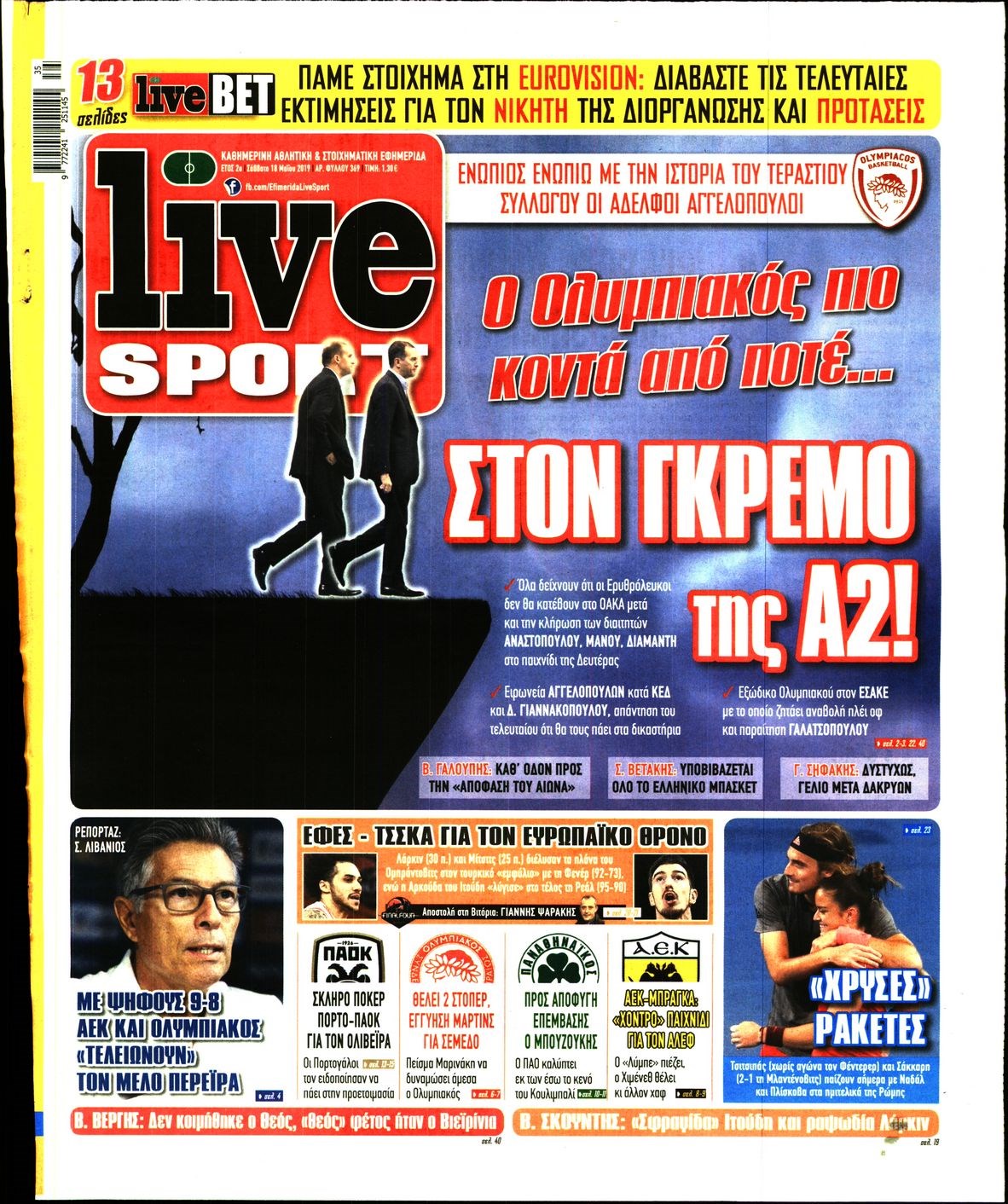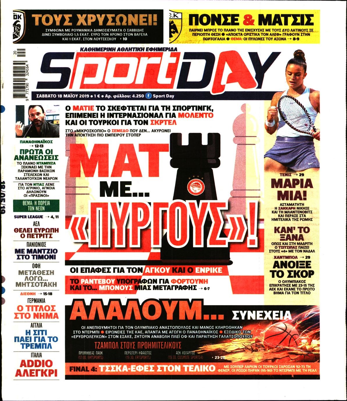 Οι αθλητικές εφημερίδες 18/5/2019 Enikos Newsroom 06:55, Σάββατο 18 Μαΐου 2019 Media Διαβάστε τα πρωτοσέλιδα των αθλητικών εφημερίδων: ΑΘΛΗΤΙΚΕΣ ΕΦΗΜΕΡΙΔΕΣ ΠΡΩΤΟΣΕΛΙΔΑ Μοιράσου το: σχολίασε κι εσύ (0 σχόλια) Ακολουθήστε το enikos.gr στο Google News και μάθετε πρώτοι όλες τις ειδήσεις Δείτε όλες τις τελευταίες ειδήσεις από την Ελλάδα και τον Κόσμο στο enikos.gr Ειδήσεις Ροή Ειδήσεων 2 ώρες πριν Χριστούγεννα στα μπλόκα: Επιμένουν στις κινητοποιήσεις τους οι αγρότες – Ανοίγουν τα διόδια το Σαββατοκύριακο 3 ώρες πριν Ουκρανία: Η άνευ προηγουμένου επίθεση σε ρωσικό τάνκερ στη Μεσόγειο και το μήνυμα προς στον Πούτιν – Το «μακρύ χέρι» του Κιέβου 2 ώρες πριν Πούτιν: Τα μηνύματα σε Ευρώπη και ΝΑΤΟ από το μαραθώνιο «σόου» του – Η απαίτηση για «σεβασμό» και η ειρήνη «με τους όρους» της Μόσχας 3 ώρες πριν Τραμπ: Δεν αποκλείει την πιθανότητα ενός πολέμου στη Βενεζουέλα – «Ο Μαδούρο ξέρει καλύτερα από τον καθένα τι ακριβώς θέλω» 3 ώρες πριν Συνεχίζει να προκαλεί ο Μίτσκοσκι: «Για μένα το όνομα Μακεδονία είναι ιερό» 2 ώρες πριν Ανακαλύφθηκαν αρχαία χρυσά νομίσματα 2.200 ετών που απεικονίζουν τον θεό Απόλλωνα – Η άγνωστη σύνδεση με τον Φίλιππο Β΄ της Μακεδονίας 3 ώρες πριν Ύπνος: Μια κρυφή κατάσταση του εγκεφάλου πριν από τον ύπνο μπορεί να είναι το “κλειδί” για υψηλή ευφυΐα και δημιουργικότητα 4 ώρες πριν Αριθμολογία: Οι άνθρωποι που έχουν γεννηθεί αυτές τις 4 ημερομηνίες, συχνά παρεξηγούνται – «Η καλοσύνη τους κρύβει τεράστια δύναμη» 5 ώρες πριν Ξεχάστε το καθάρισμα το Σαββατοκύριακο: Ο «κανόνας των 20 λεπτών» που θα σας λύσει τα χέρια 38 δευτερόλεπτα πριν Ουκρανία: Ολοκληρώθηκαν οι συνομιλίες με τους Αμερικανούς κι Ευρωπαίους διαπραγματευτές 14 λεπτά πριν Μπαρτσελόνα – Μπασκόνια 134-124: Οι «μπλαουγκράνα» πήραν το ματς της χρονιάς ύστερα από τρεις παρατάσεις 29 λεπτά πριν Φαίη Σκορδά: «Παλιότερα τα κομπλιμέντα τα προσπερνούσα, τώρα τα έχω ανάγκη» 45 λεπτά πριν Βασίλης Σπανούλης: Δεν εμφανίστηκε ούτε ένας δημοσιογράφος στην συνέντευξη Τύπου – «Καλησπέρα στον… κανέναν», δείτε βίντεο 56 λεπτά πριν Πόλεμος στην Ουκρανία: Εφτά νεκροί από ρωσική πυραυλική επίθεση στο λιμάνι της Οδησσού ENIKOS NETWORK Το ΕΚΑΒ τιμήθηκε από την Ακαδημία Αθηνών για τα 40 χρόνια προσφοράς του Έχετε πραγματικά μεγάλη καρδιά; 10 χαρακτηριστικά όσων έχουν καλοσύνη Αναστολή μέτρων αναγκαστικής εκτέλεσης για κτηνοτρόφους που πλήττονται από την ευλογιά των αιγοπροβάτων Πλήρης επάρκεια προϊόντων στις λαϊκές της Αττικής, παρά τις αγροτικές κινητοποιήσεις – Τι απαντούν οι πωλητές Χαρτογραφώντας το «σημείο χωρίς επιστροφή»: Για πρώτη φορά αποκαλύπτεται με λεπτομέρεια το ακανθώδες όριο της ατμόσφαιρας τ... Η Google καταργεί τη λειτουργία «dark web report» – Πώς θα μπορούν οι χρήστες να διαγράφουν τα δεδομένα τους περισσότερα 22:42 , Παρασκευή 19 Δεκεμβρίου 2025 Γιώργος Γιαννόπουλος για “Το σόι σου”: “Είναι ευτυχία και ευλογία αυτή η σειρά” «Είναι ευτυχία και ευλογία η συγκυρία αυτής της σειράς», θα πει ο Γιώργος Γιαννόπουλος -ο αγαπ... 20:37 , Παρασκευή 19 Δεκεμβρίου 2025 Don’t Forget The Lyrics: Η Έλλη Κοκκίνου υποδέχεται 4 παίκτες που θα κάνουν τα πάντα για να μη χάσουν ούτε… μισή λέξη από τους στίχους Το «Don’t Forget The Lyrics» επιστρέφει απόψε, Παρασκευή 19 Δεκεμβρίου, στις 21:00 με νέο επει... 19:31 , Παρασκευή 19 Δεκεμβρίου 2025 GNTM: Απόψε ο μεγάλος τελικός για τους 4 φιναλίστ Έπειτα από μήνες γεμάτους μόδα, δημιουργία και έντονες αναμετρήσεις, το GNTM 2025 κορυφώνεται,... 18:11