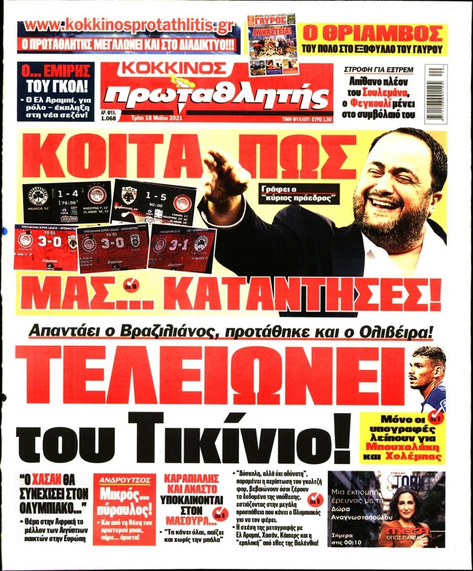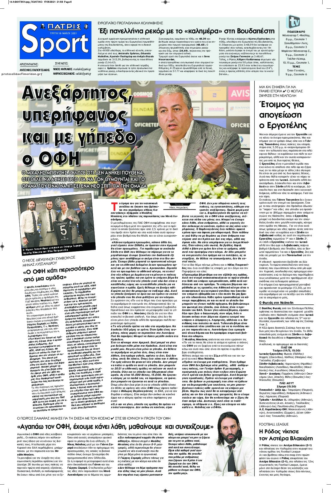 Οι αθλητικές εφημερίδες 18/5/2021 Σήφης Γαρυφαλάκης 06:20, Τρίτη 18 Μαΐου 2021 Media Διαβάστε τα πρωτοσέλιδα των αθλητικών εφημερίδων. ΑΘΛΗΤΙΚΕΣ ΕΦΗΜΕΡΙΔΕΣ ΕΦΗΜΕΡΙΔΕΣ ΠΡΩΤΟΣΕΛΙΔΑ ΠΡΩΤΟΣΕΛΙΔΑ ΕΦΗΜΕΡΙΔΩΝ Μοιράσου το: σχολίασε κι εσύ (0 σχόλια) Ακολουθήστε το enikos.gr στο Google News και μάθετε πρώτοι όλες τις ειδήσεις Δείτε όλες τις τελευταίες ειδήσεις από την Ελλάδα και τον Κόσμο στο enikos.gr Ειδήσεις Ροή Ειδήσεων 24 λεπτά πριν Νίκος Παππάς: Άφαντος παραμένει ο ευρωβουλευτής μετά την επίθεση στον Νίκο Γιαννόπουλο 1 ώρα πριν Οι αγρότες δεν φεύγουν από τα μπλόκα: Πολύωροι αποκλεισμοί στα τελωνεία Ευζώνων, Νίκης, Προμαχώνα και Εξοχής 40 λεπτά πριν Συναγερμός και στην Ελλάδα για τη «σούπερ γρίπη»: Πόσο σοβαρή είναι και ποιοι θεωρούνται πιο ευάλωτοι – 3 ειδικοί μιλούν στο enikos.gr 2 ώρες πριν Ντόναλντ Τραμπ: Το διάγγελμα, η πτώση στις δημοσκοπήσεις και το… χάος που κληρονόμησε από τον Μπάιντεν 2 ώρες πριν Μάριο Πινέιδα: Ο αμυντικός του Ισημερινού σκοτώθηκε σε ένοπλη επίθεση στη Γκουαγιακίλ 1 ώρα πριν Τα 4 ζώδια που λαμβάνουν ένα ισχυρό σημάδι από το σύμπαν – «Αποκαλύπτεται κάτι που μπορεί να αλλάξει τη ζωή μας» 5 ώρες πριν Καούρα: Το μπαχαρικό που είναι «εξίσου αποτελεσματικό» με την ομεπραζόλη, σύμφωνα με ειδικούς 2 ώρες πριν Η σύζυγός του παραπονιέται για τα χρήματα που της δίνει για ψώνια κάθε μήνα – «Λέει ότι νιώθει φτωχή και της είπα να βρει δουλειά» 1 ημέρα πριν 20 χρόνια τα Χριστούγεννα ξεκινούν στα Public με μεγάλη ποικιλία σε δώρα! 5 λεπτά πριν Εξεταστική ΟΠΕΚΕΠΕ – Παπασταύρου: Δώσαμε κατεύθυνση στον Σημανδράκο για τήρηση της νομιμότητας – Τι είπε για τη σχέση με τον Αυγενάκη 10 λεπτά πριν Βορίδης για ΟΠΕΚΕΠΕ: Η αντιπολίτευση υπονομεύει την Εξεταστική – Αντί να είναι σοβαρή διαδικασία, γίνεται μια επικοινωνιακή φούσκα 15 λεπτά πριν Μαρία Τζομπανάκη για τον σύζυγό της: Έχουμε να βρεθούμε 2 μήνες – Αν δεν τον βρω, ανησυχώ 20 λεπτά πριν Αν κάνετε συνεχώς αυτά τα 8 πράγματα με τα κατοικίδιά σας, σας λείπει η ανθρώπινη επαφή 24 λεπτά πριν Νίκος Παππάς: Άφαντος παραμένει ο ευρωβουλευτής μετά την επίθεση στον Νίκο Γιαννόπουλο ENIKOS NETWORK Επαναστατική ανακάλυψη από το MIT: Νανοσωματίδια καταπολεμούν τον καρκίνο των ωοθηκών με τη βοήθεια του ανοσοποιητικού Τα παράδοξα της φαρμακευτικής δαπάνης και οι προβλέψεις για το μέλλον Δάνεια σε ελβετικό φράγκο: Οι 3 κατηγορίες ρύθμισης – Όσα προβλέπει η τροπολογία που κατατέθηκε στη Βουλή Δώρο Χριστουγέννων: Έως αύριο η καταβολή του – Τι πρέπει να κάνουν όσοι δεν το λάβουν Χαρτογραφώντας το «σημείο χωρίς επιστροφή»: Για πρώτη φορά αποκαλύπτεται με λεπτομέρεια το ακανθώδες όριο της ατμόσφαιρας τ... Η Google καταργεί τη λειτουργία «dark web report» – Πώς θα μπορούν οι χρήστες να διαγράφουν τα δεδομένα τους περισσότερα 08:00 , Πέμπτη 18 Δεκεμβρίου 2025 Την Κυριακή με τη Realnews: Δωροεπιταγή 10€ Δωροεπιταγή αξίας 10€ για αγορές άνω των 60€ από τα πολυκαταστήματα FactoryOutlet H προσφορά ι... 07:50 , Πέμπτη 18 Δεκεμβρίου 2025 «Το σόι σου»: Backstage στα γυρίσματα για το εορταστικό επεισόδιο «Το σόι σου» φορά τα γιορτινά του για τα Χριστούγεννα και η Όλγα Λαφαζάνη, με την κάμερα του «... 07:36 , Πέμπτη 18 Δεκεμβρίου 2025 Οι αθλητικές μεταδόσεις 18/12/2025 – Πού θα δείτε τον αγώνα της ΑΕΚ με την Κραϊόβα για το Conference League Τα ματς ΑΕΚ – Ουνιβερσιτάτεα Κραϊόβα για το Conference League και Παναθηναϊκός – Χάποελ Τελ Αβ... 05:48 , Πέμπτη 18 Δεκεμβρίου 2025 Οι οικονομικές εφημερίδες 18/12/2025 Διαβάστε τα πρωτοσέλιδα από τις 