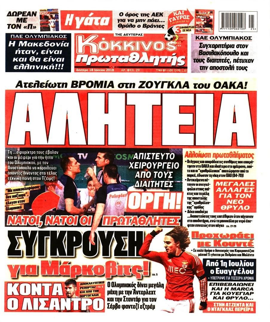 Οι αθλητικές εφημερίδες 18/6/2018 Enikos Newsroom 06:48, Δευτέρα 18 Ιουνίου 2018 Media Διαβάστε τα πρωτοσέλιδα ΑΘΛΗΤΙΚΕΣ ΕΦΗΜΕΡΙΔΕΣ Μοιράσου το: σχολίασε κι εσύ (0 σχόλια) Ακολουθήστε το enikos.gr στο Google News και μάθετε πρώτοι όλες τις ειδήσεις Δείτε όλες τις τελευταίες ειδήσεις από την Ελλάδα και τον Κόσμο στο enikos.gr Ειδήσεις Ροή Ειδήσεων 9 ώρες πριν Χριστούγεννα στα μπλόκα: Επιμένουν στις κινητοποιήσεις τους οι αγρότες – Ανοίγουν τα διόδια το Σαββατοκύριακο 1 ώρα πριν Σαρωτικοί οι έλεγχοι στους δρόμους ενόψει εορτών – Μπλόκα της τροχαίας σε κεντρικές αρτηρίες της Αττικής 8 ώρες πριν Πούτιν: Τα μηνύματα σε Ευρώπη και ΝΑΤΟ από το μαραθώνιο «σόου» του – Η απαίτηση για «σεβασμό» και η ειρήνη «με τους όρους» της Μόσχας 7 ώρες πριν ΗΠΑ: Η κυβέρνηση του Ντόναλντ Τραμπ άρχισε να δημοσιοποιεί τα αρχεία Έπσταϊν 8 ώρες πριν Άνω Λιόσια: Πυροβολισμοί σε επιχείρηση με χαλιά – Εντοπίστηκαν 10 κάλυκες 1 ώρα πριν Αυγά: Πόσα μπορείτε να τρώτε την ημέρα με ασφάλεια για μέγιστη πρόσληψη πρωτεΐνης 2 ώρες πριν Τα ζώδια σήμερα, Σάββατο 20 Δεκεμβρίου: Παρθένοι, το σύμπαν σας δίνει το κλειδί 8 ώρες πριν Ανακαλύφθηκαν αρχαία χρυσά νομίσματα 2.200 ετών που απεικονίζουν τον θεό Απόλλωνα – Η άγνωστη σύνδεση με τον Φίλιππο Β΄ της Μακεδονίας 1 ώρα πριν Οπτική ψευδαίσθηση: Μόνο αν είσαι ο Σέρλοκ Χολμς θα βρεις τον αριθμό «87» σε 7 δευτερόλεπτα 6 λεπτά πριν Εορτολόγιο: Ποιοι γιορτάζουν σήμερα 20 Δεκεμβρίου 14 λεπτά πριν Συρία: Μπαράζ αμερικανικών επιδρομών εναντίον του ISIS – «Πλήττουμε δυνατά οχυρά του ΙΚ» λέει ο Ντόναλντ Τραμπ 22 λεπτά πριν Αναβολή συμφωνίας ΕΕ-Mercosur: Ο χρόνος «δεν είναι απεριόριστος» προειδοποιεί η Παραγουάη 37 λεπτά πριν Κίριλ Ντμίτριεφ: Στις ΗΠΑ ο απεσταλμένος της Ρωσίας για συνομιλίες με τους ομολόγους του, Γουίτκοφ και Κούσνερ 44 λεπτά πριν ΔΕΔΔΗΕ: Διακοπές ρεύματος σήμερα (20/12) στην Αθήνα και σε άλλες 7 περιοχές της Αττικής ENIKOS NETWORK Πρέπει να αποδέχεστε ή να απορρίπτετε όλα τα cookies; Ένας ειδικός εξηγεί Η αγαπημένη λιχουδιά των πόνι που μπορεί να ενισχύσει όραση, εγκέφαλο και ανοσοποιητικό Αναστολή μέτρων αναγκαστικής εκτέλεσης για κτηνοτρόφους που πλήττονται από την ευλογιά των αιγοπροβάτων Πλήρης επάρκεια προϊόντων στις λαϊκές της Αττικής, παρά τις αγροτικές κινητοποιήσεις – Τι απαντούν οι πωλητές Χαρτογραφώντας το «σημείο χωρίς επιστροφή»: Για πρώτη φορά αποκαλύπτεται με λεπτομέρεια το ακανθώδες όριο της ατμόσφαιρας τ... Η Google καταργεί τη λειτουργία «dark web report» – Πώς θα μπορούν οι χρήστες να διαγράφουν τα δεδομένα τους περισσότερα 05:48 , Σάββατο 20 Δεκεμβρίου 2025 Οι οικονομικές εφημερίδες 20/12/2025 Διαβάστε τα πρωτοσέλιδα από τις οικονομικές εφημερίδες, σήμερα 20/12/2025. 05:43 , Σάββατο 20 Δεκεμβρίου 2025 Οι αθλητικές εφημερίδες 20/12/2025 Διαβάστε τα πρωτοσέλιδα από τις αθλητικές εφημερίδες, σήμερα 20/12/2025. 05:38 , Σάββατο 20 Δεκεμβρίου 2025 Οι πολιτικές εφημερίδες 20/12/2025 Διαβάστε τα πρωτοσέλιδα από τις πολιτικές εφημερίδες, σήμερα 20/12/2025. 04:20 , Σάββατο 20 Δεκεμβρίου 2025 Αγγελική Νικολούλη: Τα συλλυπητήρια για την απώλεια της Ειρήνης Μαρινάκη Τα συλληπητήρια στον πρόεδρο του Mega, τον Βαγγέλη Μαρινάκη, για την απώλεια της μητέρας του Ε... ΤΕΛΕΥΤΑΙΕΣ ΕΙΔΗΣΕΙΣ 6 λεπτά πριν Εορτολόγιο: Ποιοι γιορτάζουν σήμερα 20 Δεκεμβρίου 14 λεπτά πριν Συρία: Μπαράζ αμερικανικών επιδρομών εναντίον του ISIS... 22 λεπτά πριν Αναβολή συμφωνίας ΕΕ-Mercosur: Ο χρόνος «δεν είναι... 37 λεπτά πριν Κίριλ Ντμίτριεφ: Στις ΗΠΑ ο απεσταλμένος της Ρωσίας..