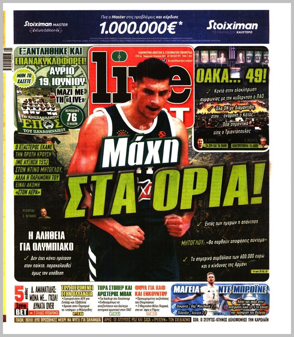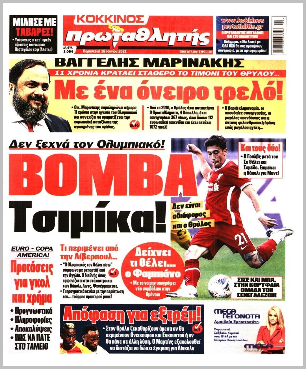 Οι αθλητικές εφημερίδες 18/6/2021 Διονύσης Νίκκας 06:49, Παρασκευή 18 Ιουνίου 2021 Media Διαβάστε τα πρωτοσέλιδα των αθλητικών εφημερίδων… ΑΘΛΗΤΙΚΕΣ ΕΦΗΜΕΡΙΔΕΣ Μοιράσου το: σχολίασε κι εσύ (0 σχόλια) Ακολουθήστε το enikos.gr στο Google News και μάθετε πρώτοι όλες τις ειδήσεις Δείτε όλες τις τελευταίες ειδήσεις από την Ελλάδα και τον Κόσμο στο enikos.gr Ειδήσεις Ροή Ειδήσεων 11 λεπτά πριν Χριστούγεννα στα μπλόκα: Επιμένουν στις κινητοποιήσεις τους οι αγρότες – Ανοίγουν τα διόδια το Σαββατοκύριακο 40 λεπτά πριν Τραμπ: Δεν αποκλείει την πιθανότητα ενός πολέμου στη Βενεζουέλα – «Ο Μαδούρο ξέρει καλύτερα από τον καθένα τι ακριβώς θέλω» 34 λεπτά πριν Ουκρανία: Η άνευ προηγουμένου επίθεση σε ρωσικό τάνκερ στη Μεσόγειο και το μήνυμα προς στον Πούτιν – Το «μακρύ χέρι» του Κιέβου 3 ώρες πριν Πούτιν: «Ναι, είμαι ερωτευμένος» – Βίντεο από τη σπάνια προσωπική παραδοχή του 1 ώρα πριν Συνεχίζει να προκαλεί ο Μίτσκοσκι: «Για μένα το όνομα Μακεδονία είναι ιερό» 2 ώρες πριν Αριθμολογία: Οι άνθρωποι που έχουν γεννηθεί αυτές τις 4 ημερομηνίες, συχνά παρεξηγούνται – «Η καλοσύνη τους κρύβει τεράστια δύναμη» 4 ώρες πριν Μήπως έχετε χάσει τον εαυτό σας στη σχέση σας; 7 «αθόρυβες» υποχωρήσεις που μάλλον κάνατε, χωρίς να το συνειδητοποιήσετε 3 ώρες πριν Ξεχάστε το καθάρισμα το Σαββατοκύριακο: Ο «κανόνας των 20 λεπτών» που θα σας λύσει τα χέρια 49 λεπτά πριν Ύπνος: Μια κρυφή κατάσταση του εγκεφάλου πριν από τον ύπνο μπορεί να είναι το “κλειδί” για υψηλή ευφυΐα και δημιουργικότητα 7 λεπτά πριν Γιώργος Γιαννόπουλος για “Το σόι σου”: “Είναι ευτυχία και ευλογία αυτή η σειρά” 11 λεπτά πριν Χριστούγεννα στα μπλόκα: Επιμένουν στις κινητοποιήσεις τους οι αγρότες – Ανοίγουν τα διόδια το Σαββατοκύριακο 23 λεπτά πριν Χάρι και Μέγκαν: Η σπάνια οικογενειακή φωτογραφία με τον Άρτσι και τη Λίλιμπετ – Τι σχεδιάζουν για τα Χριστούγεννα 30 λεπτά πριν Βασίλης Καρράς: «Είναι πάντα δίπλα μου, δεν έφυγε…», λέει ο αδελφός του 34 λεπτά πριν Ουκρανία: Η άνευ προηγουμένου επίθεση σε ρωσικό τάνκερ στη Μεσόγειο και το μήνυμα προς στον Πούτιν – Το «μακρύ χέρι» του Κιέβου ENIKOS NETWORK Το ΕΚΑΒ τιμήθηκε από την Ακαδημία Αθηνών για τα 40 χρόνια προσφοράς του Έχετε πραγματικά μεγάλη καρδιά; 10 χαρακτηριστικά όσων έχουν καλοσύνη Πλήρης επάρκεια προϊόντων στις λαϊκές της Αττικής, παρά τις αγροτικές κινητοποιήσεις – Τι απαντούν οι πωλητές ΑΑΔΕ: Νέες αναβαθμίσεις στο Ψηφιακό Πελατολόγιο και την εφαρμογή myDATAapp – Τι πρέπει να γνωρίζετε Χαρτογραφώντας το «σημείο χωρίς επιστροφή»: Για πρώτη φορά αποκαλύπτεται με λεπτομέρεια το ακανθώδες όριο της ατμόσφαιρας τ... Η Google καταργεί τη λειτουργία «dark web report» – Πώς θα μπορούν οι χρήστες να διαγράφουν τα δεδομένα τους περισσότερα 22:42 , Παρασκευή 19 Δεκεμβρίου 2025 Γιώργος Γιαννόπουλος για “Το σόι σου”: “Είναι ευτυχία και ευλογία αυτή η σειρά” «Είναι ευτυχία και ευλογία η συγκυρία αυτής της σειράς», θα πει ο Γιώργος Γιαννόπουλος -ο αγαπ... 20:37 , Παρασκευή 19 Δεκεμβρίου 2025 Don’t Forget The Lyrics: Η Έλλη Κοκκίνου υποδέχεται 4 παίκτες που θα κάνουν τα πάντα για να μη χάσουν ούτε… μισή λέξη από τους στίχους Το «Don’t Forget The Lyrics» επιστρέφει απόψε, Παρασκευή 19 Δεκεμβρίου, στις 21:00 με νέο επει... 19:31 , Παρασκευή 19 Δεκεμβρίου 2025 GNTM: Απόψε ο μεγάλος τελικός για τους 4 φιναλίστ Έπειτα από μήνες γεμάτους μόδα, δημιουργία και έντονες αναμετρήσεις, το GNTM 2025 κορυφώνεται,... 18:11 , Παρασκευή 19 Δεκεμβρίου 2025 Το σόι σου: Ο Άρης έρχεται 