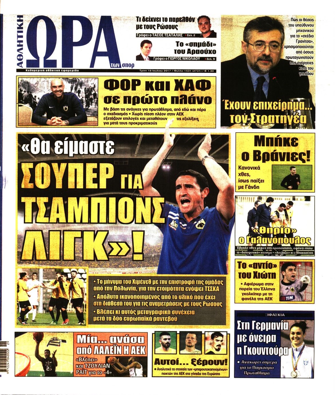 Οι αθλητικές εφημερίδες 18/7/2017 Enikos Newsroom 07:50, Τρίτη 18 Ιουλίου 2017 Media Διαβάστε τα σημερινά πρωτοσέλιδα των αθλητικών εφημερίδων: ΑΘΛΗΤΙΚΕΣ ΕΦΗΜΕΡΙΔΕΣ ΠΡΩΤΟΣΕΛΙΔΑ Μοιράσου το: σχολίασε κι εσύ (0 σχόλια) Ακολουθήστε το enikos.gr στο Google News και μάθετε πρώτοι όλες τις ειδήσεις Δείτε όλες τις τελευταίες ειδήσεις από την Ελλάδα και τον Κόσμο στο enikos.gr Ειδήσεις Ροή Ειδήσεων 2 ώρες πριν Αγρότες: Πολύωροι αποκλεισμοί στα τελωνεία Προμαχώνα, Εξοχής, Ευζώνων και Νίκης – Κλείνουν τον κόμβο Φιλώτα οι παραγωγοί στη Δυτική Μακεδονία 1 ώρα πριν Νίκος Παππάς: Ζητώ συγγνώμη για αυτό το επεισόδιο – Δεν τον γρονθοκόπησα 3 ώρες πριν Ευρωπαϊκό Συμβούλιο: Όλες οι λεπτομέρειες για το δάνειο των 90 δισ. ευρώ στην Ουκρανία – Τα συμπεράσματα της Συνόδου Κορυφής 2 ώρες πριν Αίγιο: 22χρονη κατήγγειλε ότι έπεσε θύμα βιασμού και ληστείας από συγγενικά της πρόσωπα 1 ώρα πριν Τρομακτικό βίντεο: Η στιγμή της έκρηξης στο τζετ που μετέφερε τον οδηγό του NASCAR, Γκρεγκ Μπιφλ και την οικογένειά του 2 ώρες πριν Αλλαγή σελίδας για 3 ζώδια – «Μία δύσκολη περίοδος φτάνει στο τέλος της» 2 ημέρες πριν 20 χρόνια τα Χριστούγεννα ξεκινούν στα Public με μεγάλη ποικιλία σε δώρα! 3 ώρες πριν Ο σύζυγός της συμπεριφέρεται όπως το παιδί τους – «Χρησιμοποιεί αστείες δικαιολογίες για να μην κάνει δουλειές και να ξοδεύει λεφτά» 50 λεπτά πριν Γεμάτος νεροχύτης; 5 σοβαρές ευθύνες που «φοβίζουν» όσους αφήνουν άπλυτα πιάτα 3 λεπτά πριν Πούτιν: Η Ουκρανία δεν είναι έτοιμη για ειρηνευτικές συνομιλίες – ο ρωσικός στρατός προελαύνει σε όλα τα μέτωπα 9 λεπτά πριν Βουλή: Αποσύρθηκε προσθήκη για έργα του Ταμειακού Προγράμματος Ανάπτυξης της Γ.Γ. Αθλητισμού μετά τις αντιδράσεις της αντιπολίτευσης 14 λεπτά πριν Νορβηγία: Η πριγκίπισσα Μέτε-Μάριτ πιθανότατα θα υποβληθεί σε μεταμόσχευση πνεύμονα 25 λεπτά πριν Ενίσχυση δρομολογίων του Μετρό τις Κυριακές 21 και 28 Δεκεμβρίου – Κυκλοφοριακές ρυθμίσεις αύριο στη Γραμμή 7 του τραμ λόγω εορταστικών εκδηλώσεων 29 λεπτά πριν Βλαντίμιρ Πούτιν: LIVE η συνέντευξη Τύπου για τον απολογισμό της χρονιάς ENIKOS NETWORK Καρκίνος του πνεύμονα: Έως 8.000 ζωές μπορούν να σωθούν με την έγκαιρη διάγνωση Καρδιοπαθείς: Οι νέες συστάσεις για τα εμβόλια που πρέπει να κάνουν τον χειμώνα Επιδόματα και παροχές από τον ΟΠΕΚΑ: Τι πιστώνεται σήμερα στους τραπεζικούς λογαριασμούς Απειλή για τον Προϋπολογισμό τα ληξιπρόθεσμα χρέη των ιδιωτών προς την εφορία – Τι δείχνουν τα στοιχεία Χαρτογραφώντας το «σημείο χωρίς επιστροφή»: Για πρώτη φορά αποκαλύπτεται με λεπτομέρεια το ακανθώδες όριο της ατμόσφαιρας τ... Η Google καταργεί τη λειτουργία «dark web report» – Πώς θα μπορούν οι χρήστες να διαγράφουν τα δεδομένα τους περισσότερα 08:00 , Παρασκευή 19 Δεκεμβρίου 2025 Την Κυριακή με τη Realnews: Δωροεπιταγή 10€ Δωροεπιταγή αξίας 10€ για αγορές άνω των 60€ από τα πολυκαταστήματα FactoryOutlet H προσφορά ι... 05:48 , Παρασκευή 19 Δεκεμβρίου 2025 Οι οικονομικές εφημερίδες 19/12/2025 Διαβάστε τα πρωτοσέλιδα από τις οικονομικές εφημερίδες, σήμερα 19/12/2025. 05:43 , Παρασκευή 19 Δεκεμβρίου 2025 Οι αθλητικές εφημερίδες 19/12/2025 Διαβάστε τα πρωτοσέλιδα από τις αθλητικές εφημερίδες, σήμερα 19/12/2025. 05:38 , Παρασκευή 19 Δεκεμβρίου 2025 Οι πολιτικές εφημερίδες 19/12/2025 Διαβάστε τα πρωτοσέλιδα από τις πολιτικές εφημερίδες, σήμερα 19/12/2025. ΤΕΛΕΥΤΑΙΕΣ ΕΙΔΗΣΕΙΣ 3 λεπτά πριν Πούτιν: Η Ουκρανία δεν είναι έτοιμη για ειρηνευτικές... 9 λεπτά πριν Βουλή: Αποσύρθηκε προσθήκη για έργα του Ταμειακού... 14 λεπτά