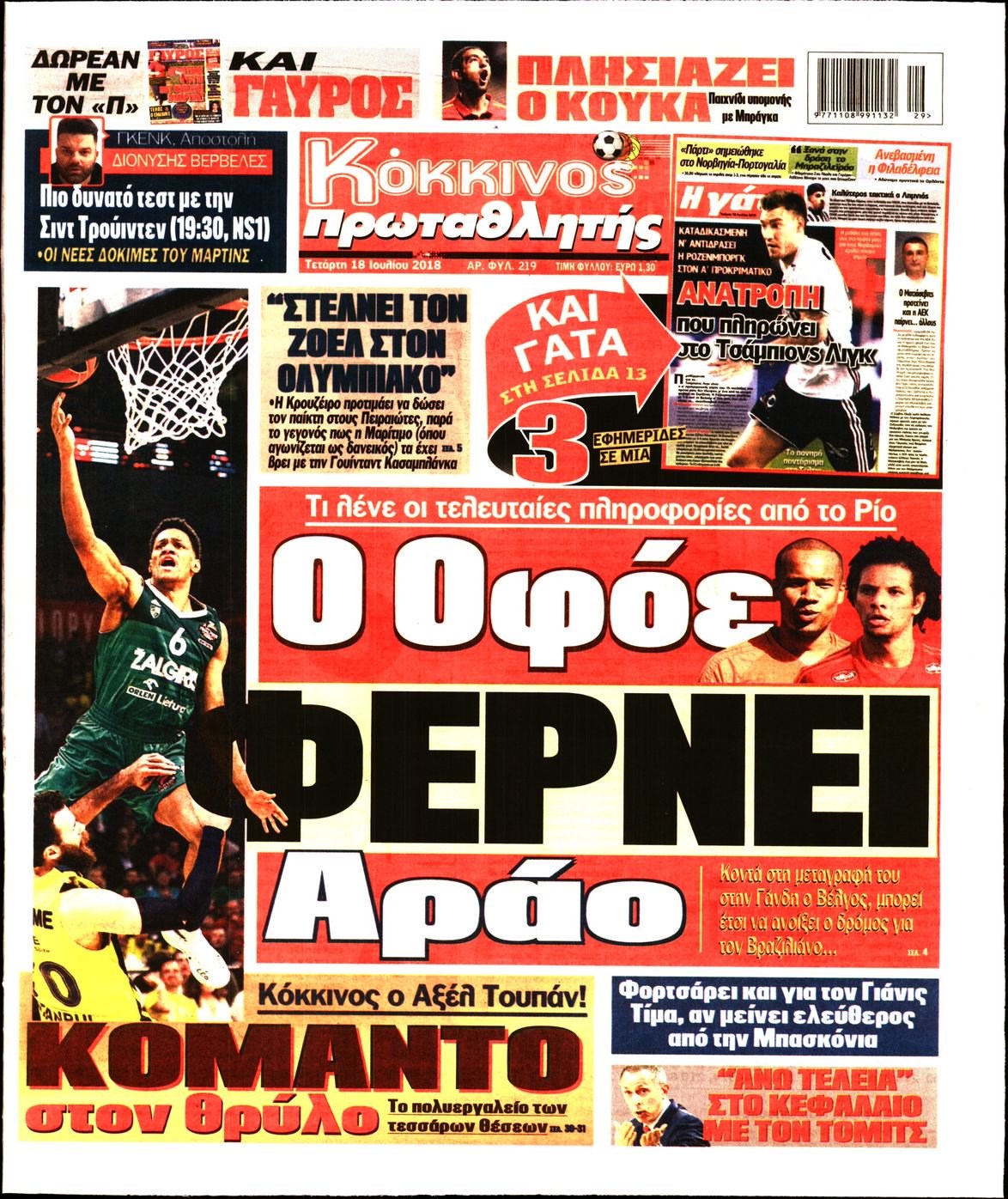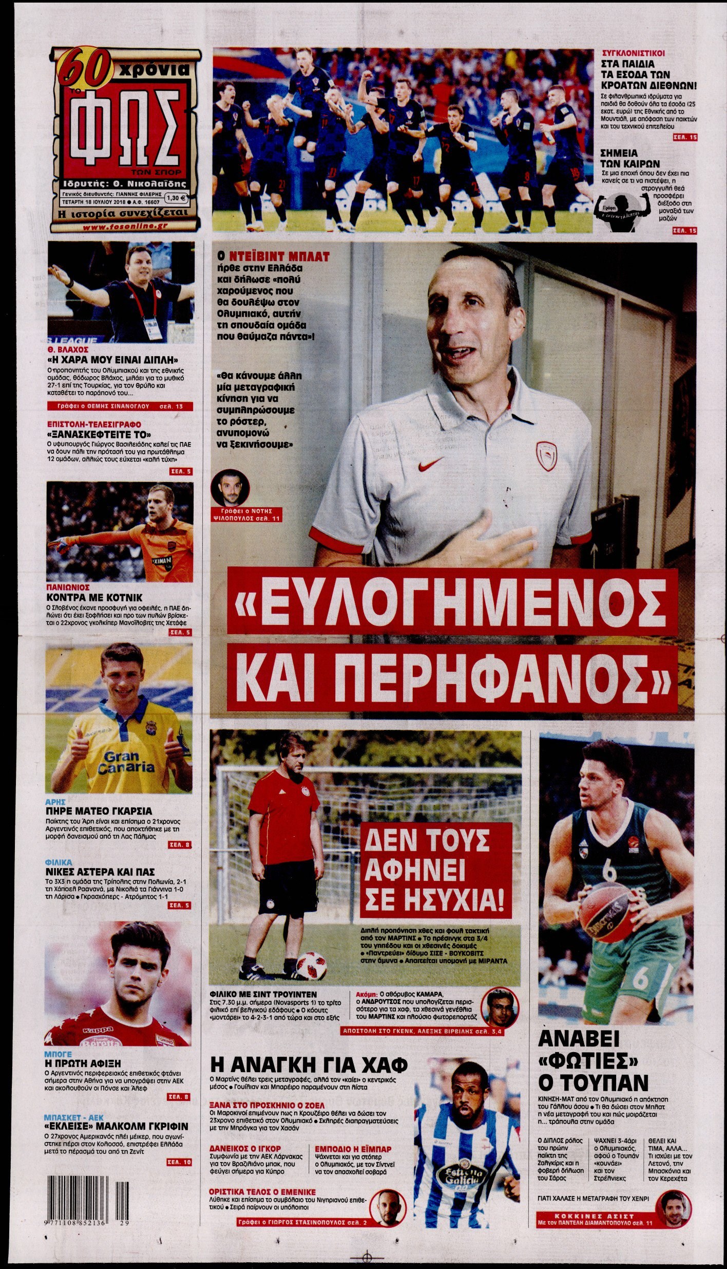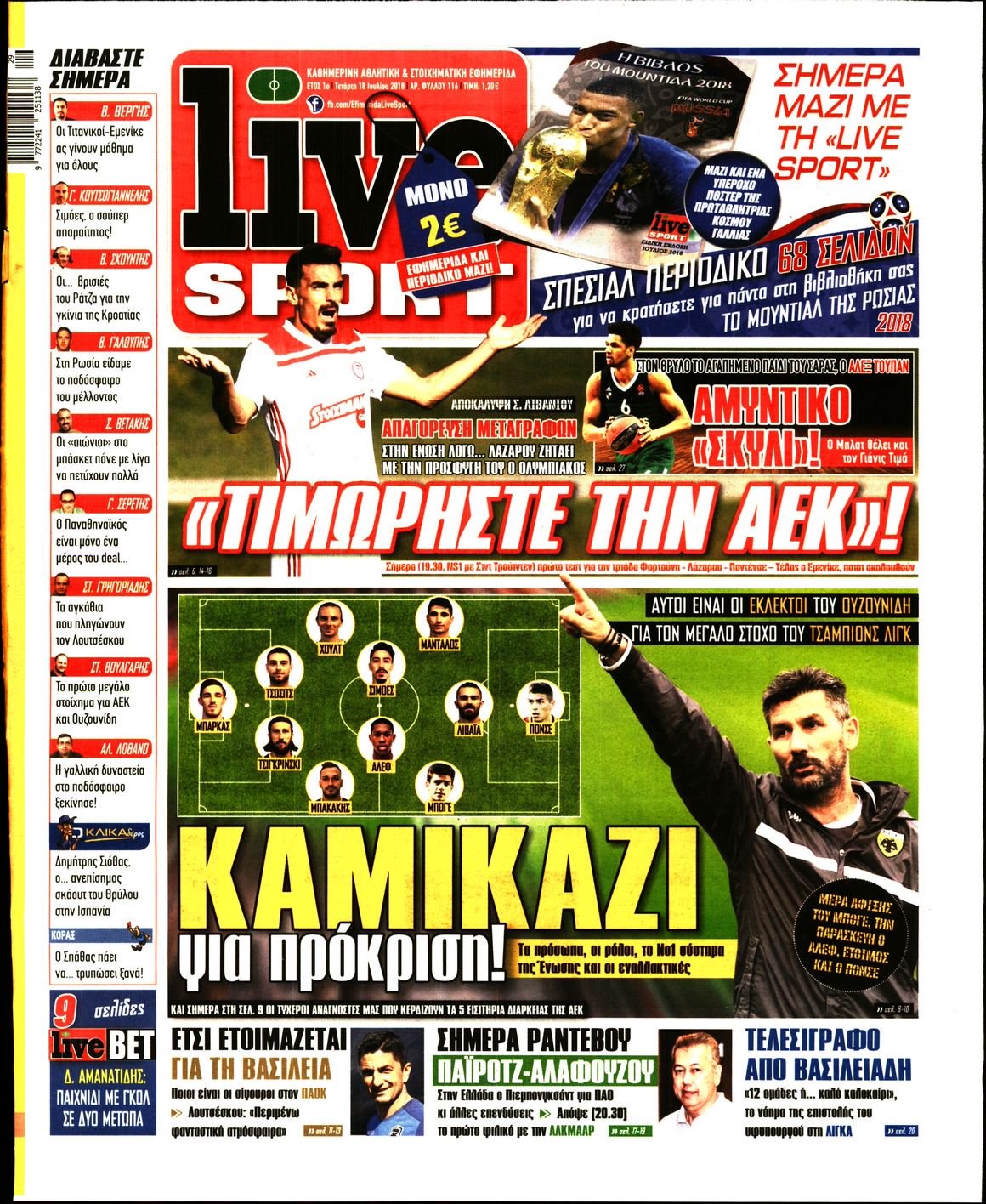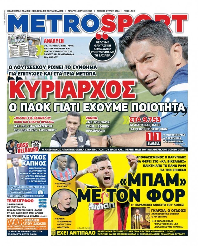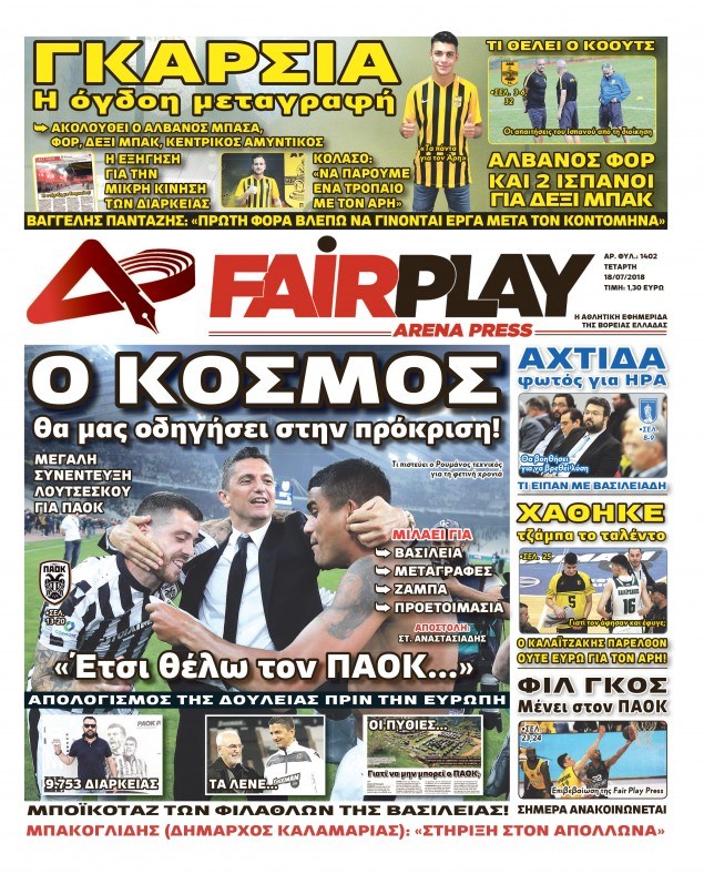 Οι αθλητικές εφημερίδες 18/7/2018 Enikos Newsroom 06:34, Τετάρτη 18 Ιουλίου 2018 Media Διαβάστε τα σημερινά πρωτοσέλιδα των αθλητικών εφημερίδων. ΑΘΛΗΤΙΚΕΣ ΕΦΗΜΕΡΙΔΕΣ ΠΡΩΤΟΣΕΛΙΔΑ Μοιράσου το: σχολίασε κι εσύ (0 σχόλια) Ακολουθήστε το enikos.gr στο Google News και μάθετε πρώτοι όλες τις ειδήσεις Δείτε όλες τις τελευταίες ειδήσεις από την Ελλάδα και τον Κόσμο στο enikos.gr Ειδήσεις Ροή Ειδήσεων 5 ώρες πριν Χριστούγεννα στα μπλόκα: Επιμένουν στις κινητοποιήσεις τους οι αγρότες – Ανοίγουν τα διόδια το Σαββατοκύριακο 5 ώρες πριν Ουκρανία: Η άνευ προηγουμένου επίθεση σε ρωσικό τάνκερ στη Μεσόγειο και το μήνυμα προς στον Πούτιν – Το «μακρύ χέρι» του Κιέβου 4 ώρες πριν Πούτιν: Τα μηνύματα σε Ευρώπη και ΝΑΤΟ από το μαραθώνιο «σόου» του – Η απαίτηση για «σεβασμό» και η ειρήνη «με τους όρους» της Μόσχας 5 ώρες πριν Τραμπ: Δεν αποκλείει την πιθανότητα ενός πολέμου στη Βενεζουέλα – «Ο Μαδούρο ξέρει καλύτερα από τον καθένα τι ακριβώς θέλω» 6 ώρες πριν Συνεχίζει να προκαλεί ο Μίτσκοσκι: «Για μένα το όνομα Μακεδονία είναι ιερό» 4 ώρες πριν Ανακαλύφθηκαν αρχαία χρυσά νομίσματα 2.200 ετών που απεικονίζουν τον θεό Απόλλωνα – Η άγνωστη σύνδεση με τον Φίλιππο Β΄ της Μακεδονίας 5 ώρες πριν Ύπνος: Μια κρυφή κατάσταση του εγκεφάλου πριν από τον ύπνο μπορεί να είναι το “κλειδί” για υψηλή ευφυΐα και δημιουργικότητα 6 ώρες πριν Αριθμολογία: Οι άνθρωποι που έχουν γεννηθεί αυτές τις 4 ημερομηνίες, συχνά παρεξηγούνται – «Η καλοσύνη τους κρύβει τεράστια δύναμη» 7 ώρες πριν Ξεχάστε το καθάρισμα το Σαββατοκύριακο: Ο «κανόνας των 20 λεπτών» που θα σας λύσει τα χέρια 8 λεπτά πριν Η Ελλάδα προσχωρεί στη Διεθνή Επιτροπή Αποζημιώσεων για την Ουκρανία 23 λεπτά πριν GNTM: Η Ξένια Τσίρκοβα αναδείχθηκε μεγάλη νικήτρια και πήρε τις 50.000 ευρώ – Ποιος βρέθηκε σε απόσταση αναπνοής; 38 λεπτά πριν Θεσσαλονίκη: Εξαφανίστηκε 13χρονος από χώρο φιλοξενίας ασυνόδευτων ανηλίκων στο Ωραιόκαστρο 48 λεπτά πριν Ντόναλντ Τραμπ: «Πολύ βαριά αντίποινα» στη Συρία – «Πλήττουμε πολύ δυνατά οχυρά του Ισλαμικού Κράτους» 1 ώρα πριν Εξάρχεια: Ένταση με μολότοφ, χημικά και κρότου λάμψης ENIKOS NETWORK Το ΕΚΑΒ τιμήθηκε από την Ακαδημία Αθηνών για τα 40 χρόνια προσφοράς του Έχετε πραγματικά μεγάλη καρδιά; 10 χαρακτηριστικά όσων έχουν καλοσύνη Αναστολή μέτρων αναγκαστικής εκτέλεσης για κτηνοτρόφους που πλήττονται από την ευλογιά των αιγοπροβάτων Πλήρης επάρκεια προϊόντων στις λαϊκές της Αττικής, παρά τις αγροτικές κινητοποιήσεις – Τι απαντούν οι πωλητές Χαρτογραφώντας το «σημείο χωρίς επιστροφή»: Για πρώτη φορά αποκαλύπτεται με λεπτομέρεια το ακανθώδες όριο της ατμόσφαιρας τ... Η Google καταργεί τη λειτουργία «dark web report» – Πώς θα μπορούν οι χρήστες να διαγράφουν τα δεδομένα τους περισσότερα 02:50 , Σάββατο 20 Δεκεμβρίου 2025 GNTM: Η Ξένια Τσίρκοβα αναδείχθηκε μεγάλη νικήτρια και πήρε τις 50.000 ευρώ – Ποιος βρέθηκε σε απόσταση αναπνοής; Με φαντασμαγορικό τρόπο ολοκληρώθηκε το βράδυ της Παρασκευής ο μεγάλος τελικός του GNTM, μέσα ... 22:42 , Παρασκευή 19 Δεκεμβρίου 2025 Γιώργος Γιαννόπουλος για “Το σόι σου”: “Είναι ευτυχία και ευλογία αυτή η σειρά” «Είναι ευτυχία και ευλογία η συγκυρία αυτής της σειράς», θα πει ο Γιώργος Γιαννόπουλος -ο αγαπ... 20:37 , Παρασκευή 19 Δεκεμβρίου 2025 Don’t Forget The Lyrics: Η Έλλη Κοκκίνου υποδέχεται 4 παίκτες που θα κάνουν τα πάντα για να μη χάσουν ούτε… μισή λέξη από τους στίχους Το «Don’t Forget The Lyrics» επιστρέφει απόψε, Παρασκευή 19 Δεκεμβρίου, στις 21:00 με νέ