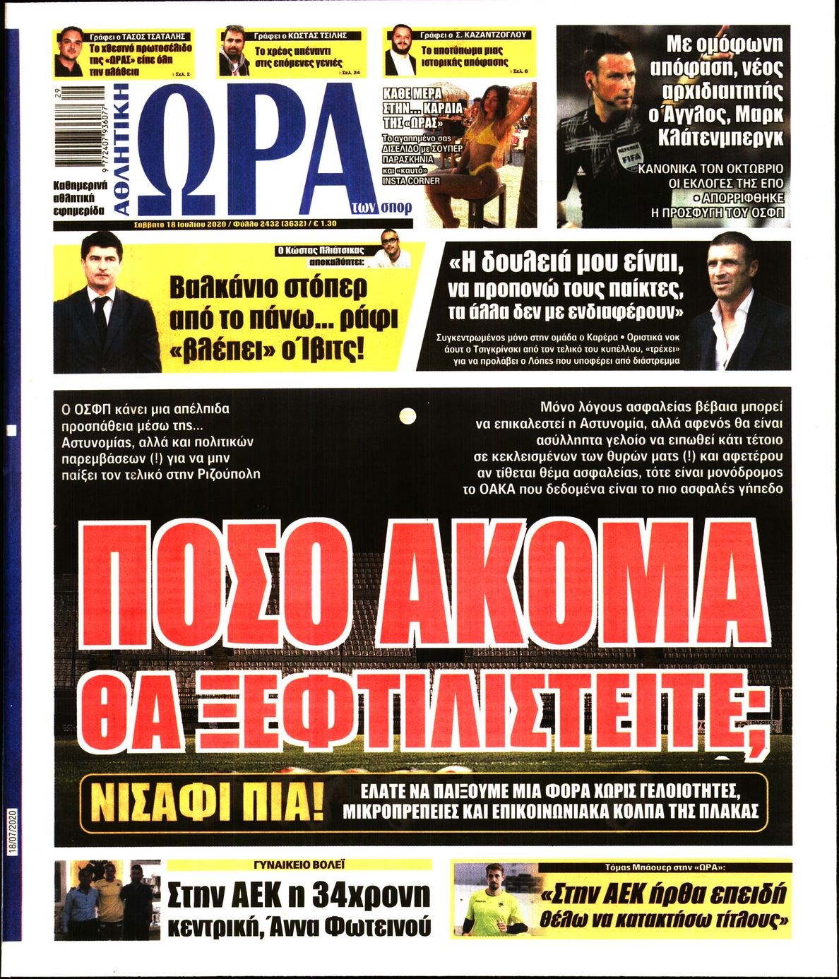 Οι αθλητικές εφημερίδες 18/7/2020 Διονύσης Νίκκας 09:01, Σάββατο 18 Ιουλίου 2020 Media Διαβάστε τα πρωτοσέλιδα των αθλητικών εφημερίδων… ΑΘΛΗΤΙΚΕΣ ΕΦΗΜΕΡΙΔΕΣ Μοιράσου το: σχολίασε κι εσύ (0 σχόλια) Ακολουθήστε το enikos.gr στο Google News και μάθετε πρώτοι όλες τις ειδήσεις Δείτε όλες τις τελευταίες ειδήσεις από την Ελλάδα και τον Κόσμο στο enikos.gr Ειδήσεις Ροή Ειδήσεων 8 ώρες πριν Χριστούγεννα στα μπλόκα: Επιμένουν στις κινητοποιήσεις τους οι αγρότες – Ανοίγουν τα διόδια το Σαββατοκύριακο 8 ώρες πριν Ουκρανία: Η άνευ προηγουμένου επίθεση σε ρωσικό τάνκερ στη Μεσόγειο και το μήνυμα προς στον Πούτιν – Το «μακρύ χέρι» του Κιέβου 7 ώρες πριν Πούτιν: Τα μηνύματα σε Ευρώπη και ΝΑΤΟ από το μαραθώνιο «σόου» του – Η απαίτηση για «σεβασμό» και η ειρήνη «με τους όρους» της Μόσχας 6 ώρες πριν ΗΠΑ: Η κυβέρνηση του Ντόναλντ Τραμπ άρχισε να δημοσιοποιεί τα αρχεία Έπσταϊν 7 ώρες πριν Άνω Λιόσια: Πυροβολισμοί σε επιχείρηση με χαλιά – Εντοπίστηκαν 10 κάλυκες 19 λεπτά πριν Αυγά: Πόσα μπορείτε να τρώτε την ημέρα με ασφάλεια για μέγιστη πρόσληψη πρωτεΐνης 49 λεπτά πριν Τα ζώδια σήμερα, Σάββατο 20 Δεκεμβρίου: Παρθένοι, το σύμπαν σας δίνει το κλειδί 7 ώρες πριν Ανακαλύφθηκαν αρχαία χρυσά νομίσματα 2.200 ετών που απεικονίζουν τον θεό Απόλλωνα – Η άγνωστη σύνδεση με τον Φίλιππο Β΄ της Μακεδονίας 8 ώρες πριν Ύπνος: Μια κρυφή κατάσταση του εγκεφάλου πριν από τον ύπνο μπορεί να είναι το “κλειδί” για υψηλή ευφυΐα και δημιουργικότητα 3 λεπτά πριν Οπτική ψευδαίσθηση: Μόνο αν είσαι ο Σέρλοκ Χολμς θα βρεις τον αριθμό «87» σε 7 δευτερόλεπτα 10 λεπτά πριν Σαρωτικοί οι έλεγχοι στους δρόμους ενόψει εορτών – Μπλόκα της τροχαίας σε κεντρικές αρτηρίες της Αττικής 19 λεπτά πριν Αυγά: Πόσα μπορείτε να τρώτε την ημέρα με ασφάλεια για μέγιστη πρόσληψη πρωτεΐνης 25 λεπτά πριν Σαν σήμερα 20 Δεκεμβρίου: Τα σημαντικότερα γεγονότα της ημέρας 30 λεπτά πριν Οι οικονομικές εφημερίδες 20/12/2025 ENIKOS NETWORK Το ΕΚΑΒ τιμήθηκε από την Ακαδημία Αθηνών για τα 40 χρόνια προσφοράς του Έχετε πραγματικά μεγάλη καρδιά; 10 χαρακτηριστικά όσων έχουν καλοσύνη Αναστολή μέτρων αναγκαστικής εκτέλεσης για κτηνοτρόφους που πλήττονται από την ευλογιά των αιγοπροβάτων Πλήρης επάρκεια προϊόντων στις λαϊκές της Αττικής, παρά τις αγροτικές κινητοποιήσεις – Τι απαντούν οι πωλητές Χαρτογραφώντας το «σημείο χωρίς επιστροφή»: Για πρώτη φορά αποκαλύπτεται με λεπτομέρεια το ακανθώδες όριο της ατμόσφαιρας τ... Η Google καταργεί τη λειτουργία «dark web report» – Πώς θα μπορούν οι χρήστες να διαγράφουν τα δεδομένα τους περισσότερα 05:48 , Σάββατο 20 Δεκεμβρίου 2025 Οι οικονομικές εφημερίδες 20/12/2025 Διαβάστε τα πρωτοσέλιδα από τις οικονομικές εφημερίδες, σήμερα 20/12/2025. 05:43 , Σάββατο 20 Δεκεμβρίου 2025 Οι αθλητικές εφημερίδες 20/12/2025 Διαβάστε τα πρωτοσέλιδα από τις αθλητικές εφημερίδες, σήμερα 20/12/2025. 05:38 , Σάββατο 20 Δεκεμβρίου 2025 Οι πολιτικές εφημερίδες 20/12/2025 Διαβάστε τα πρωτοσέλιδα από τις πολιτικές εφημερίδες, σήμερα 20/12/2025. 04:20 , Σάββατο 20 Δεκεμβρίου 2025 Αγγελική Νικολούλη: Τα συλλυπητήρια για την απώλεια της Ειρήνης Μαρινάκη Τα συλληπητήρια στον πρόεδρο του Mega, τον Βαγγέλη Μαρινάκη, για την απώλεια της μητέρας του Ε... ΤΕΛΕΥΤΑΙΕΣ ΕΙΔΗΣΕΙΣ 10 λεπτά πριν Σαρωτικοί οι έλεγχοι στους δρόμους ενόψει εορτών –... 19 λεπτά πριν Αυγά: Πόσα μπορείτε να τρώτε την ημέρα με ασφάλεια για... 25 λεπτά πριν Σαν σήμερα 20 Δεκεμβρίου: Τα σημαντικότερα γεγονότα... 30 λεπτά πριν Οι οικονομικές εφημερίδες 20/12/
