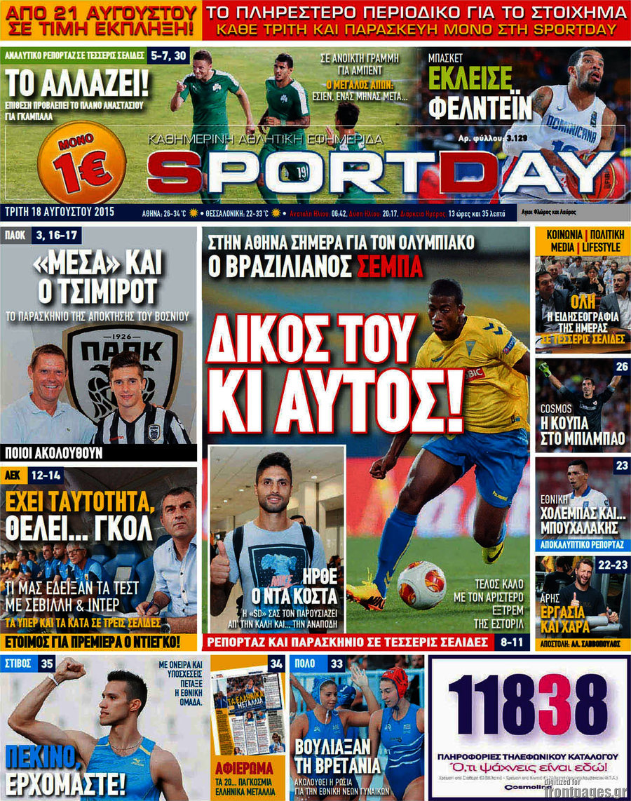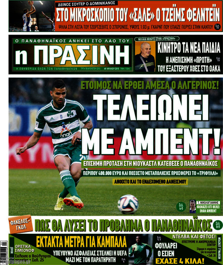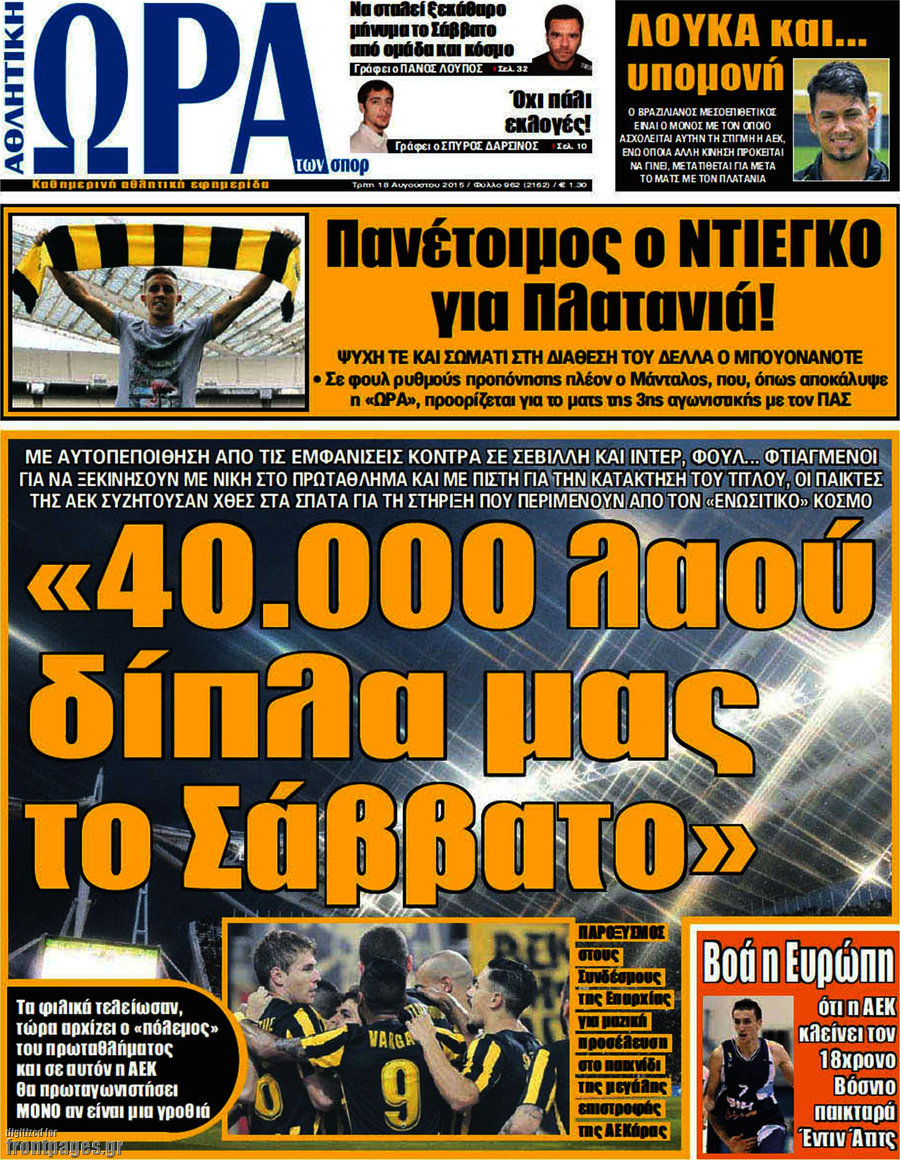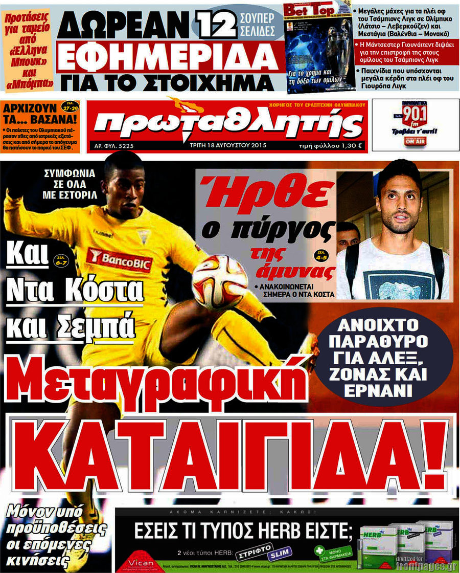 Oι αθλητικές εφημερίδες 18/8/2015 Enikos Newsroom 08:31, Τρίτη 18 Αυγούστου 2015 Media Διαβάστε τα σημερινά πρωτοσέλιδα των αθλητικών εφημερίδων: ΑΘΛΗΤΙΚΕΣ ΕΦΗΜΕΡΙΔΕΣ ΠΡΩΤΟΣΕΛΙΔΑ Μοιράσου το: σχολίασε κι εσύ (0 σχόλια) Ακολουθήστε το enikos.gr στο Google News και μάθετε πρώτοι όλες τις ειδήσεις Δείτε όλες τις τελευταίες ειδήσεις από την Ελλάδα και τον Κόσμο στο enikos.gr Ειδήσεις Ροή Ειδήσεων 4 ώρες πριν Μεσόγειος: Η διαδρομή του ρωσικού τάνκερ «Qendil» και η στοχευμένη επίθεση της Ουκρανίας με drone – Ο Πούτιν προειδοποίησε για αντίποινα 29 λεπτά πριν Αγρότες: Έκλεισαν για μία ώρα την παρακαμπτήρια της Ιόνιας Οδού στη θέση Χαλίκι 2 ώρες πριν Εμπλοκή και αερομαχίες με οπλισμένα τουρκικά F-16 στο Αιγαίο 2 ώρες πριν Πούτιν: «Ναι, είμαι ερωτευμένος» – Βίντεο από τη σπάνια προσωπική παραδοχή του 32 λεπτά πριν Ανδρέας Λυκουρέντζος: Υπέβαλε την παραίτησή του ο πρόεδρος του ΕΛΓΑ, αλλά δεν έγινε δεκτή – Όλο το παρασκήνιο 42 λεπτά πριν Αριθμολογία: Οι άνθρωποι που έχουν γεννηθεί αυτές τις 4 ημερομηνίες, συχνά παρεξηγούνται – «Η καλοσύνη τους κρύβει τεράστια δύναμη» 3 ώρες πριν Μήπως έχετε χάσει τον εαυτό σας στη σχέση σας; 7 «αθόρυβες» υποχωρήσεις που μάλλον κάνατε, χωρίς να το συνειδητοποιήσετε 2 ώρες πριν Ξεχάστε το καθάρισμα το Σαββατοκύριακο: Ο «κανόνας των 20 λεπτών» που θα σας λύσει τα χέρια 5 ώρες πριν Κουίζ για την παλιά Αθήνα: Αναγνωρίζετε την περιοχή; Έχετε περάσει 100% από εκεί 1 λεπτό πριν Τραγωδία στο Βελεστίνο: Πέθανε ο αντιδήμαρχος Γιάννης Παπαϊωάννου 5 λεπτά πριν Ολυμπιακός – Βιλερμπάν: Μάτωσε στο πρόσωπο ο Παπανικολάου έπειτα από αγκωνιά του Βοτιέ – ΦΩΤΟ 13 λεπτά πριν Συνεχίζει να προκαλεί ο Μίτσκοσκι: «Για μένα το όνομα Μακεδονία είναι ιερό» 23 λεπτά πριν Ο Γιάννης Κακλέας σκηνοθετεί Βερόνικα Δαβάκη και Ιβάν Σβιτάιλο στη «Locandiera» 29 λεπτά πριν Αγρότες: Έκλεισαν για μία ώρα την παρακαμπτήρια της Ιόνιας Οδού στη θέση Χαλίκι ENIKOS NETWORK Το ΕΚΑΒ τιμήθηκε από την Ακαδημία Αθηνών για τα 40 χρόνια προσφοράς του Έχετε πραγματικά μεγάλη καρδιά; 10 χαρακτηριστικά όσων έχουν καλοσύνη Έρχονται νέες προσλήψεις σε Δήμο – Όλες οι λεπτομέρειες Επίδομα παιδιού: Πότε ανοίγει ξανά η πλατφόρμα για τις αιτήσεις Χαρτογραφώντας το «σημείο χωρίς επιστροφή»: Για πρώτη φορά αποκαλύπτεται με λεπτομέρεια το ακανθώδες όριο της ατμόσφαιρας τ... Η Google καταργεί τη λειτουργία «dark web report» – Πώς θα μπορούν οι χρήστες να διαγράφουν τα δεδομένα τους περισσότερα 20:37 , Παρασκευή 19 Δεκεμβρίου 2025 Don’t Forget The Lyrics: Η Έλλη Κοκκίνου υποδέχεται 4 παίκτες που θα κάνουν τα πάντα για να μη χάσουν ούτε… μισή λέξη από τους στίχους Το «Don’t Forget The Lyrics» επιστρέφει απόψε, Παρασκευή 19 Δεκεμβρίου, στις 21:00 με νέο επει... 19:31 , Παρασκευή 19 Δεκεμβρίου 2025 GNTM: Απόψε ο μεγάλος τελικός για τους 4 φιναλίστ Έπειτα από μήνες γεμάτους μόδα, δημιουργία και έντονες αναμετρήσεις, το GNTM 2025 κορυφώνεται,... 18:11 , Παρασκευή 19 Δεκεμβρίου 2025 Το σόι σου: Ο Άρης έρχεται στην Ελλάδα για τις γιορτές των Χριστουγέννων – Τι θα δούμε στο αποψινό εορταστικό επεισόδιο Ένα απολαυστικό, εορταστικό επεισόδιο της σειράς “Το σόι σου”, γεμάτο ευτράπελα αλ... 15:15 , Παρασκευή 19 Δεκεμβρίου 2025 Την Κυριακή με τη Realnews: Ό,τι και αν αγοράσεις, σκανάρεις και κερδίζεις! Την Κυριακή με τη Realnews: Ό,τι και αν αγοράσεις, σκανάρεις και κερδίζεις! Με το PADU app, το... ΤΕΛΕΥΤΑΙΕΣ ΕΙΔΗΣΕΙΣ 5 λεπτά πριν Ολυμπιακός – Βιλερμπάν: Μάτωσε στο πρόσωπο ο... 13 λεπτά πριν Συνεχίζει να προκαλεί ο Μίτσκοσκι: «Για μένα το 