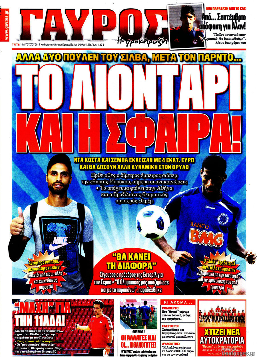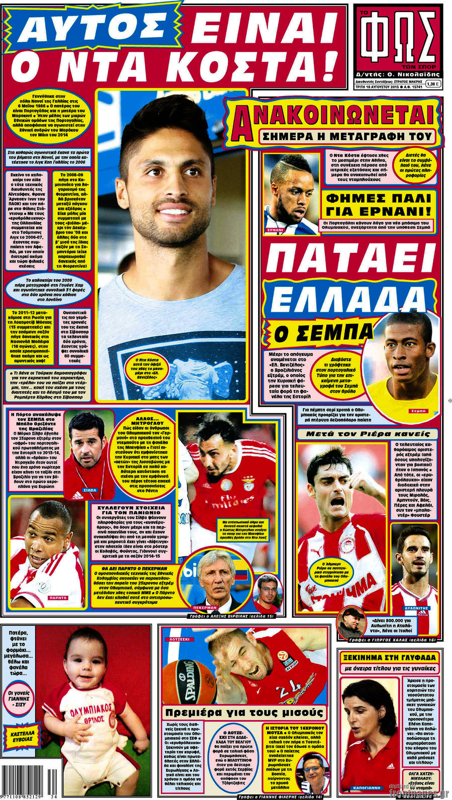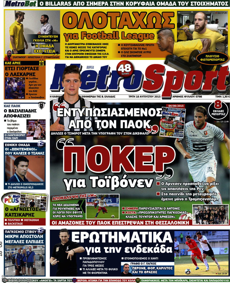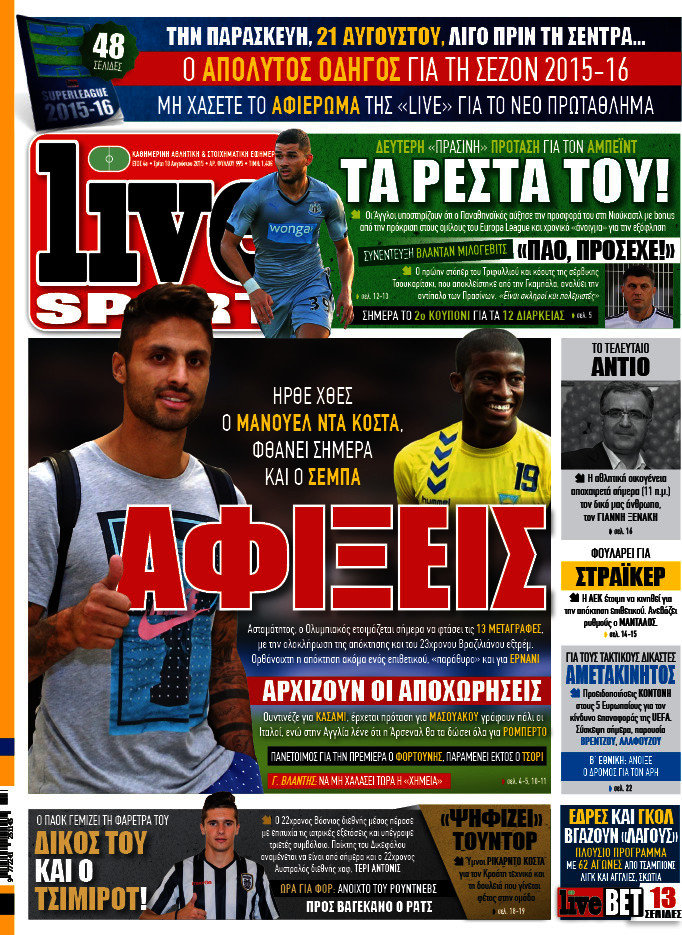 Oι αθλητικές εφημερίδες 18/8/2015 Enikos Newsroom 08:31, Τρίτη 18 Αυγούστου 2015 Media Διαβάστε τα σημερινά πρωτοσέλιδα των αθλητικών εφημερίδων: ΑΘΛΗΤΙΚΕΣ ΕΦΗΜΕΡΙΔΕΣ ΠΡΩΤΟΣΕΛΙΔΑ Μοιράσου το: σχολίασε κι εσύ (0 σχόλια) Ακολουθήστε το enikos.gr στο Google News και μάθετε πρώτοι όλες τις ειδήσεις Δείτε όλες τις τελευταίες ειδήσεις από την Ελλάδα και τον Κόσμο στο enikos.gr Ειδήσεις Ροή Ειδήσεων 4 ώρες πριν Μεσόγειος: Η διαδρομή του ρωσικού τάνκερ «Qendil» και η στοχευμένη επίθεση της Ουκρανίας με drone – Ο Πούτιν προειδοποίησε για αντίποινα 29 λεπτά πριν Αγρότες: Έκλεισαν για μία ώρα την παρακαμπτήρια της Ιόνιας Οδού στη θέση Χαλίκι 2 ώρες πριν Εμπλοκή και αερομαχίες με οπλισμένα τουρκικά F-16 στο Αιγαίο 2 ώρες πριν Πούτιν: «Ναι, είμαι ερωτευμένος» – Βίντεο από τη σπάνια προσωπική παραδοχή του 32 λεπτά πριν Ανδρέας Λυκουρέντζος: Υπέβαλε την παραίτησή του ο πρόεδρος του ΕΛΓΑ, αλλά δεν έγινε δεκτή – Όλο το παρασκήνιο 42 λεπτά πριν Αριθμολογία: Οι άνθρωποι που έχουν γεννηθεί αυτές τις 4 ημερομηνίες, συχνά παρεξηγούνται – «Η καλοσύνη τους κρύβει τεράστια δύναμη» 3 ώρες πριν Μήπως έχετε χάσει τον εαυτό σας στη σχέση σας; 7 «αθόρυβες» υποχωρήσεις που μάλλον κάνατε, χωρίς να το συνειδητοποιήσετε 2 ώρες πριν Ξεχάστε το καθάρισμα το Σαββατοκύριακο: Ο «κανόνας των 20 λεπτών» που θα σας λύσει τα χέρια 5 ώρες πριν Κουίζ για την παλιά Αθήνα: Αναγνωρίζετε την περιοχή; Έχετε περάσει 100% από εκεί 1 λεπτό πριν Τραγωδία στο Βελεστίνο: Πέθανε ο αντιδήμαρχος Γιάννης Παπαϊωάννου 5 λεπτά πριν Ολυμπιακός – Βιλερμπάν: Μάτωσε στο πρόσωπο ο Παπανικολάου έπειτα από αγκωνιά του Βοτιέ – ΦΩΤΟ 13 λεπτά πριν Συνεχίζει να προκαλεί ο Μίτσκοσκι: «Για μένα το όνομα Μακεδονία είναι ιερό» 23 λεπτά πριν Ο Γιάννης Κακλέας σκηνοθετεί Βερόνικα Δαβάκη και Ιβάν Σβιτάιλο στη «Locandiera» 29 λεπτά πριν Αγρότες: Έκλεισαν για μία ώρα την παρακαμπτήρια της Ιόνιας Οδού στη θέση Χαλίκι ENIKOS NETWORK Το ΕΚΑΒ τιμήθηκε από την Ακαδημία Αθηνών για τα 40 χρόνια προσφοράς του Έχετε πραγματικά μεγάλη καρδιά; 10 χαρακτηριστικά όσων έχουν καλοσύνη Έρχονται νέες προσλήψεις σε Δήμο – Όλες οι λεπτομέρειες Επίδομα παιδιού: Πότε ανοίγει ξανά η πλατφόρμα για τις αιτήσεις Χαρτογραφώντας το «σημείο χωρίς επιστροφή»: Για πρώτη φορά αποκαλύπτεται με λεπτομέρεια το ακανθώδες όριο της ατμόσφαιρας τ... Η Google καταργεί τη λειτουργία «dark web report» – Πώς θα μπορούν οι χρήστες να διαγράφουν τα δεδομένα τους περισσότερα 20:37 , Παρασκευή 19 Δεκεμβρίου 2025 Don’t Forget The Lyrics: Η Έλλη Κοκκίνου υποδέχεται 4 παίκτες που θα κάνουν τα πάντα για να μη χάσουν ούτε… μισή λέξη από τους στίχους Το «Don’t Forget The Lyrics» επιστρέφει απόψε, Παρασκευή 19 Δεκεμβρίου, στις 21:00 με νέο επει... 19:31 , Παρασκευή 19 Δεκεμβρίου 2025 GNTM: Απόψε ο μεγάλος τελικός για τους 4 φιναλίστ Έπειτα από μήνες γεμάτους μόδα, δημιουργία και έντονες αναμετρήσεις, το GNTM 2025 κορυφώνεται,... 18:11 , Παρασκευή 19 Δεκεμβρίου 2025 Το σόι σου: Ο Άρης έρχεται στην Ελλάδα για τις γιορτές των Χριστουγέννων – Τι θα δούμε στο αποψινό εορταστικό επεισόδιο Ένα απολαυστικό, εορταστικό επεισόδιο της σειράς “Το σόι σου”, γεμάτο ευτράπελα αλ... 15:15 , Παρασκευή 19 Δεκεμβρίου 2025 Την Κυριακή με τη Realnews: Ό,τι και αν αγοράσεις, σκανάρεις και κερδίζεις! Την Κυριακή με τη Realnews: Ό,τι και αν αγοράσεις, σκανάρεις και κερδίζεις! Με το PADU app, το... ΤΕΛΕΥΤΑΙΕΣ ΕΙΔΗΣΕΙΣ 5 λεπτά πριν Ολυμπιακός – Βιλερμπάν: Μάτωσε στο πρόσωπο ο... 13 λεπτά πριν Συνεχίζει να προκαλεί ο Μίτσκοσκι: «Για μένα το 