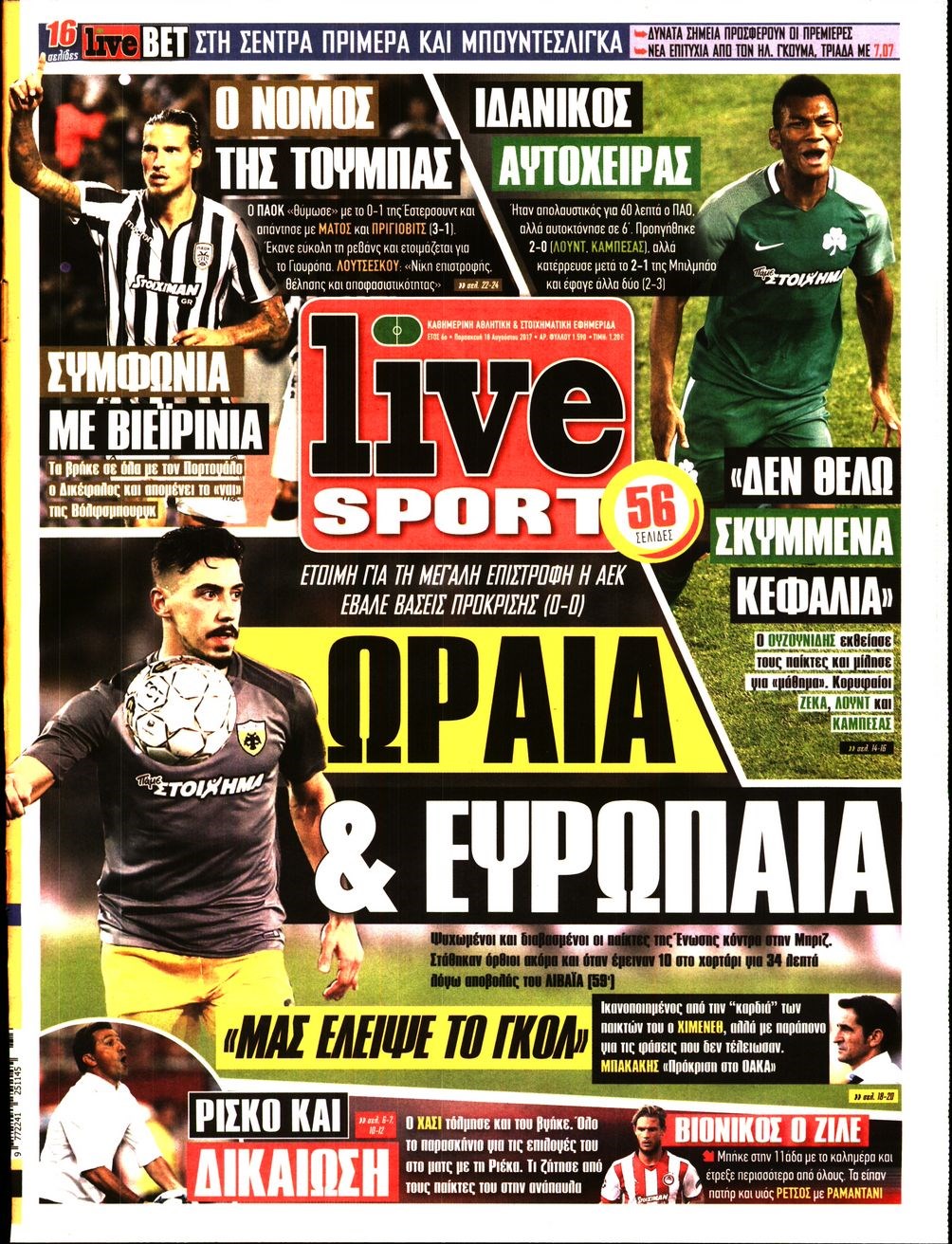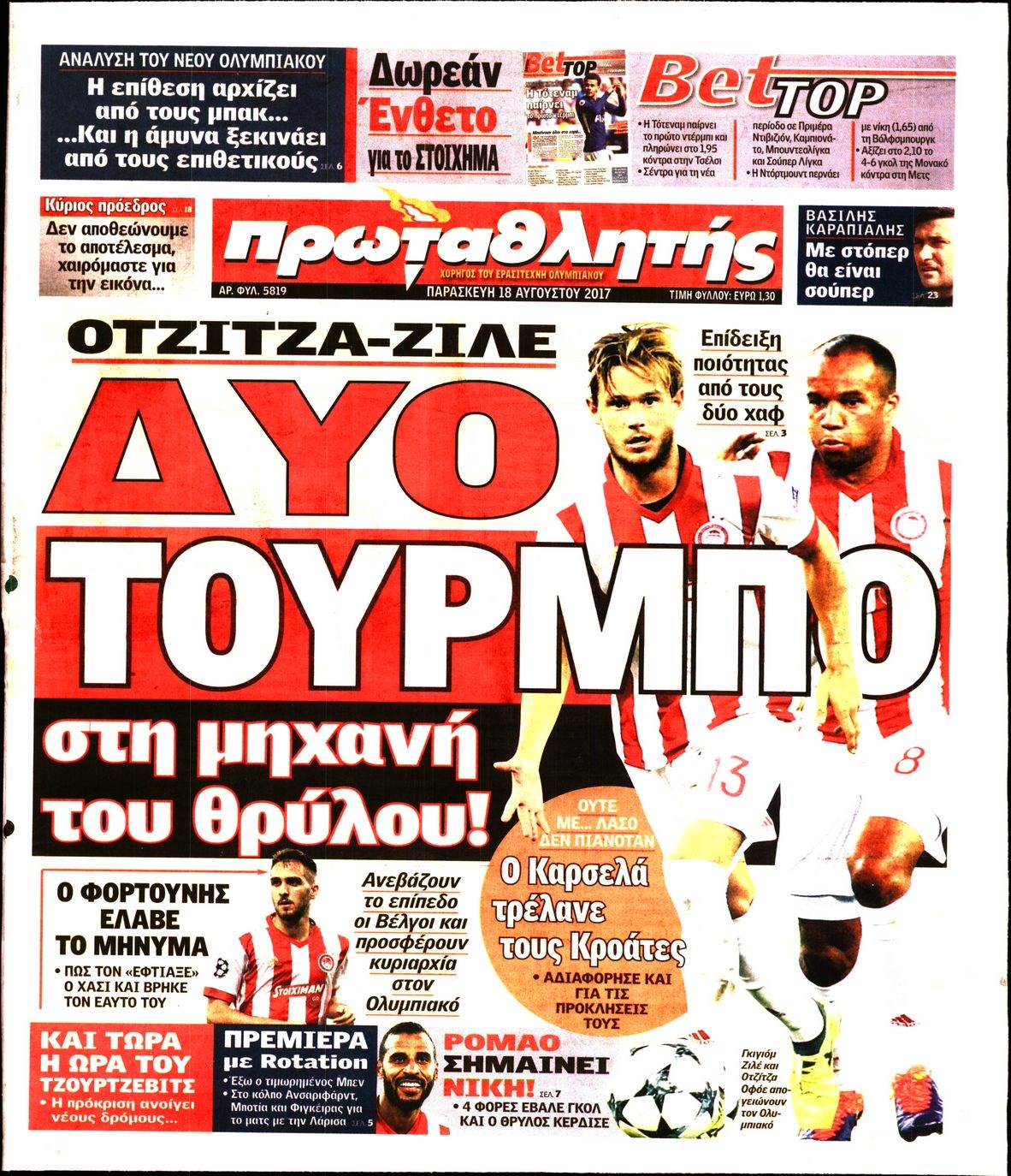 Οι αθλητικές εφημερίδες 18/8/2017 Enikos Newsroom 07:15, Παρασκευή 18 Αυγούστου 2017 Media Διαβάστε τα σημερινά πρωτοσέλιδα των αθλητικών εφημερίδων: ΑΘΛΗΤΙΚΕΣ ΕΦΗΜΕΡΙΔΕΣ ΠΡΩΤΟΣΕΛΙΔΑ Μοιράσου το: σχολίασε κι εσύ (0 σχόλια) Ακολουθήστε το enikos.gr στο Google News και μάθετε πρώτοι όλες τις ειδήσεις Δείτε όλες τις τελευταίες ειδήσεις από την Ελλάδα και τον Κόσμο στο enikos.gr Ειδήσεις Ροή Ειδήσεων 2 ώρες πριν Η Ουκρανία χτύπησε τάνκερ του σκιώδους στόλου της Ρωσίας στη Μεσόγειο – Έπλεε νότια της Κρήτης 4 ώρες πριν Πούτιν: Η Ουκρανία δεν είναι έτοιμη για ειρηνευτικές συνομιλίες – Ο ρωσικός στρατός προελαύνει σε όλα τα μέτωπα 45 λεπτά πριν Θεσσαλονίκη: Στη φυλακή ο 44χρονος που κατηγορείται ότι προσπάθησε να πνίξει με κορδόνι την 34χρονη σύντροφό του 1 ώρα πριν Εξώδικο επιχειρηματία στον Γιώργο Μαζωνάκη – Τι απαντά στις καταγγελίες του τραγουδιστή 2 ώρες πριν Βουλή: Υπερψηφίστηκε το νομοσχέδιο για την ένταξη του ΟΠΕΚΕΠΕ στην ΑΑΔΕ 6 ώρες πριν Αλλαγή σελίδας για 3 ζώδια – «Μία δύσκολη περίοδος φτάνει στο τέλος της» 2 ημέρες πριν 20 χρόνια τα Χριστούγεννα ξεκινούν στα Public με μεγάλη ποικιλία σε δώρα! 5 ώρες πριν Γεμάτος νεροχύτης; 5 σοβαρές ευθύνες που «φοβίζουν» όσους αφήνουν άπλυτα πιάτα 4 ώρες πριν Ειδικός μοιράζεται 6 κόλπα για να διατηρείστε σε φόρμα με πάνω από 40 ώρες εργασίας την εβδομάδα: «Προπονηθείτε πριν από τη δουλειά, όχι μετά» 7 λεπτά πριν Πούτιν: Σαρκαστικά μηνύματα, παράπονα και απρόοπτα στη συνέντευξη Τύπου – Η πρόταση γάμου on air και οι ερωτήσεις για τα αγγούρια και τους… εξωγήινους 15 λεπτά πριν Κρήτη: Ένοχος ο 54χρονος «ερευνητής» για απάτη στην υπόθεση του 33χρονου γιατρού που αγνοείται 15 λεπτά πριν Νίκος Κούρκουλος: Αυτός ο αλύγιστος και ασυμβίβαστος «Αστραπόγιαννος» 20 λεπτά πριν Παναθηναϊκός: Θα προτείνει στη Λάτσιο 4 εκατ. ευρώ και συνιδιοκτησία για τον Μανδά 26 λεπτά πριν Η απάντηση της κυβέρνησης στα αιτήματα των αγροτών: 16+4 υλοποιούνται ή βρίσκονται υπό επεξεργασία για να βρεθεί λύση – 7 δεν μπορούν να επιλυθούν ENIKOS NETWORK Τάξη στις ιατρικές διαφημίσεις για την προστασία των πολιτών βάζει ο ΙΣΑ Μακροζωία: Τι παίζει πιο σημαντικό ρόλο ακόμα και από την διατροφή και την άσκηση, σύμφωνα με μελέτη Βουλή: Υπερψηφίστηκε το νομοσχέδιο για τη μετάβαση του ΟΠΕΚΕΠΕ στην ΑΑΔΕ ΕΥΔΑΠ: Οδηγός για τις αλλαγές στα τιμολόγια του νερού – 17 ερωτήσεις και απαντήσεις Χαρτογραφώντας το «σημείο χωρίς επιστροφή»: Για πρώτη φορά αποκαλύπτεται με λεπτομέρεια το ακανθώδες όριο της ατμόσφαιρας τ... Η Google καταργεί τη λειτουργία «dark web report» – Πώς θα μπορούν οι χρήστες να διαγράφουν τα δεδομένα τους περισσότερα 15:15 , Παρασκευή 19 Δεκεμβρίου 2025 Την Κυριακή με τη Realnews: Ό,τι και αν αγοράσεις, σκανάρεις και κερδίζεις! Την Κυριακή με τη Realnews: Ό,τι και αν αγοράσεις, σκανάρεις και κερδίζεις! Με το PADU app, το... 08:00 , Παρασκευή 19 Δεκεμβρίου 2025 Την Κυριακή με τη Realnews: Δωροεπιταγή 10€ Δωροεπιταγή αξίας 10€ για αγορές άνω των 60€ από τα πολυκαταστήματα FactoryOutlet H προσφορά ι... 05:48 , Παρασκευή 19 Δεκεμβρίου 2025 Οι οικονομικές εφημερίδες 19/12/2025 Διαβάστε τα πρωτοσέλιδα από τις οικονομικές εφημερίδες, σήμερα 19/12/2025. 05:43 , Παρασκευή 19 Δεκεμβρίου 2025 Οι αθλητικές εφημερίδες 19/12/2025 Διαβάστε τα πρωτοσέλιδα από τις αθλητικές εφημερίδες, σήμερα 19/12/2025. ΤΕΛΕΥΤΑΙΕΣ ΕΙΔΗΣΕΙΣ 7 λεπτά πριν Πούτιν: Σαρκαστικά μηνύματα, παράπονα και απρόοπτα... 15 λεπτά πριν Κρήτη: Ένοχος ο 54χρονος «ερευνητής» για απάτη στην... 15 λεπτά πριν Νίκος Κούρκουλος: