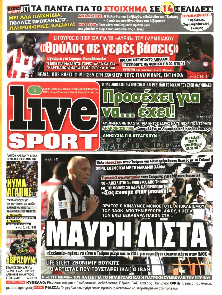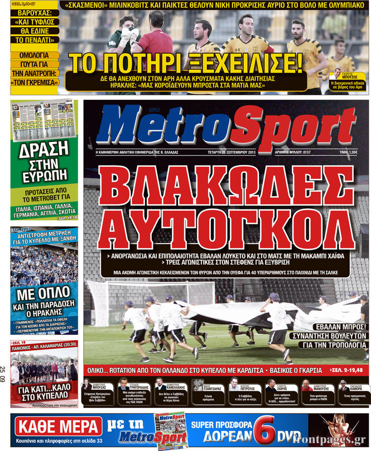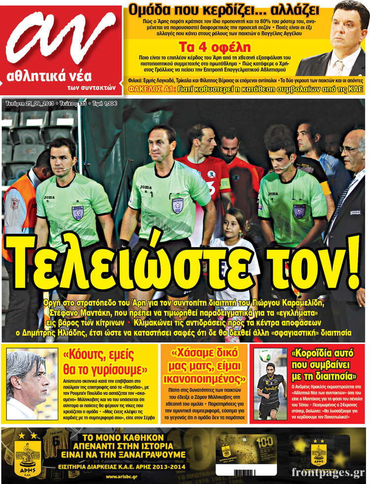 Οι αθλητικές εφημερίδες Enikos Newsroom 08:52, Τετάρτη 25 Σεπτεμβρίου 2013 Media Οι αθλητικές εφημερίδες Διαβάστε τα πρωτοσέλιδα των αθλητικών εφημερίδων: ΑΘΛΗΤΙΚΕΣ ΕΦΗΜΕΡΙΔΕΣ ΕΦΗΜΕΡΙΔΕΣ ΠΡΩΤΟΣΕΛΙΔΑ Μοιράσου το: σχολίασε κι εσύ (0 σχόλια) Ακολουθήστε το enikos.gr στο Google News και μάθετε πρώτοι όλες τις ειδήσεις Δείτε όλες τις τελευταίες ειδήσεις από την Ελλάδα και τον Κόσμο στο enikos.gr Ειδήσεις Ροή Ειδήσεων 24 λεπτά πριν Δολοφονία στη Νέα Πέραμο: Με 10 σφαίρες πισώπλατα εκτέλεσαν τον 27χρονο – Τον κράτησαν 6 μέρες όμηρο; 6 ώρες πριν Κυριάκος Μητσοτάκης: Πρόθεσή μας είναι μία γενναία, μία τολμηρή Συνταγματική Αναθεώρηση – Είναι καιρός για μεγάλες τομές 58 λεπτά πριν Κτηνοτρόφοι σε απόγνωση: Διαμαρτυρίες ότι δεν εφαρμόζεται στην πράξη η αναστολή πληρωμής φόρων και εισφορών παρά τη θανάτωση των ζώων τους 2 ώρες πριν Καραμανλής από Καλαμάτα: Να ακούμε τους πιο έμπειρους, αντί να τους διαγράφουμε κυριολεκτικά ή μεταφορικά 4 ώρες πριν Μαρινάκης για Αλεξοπούλου: «Απευθυνόταν στην αντιπολίτευση, όχι στους πολίτες» – Αντιδράσεις για «το τζάμπα πέθανε» 1 ώρα πριν Τα 3 ζώδια που θα έχουν την τύχη με το μέρος τους έως τις 8 Φεβρουαρίου – «Αρπάξτε τις ευκαιρίες για το επόμενο βήμα στη ζωή σας» 6 ώρες πριν Γυναίκα αποκαλύπτει πώς έχασε 10 κιλά χωρίς στερήσεις – Το «σύστημα ανταμοιβής» που έκανε πιο εύκολη την απώλεια βάρους 5 ώρες πριν Γιατί βάζεις πολλά ξυπνητήρια για να σηκωθείς; Τα 8 χαρακτηριστικά που διαθέτουν οι άνθρωποι που δίνουν «μάχη» στο κρεβάτι 2 ώρες πριν Ο φλοιός της Γης αψηφά τους κανόνες και οι επιστήμονες μόλις ανακάλυψαν τον λόγο 8 λεπτά πριν Ιράκ: Δικαστικές έρευνες για πάνω από 1.300 κρατούμενους, μέλη του Ισλαμικού Κράτους 14 λεπτά πριν ΚΚΕ για συνταγματική αναθεώρηση: Θα καταθέσουμε τις δικές μας προτάσεις με κριτήριο την στήριξη των εργατικών λαϊκών δικαιωμάτων 18 λεπτά πριν Στο νοσοκομείο ο Κώστας Σόμμερ – «Προσέξτε την υγεία σας» 24 λεπτά πριν Δολοφονία στη Νέα Πέραμο: Με 10 σφαίρες πισώπλατα εκτέλεσαν τον 27χρονο – Τον κράτησαν 6 μέρες όμηρο; 28 λεπτά πριν Συνάντηση Τσιάρα με εκπροσώπους των αγροτικών μπλόκων της Καρδίτσας – Στόχος έως το καλοκαίρι να έχουν κλείσει βασικά ζητήματα ENIKOS NETWORK 5,2 εκατομμύρια Έλληνες έχουν κάνει προληπτικές εξετάσεις – Νέο πρόγραμμα «Προλαμβάνω» για τη νεφρική υγεία Ξαναπαίρνουμε το βάρος μετά τη διαλειμματική νηστεία; Τι αποκαλύπτει ειδικός του Harvard ΑΑΔΕ – Προσοχή απάτη: Μην ανοίξετε αυτά τα sms – Τι γράφουν τα παραπλανητικά μηνύματα Λογαριασμοί ρεύματος Φεβρουαρίου 2026: Ανακοινώθηκαν τα πράσινα τιμολόγια – Δείτε αναλυτικά τις χρεώσεις ανά πάροχο Ευπάθεια στο moltbook ai αποκαλύπτει email, tokens σύνδεσης και api keys Αυτός είναι ο ρόλος της μικρής τρύπας στους νυχοκόπτες – «Είμαι ο μόνος που δεν το ήξερε;»» περισσότερα 16:30 , Δευτέρα 02 Φεβρουαρίου 2026 Οδύσσεια: Αναφορές ότι η Λουπίτα Νιόγκο θα υποδυθεί την «Ωραία Ελένη» – Έξαλλος ο Μασκ με τον Νόλαν Την έντονη αντίδραση του Έλον Μασκ προκάλεσαν δημοσιεύματα που κυκλοφορούν τις τελευταίες ώρες... 10:54 , Δευτέρα 02 Φεβρουαρίου 2026 Ακούστε το σχόλιο του Νίκου Χατζηνικολάου 2/2/2026 Ακούστε το σχόλιο του Νίκου Χατζηνικολάου στον ραδιοφωνικό σταθμό Realfm 97,8, τη Δευτέρα 2 Φε... 09:02 , Δευτέρα 02 Φεβρουαρίου 2026 Τα πάνω-κάτω στην ΕΡΤ λόγω Μουντιάλ Αλλαγή δεδομένων φέρνει το Παγκόσμιο Κύπελλο ποδοσφαίρου λόγω υψηλού κόστους. Το «Καλά θα πάει... 08:18 , Δευτέρα 02 Φεβρουαρίου 2026 Grammy 2026: Οι καλλιτέχνες στράφηκαν κατά τ