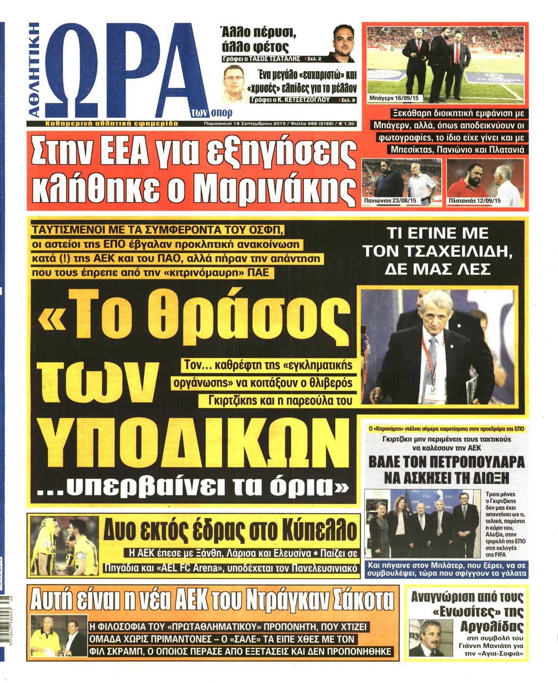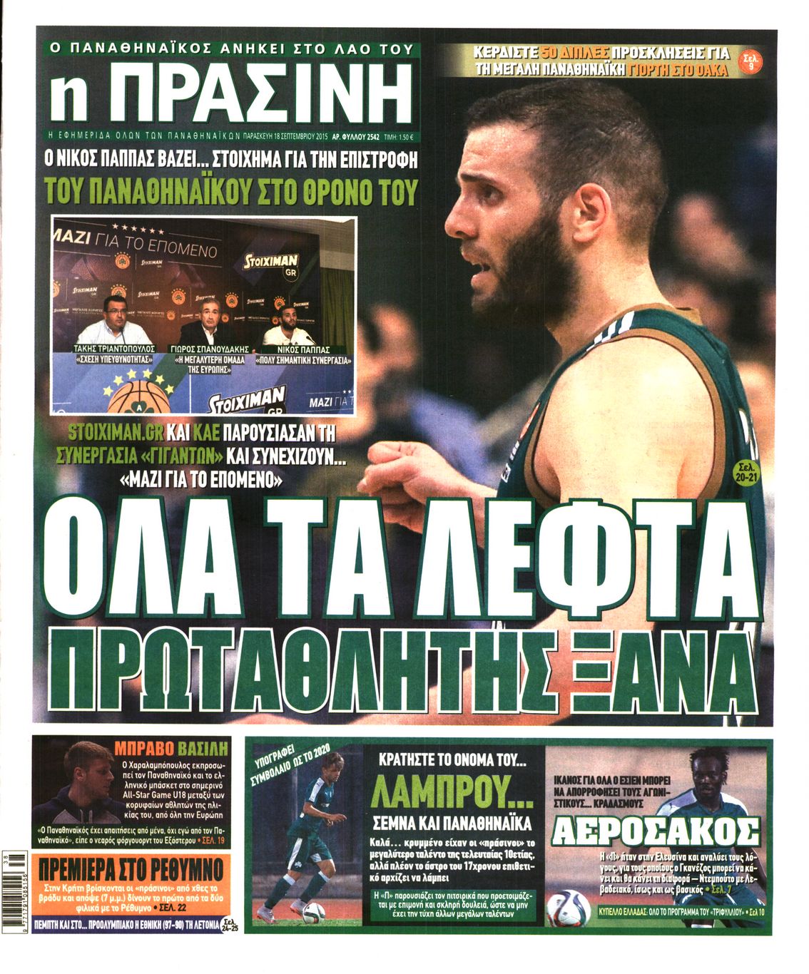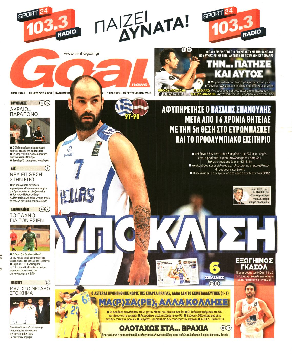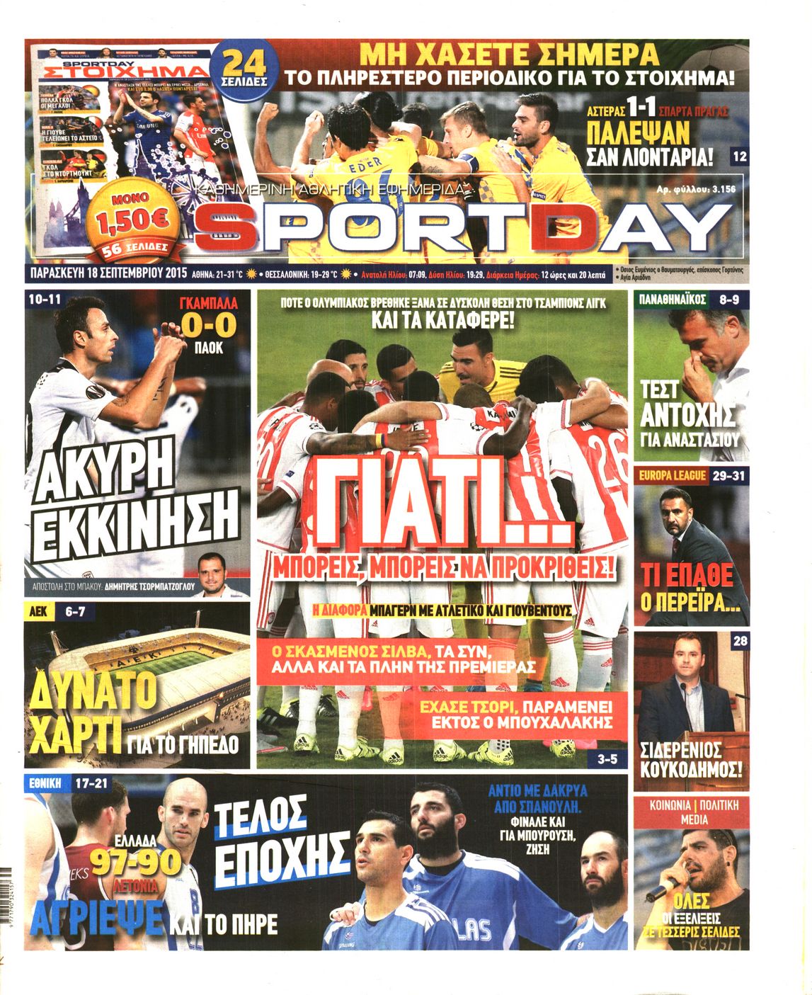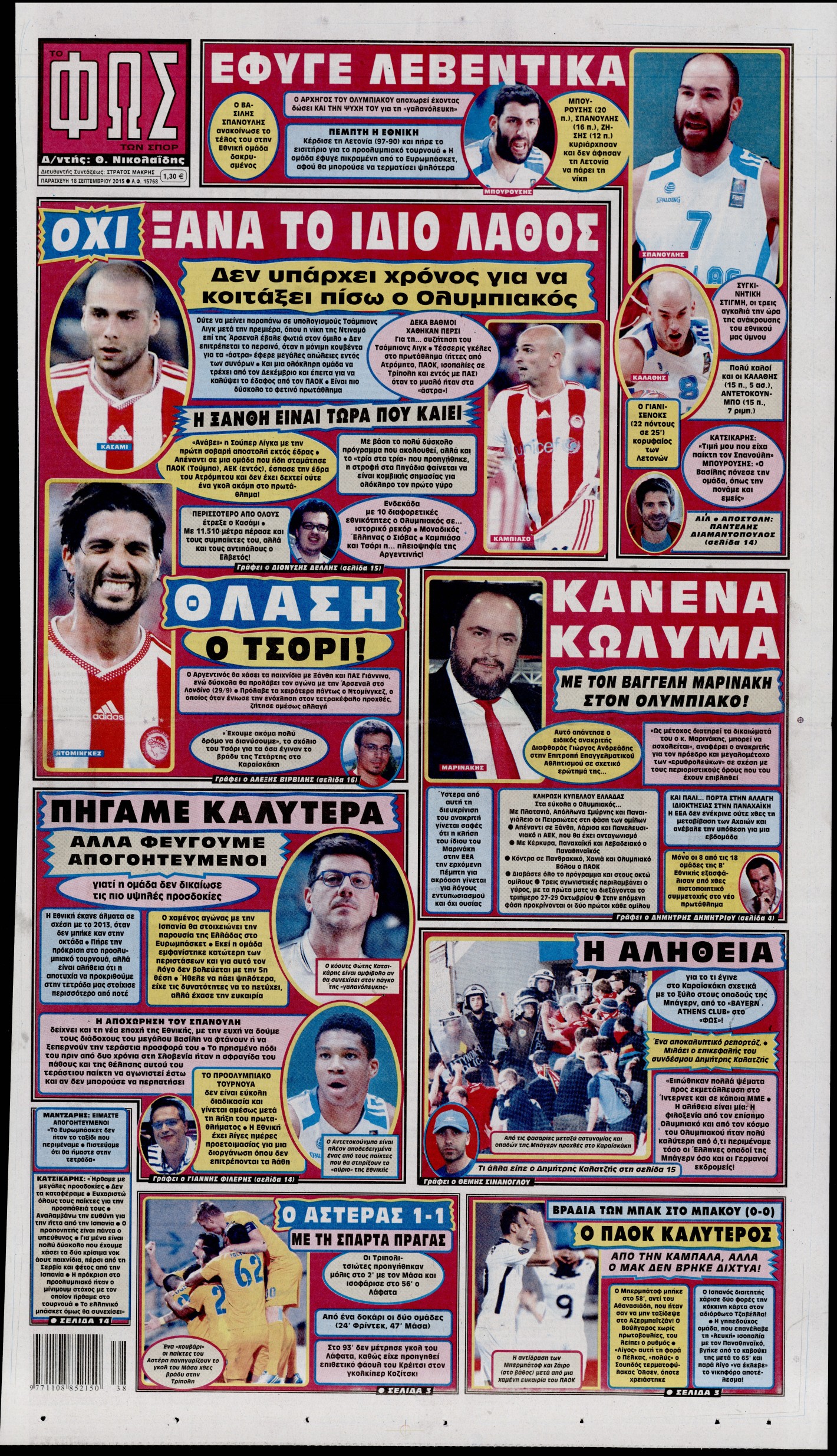 Οι αθλητικές εφημερίδες 18/9/2015 Enikos Newsroom 07:39, Παρασκευή 18 Σεπτεμβρίου 2015 Media Διαβάστε τα σημερινά πρωτοσέλιδα των αθλητικών εφημερίδων: ΑΘΛΗΤΙΚΕΣ ΕΦΗΜΕΡΙΔΕΣ ΠΡΩΤΟΣΕΛΙΔΑ Μοιράσου το: σχολίασε κι εσύ (0 σχόλια) Ακολουθήστε το enikos.gr στο Google News και μάθετε πρώτοι όλες τις ειδήσεις Δείτε όλες τις τελευταίες ειδήσεις από την Ελλάδα και τον Κόσμο στο enikos.gr Ειδήσεις Ροή Ειδήσεων 41 λεπτά πριν Χριστούγεννα στα μπλόκα: Επιμένουν στις κινητοποιήσεις τους οι αγρότες – Ανοίγουν τα διόδια το Σαββατοκύριακο 1 ώρα πριν Ουκρανία: Η άνευ προηγουμένου επίθεση σε ρωσικό τάνκερ στη Μεσόγειο και το μήνυμα προς στον Πούτιν – Το «μακρύ χέρι» του Κιέβου 18 λεπτά πριν Πούτιν: Τα μηνύματα σε Ευρώπη και ΝΑΤΟ από το μαραθώνιο «σόου» του – Η απαίτηση για «σεβασμό» και η ειρήνη «με τους όρους» της Μόσχας 1 ώρα πριν Τραμπ: Δεν αποκλείει την πιθανότητα ενός πολέμου στη Βενεζουέλα – «Ο Μαδούρο ξέρει καλύτερα από τον καθένα τι ακριβώς θέλω» 2 ώρες πριν Συνεχίζει να προκαλεί ο Μίτσκοσκι: «Για μένα το όνομα Μακεδονία είναι ιερό» 4 ώρες πριν Πούτιν: «Ναι, είμαι ερωτευμένος» – Βίντεο από τη σπάνια προσωπική παραδοχή του 2 ώρες πριν Αριθμολογία: Οι άνθρωποι που έχουν γεννηθεί αυτές τις 4 ημερομηνίες, συχνά παρεξηγούνται – «Η καλοσύνη τους κρύβει τεράστια δύναμη» 1 ώρα πριν Ύπνος: Μια κρυφή κατάσταση του εγκεφάλου πριν από τον ύπνο μπορεί να είναι το “κλειδί” για υψηλή ευφυΐα και δημιουργικότητα 3 ώρες πριν Ξεχάστε το καθάρισμα το Σαββατοκύριακο: Ο «κανόνας των 20 λεπτών» που θα σας λύσει τα χέρια 19 λεπτά πριν Ανακαλύφθηκαν αρχαία χρυσά νομίσματα 2.200 ετών που απεικονίζουν τον θεό Απόλλωνα – Η άγνωστη σύνδεση με τον Φίλιππο Β΄ της Μακεδονίας 3 λεπτά πριν Ολυμπιακός – Βιλερμπάν 107-84: Επιστροφή στις νίκες με… προπόνηση 9 λεπτά πριν Νέος Κόσμος: Συνελήφθη 41χρονος με ένταλμα από την Τουρκία για εμπόριο ναρκωτικών και ληστεία 18 λεπτά πριν Πούτιν: Τα μηνύματα σε Ευρώπη και ΝΑΤΟ από το μαραθώνιο «σόου» του – Η απαίτηση για «σεβασμό» και η ειρήνη «με τους όρους» της Μόσχας 19 λεπτά πριν Ανακαλύφθηκαν αρχαία χρυσά νομίσματα 2.200 ετών που απεικονίζουν τον θεό Απόλλωνα – Η άγνωστη σύνδεση με τον Φίλιππο Β΄ της Μακεδονίας 24 λεπτά πριν Νίκος Ξυλούρης: Συγκινεί η χήρα του σπουδαίου καλλιτέχνη – «Ευχαριστώ όλο τον κόσμο που τον κρατάει ζωντανό 45 χρόνια» ENIKOS NETWORK Το ΕΚΑΒ τιμήθηκε από την Ακαδημία Αθηνών για τα 40 χρόνια προσφοράς του Έχετε πραγματικά μεγάλη καρδιά; 10 χαρακτηριστικά όσων έχουν καλοσύνη Πλήρης επάρκεια προϊόντων στις λαϊκές της Αττικής, παρά τις αγροτικές κινητοποιήσεις – Τι απαντούν οι πωλητές ΑΑΔΕ: Νέες αναβαθμίσεις στο Ψηφιακό Πελατολόγιο και την εφαρμογή myDATAapp – Τι πρέπει να γνωρίζετε Χαρτογραφώντας το «σημείο χωρίς επιστροφή»: Για πρώτη φορά αποκαλύπτεται με λεπτομέρεια το ακανθώδες όριο της ατμόσφαιρας τ... Η Google καταργεί τη λειτουργία «dark web report» – Πώς θα μπορούν οι χρήστες να διαγράφουν τα δεδομένα τους περισσότερα 22:42 , Παρασκευή 19 Δεκεμβρίου 2025 Γιώργος Γιαννόπουλος για “Το σόι σου”: “Είναι ευτυχία και ευλογία αυτή η σειρά” «Είναι ευτυχία και ευλογία η συγκυρία αυτής της σειράς», θα πει ο Γιώργος Γιαννόπουλος -ο αγαπ... 20:37 , Παρασκευή 19 Δεκεμβρίου 2025 Don’t Forget The Lyrics: Η Έλλη Κοκκίνου υποδέχεται 4 παίκτες που θα κάνουν τα πάντα για να μη χάσουν ούτε… μισή λέξη από τους στίχους Το «Don’t Forget The Lyrics» επιστρέφει απόψε, Παρασκευή 19 Δεκεμβρίου, στις 21:00 με νέο επει... 19:31 , Παρασκευή 19 Δεκ