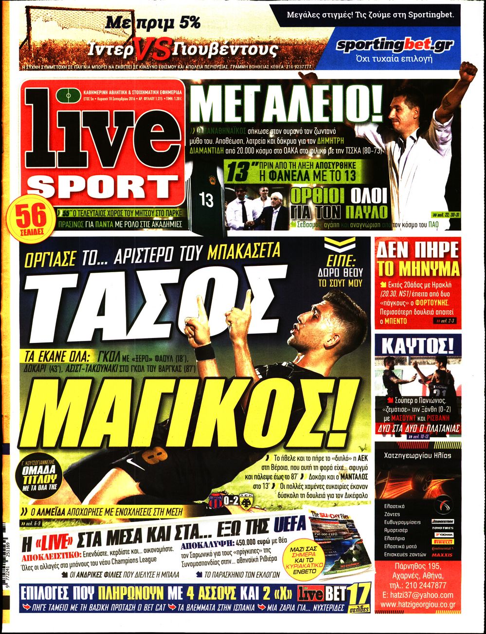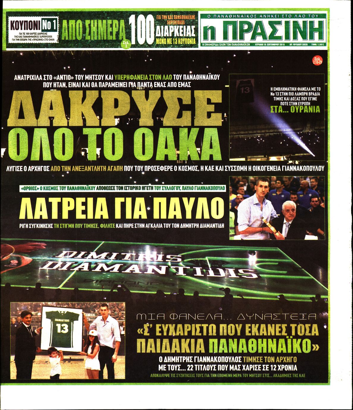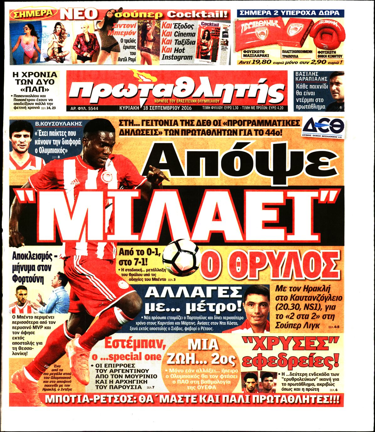 Οι αθλητικές εφημερίδες 18/9/2016 Enikos Newsroom 05:18, Κυριακή 18 Σεπτεμβρίου 2016 Media Διαβάστε τα σημερινά πρωτοσέλιδα των αθλητικών εφημερίδων: ΑΘΛΗΤΙΚΕΣ ΕΦΗΜΕΡΙΔΕΣ ΠΡΩΤΟΣΕΛΙΔΑ Μοιράσου το: σχολίασε κι εσύ (0 σχόλια) Ακολουθήστε το enikos.gr στο Google News και μάθετε πρώτοι όλες τις ειδήσεις Δείτε όλες τις τελευταίες ειδήσεις από την Ελλάδα και τον Κόσμο στο enikos.gr Ειδήσεις Ροή Ειδήσεων 4 ώρες πριν Αγρότες: «Όχι στον διάλογο, μας εμπαίζει η κυβέρνηση» – Αποφάσισαν κλιμάκωση των κινητοποιήσεων, τι θα γίνει τα Χριστούγεννα 46 λεπτά πριν Αθήνα: Εξαρθρώθηκε εγκληματική οργάνωση που διακινούσε ναρκωτικά σε μορφή σοκολάτας – Δύο τράπερ ανάμεσα στους 4 συλληφθέντες – ΒΙΝΤΕΟ 55 λεπτά πριν Στη φυλακή ο «Έλληνας Εσκομπάρ» και τρεις συνεργοί του για το φορτίο με την κοκαΐνη – Τι υποστήριξε στην απολογία του 2 ώρες πριν Γιώργος Μαζωνάκης: «Έχει υποστεί ένα σωρό εκβιαστικές πρακτικές – Του είπαν ότι θα του βάλουν τον συγκεκριμένο άνθρωπο να τον καταγγείλει» 32 λεπτά πριν Γεωργιάδης για Κωνσταντοπούλου: «Έχει καταφέρει να ξεπεράσει ακόμη και τον εαυτό της – Το ερώτημα είναι “γιατί τώρα;”» 5 ώρες πριν Τα 5 ζώδια που θα ευνοηθούν στα οικονομικά τους το 2026 – «Τραβούν το χρήμα σαν μαγνήτες» 2 ώρες πριν Γάμος: 11 ψυχρές αλλά ευγενικές φράσεις, που λέει ένας άνδρας όταν σκέφτεται τον χωρισμό 41 λεπτά πριν Σφουγγάρισμα: Η συνήθεια που θα σας βοηθήσει να διατηρήσετε το σπίτι σας καθαρό και τακτοποιημένο 1 ημέρα πριν 20 χρόνια τα Χριστούγεννα ξεκινούν στα Public με μεγάλη ποικιλία σε δώρα! 2 λεπτά πριν ΗΠΑ: Νέες φωτογραφίες από τον φάκελο Επστάιν έδωσαν στην δημοσιότητα οι Δημοκρατικοί 7 λεπτά πριν ΕΦΕΤ: Συμβουλές για ασφαλή κατανάλωση τροφίμων κατά την εορταστική περίοδο των Χριστουγέννων 16 λεπτά πριν Φάμελλος: Η κινητοποίηση των αγροτών είναι για το συμφέρον όλων των κοινωνικών ομάδων – Πρέπει να φύγετε το συντομότερο 20 λεπτά πριν Primeira Liga: 8ος πιο ακριβός παίκτης στην Πορτογαλία ο Παυλίδης με αξία 35 εκατ. ευρώ – 27ος ο Ιωαννίδης, 45ος ο Βαγιαννίδης 25 λεπτά πριν Λένα Μαντά: «Με τον πατέρα μου δεν έχω ούτε μία καλή ανάμνηση» ENIKOS NETWORK Σκέφτεστε συνέχεια συζητήσεις που έχετε κάνει; Τι σημαίνει αυτό, σύμφωνα με ειδικό Ξεκίνησε η «επέλαση» της γρίπης στην Ελλάδα-Ποιοι κινδυνεύουν Servicers: Μικρή μείωση στα κόκκινα δάνεια που διαχειρίζονται – Αναλυτικά τα στοιχεία ΑΑΔΕ: “Αλλάζει πρόσωπο” το Φορολογικό Μητρώο για πολίτες και επιχειρήσεις – Όλες οι λεπτομέρειες Χαρτογραφώντας το «σημείο χωρίς επιστροφή»: Για πρώτη φορά αποκαλύπτεται με λεπτομέρεια το ακανθώδες όριο της ατμόσφαιρας τ... Η Google καταργεί τη λειτουργία «dark web report» – Πώς θα μπορούν οι χρήστες να διαγράφουν τα δεδομένα τους περισσότερα 17:45 , Πέμπτη 18 Δεκεμβρίου 2025 ROUK ZOUK: Εορταστικό επεισόδιο με καλεσμένους τους πρωταγωνιστές του «Γιατί ρε πατέρα» Το Σάββατο 20 Δεκεμβρίου στις 21:00, η Ζέτα Μακρυπούλια υποδέχεται εκλεκτούς ηθοποιούς που όλο... 17:20 , Πέμπτη 18 Δεκεμβρίου 2025 Άγιος έρωτας: Η Χριστίνα εξομολογείται στον πατέρα Νικόλαο, απόψε στις 21:00 στον Alpha Η Νότα αποφασίζει να εκδικηθεί τον Πέτρο και τον Στέφανο, για χάρη του Λούη, όμως τα πράγματα ... 16:50 , Πέμπτη 18 Δεκεμβρίου 2025 Να μ’ αγαπάς: Ζωή και Φωτεινή συμφιλιώνονται ως μάνα με κόρη, απόψε στις 20:00 Η ταυτότητα του Άγγελου αποκαλύπτεται στο νέο επεισόδιο της σειράς “Να μ’ αγαπάς... 15:52 , Πέμπτη 18 Δεκεμβρίου 2025 Το Σπίτι Δίπλα Στο Ποτάμι: Το καθηλωτικό τελευταίο επεισόδιο για το 2025 απόψε στις 22:3