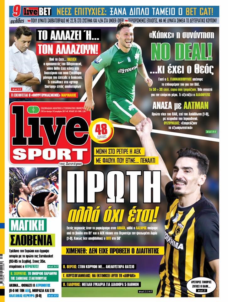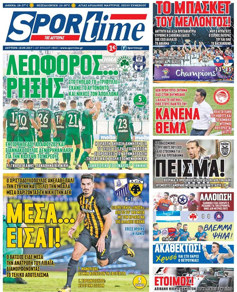 Οι αθλητικές εφημερίδες 18/9/2017 Κώστας Τεό 06:39, Δευτέρα 18 Σεπτεμβρίου 2017 Media Διαβάστε τα σημερινά πρωτοσέλιδα των αθλητικών εφημερίδων: ΑΘΛΗΤΙΚΕΣ ΕΦΗΜΕΡΙΔΕΣ ΠΡΩΤΟΣΕΛΙΔΑ Μοιράσου το: σχολίασε κι εσύ (0 σχόλια) Ακολουθήστε το enikos.gr στο Google News και μάθετε πρώτοι όλες τις ειδήσεις Δείτε όλες τις τελευταίες ειδήσεις από την Ελλάδα και τον Κόσμο στο enikos.gr Ειδήσεις Ροή Ειδήσεων 2 ώρες πριν Χριστούγεννα στα μπλόκα οι αγρότες: Άνοιξαν στα διόδια και μοίρασαν προϊόντα στους πολίτες – Νέα σύσκεψη την Κυριακή στη Νίκαια 2 ώρες πριν Κύκλωμα διακίνησης ναρκωτικών σε σχολεία: Τηλεφωνούσαν στους ανηλίκους την ώρα του μαθήματος – Οι διάλογοι-σοκ, τα «ψευδώνυμα» και τα βασανιστήρια 2 ώρες πριν Αρχεία Επστάιν: Οι 500 σελίδες που λείπουν, τα αναπάντητα ερωτήματα και οι επώνυμοι – Τι έπεται 3 ώρες πριν Ζελένσκι: Μόνο οι ΗΠΑ και ο Τραμπ μπορούν να πιέσουν τη Ρωσία να βάλει τέλος στον πόλεμο 4 ώρες πριν Φοινικούντα: Προφυλακιστέος ο 30χρονος για συνέργεια στη διπλή δολοφονία – Και άλλα πρόσωπα στο «μικροσκόπιο» 2 ώρες πριν Αποκαλύφθηκε το άγνωστο «GPS» της αρχαιότητας – Πώς οι ναοί «φώτιζαν» τον δρόμο των ναυτικών πριν από την εφεύρεση των φάρων 3 ώρες πριν Ύπνος: Η διατροφή που μπορεί να σας βοηθήσει να κοιμάστε καλύτερα και να ζήσετε περισσότερο 4 ώρες πριν Αριθμολογία: Ο αριθμός του φύλακα αγγέλου σας, με βάση τον μήνα γέννησής σας – «Έτσι σας στέλνει σημάδια το σύμπαν» 16 ώρες πριν Enerwave: Το νέο «ρεύμα» στη λιανική ενέργειας που αλλάζει την εμπειρία του καταναλωτή 5 λεπτά πριν Ρετζέπ Ταγίπ Ερντογάν: Δεν έχουμε καμία βλέψη στα εδάφη ή την κυριαρχία κανενός – Δεν θα επιτρέψουμε να παραβιαστούν τα δικαιώματά μας 19 λεπτά πριν Γερμανία: Εκδήλωση μνήμης για τα θύματα της επίθεσης στη χριστουγεννιάτικη αγορά του Μαγδεμβούργου 34 λεπτά πριν The Voice: Η επιστροφή της Έλενας Παπαρίζου και η ατάκα του Γιώργου Μαζωνάκη μετά τις καταγγελίες 49 λεπτά πριν Άδωνις Γεωργιάδης: «Η υγεία είναι κοινωνικό αγαθό, δεν μπορείς να αποκλείσεις κανέναν επειδή δεν έχει χρήματα» 1 ώρα πριν Ανηλίκιο Μετσόβου: Δύο σπίτια παραδόθηκαν στις φλόγες – Επί ποδός η Πυροσβεστική ENIKOS NETWORK Οι γυναίκες αποκαλύπτουν το πιο ελκυστικό πράγμα που μπορεί να κάνει ένας άνδρας Ομορφιά και αντιγήρανση: Ειδικοί μιλούν για συσκευές περιποίησης του δέρματος «Πολεμική» προετοιμασία από την ευρωπαϊκή βιομηχανία ενέργειας – Η Eurelectric ζητεί «ομπρέλα» προστασίας για τις υποδομές Ακύρωση ΑΦΜ για απάτες – Ποιους βάζει στο στόχαστρο η ΑΑΔΕ Χαρτογραφώντας το «σημείο χωρίς επιστροφή»: Για πρώτη φορά αποκαλύπτεται με λεπτομέρεια το ακανθώδες όριο της ατμόσφαιρας τ... Η Google καταργεί τη λειτουργία «dark web report» – Πώς θα μπορούν οι χρήστες να διαγράφουν τα δεδομένα τους περισσότερα 00:00 , Κυριακή 21 Δεκεμβρίου 2025 The Voice: Η επιστροφή της Έλενας Παπαρίζου και η ατάκα του Γιώργου Μαζωνάκη μετά τις καταγγελίες Στη φάση των Cross Battles Live μπήκε το The Voice, με την Έλενα Παπαρίζου να επιστρέφει στο π... 20:30 , Σάββατο 20 Δεκεμβρίου 2025 Αυτή την Κυριακή με τη Realnews: Instyle, μαζί Drive και Realnews Geopolitics Αυτή την Κυριακή με τη Realnews: Instyle, μαζί Drive και Realnews Geopolitics Instyle Η Άννα Ρ... 20:28 , Σάββατο 20 Δεκεμβρίου 2025 Ο ΑΝΤ1 γεμίζει τις γιορτές με μουσική – Ποιους καλλιτέχνες θα απολαύσουμε Φέτος στον ΑΝΤ1 γιορτάζουμε τις νύχτες μας παρέα με αγαπημένους καλλιτέχνες και μεγάλες μουσι... 18:19 , Σάββατο 20 Δεκεμβρίου 2025 HOTΕΛ ΕΛVIRA: Η Ελβίρα μαθαίνει πως ο Χάρι μένει κρυφά στο ξενοδοχείο του Πα
