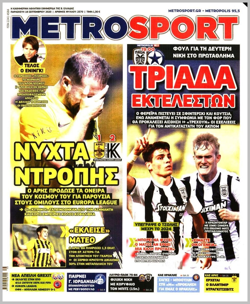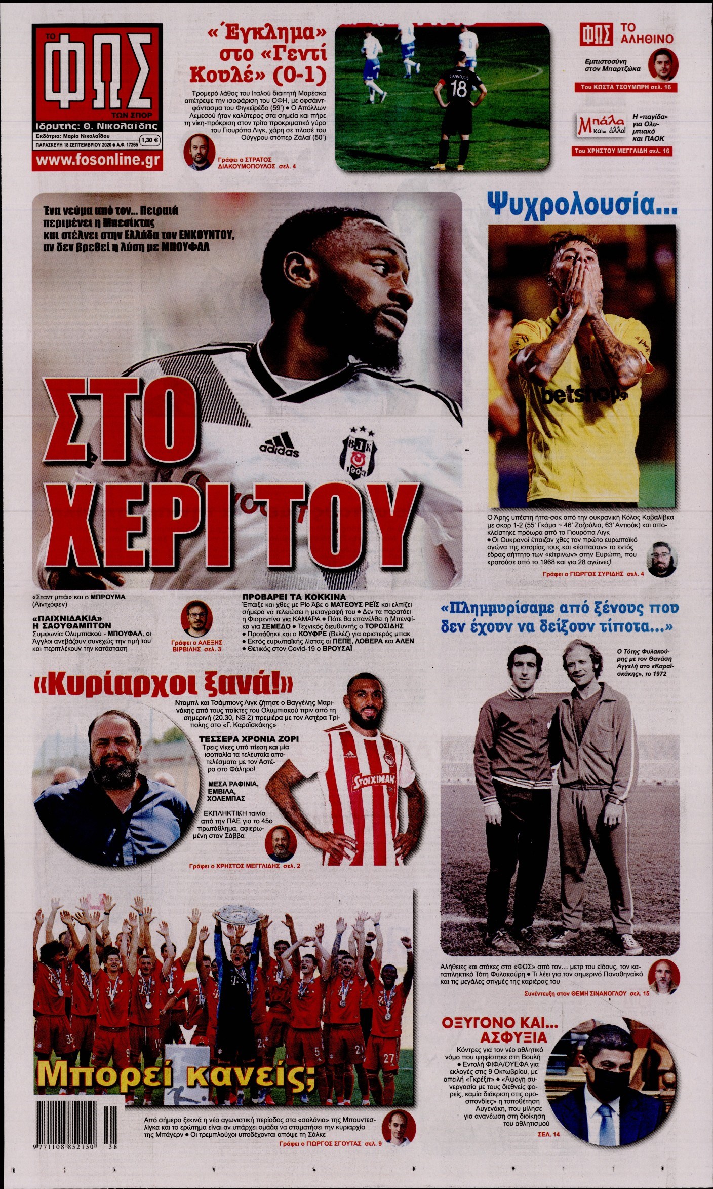 Οι αθλητικές εφημερίδες 18/9/2020 Διονύσης Νίκκας 06:50, Παρασκευή 18 Σεπτεμβρίου 2020 Media Διαβάστε τα πρωτοσέλιδα των αθλητικών εφημερίδων… ΑΘΛΗΤΙΚΕΣ ΕΦΗΜΕΡΙΔΕΣ Μοιράσου το: σχολίασε κι εσύ (0 σχόλια) Ακολουθήστε το enikos.gr στο Google News και μάθετε πρώτοι όλες τις ειδήσεις Δείτε όλες τις τελευταίες ειδήσεις από την Ελλάδα και τον Κόσμο στο enikos.gr Ειδήσεις Ροή Ειδήσεων 8 ώρες πριν Χριστούγεννα στα μπλόκα: Επιμένουν στις κινητοποιήσεις τους οι αγρότες – Ανοίγουν τα διόδια το Σαββατοκύριακο 8 ώρες πριν Ουκρανία: Η άνευ προηγουμένου επίθεση σε ρωσικό τάνκερ στη Μεσόγειο και το μήνυμα προς στον Πούτιν – Το «μακρύ χέρι» του Κιέβου 7 ώρες πριν Πούτιν: Τα μηνύματα σε Ευρώπη και ΝΑΤΟ από το μαραθώνιο «σόου» του – Η απαίτηση για «σεβασμό» και η ειρήνη «με τους όρους» της Μόσχας 6 ώρες πριν ΗΠΑ: Η κυβέρνηση του Ντόναλντ Τραμπ άρχισε να δημοσιοποιεί τα αρχεία Έπσταϊν 7 ώρες πριν Άνω Λιόσια: Πυροβολισμοί σε επιχείρηση με χαλιά – Εντοπίστηκαν 10 κάλυκες 18 λεπτά πριν Αυγά: Πόσα μπορείτε να τρώτε την ημέρα με ασφάλεια για μέγιστη πρόσληψη πρωτεΐνης 48 λεπτά πριν Τα ζώδια σήμερα, Σάββατο 20 Δεκεμβρίου: Παρθένοι, το σύμπαν σας δίνει το κλειδί 7 ώρες πριν Ανακαλύφθηκαν αρχαία χρυσά νομίσματα 2.200 ετών που απεικονίζουν τον θεό Απόλλωνα – Η άγνωστη σύνδεση με τον Φίλιππο Β΄ της Μακεδονίας 8 ώρες πριν Ύπνος: Μια κρυφή κατάσταση του εγκεφάλου πριν από τον ύπνο μπορεί να είναι το “κλειδί” για υψηλή ευφυΐα και δημιουργικότητα 2 λεπτά πριν Οπτική ψευδαίσθηση: Μόνο αν είσαι ο Σέρλοκ Χολμς θα βρεις τον αριθμό «87» σε 7 δευτερόλεπτα 9 λεπτά πριν Σαρωτικοί οι έλεγχοι στους δρόμους ενόψει εορτών – Μπλόκα της τροχαίας σε κεντρικές αρτηρίες της Αττικής 18 λεπτά πριν Αυγά: Πόσα μπορείτε να τρώτε την ημέρα με ασφάλεια για μέγιστη πρόσληψη πρωτεΐνης 24 λεπτά πριν Σαν σήμερα 20 Δεκεμβρίου: Τα σημαντικότερα γεγονότα της ημέρας 29 λεπτά πριν Οι οικονομικές εφημερίδες 20/12/2025 ENIKOS NETWORK Το ΕΚΑΒ τιμήθηκε από την Ακαδημία Αθηνών για τα 40 χρόνια προσφοράς του Έχετε πραγματικά μεγάλη καρδιά; 10 χαρακτηριστικά όσων έχουν καλοσύνη Αναστολή μέτρων αναγκαστικής εκτέλεσης για κτηνοτρόφους που πλήττονται από την ευλογιά των αιγοπροβάτων Πλήρης επάρκεια προϊόντων στις λαϊκές της Αττικής, παρά τις αγροτικές κινητοποιήσεις – Τι απαντούν οι πωλητές Χαρτογραφώντας το «σημείο χωρίς επιστροφή»: Για πρώτη φορά αποκαλύπτεται με λεπτομέρεια το ακανθώδες όριο της ατμόσφαιρας τ... Η Google καταργεί τη λειτουργία «dark web report» – Πώς θα μπορούν οι χρήστες να διαγράφουν τα δεδομένα τους περισσότερα 05:48 , Σάββατο 20 Δεκεμβρίου 2025 Οι οικονομικές εφημερίδες 20/12/2025 Διαβάστε τα πρωτοσέλιδα από τις οικονομικές εφημερίδες, σήμερα 20/12/2025. 05:43 , Σάββατο 20 Δεκεμβρίου 2025 Οι αθλητικές εφημερίδες 20/12/2025 Διαβάστε τα πρωτοσέλιδα από τις αθλητικές εφημερίδες, σήμερα 20/12/2025. 05:38 , Σάββατο 20 Δεκεμβρίου 2025 Οι πολιτικές εφημερίδες 20/12/2025 Διαβάστε τα πρωτοσέλιδα από τις πολιτικές εφημερίδες, σήμερα 20/12/2025. 04:20 , Σάββατο 20 Δεκεμβρίου 2025 Αγγελική Νικολούλη: Τα συλλυπητήρια για την απώλεια της Ειρήνης Μαρινάκη Τα συλληπητήρια στον πρόεδρο του Mega, τον Βαγγέλη Μαρινάκη, για την απώλεια της μητέρας του Ε... ΤΕΛΕΥΤΑΙΕΣ ΕΙΔΗΣΕΙΣ 9 λεπτά πριν Σαρωτικοί οι έλεγχοι στους δρόμους ενόψει εορτών –... 18 λεπτά πριν Αυγά: Πόσα μπορείτε να τρώτε την ημέρα με ασφάλεια για... 24 λεπτά πριν Σαν σήμερα 20 Δεκεμβρίου: Τα σημαντικότερα γεγονότα... 29 λεπτά πριν Οι οικονομικές εφημερίδ