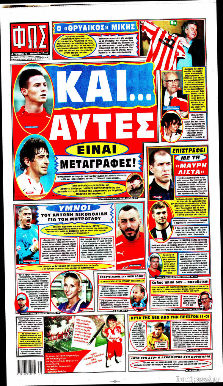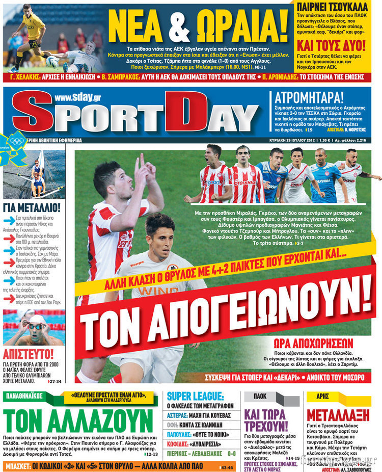 Τα πρωτοσέλιδα των αθλητικών εφημερίδων.