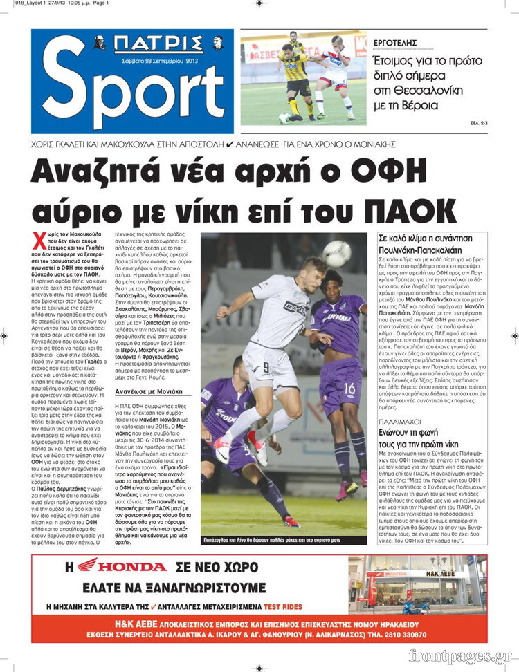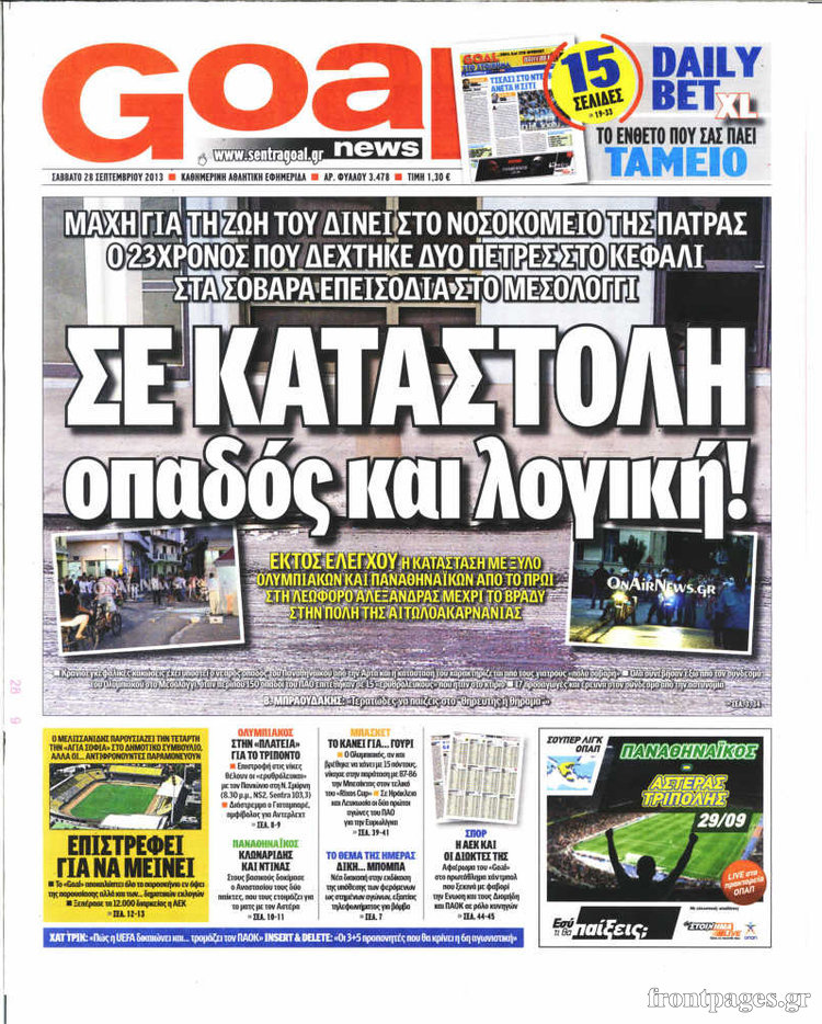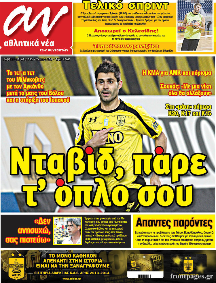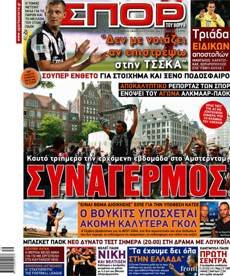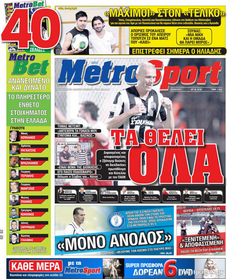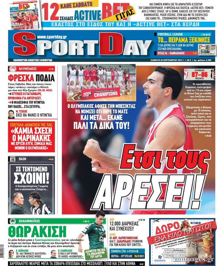 Οι αθλητικές εφημερίδες Enikos Newsroom 08:27, Σάββατο 28 Σεπτεμβρίου 2013 Media Οι αθλητικές εφημερίδες ΑΘΛΗΤΙΚΕΣ ΕΦΗΜΕΡΙΔΕΣ ΕΦΗΜΕΡΙΔΕΣ Μοιράσου το: σχολίασε κι εσύ (0 σχόλια) Ακολουθήστε το enikos.gr στο Google News και μάθετε πρώτοι όλες τις ειδήσεις Δείτε όλες τις τελευταίες ειδήσεις από την Ελλάδα και τον Κόσμο στο enikos.gr Ειδήσεις Ροή Ειδήσεων 1 ώρα πριν Δημοσκόπηση Alco: Στο 23,6% η ΝΔ, στο 11,6% το ΠΑΣΟΚ – Η άποψη των πολιτών για αγρότες, εκλογές και Τσίπρα 5 ώρες πριν Κυψέλη: Για πρώτη ημέρα βρισκόταν στο σχολείο η 16χρονη που επιτέθηκε με μαχαίρι στην 14χρονη – Τι αναφέρουν μαρτυρίες μαθητών για το επεισόδιο 2 ώρες πριν Φοινικούντα: Αρνούνται τις κατηγορίες οι 2 συλληφθέντες – «Θέλω να συμβάλλω στην αποκάλυψη της αλήθειας» λέει ο ανιψιός του θύματος 3 ώρες πριν Κρήτη: Εντοπίστηκε στίγμα του 33χρονου γιατρού που έχει εξαφανιστεί μέσω νέας τεχνολογίας που εφαρμόζεται για πρώτη φορά στην Ελλάδα 4 ώρες πριν Ρομπ και Μισέλ Ράινερ: Συνελήφθη ο γιος τους ως ύποπτος για την δολοφονία τους 6 ώρες πριν Τα 3 ζώδια που θα έχουν τύχη «βουνό» έως τις 21 Δεκεμβρίου – «Η ανατροπή που περιμένετε πλησιάζει» 3 ώρες πριν Γάμος: Αν ένας άνδρας νιώθει βαθιά μοναξιά, θα αρχίσει να κάνει αυτά τα 11 πράγματα μέσα στο σπίτι 2 ώρες πριν Πώς να μην μαραίνονται γρήγορα τα κομμένα λουλούδια: Το λάθος στην τοποθέτηση του βάζου που πρέπει να αποφεύγετε 7 ώρες πριν Επιστήμονες του CERN έλυσαν ένα μυστήριο δεκαετιών της σωματιδιακής φυσικής – Τι ανακάλυψαν 6 λεπτά πριν Βάσω Λασκαράκη: «Χρόνια πολλά, αγάπη μου σε ευχαριστώ που κάνεις την ζωή μου πιο ωραία» – Οι ευχές στον Λευτέρη Σουλτάτο για την γιορτή του 12 λεπτά πριν Μερτς: Οι συνομιλίες για την Ουκρανία είναι «ίσως η μεγαλύτερη διπλωματική δυναμική» – Ζελένσκι: «Επώδυνο το εδαφικό» 16 λεπτά πριν Κόντρα Θεοδωρικάκου – Φάμελλου στη Βουλή – Τα «πυρά» της Κωνσταντοπούλου 21 λεπτά πριν Πιερρακάκης: Σύντομα η Ελλάδα θα έχει περάσει στην πρώτη πεντάδα της Ευρώπης στην ψηφιακή πολιτική – Έχουμε πετύχει έναν άθλο 26 λεπτά πριν Νέα σύλληψη στο «Ελ. Βενιζέλος» για ναρκωτικά – Χειροπέδες σε 23χρονο που είχε 18,5 κιλά κάνναβης στη βαλίτσα του ENIKOS NETWORK Πότε το χρόνιο ροχαλητό να αποτελέσει ένδειξη κινδύνου για την καρδιά; Τι λένε οι ειδικοί Μάριος Θεμιστοκλέους: Το ΕΣΥ ενισχύεται, εκσυγχρονίζεται, αλλάζει ΟΠΕΚΑ: Ποιο επίδομα αυξάνεται από τον επόμενο μήνα και γιατί Ευλογιά αιγοπροβάτων: Έως το τέλος του έτους η οικονομική στήριξη 187 εκατ. ευρώ σε κτηνοτρόφους – Όλα όσα είπε ο Πρωτοψάλτ... Σύγχρονος Νοστράδαμος: Προειδοποιεί για «μεγάλο γεγονός» τους επόμενους μήνες που θα συγκλονίσει τη Βρετανία και τον κόσμο Τεστ παρατηρητικότητας: Μπορείτε να βρείτε τις 3 διαφορές στις εικόνες με έναν πιγκουίνο σε 14 δευτερόλεπτα περισσότερα 19:46 , Δευτέρα 15 Δεκεμβρίου 2025 Άγιος έρωτας: Η Χριστίνα λέει την αλήθεια στον Αντρέα Ο Βασίλης δέχεται επίθεση από τους συμμαθητές του, η Αναστασία είναι συντετριμμένη με την απώλ... 18:45 , Δευτέρα 15 Δεκεμβρίου 2025 Συνέδριο «Ελληνικός Τουρισμός 2025, Μια εθνική υπόθεση!» – «Ο Θαλάσσιος Πυλώνας ως Ενιαία Στρατηγική: Συνέργειες σε Λιμάνια, Μαρίνες, Ακτοπλοΐα, Κρουαζιέρα και Yachting» Στο πλαίσιο της τέταρτης και τελευταίας ενότητας του 7ου συνεδρίου «Ελληνικός Τουρισμός 2025, ... 18:13 , Δευτέρα 15 Δεκεμβρίου 2025 Συνέδριο «Ελληνικός Τουρισμός 2025, Μια εθνική υπόθεση!» – Κικίλιας: «Μεγάλα asset της Ελλάδας η ναυτιλία και ο τουρισμός» Στον θαλάσσιο οικονομικό «πυλώνα» τ