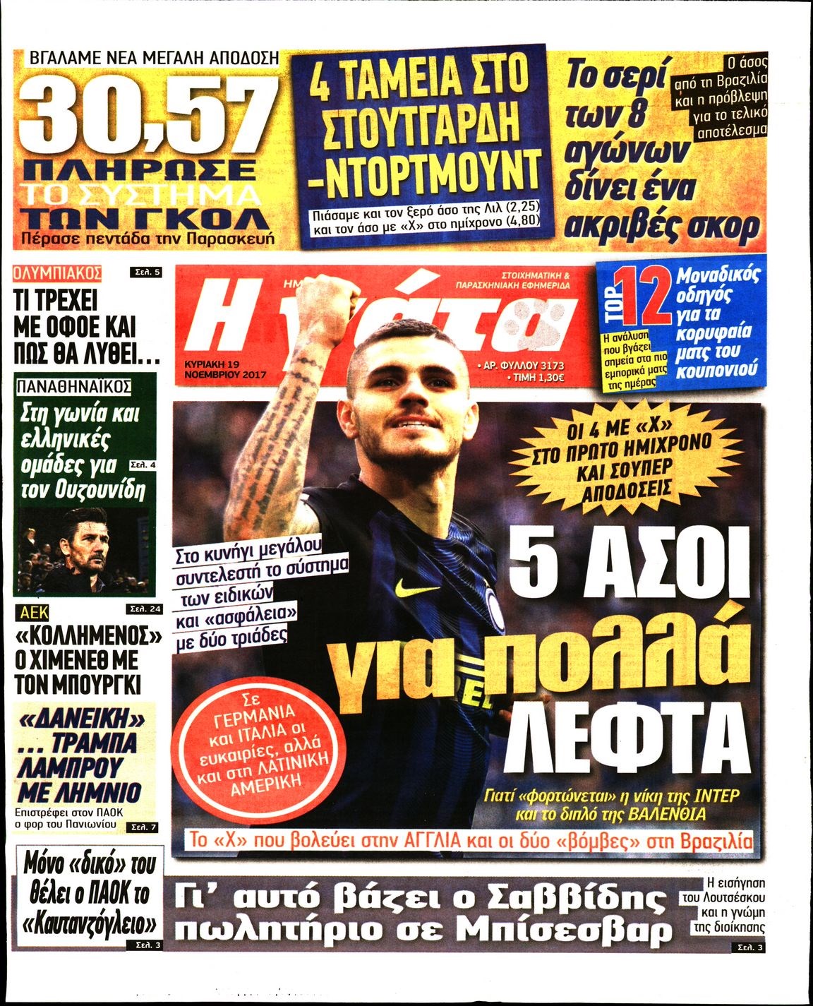 Οι αθλητικές εφημερίδες 19/11/2017 Enikos Newsroom 07:37, Κυριακή 19 Νοεμβρίου 2017 Media Διαβάστε τα σημερινά πρωτοσέλιδα των αθλητικών εφημερίδων: ΑΘΛΗΤΙΚΕΣ ΕΦΗΜΕΡΙΔΕΣ ΠΡΩΤΟΣΕΛΙΔΑ Μοιράσου το: σχολίασε κι εσύ (0 σχόλια) Ακολουθήστε το enikos.gr στο Google News και μάθετε πρώτοι όλες τις ειδήσεις Δείτε όλες τις τελευταίες ειδήσεις από την Ελλάδα και τον Κόσμο στο enikos.gr Ειδήσεις Ροή Ειδήσεων 7 ώρες πριν Χριστούγεννα στα μπλόκα: Επιμένουν στις κινητοποιήσεις τους οι αγρότες – Ανοίγουν τα διόδια το Σαββατοκύριακο 7 ώρες πριν Ουκρανία: Η άνευ προηγουμένου επίθεση σε ρωσικό τάνκερ στη Μεσόγειο και το μήνυμα προς στον Πούτιν – Το «μακρύ χέρι» του Κιέβου 6 ώρες πριν Πούτιν: Τα μηνύματα σε Ευρώπη και ΝΑΤΟ από το μαραθώνιο «σόου» του – Η απαίτηση για «σεβασμό» και η ειρήνη «με τους όρους» της Μόσχας 7 ώρες πριν Τραμπ: Δεν αποκλείει την πιθανότητα ενός πολέμου στη Βενεζουέλα – «Ο Μαδούρο ξέρει καλύτερα από τον καθένα τι ακριβώς θέλω» 8 ώρες πριν Συνεχίζει να προκαλεί ο Μίτσκοσκι: «Για μένα το όνομα Μακεδονία είναι ιερό» 6 ώρες πριν Ανακαλύφθηκαν αρχαία χρυσά νομίσματα 2.200 ετών που απεικονίζουν τον θεό Απόλλωνα – Η άγνωστη σύνδεση με τον Φίλιππο Β΄ της Μακεδονίας 7 ώρες πριν Ύπνος: Μια κρυφή κατάσταση του εγκεφάλου πριν από τον ύπνο μπορεί να είναι το “κλειδί” για υψηλή ευφυΐα και δημιουργικότητα 8 ώρες πριν Αριθμολογία: Οι άνθρωποι που έχουν γεννηθεί αυτές τις 4 ημερομηνίες, συχνά παρεξηγούνται – «Η καλοσύνη τους κρύβει τεράστια δύναμη» 9 ώρες πριν Ξεχάστε το καθάρισμα το Σαββατοκύριακο: Ο «κανόνας των 20 λεπτών» που θα σας λύσει τα χέρια 5 λεπτά πριν ΟΗΕ: Το Συμβούλιο Ασφαλείας παρατείνει για έναν χρόνο την εντολή της ειρηνευτικής δύναμης στο Κονγκό 20 λεπτά πριν Μοχάμεντ Σαλάχ: Ζήτησε «συγγνώμη» από τους συμπαίκτες του στη Λίβερπουλ για το ξέσπασμά του 35 λεπτά πριν Μάρκο Ρούμπιο: Ανθρωπιστική κατάπαυση του πυρός στο Σουδάν ζητά ο Αμερικανός υπουργός Εξωτερικών 50 λεπτά πριν Αγγελική Νικολούλη: Τα συλλυπητήρια για την απώλεια της Ειρήνης Μαρινάκη 1 ώρα πριν Βολιβία: Μαζική διαδηλώσεις εναντίον της κατάργησης των επιδοτήσεων των τιμών των καυσίμων ENIKOS NETWORK Το ΕΚΑΒ τιμήθηκε από την Ακαδημία Αθηνών για τα 40 χρόνια προσφοράς του Έχετε πραγματικά μεγάλη καρδιά; 10 χαρακτηριστικά όσων έχουν καλοσύνη Αναστολή μέτρων αναγκαστικής εκτέλεσης για κτηνοτρόφους που πλήττονται από την ευλογιά των αιγοπροβάτων Πλήρης επάρκεια προϊόντων στις λαϊκές της Αττικής, παρά τις αγροτικές κινητοποιήσεις – Τι απαντούν οι πωλητές Χαρτογραφώντας το «σημείο χωρίς επιστροφή»: Για πρώτη φορά αποκαλύπτεται με λεπτομέρεια το ακανθώδες όριο της ατμόσφαιρας τ... Η Google καταργεί τη λειτουργία «dark web report» – Πώς θα μπορούν οι χρήστες να διαγράφουν τα δεδομένα τους περισσότερα 04:20 , Σάββατο 20 Δεκεμβρίου 2025 Αγγελική Νικολούλη: Τα συλλυπητήρια για την απώλεια της Ειρήνης Μαρινάκη Τα συλληπητήρια στον πρόεδρο του Mega, τον Βαγγέλη Μαρινάκη, για την απώλεια της μητέρας του Ε... 02:50 , Σάββατο 20 Δεκεμβρίου 2025 GNTM: Η Ξένια Τσίρκοβα αναδείχθηκε μεγάλη νικήτρια και πήρε τις 50.000 ευρώ – Ποιος βρέθηκε σε απόσταση αναπνοής; Με φαντασμαγορικό τρόπο ολοκληρώθηκε το βράδυ της Παρασκευής ο μεγάλος τελικός του GNTM, μέσα ... 22:42 , Παρασκευή 19 Δεκεμβρίου 2025 Γιώργος Γιαννόπουλος για “Το σόι σου”: “Είναι ευτυχία και ευλογία αυτή η σειρά” «Είναι ευτυχία και ευλογία η συγκυρία αυτής της σειράς», θα πει ο Γιώργος Γιαννόπουλος -ο αγαπ... 20:
