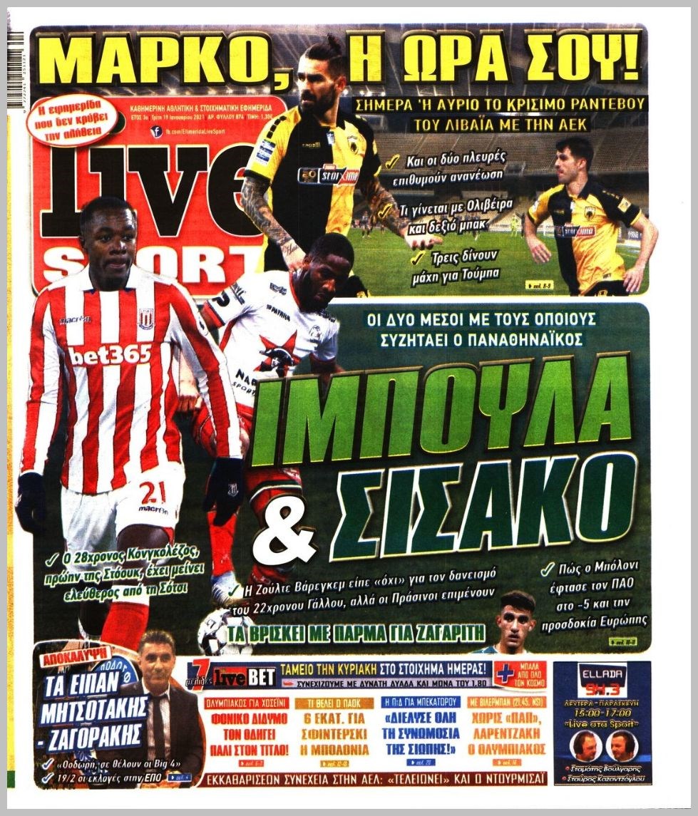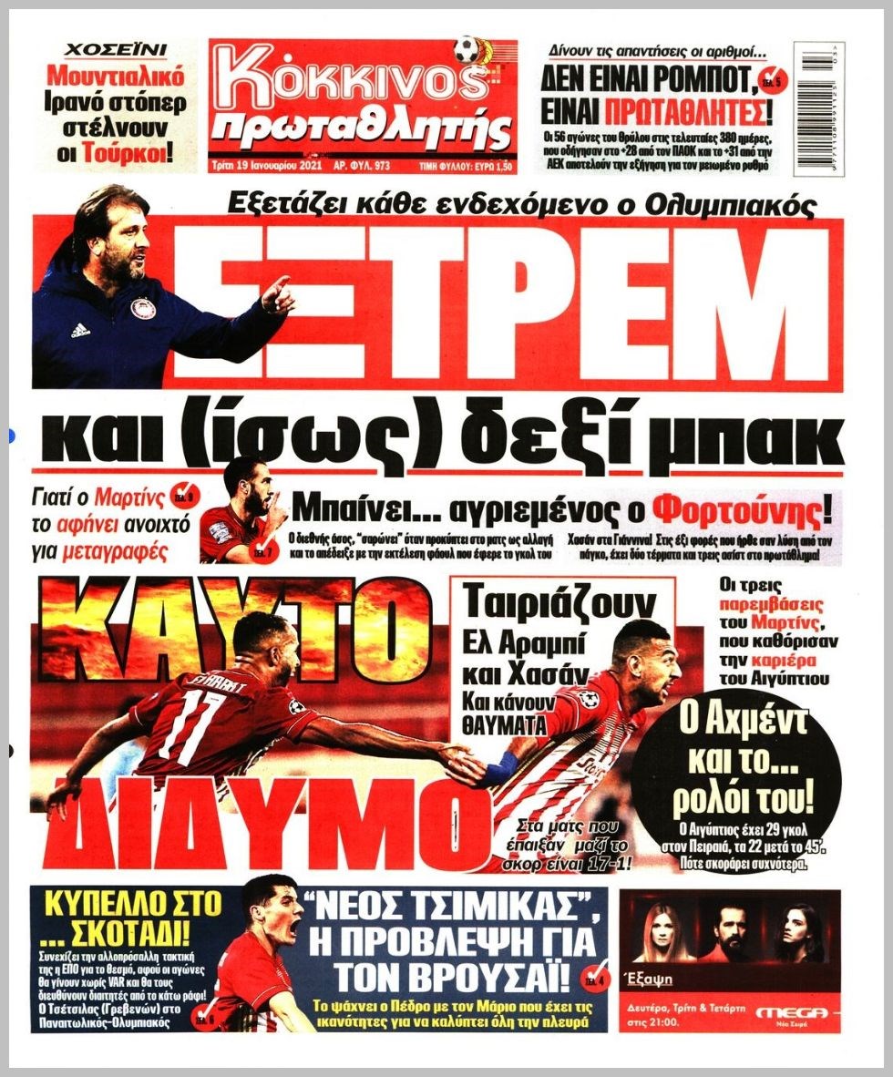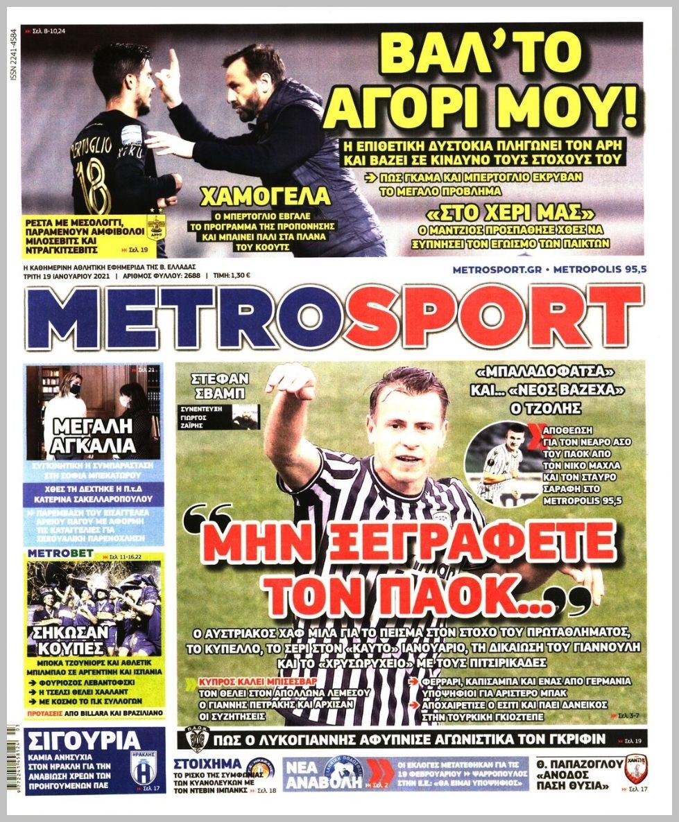 Οι αθλητικές εφημερίδες 19/1/2021 Διονύσης Νίκκας 06:49, Τρίτη 19 Ιανουαρίου 2021 Media Διαβάστε τα πρωτοσέλιδα των αθλητικών εφημερίδων… ΑΘΛΗΤΙΚΕΣ ΕΦΗΜΕΡΙΔΕΣ Μοιράσου το: σχολίασε κι εσύ (0 σχόλια) Ακολουθήστε το enikos.gr στο Google News και μάθετε πρώτοι όλες τις ειδήσεις Δείτε όλες τις τελευταίες ειδήσεις από την Ελλάδα και τον Κόσμο στο enikos.gr Ειδήσεις Ροή Ειδήσεων 23 λεπτά πριν Υπόθεση Έπσταϊν: Το Υπουργείο Δικαιοσύνης δημοσιοποίησε μια σειρά από εξαιρετικά επεξεργασμένα αρχεία – «Λείπουν τα πιο σημαντικά έγγραφα», λένε οι Δημοκρατικοί 2 ώρες πριν Σαρωτικοί οι έλεγχοι στους δρόμους ενόψει εορτών – Μπλόκα της τροχαίας σε κεντρικές αρτηρίες της Αττικής 34 λεπτά πριν ΟΝΕΧ – MEGATUGS: Ξεκίνησε η ναυπήγηση ρυμουλκών στην Ελλάδα – Προθάλαμος πολεμικών πλοίων – Δείτε φωτογραφίες και βίντεο 10 ώρες πριν Χριστούγεννα στα μπλόκα: Επιμένουν στις κινητοποιήσεις τους οι αγρότες – Ανοίγουν τα διόδια το Σαββατοκύριακο 9 ώρες πριν Πούτιν: Τα μηνύματα σε Ευρώπη και ΝΑΤΟ από το μαραθώνιο «σόου» του – Η απαίτηση για «σεβασμό» και η ειρήνη «με τους όρους» της Μόσχας 2 ώρες πριν Αυγά: Πόσα μπορείτε να τρώτε την ημέρα με ασφάλεια για μέγιστη πρόσληψη πρωτεΐνης 3 ώρες πριν Τα ζώδια σήμερα, Σάββατο 20 Δεκεμβρίου: Παρθένοι, το σύμπαν σας δίνει το κλειδί 9 ώρες πριν Ανακαλύφθηκαν αρχαία χρυσά νομίσματα 2.200 ετών που απεικονίζουν τον θεό Απόλλωνα – Η άγνωστη σύνδεση με τον Φίλιππο Β΄ της Μακεδονίας 2 ώρες πριν Οπτική ψευδαίσθηση: Μόνο αν είσαι ο Σέρλοκ Χολμς θα βρεις τον αριθμό «87» σε 7 δευτερόλεπτα 3 λεπτά πριν Αρχαιολόγοι ανακάλυψαν σε χωράφι απεικόνιση 600 ετών ενός Αγίου – Τα στοιχεία που δείχνουν ότι μαρτύρησε 11 λεπτά πριν Mega χριστουγεννιάτικη φορολοταρία: «Κλείδωσε» η ημερομηνία για την κλήρωση – Ερωτήσεις και απαντήσεις 18 λεπτά πριν ΗΠΑ: Τέσσερις μετανάστες πέθαναν σε κέντρα κράτησης – Αύξηση θανάτων σε επίπεδο ρεκόρ το 2025 23 λεπτά πριν Υπόθεση Έπσταϊν: Το Υπουργείο Δικαιοσύνης δημοσιοποίησε μια σειρά από εξαιρετικά επεξεργασμένα αρχεία – «Λείπουν τα πιο σημαντικά έγγραφα», λένε οι Δημοκρατικοί 26 λεπτά πριν Καιρός: Αλλαγή σκηνικού σήμερα με βροχές και πτώση της θερμοκρασίας – Οι προβλέψεις των μετεωρολόγων για τα Χριστούγεννα ENIKOS NETWORK Το τεστ των 10 δευτερολέπτων που μπορεί να προβλέψει το προσδόκιμο ζωής σας – Τι λέει ειδικός του Cleveland Επιλέξτε καρέκλα για να μάθετε ποια είναι τα κρυφά χαρακτηριστικά σας – Τι αποκάλυψε για εσάς αυτό το τεστ προσωπικότητας; Mega χριστουγεννιάτικη φορολοταρία: «Κλείδωσε» η ημερομηνία για την κλήρωση – Ερωτήσεις και απαντήσεις Αναστολή μέτρων αναγκαστικής εκτέλεσης για κτηνοτρόφους που πλήττονται από την ευλογιά των αιγοπροβάτων Χαρτογραφώντας το «σημείο χωρίς επιστροφή»: Για πρώτη φορά αποκαλύπτεται με λεπτομέρεια το ακανθώδες όριο της ατμόσφαιρας τ... Η Google καταργεί τη λειτουργία «dark web report» – Πώς θα μπορούν οι χρήστες να διαγράφουν τα δεδομένα τους περισσότερα 05:48 , Σάββατο 20 Δεκεμβρίου 2025 Οι οικονομικές εφημερίδες 20/12/2025 Διαβάστε τα πρωτοσέλιδα από τις οικονομικές εφημερίδες, σήμερα 20/12/2025. 05:43 , Σάββατο 20 Δεκεμβρίου 2025 Οι αθλητικές εφημερίδες 20/12/2025 Διαβάστε τα πρωτοσέλιδα από τις αθλητικές εφημερίδες, σήμερα 20/12/2025. 05:38 , Σάββατο 20 Δεκεμβρίου 2025 Οι πολιτικές εφημερίδες 20/12/2025 Διαβάστε τα πρωτοσέλιδα από τις πολιτικές εφημερίδες, σήμερα 20/12/2025. 04:20 , Σάββατο 20 Δεκεμβρίου 2025 Αγγελική Νικολούλη: Τα συλλυπητήρια για την απώλεια της Ειρήνη