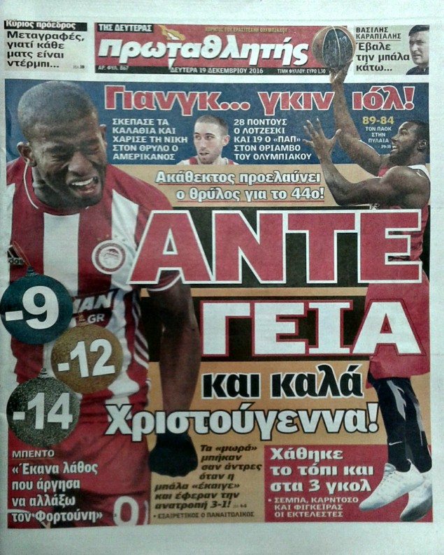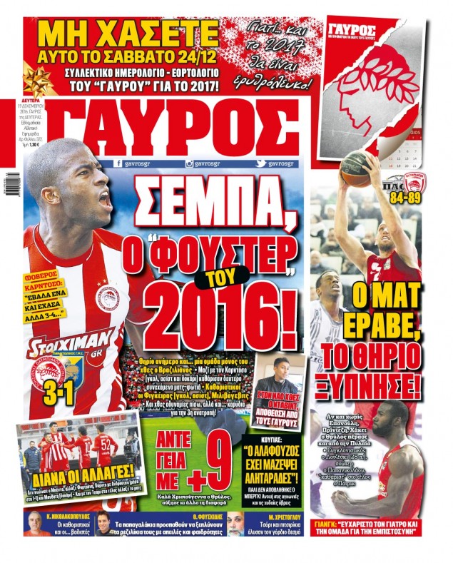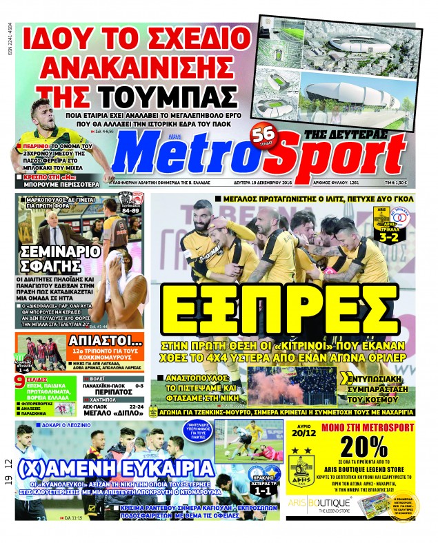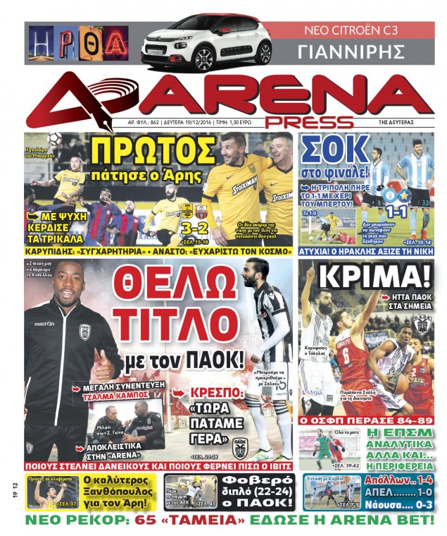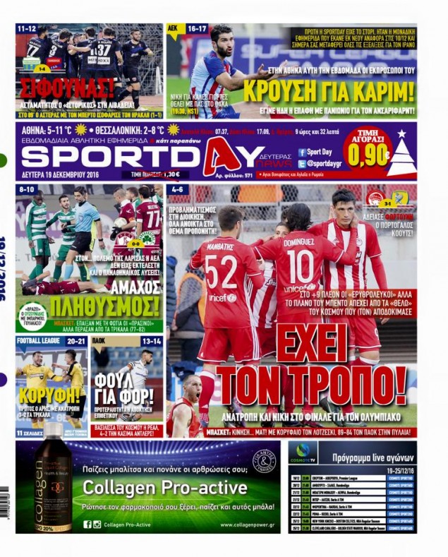 Οι αθλητικές εφημερίδες 19/12/2016 Κώστας Τεό 04:48, Δευτέρα 19 Δεκεμβρίου 2016 Media Διαβάστε τα σημερινά πρωτοσέλιδα των αθλητικών εφημερίδων: ΑΘΛΗΤΙΚΕΣ ΕΦΗΜΕΡΙΔΕΣ ΠΡΩΤΟΣΕΛΙΔΑ Μοιράσου το: σχολίασε κι εσύ (0 σχόλια) Ακολουθήστε το enikos.gr στο Google News και μάθετε πρώτοι όλες τις ειδήσεις Δείτε όλες τις τελευταίες ειδήσεις από την Ελλάδα και τον Κόσμο στο enikos.gr Ειδήσεις Ροή Ειδήσεων 13 λεπτά πριν Εκτός ευρωομάδας ΣΥΡΙΖΑ ο Νίκος Παππάς μετά την επίθεση στον δημοσιογράφο Νίκο Γιαννόπουλο – Η μήνυση και οι νέες δηλώσεις 42 λεπτά πριν «Αγριεύουν» οι αγρότες: «Δεν συντρέχει λόγος συνάντησης με τον πρωθυπουργό» – Ώρα αποφάσεων στη σύσκεψη της Πέμπτης 36 λεπτά πριν Κυψέλη: Χωρίς την οικογένειά της δίπλα της απολογήθηκε η 16χρονη – «Της είχε επιτεθεί κάποιος για να την βιάσει, φοβήθηκε και κυκλοφορούσε με μαχαίρι» 8 λεπτά πριν Politico: Το πρόβλημα της Ευρώπης δεν είναι το Βέλγιο αλλά ο Ντόναλντ Τραμπ 2 ώρες πριν Αλεξανδρούπολη: Πολυοργανική ανεπάρκεια λόγω υποσιτισμού η αιτία θανάτου του 3χρονου αγοριού 26 λεπτά πριν Μυστήριο με τεράστιες κυκλικές πέτρες 200 κιλών – Ανακαλύφθηκαν τυχαία κατά τη διάρκεια οδικών έργων και κανείς δεν ξέρει από πού προέρχονται 1 ώρα πριν Ύπνος: Ειδικός εξηγεί τον πραγματικό λόγο που ξυπνάτε στις 4 τα ξημερώματα – Ο ρόλος των ορμονών και του κιρκάδιου ρυθμού 2 ώρες πριν Αριθμολογία: Οι άνθρωποι που έχουν γεννηθεί αυτές τις 4 ημερομηνίες, είναι τρυφεροί και αγαπούν ανιδιοτελώς 14 ώρες πριν 20 χρόνια τα Χριστούγεννα ξεκινούν στα Public με μεγάλη ποικιλία σε δώρα! 8 λεπτά πριν Politico: Το πρόβλημα της Ευρώπης δεν είναι το Βέλγιο αλλά ο Ντόναλντ Τραμπ 13 λεπτά πριν Εκτός ευρωομάδας ΣΥΡΙΖΑ ο Νίκος Παππάς μετά την επίθεση στον δημοσιογράφο Νίκο Γιαννόπουλο – Η μήνυση και οι νέες δηλώσεις 13 λεπτά πριν Κύπελλο Ελλάδας: Η Μαρκό έστειλε τον ΠΑΟΚ στον Ολυμπιακό… μέσω Ατρόμητου 17 λεπτά πριν Άκης Σκέρτσος: Μήνυση και αγωγή κατά της Ζωής Κωνσταντοπούλου θα καταθέσει ο υπουργός Επικρατείας 26 λεπτά πριν Μυστήριο με τεράστιες κυκλικές πέτρες 200 κιλών – Ανακαλύφθηκαν τυχαία κατά τη διάρκεια οδικών έργων και κανείς δεν ξέρει από πού προέρχονται ENIKOS NETWORK Αϋπνία: Το κόλπο που θα σας βοηθήσει να κοιμηθείτε απόψε – Είναι απλό και έχει αποτέλεσμα 2,6 εκατομμύρια πολίτες έχουν ήδη εμβολιαστεί κατά της γρίπης ΕΛΣΤΑΤ: Τι δείχνουν τα νέα στοιχεία για τις ηλεκτρονικές παραγγελίες των επιχειρήσεων ΚΕΠΕ: Οι 3 διακριτές συμβολές των ΜμΕ και της μεταποίησης στην ελληνική οικονομία Χαρτογραφώντας το «σημείο χωρίς επιστροφή»: Για πρώτη φορά αποκαλύπτεται με λεπτομέρεια το ακανθώδες όριο της ατμόσφαιρας τ... Η Google καταργεί τη λειτουργία «dark web report» – Πώς θα μπορούν οι χρήστες να διαγράφουν τα δεδομένα τους περισσότερα 22:24 , Τετάρτη 17 Δεκεμβρίου 2025 Το Σπίτι Δίπλα Στο Ποτάμι: Σε κίνδυνο η υγεία του Απόστολου – Τι θα δούμε απόψε “Το Σπίτι Δίπλα στο Ποτάμι” ξετυλίγει το νήμα της ζωής των πέντε αδελφών με καταισ... 21:14 , Τετάρτη 17 Δεκεμβρίου 2025 Παιχνίδια Εκδίκησης: Θα καταφέρει ο Χρήστος να κλονίσει την εμπιστοσύνη της Μάγιας απέναντι στον Άγη; Τα «Παιχνίδια Εκδίκησης» έρχονται απόψε στις 22:30, στον Αντ1, με το τελευταίο επεισόδιο της χ... 20:57 , Τετάρτη 17 Δεκεμβρίου 2025 Άγιος Έρωτας: Η Χλόη καταθέτει εναντίον του πατέρα της και ο Χάρης αποκαλύπτει στον Κλεάνθη ότι δεν είναι ο βιολογικός του πατέρας. Γεμάτο αποκαλύψεις είναι το νέο επεισόδιο της σειράς “Άγιος Έρωτας” απόψε στις 21:... 20:15 , Τετά