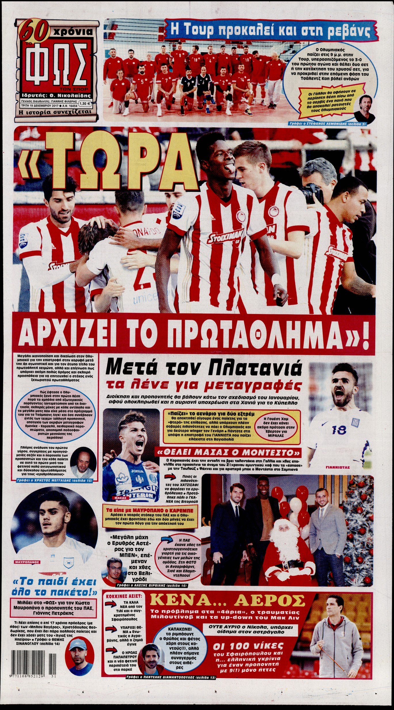 Οι αθλητικές εφημερίδες 19/12/2017 Enikos Newsroom 07:18, Τρίτη 19 Δεκεμβρίου 2017 Media Προγραμματισμός Διαβάστε τα σημερινά πρωτοσέλιδα των αθλητικών εφημερίδων: ΑΘΛΗΤΙΚΕΣ ΕΦΗΜΕΡΙΔΕΣ ΠΡΩΤΟΣΕΛΙΔΑ Μοιράσου το: σχολίασε κι εσύ (0 σχόλια) Ακολουθήστε το enikos.gr στο Google News και μάθετε πρώτοι όλες τις ειδήσεις Δείτε όλες τις τελευταίες ειδήσεις από την Ελλάδα και τον Κόσμο στο enikos.gr Ειδήσεις Ροή Ειδήσεων 27 λεπτά πριν Μεσόγειος: Η διαδρομή του ρωσικού τάνκερ «Qendil» και η στοχευμένη επίθεση της Ουκρανίας με drone – Ο Πούτιν προειδοποίησε για αντίποινα 2 ημέρες πριν 20 χρόνια τα Χριστούγεννα ξεκινούν στα Public με μεγάλη ποικιλία σε δώρα! 1 ώρα πριν Από το Ορμένιο ως τα Μάλγαρα κι από τη Σιάτιστα μέχρι τη Νίκαια: Μπλόκα σε όλη την Ελλάδα – Το Σάββατο ανοίγουν τα διόδια οι αγρότες 1 ώρα πριν «Έλληνας Εσκομπάρ»: Φωτογραφίες με τους 4 τόνους κοκαΐνης που κατασχέθηκαν από το σκάφος «Ουρανία» 3 ώρες πριν Πούτιν: Σαρκαστικά μηνύματα, παράπονα και απρόοπτα στη συνέντευξη Τύπου – Η πρόταση γάμου on air και οι ερωτήσεις για τα αγγούρια και τους… εξωγήινους 2 ώρες πριν Τα 5 ζώδια που ευνοούνται στην ερωτική ζωή τους την επόμενη εβδομάδα – «Η ενέργεια του Αιγόκερου φέρνει αγάπη και σταθερότητα» 7 ώρες πριν Γεμάτος νεροχύτης; 5 σοβαρές ευθύνες που «φοβίζουν» όσους αφήνουν άπλυτα πιάτα 6 ώρες πριν Ειδικός μοιράζεται 6 κόλπα για να διατηρείστε σε φόρμα με πάνω από 40 ώρες εργασίας την εβδομάδα: «Προπονηθείτε πριν από τη δουλειά, όχι μετά» 21 λεπτά πριν Αττική: Θρίλερ με νεκρό βρέφος 5 μηνών – Κοιμόταν στο ίδιο κρεβάτι με τους γονείς του 6 λεπτά πριν Κερατσίνι: Αστυνομικός εκτός υπηρεσίας απέτρεψε κλοπή μηχανών – Συνελήφθησαν τρεις ανήλικοι 10 λεπτά πριν Το σόι σου: Ο Άρης έρχεται στην Ελλάδα για τις γιορτές των Χριστουγέννων – Τι θα δούμε στο αποψινό εορταστικό επεισόδιο 17 λεπτά πριν ΠΑΣΟΚ σε Μαρινάκη: Δεν νομιμοποιούμε πολιτικές επιλογές που μεταφέρουν το πρόβλημα από υπηρεσία σε υπηρεσία 21 λεπτά πριν Αττική: Θρίλερ με νεκρό βρέφος 5 μηνών – Κοιμόταν στο ίδιο κρεβάτι με τους γονείς του 27 λεπτά πριν Μεσόγειος: Η διαδρομή του ρωσικού τάνκερ «Qendil» και η στοχευμένη επίθεση της Ουκρανίας με drone – Ο Πούτιν προειδοποίησε για αντίποινα ENIKOS NETWORK «Η σούπερ» γρίπη εξαπλώνεται στην Ευρώπη-Στοιχεία για την αποτελεσματικότητα του εμβολίου από το ECDC ΕΛΣΤΑΤ: Αύξηση κατά 1,7% των επαγγελματιών υγείας το 2024 Η απάντηση της κυβέρνησης στα αιτήματα των αγροτών: 16 έχουν ικανοποιηθεί, 4 βρίσκονται υπό επεξεργασία και 7 δεν είναι εφι... Μισθολογική διαφάνεια: Το 68% των εργαζομένων αγνοεί τη νέα οδηγία – Αναλυτικά τα στοιχεία έρευνας Χαρτογραφώντας το «σημείο χωρίς επιστροφή»: Για πρώτη φορά αποκαλύπτεται με λεπτομέρεια το ακανθώδες όριο της ατμόσφαιρας τ... Η Google καταργεί τη λειτουργία «dark web report» – Πώς θα μπορούν οι χρήστες να διαγράφουν τα δεδομένα τους περισσότερα 18:11 , Παρασκευή 19 Δεκεμβρίου 2025 Το σόι σου: Ο Άρης έρχεται στην Ελλάδα για τις γιορτές των Χριστουγέννων – Τι θα δούμε στο αποψινό εορταστικό επεισόδιο Ένα απολαυστικό, εορταστικό επεισόδιο της σειράς “Το σόι σου”, γεμάτο ευτράπελα αλ... 15:15 , Παρασκευή 19 Δεκεμβρίου 2025 Την Κυριακή με τη Realnews: Ό,τι και αν αγοράσεις, σκανάρεις και κερδίζεις! Την Κυριακή με τη Realnews: Ό,τι και αν αγοράσεις, σκανάρεις και κερδίζεις! Με το PADU app, το... 08:00 , Παρασκευή 19 Δεκεμβρίου 2025 Την Κυριακή με τη Realnews: Δωροεπιταγή 10€ Δωροεπιταγή αξίας 10€ για αγορές άνω των 60€ από τα πολυκαταστήματα