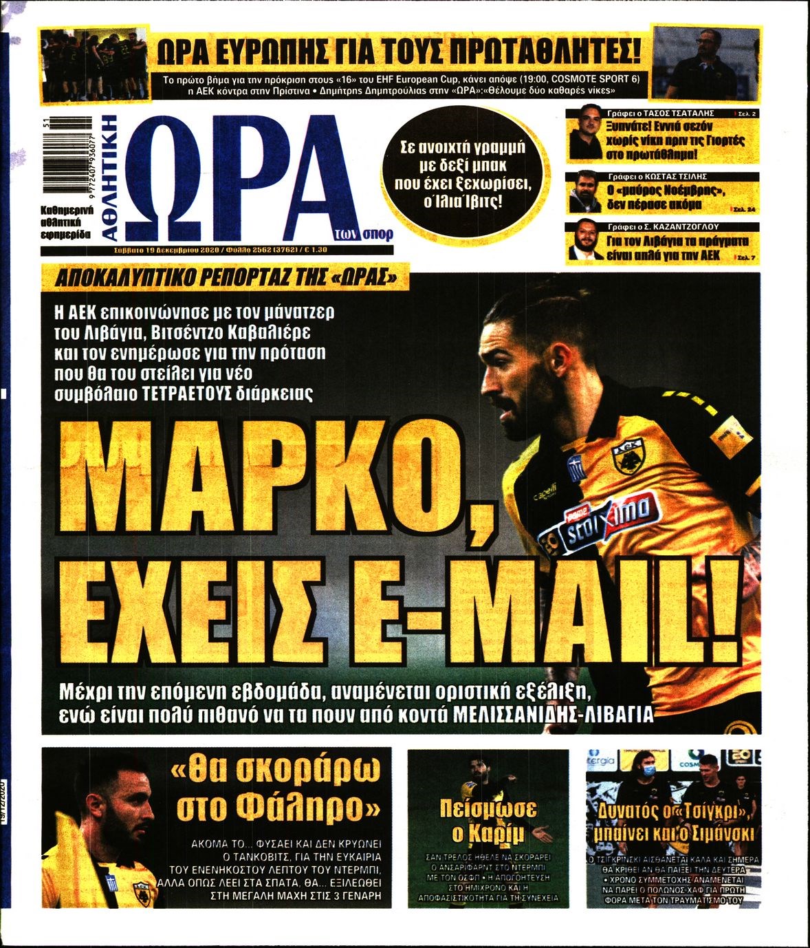 Οι αθλητικές εφημερίδες 19/12/2020 Διονύσης Νίκκας 07:47, Σάββατο 19 Δεκεμβρίου 2020 Media Διαβάστε τα πρωτοσέλιδα των αθλητικών εφημερίδων… ΑΘΛΗΤΙΚΕΣ ΕΦΗΜΕΡΙΔΕΣ Μοιράσου το: σχολίασε κι εσύ (0 σχόλια) Ακολουθήστε το enikos.gr στο Google News και μάθετε πρώτοι όλες τις ειδήσεις Δείτε όλες τις τελευταίες ειδήσεις από την Ελλάδα και τον Κόσμο στο enikos.gr Ειδήσεις Ροή Ειδήσεων 2 ώρες πριν Γιορτές με μπλόκα για τους αγρότες: Ανοίγουν διόδια και μοιράζουν προϊόντα στους ταξιδιώτες 2 ώρες πριν Τα αρχεία του Έπσταϊν αποκαλύπτουν φωτογραφία του έκπτωτου πρίγκιπα Άντριου – Είναι ξαπλωμένος στην αγκαλιά 5 γυναικών 1 ώρα πριν Νέες ταυτότητες: Μεγάλη αναμονή για ραντεβού στην Αττική – Τέλος τα ταξίδια εκτός Ελλάδος από τον Αύγουστο για όσους δεν έχουν αλλάξει 2 ώρες πριν Εξαφάνιση 33χρονου γιατρού στην Κρήτη: «Άναψα τα φώτα, τρόμαξε και άρχισε να τρέχει στα χωράφια» – Η τελευταία διαδρομή και η μαρτυρία «κλειδί» 18 λεπτά πριν Ινδία: Επτά ελέφαντες σκοτώθηκαν κατά τη σύγκρουση επιβατικού τρένου με κοπάδι 2 ώρες πριν Μία νέα «χρυσή» περίοδος αρχίζει για 3 ζώδια από σήμερα – «Μία αναπάντεχη ευκαιρία οδηγεί στην επιτυχία» 4 ώρες πριν Αρχαιολόγοι ανακάλυψαν σε χωράφι απεικόνιση 600 ετών ενός Αγίου – Τα στοιχεία που δείχνουν ότι μαρτύρησε 3 ώρες πριν Αγχώνεται για το χριστουγεννιάτικο δώρο που πήρε στην πλούσια σύντροφό του – «Φοβάμαι πως θα το βρει φθηνιάρικο, φοράει βραχιόλια Cartier» 15 λεπτά πριν Διαιτολόγος αποκαλύπτει 9 πρωινές συνήθειες που «λιώνουν» το κοιλιακό λίπος – «Υποστηρίζουν την υγιεινή απώλεια βάρους» 2 λεπτά πριν Εντυπωσιακό βίντεο από «τσουνάμι» πάγου στη Σιβηρία – Πώς προκαλείται το σπάνιο φαινόμενο 10 λεπτά πριν Μυλωνάκης κατά Τζάκρη: Την καλώ να ανασκευάσει το αδιανόητο ψέμα της. Η ανοχή έχει και τα όρια της» 15 λεπτά πριν Διαιτολόγος αποκαλύπτει 9 πρωινές συνήθειες που «λιώνουν» το κοιλιακό λίπος – «Υποστηρίζουν την υγιεινή απώλεια βάρους» 18 λεπτά πριν Ινδία: Επτά ελέφαντες σκοτώθηκαν κατά τη σύγκρουση επιβατικού τρένου με κοπάδι 27 λεπτά πριν Βούλα: Συνελήφθη 24χρονος με 69 κιλά ακατέργαστης κάνναβης – Κυκλοφορούσε με κλεμμένο αυτοκίνητο ENIKOS NETWORK Είστε μόνιμα απρόσεκτοι; 3 σημάδια που δείχνουν ότι μπορεί να είναι σύμπτωμα πάθησης Πόσα κιλά παίρνουμε πραγματικά τα Χριστούγεννα, σύμφωνα με την επιστήμη – Πώς να το αποτρέψουμε; Χριστούγεννα και Πρωτοχρονιά: Πώς αμείβονται όσοι εργαστούν e-ΕΦΚΑ και ΔΥΠΑ: Έρχονται νέες πληρωμές έως τις 24 Δεκεμβρίου – Ποιοι πάνε ταμείο Χαρτογραφώντας το «σημείο χωρίς επιστροφή»: Για πρώτη φορά αποκαλύπτεται με λεπτομέρεια το ακανθώδες όριο της ατμόσφαιρας τ... Η Google καταργεί τη λειτουργία «dark web report» – Πώς θα μπορούν οι χρήστες να διαγράφουν τα δεδομένα τους περισσότερα 11:41 , Σάββατο 20 Δεκεμβρίου 2025 «Η αγάπη δεν χάνεται ποτέ»: Η μικρού μήκους ταινία κινουμένων σχεδίων που θέτει ερωτήματα για τη ζωή και τον θάνατο Ο θάνατος είναι ένα από τα πιο σκληρά θέματα που καλείται να διαχειριστεί κάποιος στη διάρκεια... 09:30 , Σάββατο 20 Δεκεμβρίου 2025 «Porto Leone: Στη γειτονιά με τα κόκκινα φανάρια» – Ο Χρόνης αποκαλύπτει στην Αλεξάνδρα το μυστικό για το παιδί της Λένας Η μεγάλη δραματική σειρά του Apha «Porto Leone: Στη γειτονιά με τα κόκκινα φανάρια» μας μεταφέ... 08:14 , Σάββατο 20 Δεκεμβρίου 2025 Τρομεροί γονείς: Η Μαρία Καβογιάννη εισβάλλει στο σπίτι της οικογένειας Στεφανίδη Όσα θα δούμε στο νέο διπλό επεισόδιο της σειράς «Τρομεροί γονείς», σήμερα Σάβ