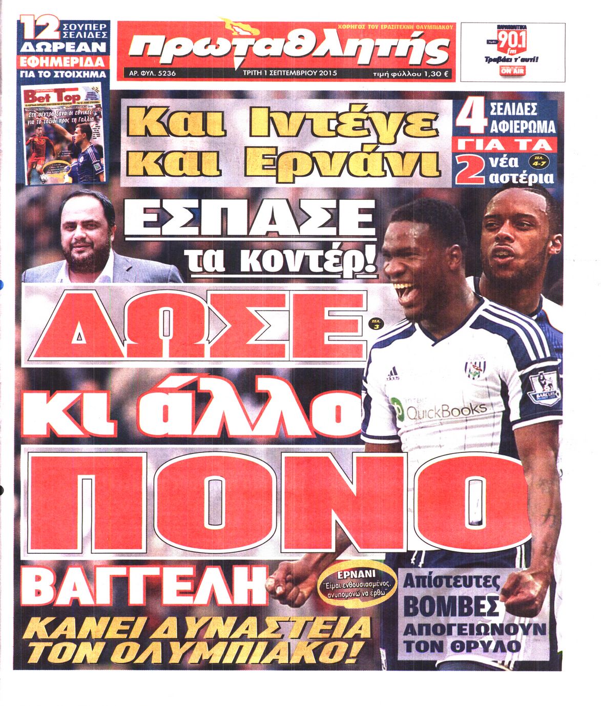 Οι αθλητικές εφημερίδες 1/9/2015 Enikos Newsroom 08:19, Τρίτη 01 Σεπτεμβρίου 2015 Media Διαβάστε τα σημερινά πρωτοσέλιδα των αθλητικών εφημερίδων ΑΘΛΗΤΙΚΕΣ ΕΦΗΜΕΡΙΔΕΣ ΠΡΩΤΟΣΕΛΙΔΑ Μοιράσου το: σχολίασε κι εσύ (0 σχόλια) Ακολουθήστε το enikos.gr στο Google News και μάθετε πρώτοι όλες τις ειδήσεις Δείτε όλες τις τελευταίες ειδήσεις από την Ελλάδα και τον Κόσμο στο enikos.gr Ειδήσεις Ροή Ειδήσεων 41 λεπτά πριν Χριστούγεννα στα μπλόκα: Επιμένουν στις κινητοποιήσεις τους οι αγρότες – Ανοίγουν τα διόδια το Σαββατοκύριακο 1 ώρα πριν Ουκρανία: Η άνευ προηγουμένου επίθεση σε ρωσικό τάνκερ στη Μεσόγειο και το μήνυμα προς στον Πούτιν – Το «μακρύ χέρι» του Κιέβου 18 λεπτά πριν Πούτιν: Τα μηνύματα σε Ευρώπη και ΝΑΤΟ από το μαραθώνιο «σόου» του – Η απαίτηση για «σεβασμό» και η ειρήνη «με τους όρους» της Μόσχας 1 ώρα πριν Τραμπ: Δεν αποκλείει την πιθανότητα ενός πολέμου στη Βενεζουέλα – «Ο Μαδούρο ξέρει καλύτερα από τον καθένα τι ακριβώς θέλω» 2 ώρες πριν Συνεχίζει να προκαλεί ο Μίτσκοσκι: «Για μένα το όνομα Μακεδονία είναι ιερό» 4 ώρες πριν Πούτιν: «Ναι, είμαι ερωτευμένος» – Βίντεο από τη σπάνια προσωπική παραδοχή του 2 ώρες πριν Αριθμολογία: Οι άνθρωποι που έχουν γεννηθεί αυτές τις 4 ημερομηνίες, συχνά παρεξηγούνται – «Η καλοσύνη τους κρύβει τεράστια δύναμη» 1 ώρα πριν Ύπνος: Μια κρυφή κατάσταση του εγκεφάλου πριν από τον ύπνο μπορεί να είναι το “κλειδί” για υψηλή ευφυΐα και δημιουργικότητα 3 ώρες πριν Ξεχάστε το καθάρισμα το Σαββατοκύριακο: Ο «κανόνας των 20 λεπτών» που θα σας λύσει τα χέρια 19 λεπτά πριν Ανακαλύφθηκαν αρχαία χρυσά νομίσματα 2.200 ετών που απεικονίζουν τον θεό Απόλλωνα – Η άγνωστη σύνδεση με τον Φίλιππο Β΄ της Μακεδονίας 4 λεπτά πριν Ολυμπιακός – Βιλερμπάν 107-84: Επιστροφή στις νίκες με… προπόνηση 9 λεπτά πριν Νέος Κόσμος: Συνελήφθη 41χρονος με ένταλμα από την Τουρκία για εμπόριο ναρκωτικών και ληστεία 18 λεπτά πριν Πούτιν: Τα μηνύματα σε Ευρώπη και ΝΑΤΟ από το μαραθώνιο «σόου» του – Η απαίτηση για «σεβασμό» και η ειρήνη «με τους όρους» της Μόσχας 19 λεπτά πριν Ανακαλύφθηκαν αρχαία χρυσά νομίσματα 2.200 ετών που απεικονίζουν τον θεό Απόλλωνα – Η άγνωστη σύνδεση με τον Φίλιππο Β΄ της Μακεδονίας 24 λεπτά πριν Νίκος Ξυλούρης: Συγκινεί η χήρα του σπουδαίου καλλιτέχνη – «Ευχαριστώ όλο τον κόσμο που τον κρατάει ζωντανό 45 χρόνια» ENIKOS NETWORK Το ΕΚΑΒ τιμήθηκε από την Ακαδημία Αθηνών για τα 40 χρόνια προσφοράς του Έχετε πραγματικά μεγάλη καρδιά; 10 χαρακτηριστικά όσων έχουν καλοσύνη Πλήρης επάρκεια προϊόντων στις λαϊκές της Αττικής, παρά τις αγροτικές κινητοποιήσεις – Τι απαντούν οι πωλητές ΑΑΔΕ: Νέες αναβαθμίσεις στο Ψηφιακό Πελατολόγιο και την εφαρμογή myDATAapp – Τι πρέπει να γνωρίζετε Χαρτογραφώντας το «σημείο χωρίς επιστροφή»: Για πρώτη φορά αποκαλύπτεται με λεπτομέρεια το ακανθώδες όριο της ατμόσφαιρας τ... Η Google καταργεί τη λειτουργία «dark web report» – Πώς θα μπορούν οι χρήστες να διαγράφουν τα δεδομένα τους περισσότερα 22:42 , Παρασκευή 19 Δεκεμβρίου 2025 Γιώργος Γιαννόπουλος για “Το σόι σου”: “Είναι ευτυχία και ευλογία αυτή η σειρά” «Είναι ευτυχία και ευλογία η συγκυρία αυτής της σειράς», θα πει ο Γιώργος Γιαννόπουλος -ο αγαπ... 20:37 , Παρασκευή 19 Δεκεμβρίου 2025 Don’t Forget The Lyrics: Η Έλλη Κοκκίνου υποδέχεται 4 παίκτες που θα κάνουν τα πάντα για να μη χάσουν ούτε… μισή λέξη από τους στίχους Το «Don’t Forget The Lyrics» επιστρέφει απόψε, Παρασκευή 19 Δεκεμβρίου, στις 21:00 με νέο επει... 19:31 , Παρασκευή 19 Δεκεμβρί