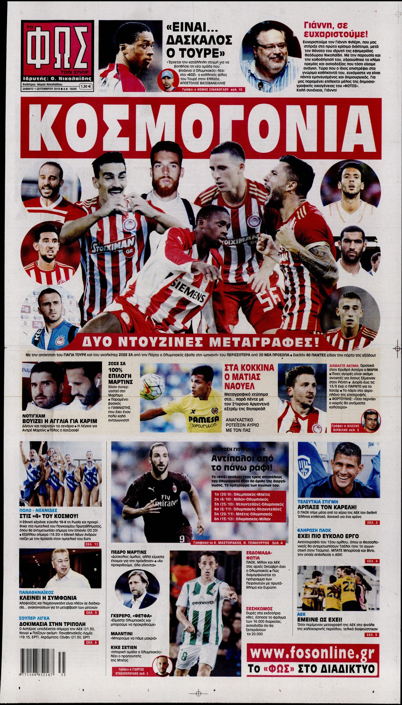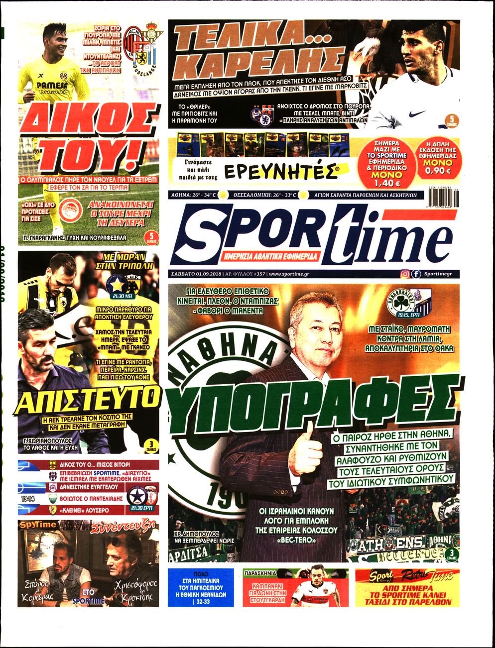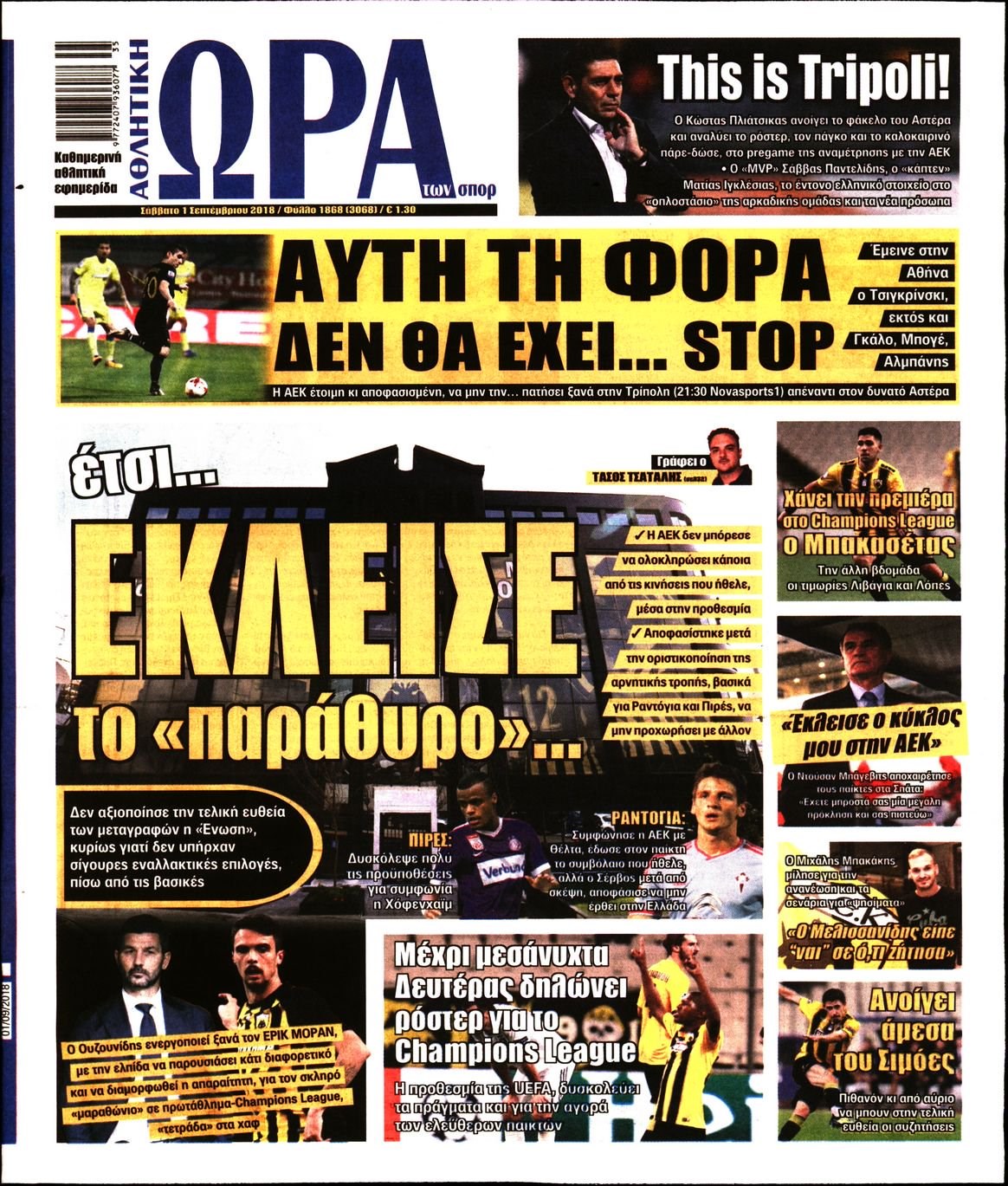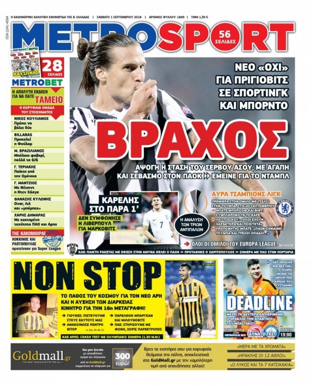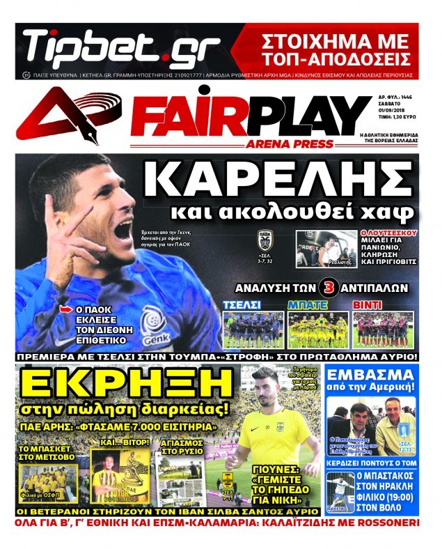 Οι αθλητικές εφημερίδες 1/9/2018 Enikos Newsroom 06:31, Σάββατο 01 Σεπτεμβρίου 2018 Media Διαβάστε τα πρωτοσέλιδα των αθλητικών εφημερίδων. ΑΘΛΗΤΙΚΕΣ ΕΦΗΜΕΡΙΔΕΣ ΠΡΩΤΟΣΕΛΙΔΑ Μοιράσου το: σχολίασε κι εσύ (0 σχόλια) Ακολουθήστε το enikos.gr στο Google News και μάθετε πρώτοι όλες τις ειδήσεις Δείτε όλες τις τελευταίες ειδήσεις από την Ελλάδα και τον Κόσμο στο enikos.gr Ειδήσεις Ροή Ειδήσεων 3 ώρες πριν Χριστούγεννα στα μπλόκα: Επιμένουν στις κινητοποιήσεις τους οι αγρότες – Ανοίγουν τα διόδια το Σαββατοκύριακο 4 ώρες πριν Ουκρανία: Η άνευ προηγουμένου επίθεση σε ρωσικό τάνκερ στη Μεσόγειο και το μήνυμα προς στον Πούτιν – Το «μακρύ χέρι» του Κιέβου 3 ώρες πριν Πούτιν: Τα μηνύματα σε Ευρώπη και ΝΑΤΟ από το μαραθώνιο «σόου» του – Η απαίτηση για «σεβασμό» και η ειρήνη «με τους όρους» της Μόσχας 4 ώρες πριν Τραμπ: Δεν αποκλείει την πιθανότητα ενός πολέμου στη Βενεζουέλα – «Ο Μαδούρο ξέρει καλύτερα από τον καθένα τι ακριβώς θέλω» 4 ώρες πριν Συνεχίζει να προκαλεί ο Μίτσκοσκι: «Για μένα το όνομα Μακεδονία είναι ιερό» 3 ώρες πριν Ανακαλύφθηκαν αρχαία χρυσά νομίσματα 2.200 ετών που απεικονίζουν τον θεό Απόλλωνα – Η άγνωστη σύνδεση με τον Φίλιππο Β΄ της Μακεδονίας 4 ώρες πριν Ύπνος: Μια κρυφή κατάσταση του εγκεφάλου πριν από τον ύπνο μπορεί να είναι το “κλειδί” για υψηλή ευφυΐα και δημιουργικότητα 5 ώρες πριν Αριθμολογία: Οι άνθρωποι που έχουν γεννηθεί αυτές τις 4 ημερομηνίες, συχνά παρεξηγούνται – «Η καλοσύνη τους κρύβει τεράστια δύναμη» 6 ώρες πριν Ξεχάστε το καθάρισμα το Σαββατοκύριακο: Ο «κανόνας των 20 λεπτών» που θα σας λύσει τα χέρια 10 λεπτά πριν Πρόταση γάμου στο ΣΕΦ κατά την διάρκεια του αγώνα Ολυμπιακός-Βιλερμπάν – Δείτε βίντεο 25 λεπτά πριν Euroleague: Επέστρεψε στις νίκες ο Ολυμπιακός, πήρε την ματσάρα της χρονιάς η Μπάρτσα – Τα αποτελέσματα και η βαθμολογία 40 λεπτά πριν Συρία: Μαζικά πλήγματα των ΗΠΑ σε θέσεις του Ισλαμικού Κράτους – Χέγκσεθ: «Δεν είναι αρχή πολέμου, είναι μια δήλωση εκδίκησης» για το θάνατο των στρατιωτών μας 53 λεπτά πριν Ουκρανία: Ολοκληρώθηκαν οι συνομιλίες με τους Αμερικανούς κι Ευρωπαίους διαπραγματευτές 1 ώρα πριν Μπαρτσελόνα – Μπασκόνια 134-124: Οι «μπλαουγκράνα» πήραν το ματς της χρονιάς ύστερα από τρεις παρατάσεις ENIKOS NETWORK Το ΕΚΑΒ τιμήθηκε από την Ακαδημία Αθηνών για τα 40 χρόνια προσφοράς του Έχετε πραγματικά μεγάλη καρδιά; 10 χαρακτηριστικά όσων έχουν καλοσύνη Αναστολή μέτρων αναγκαστικής εκτέλεσης για κτηνοτρόφους που πλήττονται από την ευλογιά των αιγοπροβάτων Πλήρης επάρκεια προϊόντων στις λαϊκές της Αττικής, παρά τις αγροτικές κινητοποιήσεις – Τι απαντούν οι πωλητές Χαρτογραφώντας το «σημείο χωρίς επιστροφή»: Για πρώτη φορά αποκαλύπτεται με λεπτομέρεια το ακανθώδες όριο της ατμόσφαιρας τ... Η Google καταργεί τη λειτουργία «dark web report» – Πώς θα μπορούν οι χρήστες να διαγράφουν τα δεδομένα τους περισσότερα 22:42 , Παρασκευή 19 Δεκεμβρίου 2025 Γιώργος Γιαννόπουλος για “Το σόι σου”: “Είναι ευτυχία και ευλογία αυτή η σειρά” «Είναι ευτυχία και ευλογία η συγκυρία αυτής της σειράς», θα πει ο Γιώργος Γιαννόπουλος -ο αγαπ... 20:37 , Παρασκευή 19 Δεκεμβρίου 2025 Don’t Forget The Lyrics: Η Έλλη Κοκκίνου υποδέχεται 4 παίκτες που θα κάνουν τα πάντα για να μη χάσουν ούτε… μισή λέξη από τους στίχους Το «Don’t Forget The Lyrics» επιστρέφει απόψε, Παρασκευή 19 Δεκεμβρίου, στις 21:00 με νέο επει... 19:31 , Παρασκευή 19 Δεκεμβρίου 2025 GNTM: Απόψε ο μεγάλος τελικός για τους 4 φιναλίστ Έπειτα από μήνες γεμάτους 