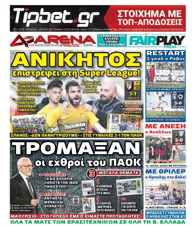 Οι αθλητικές εφημερίδες 19/3/2018 Κώστας Τεό 06:34, Δευτέρα 19 Μαρτίου 2018 Media Διαβάστε τα σημερινά πρωτοσέλιδα των αθλητικών εφημερίδων: ΑΘΛΗΤΙΚΕΣ ΕΦΗΜΕΡΙΔΕΣ ΠΡΩΤΟΣΕΛΙΔΑ Μοιράσου το: σχολίασε κι εσύ (0 σχόλια) Ακολουθήστε το enikos.gr στο Google News και μάθετε πρώτοι όλες τις ειδήσεις Δείτε όλες τις τελευταίες ειδήσεις από την Ελλάδα και τον Κόσμο στο enikos.gr Ειδήσεις Ροή Ειδήσεων 26 λεπτά πριν Μεσόγειος: Η διαδρομή του ρωσικού τάνκερ «Qendil» και η στοχευμένη επίθεση της Ουκρανίας με drone – Ο Πούτιν προειδοποίησε για αντίποινα 2 ημέρες πριν 20 χρόνια τα Χριστούγεννα ξεκινούν στα Public με μεγάλη ποικιλία σε δώρα! 1 ώρα πριν Από το Ορμένιο ως τα Μάλγαρα κι από τη Σιάτιστα μέχρι τη Νίκαια: Μπλόκα σε όλη την Ελλάδα – Το Σάββατο ανοίγουν τα διόδια οι αγρότες 1 ώρα πριν «Έλληνας Εσκομπάρ»: Φωτογραφίες με τους 4 τόνους κοκαΐνης που κατασχέθηκαν από το σκάφος «Ουρανία» 3 ώρες πριν Πούτιν: Σαρκαστικά μηνύματα, παράπονα και απρόοπτα στη συνέντευξη Τύπου – Η πρόταση γάμου on air και οι ερωτήσεις για τα αγγούρια και τους… εξωγήινους 2 ώρες πριν Τα 5 ζώδια που ευνοούνται στην ερωτική ζωή τους την επόμενη εβδομάδα – «Η ενέργεια του Αιγόκερου φέρνει αγάπη και σταθερότητα» 7 ώρες πριν Γεμάτος νεροχύτης; 5 σοβαρές ευθύνες που «φοβίζουν» όσους αφήνουν άπλυτα πιάτα 6 ώρες πριν Ειδικός μοιράζεται 6 κόλπα για να διατηρείστε σε φόρμα με πάνω από 40 ώρες εργασίας την εβδομάδα: «Προπονηθείτε πριν από τη δουλειά, όχι μετά» 20 λεπτά πριν Αττική: Θρίλερ με νεκρό βρέφος 5 μηνών – Κοιμόταν στο ίδιο κρεβάτι με τους γονείς του 5 λεπτά πριν Κερατσίνι: Αστυνομικός εκτός υπηρεσίας απέτρεψε κλοπή μηχανών – Συνελήφθησαν τρεις ανήλικοι 9 λεπτά πριν Το σόι σου: Ο Άρης έρχεται στην Ελλάδα για τις γιορτές των Χριστουγέννων – Τι θα δούμε στο αποψινό εορταστικό επεισόδιο 16 λεπτά πριν ΠΑΣΟΚ σε Μαρινάκη: Δεν νομιμοποιούμε πολιτικές επιλογές που μεταφέρουν το πρόβλημα από υπηρεσία σε υπηρεσία 20 λεπτά πριν Αττική: Θρίλερ με νεκρό βρέφος 5 μηνών – Κοιμόταν στο ίδιο κρεβάτι με τους γονείς του 26 λεπτά πριν Μεσόγειος: Η διαδρομή του ρωσικού τάνκερ «Qendil» και η στοχευμένη επίθεση της Ουκρανίας με drone – Ο Πούτιν προειδοποίησε για αντίποινα ENIKOS NETWORK «Η σούπερ» γρίπη εξαπλώνεται στην Ευρώπη-Στοιχεία για την αποτελεσματικότητα του εμβολίου από το ECDC ΕΛΣΤΑΤ: Αύξηση κατά 1,7% των επαγγελματιών υγείας το 2024 Η απάντηση της κυβέρνησης στα αιτήματα των αγροτών: 16 έχουν ικανοποιηθεί, 4 βρίσκονται υπό επεξεργασία και 7 δεν είναι εφι... Μισθολογική διαφάνεια: Το 68% των εργαζομένων αγνοεί τη νέα οδηγία – Αναλυτικά τα στοιχεία έρευνας Χαρτογραφώντας το «σημείο χωρίς επιστροφή»: Για πρώτη φορά αποκαλύπτεται με λεπτομέρεια το ακανθώδες όριο της ατμόσφαιρας τ... Η Google καταργεί τη λειτουργία «dark web report» – Πώς θα μπορούν οι χρήστες να διαγράφουν τα δεδομένα τους περισσότερα 18:11 , Παρασκευή 19 Δεκεμβρίου 2025 Το σόι σου: Ο Άρης έρχεται στην Ελλάδα για τις γιορτές των Χριστουγέννων – Τι θα δούμε στο αποψινό εορταστικό επεισόδιο Ένα απολαυστικό, εορταστικό επεισόδιο της σειράς “Το σόι σου”, γεμάτο ευτράπελα αλ... 15:15 , Παρασκευή 19 Δεκεμβρίου 2025 Την Κυριακή με τη Realnews: Ό,τι και αν αγοράσεις, σκανάρεις και κερδίζεις! Την Κυριακή με τη Realnews: Ό,τι και αν αγοράσεις, σκανάρεις και κερδίζεις! Με το PADU app, το... 08:00 , Παρασκευή 19 Δεκεμβρίου 2025 Την Κυριακή με τη Realnews: Δωροεπιταγή 10€ Δωροεπιταγή αξίας 10€ για αγορές άνω των 60€ από τα πολυκαταστήματα FactoryOutlet H προσφορ