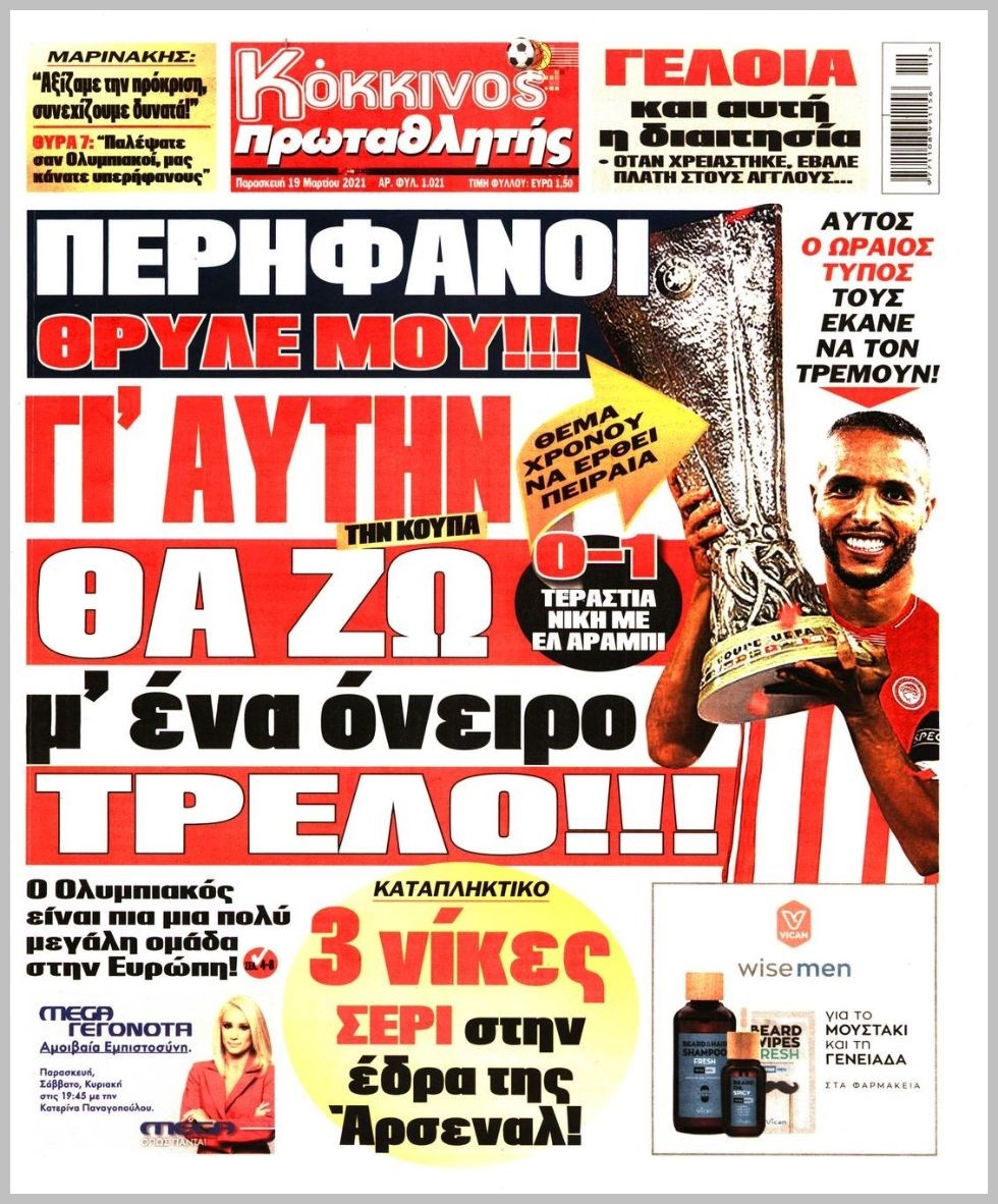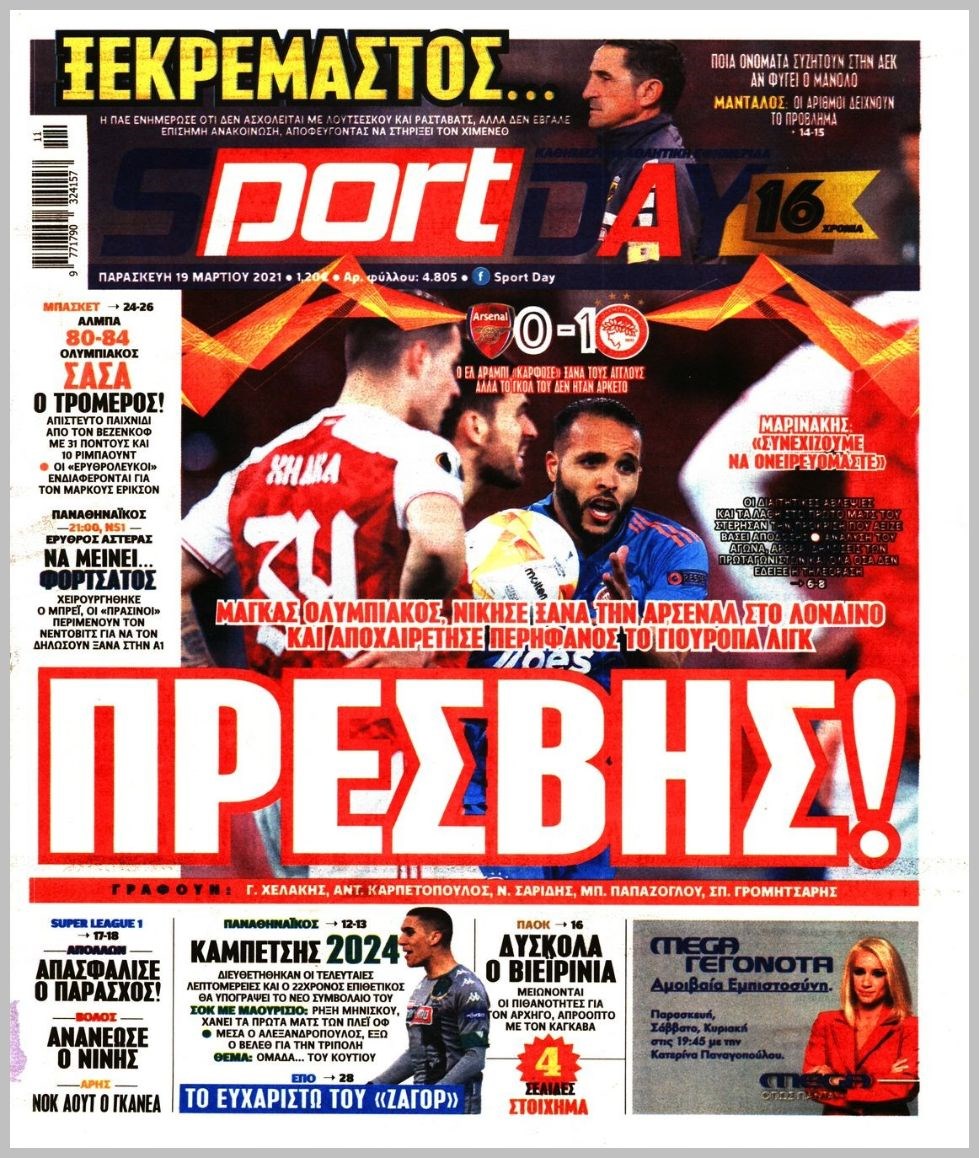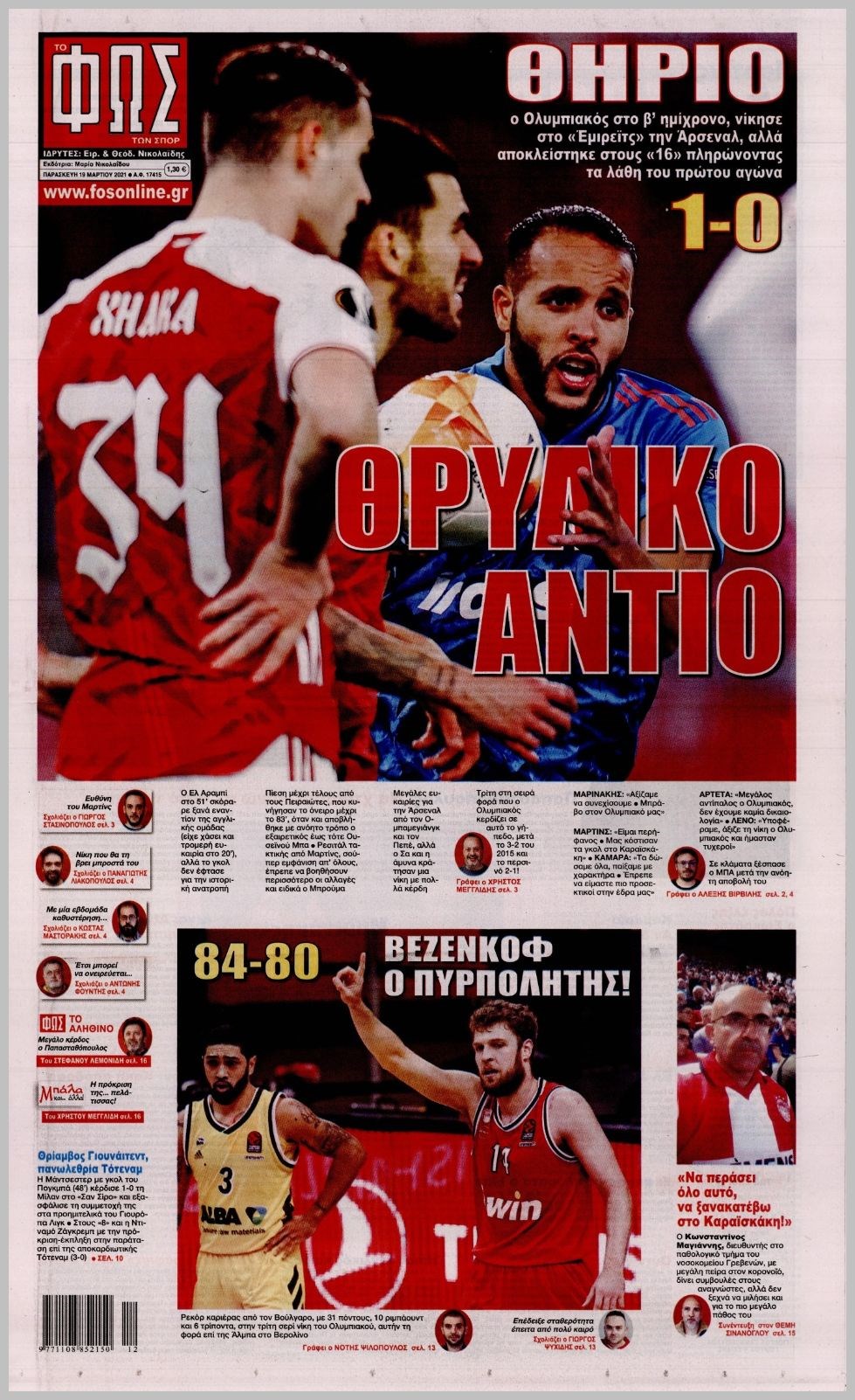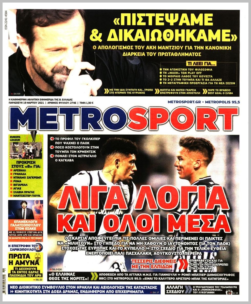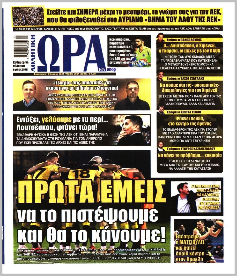 Οι αθλητικές εφημερίδες 19/3/2021 Διονύσης Νίκκας 06:51, Παρασκευή 19 Μαρτίου 2021 Media Διαβάστε τα πρωτοσέλιδα των αθλητικών εφημερίδων… ΑΘΛΗΤΙΚΕΣ ΕΦΗΜΕΡΙΔΕΣ ΕΦΗΜΕΡΙΔΕΣ ΠΡΩΤΟΣΕΛΙΔΑ Μοιράσου το: σχολίασε κι εσύ (0 σχόλια) Ακολουθήστε το enikos.gr στο Google News και μάθετε πρώτοι όλες τις ειδήσεις Δείτε όλες τις τελευταίες ειδήσεις από την Ελλάδα και τον Κόσμο στο enikos.gr Ειδήσεις Ροή Ειδήσεων 47 λεπτά πριν Χριστούγεννα στα μπλόκα: Επιμένουν στις κινητοποιήσεις τους οι αγρότες – Ανοίγουν τα διόδια το Σαββατοκύριακο 1 ώρα πριν Ουκρανία: Η άνευ προηγουμένου επίθεση σε ρωσικό τάνκερ στη Μεσόγειο και το μήνυμα προς στον Πούτιν – Το «μακρύ χέρι» του Κιέβου 24 λεπτά πριν Πούτιν: Τα μηνύματα σε Ευρώπη και ΝΑΤΟ από το μαραθώνιο «σόου» του – Η απαίτηση για «σεβασμό» και η ειρήνη «με τους όρους» της Μόσχας 1 ώρα πριν Τραμπ: Δεν αποκλείει την πιθανότητα ενός πολέμου στη Βενεζουέλα – «Ο Μαδούρο ξέρει καλύτερα από τον καθένα τι ακριβώς θέλω» 2 ώρες πριν Συνεχίζει να προκαλεί ο Μίτσκοσκι: «Για μένα το όνομα Μακεδονία είναι ιερό» 4 ώρες πριν Πούτιν: «Ναι, είμαι ερωτευμένος» – Βίντεο από τη σπάνια προσωπική παραδοχή του 2 ώρες πριν Αριθμολογία: Οι άνθρωποι που έχουν γεννηθεί αυτές τις 4 ημερομηνίες, συχνά παρεξηγούνται – «Η καλοσύνη τους κρύβει τεράστια δύναμη» 1 ώρα πριν Ύπνος: Μια κρυφή κατάσταση του εγκεφάλου πριν από τον ύπνο μπορεί να είναι το “κλειδί” για υψηλή ευφυΐα και δημιουργικότητα 3 ώρες πριν Ξεχάστε το καθάρισμα το Σαββατοκύριακο: Ο «κανόνας των 20 λεπτών» που θα σας λύσει τα χέρια 25 λεπτά πριν Ανακαλύφθηκαν αρχαία χρυσά νομίσματα 2.200 ετών που απεικονίζουν τον θεό Απόλλωνα – Η άγνωστη σύνδεση με τον Φίλιππο Β΄ της Μακεδονίας 9 λεπτά πριν Ολυμπιακός – Βιλερμπάν 107-84: Επιστροφή στις νίκες με… προπόνηση 15 λεπτά πριν Νέος Κόσμος: Συνελήφθη 41χρονος με ένταλμα από την Τουρκία για εμπόριο ναρκωτικών και ληστεία 24 λεπτά πριν Πούτιν: Τα μηνύματα σε Ευρώπη και ΝΑΤΟ από το μαραθώνιο «σόου» του – Η απαίτηση για «σεβασμό» και η ειρήνη «με τους όρους» της Μόσχας 25 λεπτά πριν Ανακαλύφθηκαν αρχαία χρυσά νομίσματα 2.200 ετών που απεικονίζουν τον θεό Απόλλωνα – Η άγνωστη σύνδεση με τον Φίλιππο Β΄ της Μακεδονίας 30 λεπτά πριν Νίκος Ξυλούρης: Συγκινεί η χήρα του σπουδαίου καλλιτέχνη – «Ευχαριστώ όλο τον κόσμο που τον κρατάει ζωντανό 45 χρόνια» ENIKOS NETWORK Το ΕΚΑΒ τιμήθηκε από την Ακαδημία Αθηνών για τα 40 χρόνια προσφοράς του Έχετε πραγματικά μεγάλη καρδιά; 10 χαρακτηριστικά όσων έχουν καλοσύνη Αναστολή μέτρων αναγκαστικής εκτέλεσης για κτηνοτρόφους που πλήττονται από την ευλογιά των αιγοπροβάτων Πλήρης επάρκεια προϊόντων στις λαϊκές της Αττικής, παρά τις αγροτικές κινητοποιήσεις – Τι απαντούν οι πωλητές Χαρτογραφώντας το «σημείο χωρίς επιστροφή»: Για πρώτη φορά αποκαλύπτεται με λεπτομέρεια το ακανθώδες όριο της ατμόσφαιρας τ... Η Google καταργεί τη λειτουργία «dark web report» – Πώς θα μπορούν οι χρήστες να διαγράφουν τα δεδομένα τους περισσότερα 22:42 , Παρασκευή 19 Δεκεμβρίου 2025 Γιώργος Γιαννόπουλος για “Το σόι σου”: “Είναι ευτυχία και ευλογία αυτή η σειρά” «Είναι ευτυχία και ευλογία η συγκυρία αυτής της σειράς», θα πει ο Γιώργος Γιαννόπουλος -ο αγαπ... 20:37 , Παρασκευή 19 Δεκεμβρίου 2025 Don’t Forget The Lyrics: Η Έλλη Κοκκίνου υποδέχεται 4 παίκτες που θα κάνουν τα πάντα για να μη χάσουν ούτε… μισή λέξη από τους στίχους Το «Don’t Forget The Lyrics» επιστρέφει απόψε, Παρασκευή 19 Δεκεμβρίου, στις 21:00 με νέο επει... 19:31