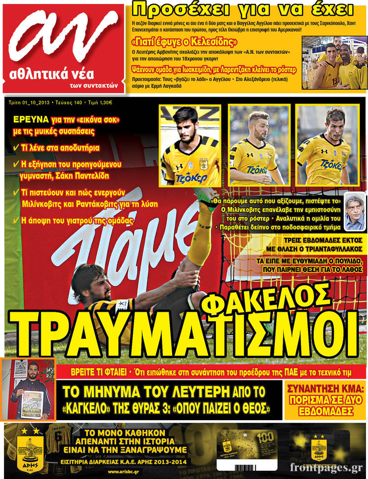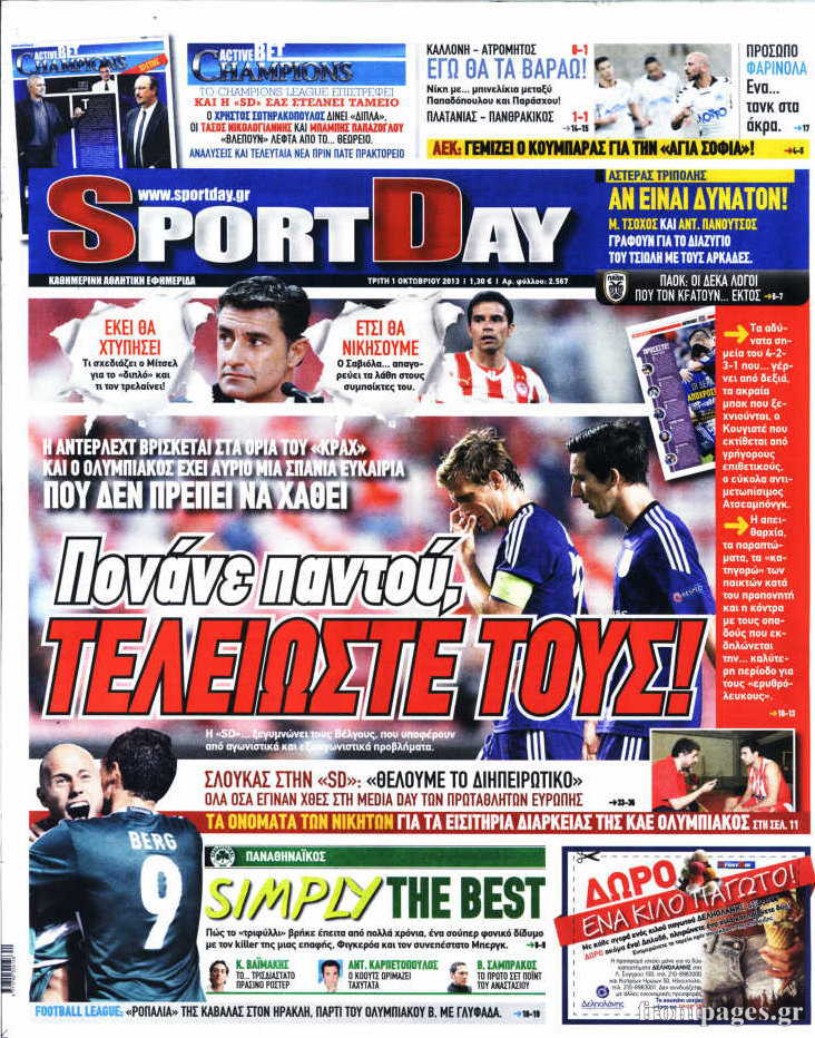 Οι αθλητικές εφημερίδες Enikos Newsroom 08:13, Τρίτη 01 Οκτωβρίου 2013 Media Οι αθλητικές εφημερίδες Δείτε τα πρωτοσέλιδα των αθλητικών εφημερίδων: ΑΘΛΗΤΙΚΕΣ ΕΦΗΜΕΡΙΔΕΣ ΠΡΩΤΟΣΕΛΙΔΑ Μοιράσου το: σχολίασε κι εσύ (0 σχόλια) Ακολουθήστε το enikos.gr στο Google News και μάθετε πρώτοι όλες τις ειδήσεις Δείτε όλες τις τελευταίες ειδήσεις από την Ελλάδα και τον Κόσμο στο enikos.gr Ειδήσεις Ροή Ειδήσεων 3 ώρες πριν Ακίλα Σάλεχ: «Άκυρο» το τουρκολιβυκό μνημόνιο λέει ο πρόεδρος της λιβυκής Βουλής – Ανοίγει ο διάλογος με Ελλάδα, Αίγυπτο και Τουρκία 7 ώρες πριν Αγρότες: Την Τρίτη η απόφαση για διάλογο ή κλιμάκωση των κινητοποιήσεών τους – Πώς χαρακτηρίζουν τις ανακοινώσεις Τσιάρα και οι επόμενες κινήσεις 7 ώρες πριν Τραμπ για Ουκρανία: «Είμαστε πιο κοντά σε συμφωνία από ποτέ» – «Πολυεθνική δύναμη» προτείνουν οι Ευρωπαίοι 7 ώρες πριν Κυψέλη: Η 16χρονη που μαχαίρωσε την 14χρονη είχε συλληφθεί 3 φορές στο παρελθόν – Έβριζε καθηγητές, έβαζε φωτιές σε κάδους και εκβίαζε συμμαθητές της 6 ώρες πριν Τρομοκρατική επίθεση στο Σίδνεϊ: Θλίψη για τα 15 θύματα – Οργή στην εβραϊκή κοινότητα που προειδοποιούσε επί δύο χρόνια 7 ώρες πριν Επιστήμονες ίσως έλυσαν το μυστήριο γύρω από τα Χόμπιτ – Νέα έρευνα αποκαλύπτει πώς εξαφανίστηκαν 8 ώρες πριν Ύπνος: Η αρχαία μορφή άσκησης που αποδεικνύεται αποτελεσματική στην αντιμετώπιση της αϋπνίας, σύμφωνα με μελέτη 9 ώρες πριν Αριθμολογία: Ο τυχερός σας αριθμός, ανάλογα με τον μήνα γέννησής σας 10 ώρες πριν Πώς να μην μαραίνονται γρήγορα τα κομμένα λουλούδια: Το λάθος στην τοποθέτηση του βάζου που πρέπει να αποφεύγετε 18 δευτερόλεπτα πριν Οι οικονομικές εφημερίδες 16/12/2025 5 λεπτά πριν Οι αθλητικές εφημερίδες 16/12/2025 10 λεπτά πριν Οι πολιτικές εφημερίδες 16/12/2025 18 λεπτά πριν Τα ζώδια σήμερα, Τρίτη 16 Δεκεμβρίου: Ιχθύες, δεν χρειάζεται να έχετε όλες τις απαντήσεις 26 λεπτά πριν Εφημερεύοντα φαρμακεία σε Αθήνα και Θεσσαλονίκη (16/12) ENIKOS NETWORK Πότε το χρόνιο ροχαλητό να αποτελέσει ένδειξη κινδύνου για την καρδιά; Τι λένε οι ειδικοί Μάριος Θεμιστοκλέους: Το ΕΣΥ ενισχύεται, εκσυγχρονίζεται, αλλάζει ΕΒΕΠ για αγροτικές κινητοποιήσεις: Κάθε επιπλέον εβδομάδα προσθέτει περίπου 200 εκατ. ευρώ ζημιά Τι προβλέπει το νομοσχέδιο του υπουργείου Εθνικής Άμυνας – Oι αλλαγές στους μισθούς Σύγχρονος Νοστράδαμος: Προειδοποιεί για «μεγάλο γεγονός» τους επόμενους μήνες που θα συγκλονίσει τη Βρετανία και τον κόσμο Τεστ παρατηρητικότητας: Μπορείτε να βρείτε τις 3 διαφορές στις εικόνες με έναν πιγκουίνο σε 14 δευτερόλεπτα περισσότερα 05:48 , Τρίτη 16 Δεκεμβρίου 2025 Οι οικονομικές εφημερίδες 16/12/2025 Διαβάστε τα πρωτοσέλιδα από τις οικονομικές εφημερίδες, σήμερα 16/12/2025. 05:43 , Τρίτη 16 Δεκεμβρίου 2025 Οι αθλητικές εφημερίδες 16/12/2025 Διαβάστε τα πρωτοσέλιδα από τις αθλητικές εφημερίδες, σήμερα 16/12/2025. 05:38 , Τρίτη 16 Δεκεμβρίου 2025 Οι πολιτικές εφημερίδες 16/12/2025 Διαβάστε τα πρωτοσέλιδα από τις πολιτικές εφημερίδες, σήμερα 16/12/2025. 21:35 , Δευτέρα 15 Δεκεμβρίου 2025 Το Σπίτι Δίπλα Στο Ποτάμι: Η Ιουλία και ο Φωκάς μετακομίζουν στη Ρόδο – Δύο νέοι χαρακτήρες μπαίνουν στη σειρά Δύο νέοι, κομβικοί χαρακτήρες κάνουν την εμφάνισή τους αυτή την εβδομάδα στην αγαπημένη σειρά ... ΤΕΛΕΥΤΑΙΕΣ ΕΙΔΗΣΕΙΣ 5 λεπτά πριν Οι αθλητικές εφημερίδες 16/12/2025 10 λεπτά πριν Οι πολιτικές εφημερίδες 16/12/2025 18 λεπτά πριν Τα ζώδια σήμερα, Τρίτη 16 Δεκεμβρίου: Ιχθύες, δεν... 26 λεπτά πριν Εφημερεύοντα φαρμακεία σε Αθήνα και Θεσσαλονίκη (16/12) 33 λεπτά πριν Οκτ