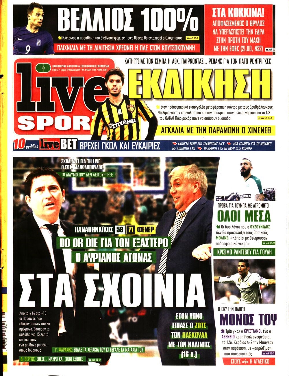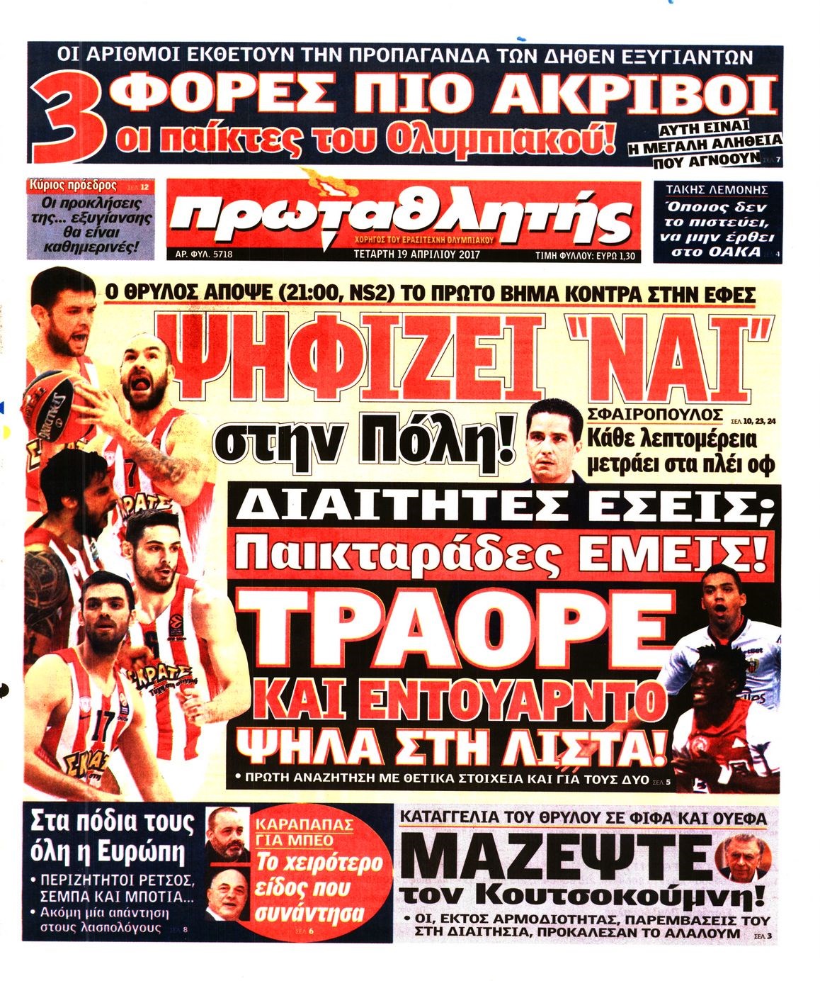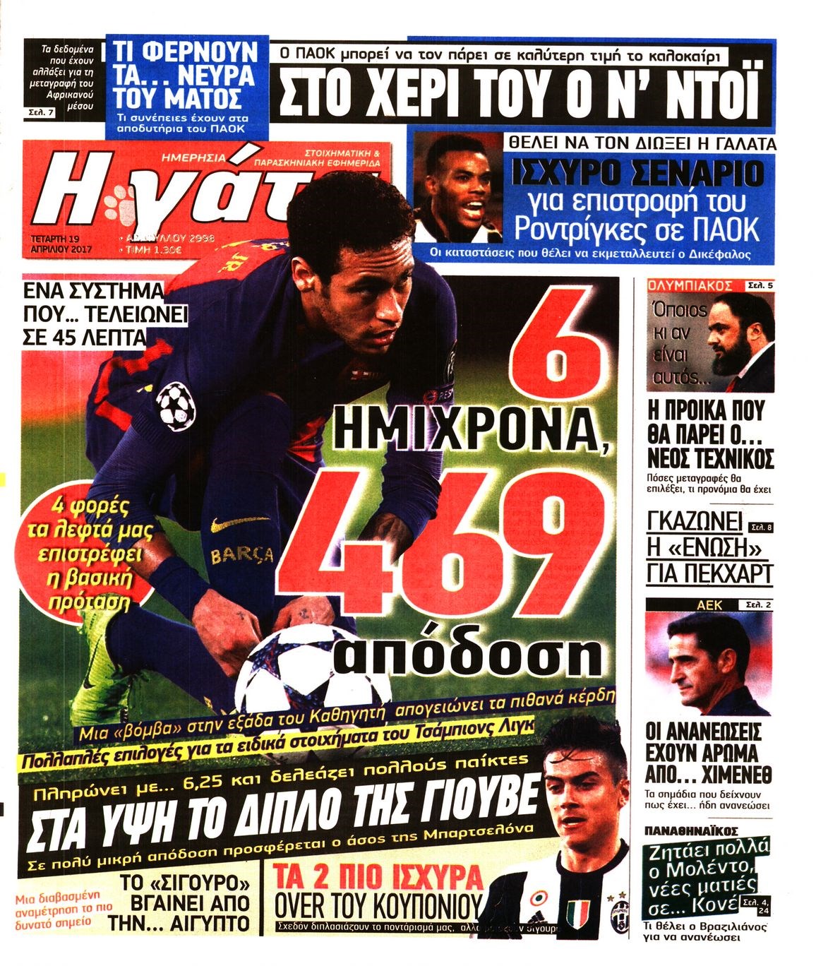 Οι αθλητικές εφημερίδες 19/4/2017 Enikos Newsroom 07:00, Τετάρτη 19 Απριλίου 2017 Media Διαβάστε τα σημερινά πρωτοσέλιδα των αθλητικών εφημερίδων: ΑΘΛΗΤΙΚΕΣ ΕΦΗΜΕΡΙΔΕΣ ΠΡΩΤΟΣΕΛΙΔΑ Μοιράσου το: σχολίασε κι εσύ (0 σχόλια) Ακολουθήστε το enikos.gr στο Google News και μάθετε πρώτοι όλες τις ειδήσεις Δείτε όλες τις τελευταίες ειδήσεις από την Ελλάδα και τον Κόσμο στο enikos.gr Ειδήσεις Ροή Ειδήσεων 2 ώρες πριν Νίκος Παππάς: «Είχα λάθος αντίδραση στη δική του δράση-πρόκληση – Δεν θα αναλύσω σε τι κατάσταση ήταν ο δημοσιογράφος» 36 λεπτά πριν Νίκος Γιαννόπουλος για Νίκο Παππά: «Είναι επικίνδυνος, θα του κάνω ασφαλιστικά» – ΒΙΝΤΕΟ 1 ώρα πριν Αλεξανδρούπολη: Πολυοργανική ανεπάρκεια λόγω υποσιτισμού η αιτία θανάτου του 3χρονου αγοριού 2 ώρες πριν Δημοσκόπηση Pulse: Η διαφορά ΝΔ-ΠΑΣΟΚ – Με ποια κριτήρια θα ψηφίσουν οι πολίτες στις επόμενες εκλογές 3 ώρες πριν Συγκλονιστικό βίντεο: Τρόμος για τουρίστες που σώθηκαν την τελευταία στιγμή από λεωφορείο που κατρακυλούσε σε φαράγγι 50 λεπτά πριν Ύπνος: Ειδικός εξηγεί τον πραγματικό λόγο που ξυπνάτε στις 4 τα ξημερώματα – Ο ρόλος των ορμονών και του κιρκάδιου ρυθμού 2 ώρες πριν Αριθμολογία: Οι άνθρωποι που έχουν γεννηθεί αυτές τις 4 ημερομηνίες, είναι τρυφεροί και αγαπούν ανιδιοτελώς 3 ώρες πριν Καθρέφτες μπάνιου: Το απλό κόλπο με την οδοντόκρεμα για να μην θολώνουν 13 ώρες πριν 20 χρόνια τα Χριστούγεννα ξεκινούν στα Public με μεγάλη ποικιλία σε δώρα! 6 λεπτά πριν «Αγριεύουν» οι αγρότες: «Δεν συντρέχει λόγος συνάντησης με τον πρωθυπουργό» – Ώρα αποφάσεων στη σύσκεψη της Πέμπτης 11 λεπτά πριν Χρίστος Αντωνιάδης: «Όποιος δεν έχει κάνει δίδυμα, δεν δικαιούται διά να ομιλεί» 20 λεπτά πριν Ρούτε: Η μεγαλύτερη επιτυχία εξωτερικής πολιτικής του Τραμπ είναι η δέσμευση των χωρών του ΝΑΤΟ για τις αμυντικές δαπάνες 26 λεπτά πριν Το Σπίτι Δίπλα Στο Ποτάμι: Σε κίνδυνο η υγεία του Απόστολου – Τι θα δούμε απόψε 36 λεπτά πριν Νίκος Γιαννόπουλος για Νίκο Παππά: «Είναι επικίνδυνος, θα του κάνω ασφαλιστικά» – ΒΙΝΤΕΟ ENIKOS NETWORK Αϋπνία: Το κόλπο που θα σας βοηθήσει να κοιμηθείτε απόψε – Είναι απλό και έχει αποτέλεσμα 2,6 εκατομμύρια πολίτες έχουν ήδη εμβολιαστεί κατά της γρίπης Χειμερινές εκπτώσεις: Πότε αρχίζουν και τι πρέπει να προσέξουν οι καταναλωτές ΑΑΔΕ: Καταβλήθηκε η τέταρτη δόση επιστροφής ΕΦΚ αγροτικού πετρελαίου – Οδηγίες για τη διόρθωση παραστατικών Χαρτογραφώντας το «σημείο χωρίς επιστροφή»: Για πρώτη φορά αποκαλύπτεται με λεπτομέρεια το ακανθώδες όριο της ατμόσφαιρας τ... Η Google καταργεί τη λειτουργία «dark web report» – Πώς θα μπορούν οι χρήστες να διαγράφουν τα δεδομένα τους περισσότερα 22:24 , Τετάρτη 17 Δεκεμβρίου 2025 Το Σπίτι Δίπλα Στο Ποτάμι: Σε κίνδυνο η υγεία του Απόστολου – Τι θα δούμε απόψε “Το Σπίτι Δίπλα στο Ποτάμι” ξετυλίγει το νήμα της ζωής των πέντε αδελφών με καταισ... 21:14 , Τετάρτη 17 Δεκεμβρίου 2025 Παιχνίδια Εκδίκησης: Θα καταφέρει ο Χρήστος να κλονίσει την εμπιστοσύνη της Μάγιας απέναντι στον Άγη; Τα «Παιχνίδια Εκδίκησης» έρχονται απόψε στις 22:30, στον Αντ1, με το τελευταίο επεισόδιο της χ... 20:57 , Τετάρτη 17 Δεκεμβρίου 2025 Άγιος Έρωτας: Η Χλόη καταθέτει εναντίον του πατέρα της και ο Χάρης αποκαλύπτει στον Κλεάνθη ότι δεν είναι ο βιολογικός του πατέρας. Γεμάτο αποκαλύψεις είναι το νέο επεισόδιο της σειράς “Άγιος Έρωτας” απόψε στις 21:... 20:15 , Τετάρτη 17 Δεκεμβρίου 2025 Η ανακοίνωση της ΕΣΗΕΑ για την επίθεση του Ευρωβουλευτή Νίκου Παππά κατά του δημοσιογράφου Νίκ