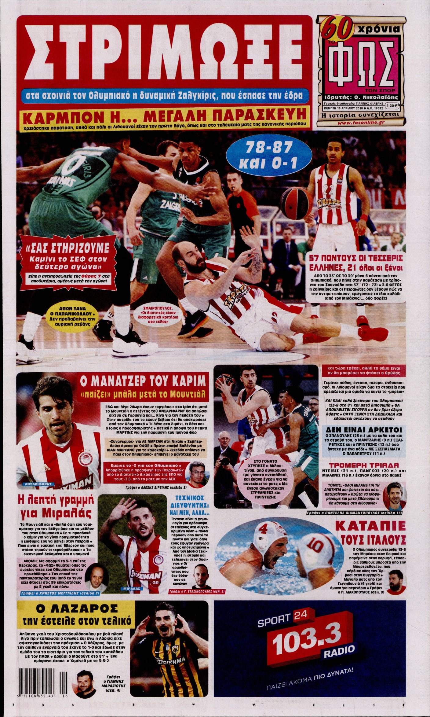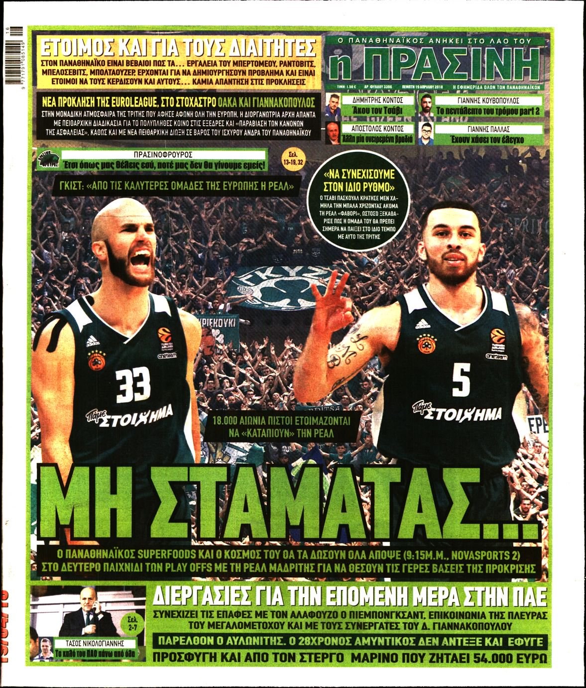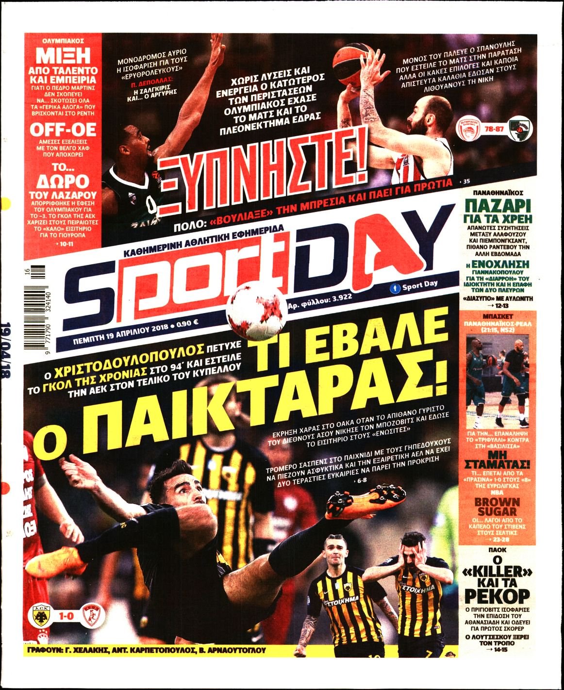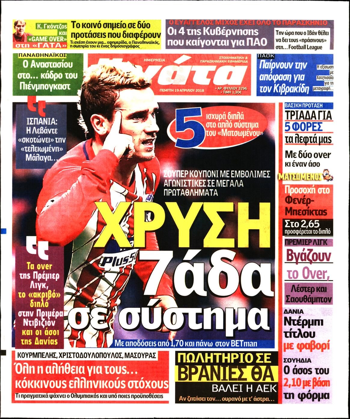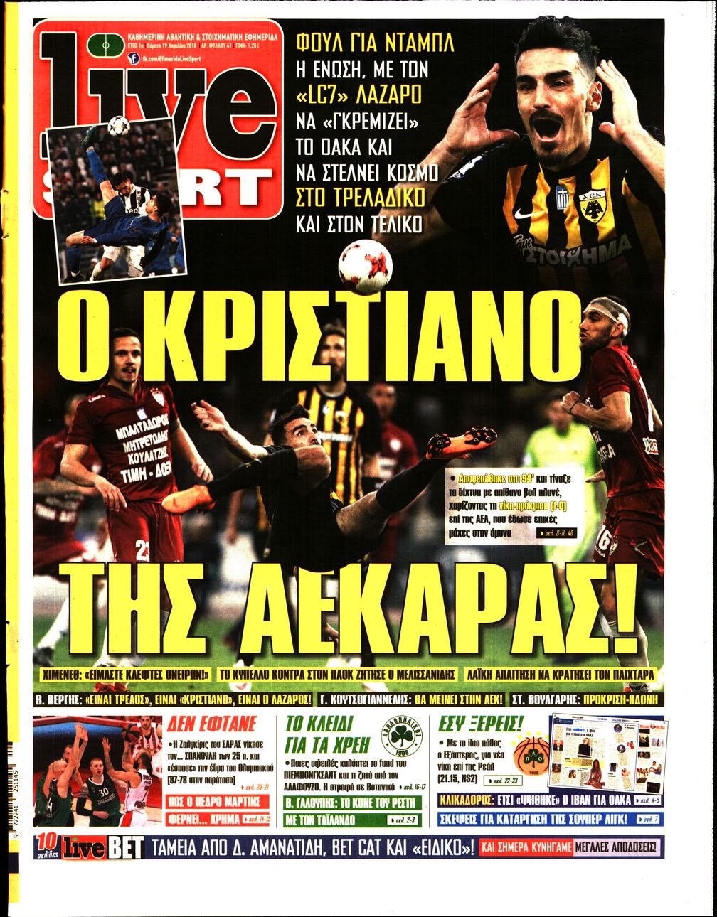 Οι αθλητικές εφημερίδες 19/4/2018 Enikos Newsroom 07:21, Πέμπτη 19 Απριλίου 2018 Media Διαβάστε τα σημερινά πρωτοσέλιδα των αθλητικών εφημερίδων: ΑΘΛΗΤΙΚΕΣ ΕΦΗΜΕΡΙΔΕΣ ΠΡΩΤΟΣΕΛΙΔΑ Μοιράσου το: σχολίασε κι εσύ (0 σχόλια) Ακολουθήστε το enikos.gr στο Google News και μάθετε πρώτοι όλες τις ειδήσεις Δείτε όλες τις τελευταίες ειδήσεις από την Ελλάδα και τον Κόσμο στο enikos.gr Ειδήσεις Ροή Ειδήσεων 1 ώρα πριν Μεσόγειος: Η διαδρομή του ρωσικού τάνκερ «Qendil» και η στοχευμένη επίθεση της Ουκρανίας με drone – Ο Πούτιν προειδοποίησε για αντίποινα 1 ώρα πριν Αττική: Θρίλερ με νεκρό βρέφος 5 μηνών – Κοιμόταν στο ίδιο κρεβάτι με τους γονείς του 2 ώρες πριν Από το Ορμένιο ως τα Μάλγαρα κι από τη Σιάτιστα μέχρι τη Νίκαια: Μπλόκα σε όλη την Ελλάδα – Το Σάββατο ανοίγουν τα διόδια οι αγρότες 2 ώρες πριν «Έλληνας Εσκομπάρ»: Φωτογραφίες με τους 4 τόνους κοκαΐνης που κατασχέθηκαν από το σκάφος «Ουρανία» 4 ώρες πριν Πούτιν: Σαρκαστικά μηνύματα, παράπονα και απρόοπτα στη συνέντευξη Τύπου – Η πρόταση γάμου on air και οι ερωτήσεις για τα αγγούρια και τους… εξωγήινους 3 ώρες πριν Τα 5 ζώδια που ευνοούνται στην ερωτική ζωή τους την επόμενη εβδομάδα – «Η ενέργεια του Αιγόκερου φέρνει αγάπη και σταθερότητα» 7 ώρες πριν Ειδικός μοιράζεται 6 κόλπα για να διατηρείστε σε φόρμα με πάνω από 40 ώρες εργασίας την εβδομάδα: «Προπονηθείτε πριν από τη δουλειά, όχι μετά» 4 ώρες πριν Αυτό το έξυπνο μαθηματικό κόλπο θα μπορούσε να αλλάξει τον τρόπο με τον οποίο οι επιστήμονες μελετούν τους σεισμούς 2 ώρες πριν Κουίζ για την παλιά Αθήνα: Αναγνωρίζετε την περιοχή; Έχετε περάσει 100% από εκεί 5 λεπτά πριν ΗΠΑ: Νέος γύρος συνομιλιών στο Μαϊάμι – Σήμερα συνάντηση Γουίτκοφ με Ουκρανούς και Ευρωπαίους διαπραγματευτές, το Σαββατοκύριακο με Ρώσους αξιωματούχους 9 λεπτά πριν Νέα σειρά γραμματοσήμων «ΕΛΠΙΔΑ-Μαριάννα Β. Βαρδινογιάννη» 14 λεπτά πριν Ιταλία: Με εισιτήριο από την 1η Φεβρουαρίου 2026 η πρόσβαση στη Φοντάνα ντι Τρέβι – Πόσο θα κοστίζει 22 λεπτά πριν Μήπως έχετε χάσει τον εαυτό σας στη σχέση σας; 7 «αθόρυβες» υποχωρήσεις που μάλλον κάνατε, χωρίς να το συνειδητοποιήσετε 27 λεπτά πριν Λάρισα: Ασθενοφόρο έπεσε πάνω σε κλούβα της ΕΛ.ΑΣ στον Πλατύκαμπο – Τραυματίστηκε ο συνοδηγός – ΒΙΝΤΕΟ ENIKOS NETWORK «Η σούπερ» γρίπη εξαπλώνεται στην Ευρώπη-Στοιχεία από το ECDC για την αποτελεσματικότητα του εμβολίου ΕΛΣΤΑΤ: Αύξηση κατά 1,7% των επαγγελματιών υγείας το 2024 Προκήρυξη ΑΣΕΠ για 397 μόνιμες προσλήψεις στο Δημόσιο: Βγήκαν τα προσωρινά αποτελέσματα – Πότε αρχίζει η υποβολή ενστάσεων Η απάντηση της κυβέρνησης στα αιτήματα των αγροτών: 16 έχουν ικανοποιηθεί, 4 βρίσκονται υπό επεξεργασία και 7 δεν είναι εφι... Χαρτογραφώντας το «σημείο χωρίς επιστροφή»: Για πρώτη φορά αποκαλύπτεται με λεπτομέρεια το ακανθώδες όριο της ατμόσφαιρας τ... Η Google καταργεί τη λειτουργία «dark web report» – Πώς θα μπορούν οι χρήστες να διαγράφουν τα δεδομένα τους περισσότερα 18:11 , Παρασκευή 19 Δεκεμβρίου 2025 Το σόι σου: Ο Άρης έρχεται στην Ελλάδα για τις γιορτές των Χριστουγέννων – Τι θα δούμε στο αποψινό εορταστικό επεισόδιο Ένα απολαυστικό, εορταστικό επεισόδιο της σειράς “Το σόι σου”, γεμάτο ευτράπελα αλ... 15:15 , Παρασκευή 19 Δεκεμβρίου 2025 Την Κυριακή με τη Realnews: Ό,τι και αν αγοράσεις, σκανάρεις και κερδίζεις! Την Κυριακή με τη Realnews: Ό,τι και αν αγοράσεις, σκανάρεις και κερδίζεις! Με το PADU app, το... 08:00 , Παρασκευή 19 Δεκεμβρίου 2025 Την Κυριακή με τη Realnews: Δωροεπιταγή 10€ Δωροεπιταγή αξίας 10€ γ